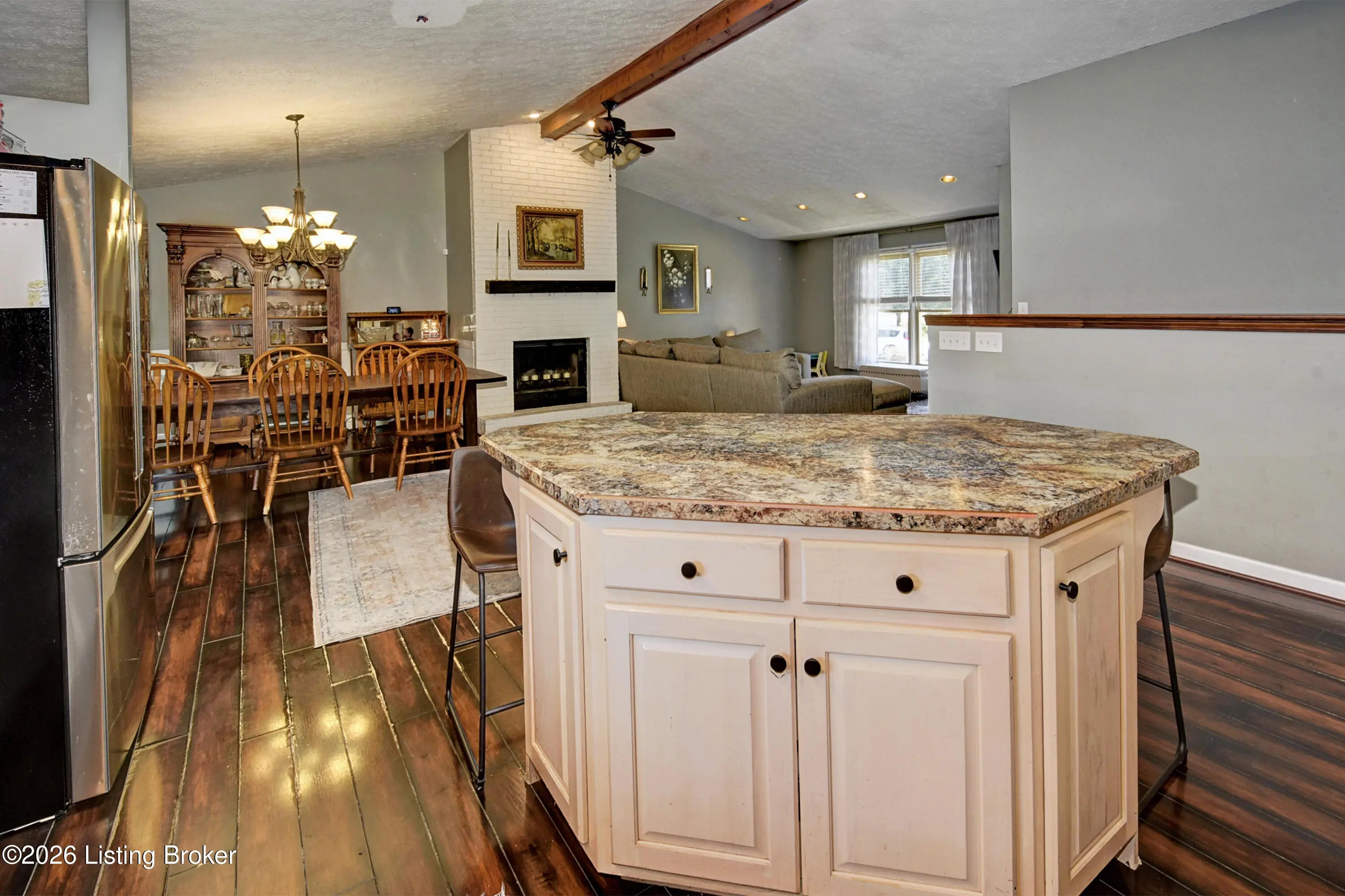 Spacious 4-bedroom, 3 full bath raised ranch offering approximately 3,600 sq ft of finished living space! The main level features a ginormous open great room with fireplace that flows into the eat-in kitchen, complete with center island, cathedral ceiling, and plenty of space for a large table—perfect for entertaining and gatherings. Three generously sized bedrooms are located on the first floor, including a primary suite with double walk-in closets and an attached full bath. The finished basement adds even more living space with a large family room with fireplace, a fourth bedroom, full bath, and an oversized laundry room. Step outside to enjoy the fully fenced backyard with a large deck—ideal for relaxing or hosting. Additional highlights include a side-entry garage, all-brick exterior, and a quiet cul-de-sac location. Home does need some cosmetic TLC but is priced accordingly. Major updates include a newer furnace and roof.