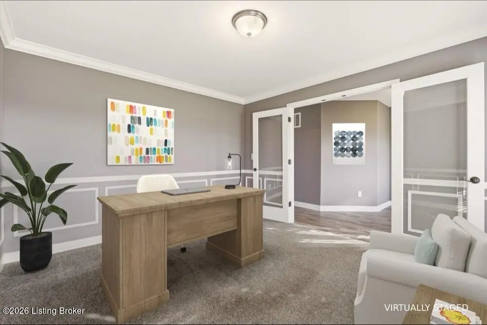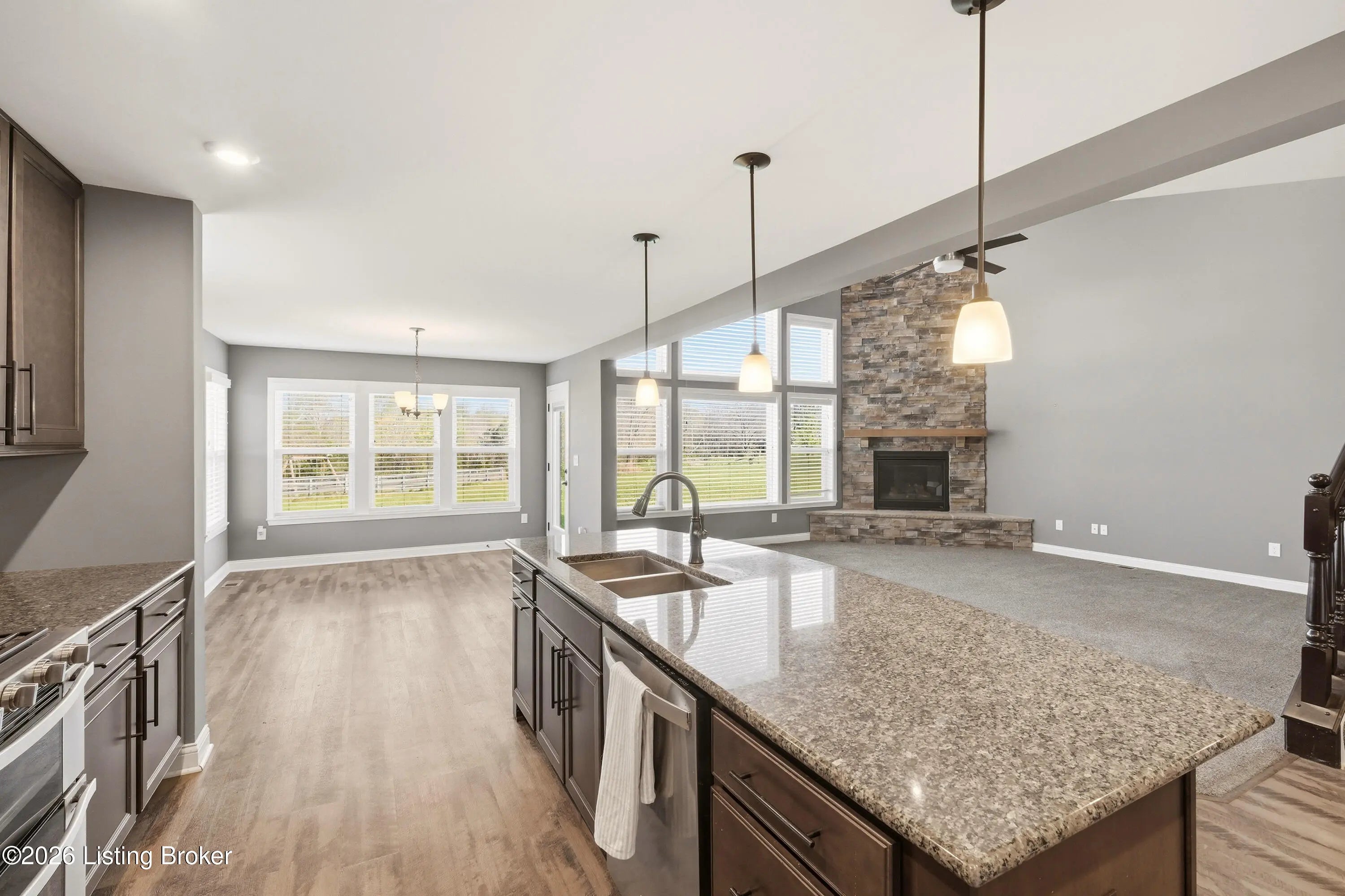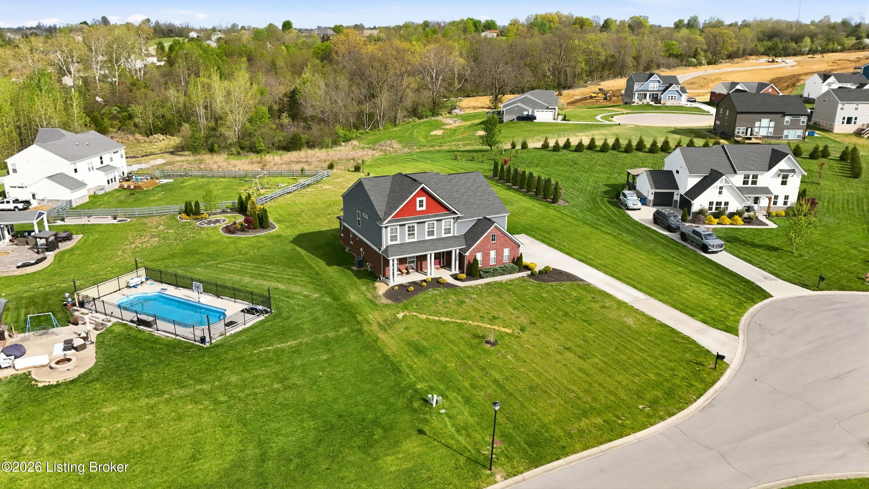 Welcome to this beautiful 5-bedroom, 4.5-bath home situated on a generous 0.69-acre lot, on a Cul de Sac in the desirable Summit Parks neighborhood—just 2 miles from the charming town of La Grange. Offering over 3,000 square feet of thoughtfully designed living space, this move-in ready home is perfect for families of all sizes. A welcoming front porch sets the tone as you enter into a bright foyer, complete with a convenient half bath and a private office featuring elegant glass doors. The heart of the home opens into a stunning open-concept kitchen, dining, and living area, highlighted by vaulted ceilings and an abundance of natural light. The living room showcases a striking floor-to-ceiling stone fireplace, creating a warm and inviting atmosphere. The kitchen is both stylish and functional, featuring stainless steel appliances, ample cabinetry, and a spacious walk-in pantry. Just off the attached two-car garage, you'll find a practical mudroom area to help keep things organized. The spacious primary suite offers a relaxing retreat, complete with dual walk-in closets. The en-suite bath includes double vanities, a soaking tub, separate shower, and a private water closet. Conveniently located just outside the primary bedroom is a laundry room with a linen closet. Upstairs, you'll find three additional bedrooms. One features its own walk-in closet and private full bath, while the other two share a full bathroom. A step-down level off the first floor offers a rec room or fifth bedroom with a closet and full bath—perfect for guests, teens, or a private living space. The home also includes 1,188 square feet of unfinished basement space, already equipped with plumbing for an additional bathroom, an egress window for a potential bedroom, and plenty of room for storage or future expansion.