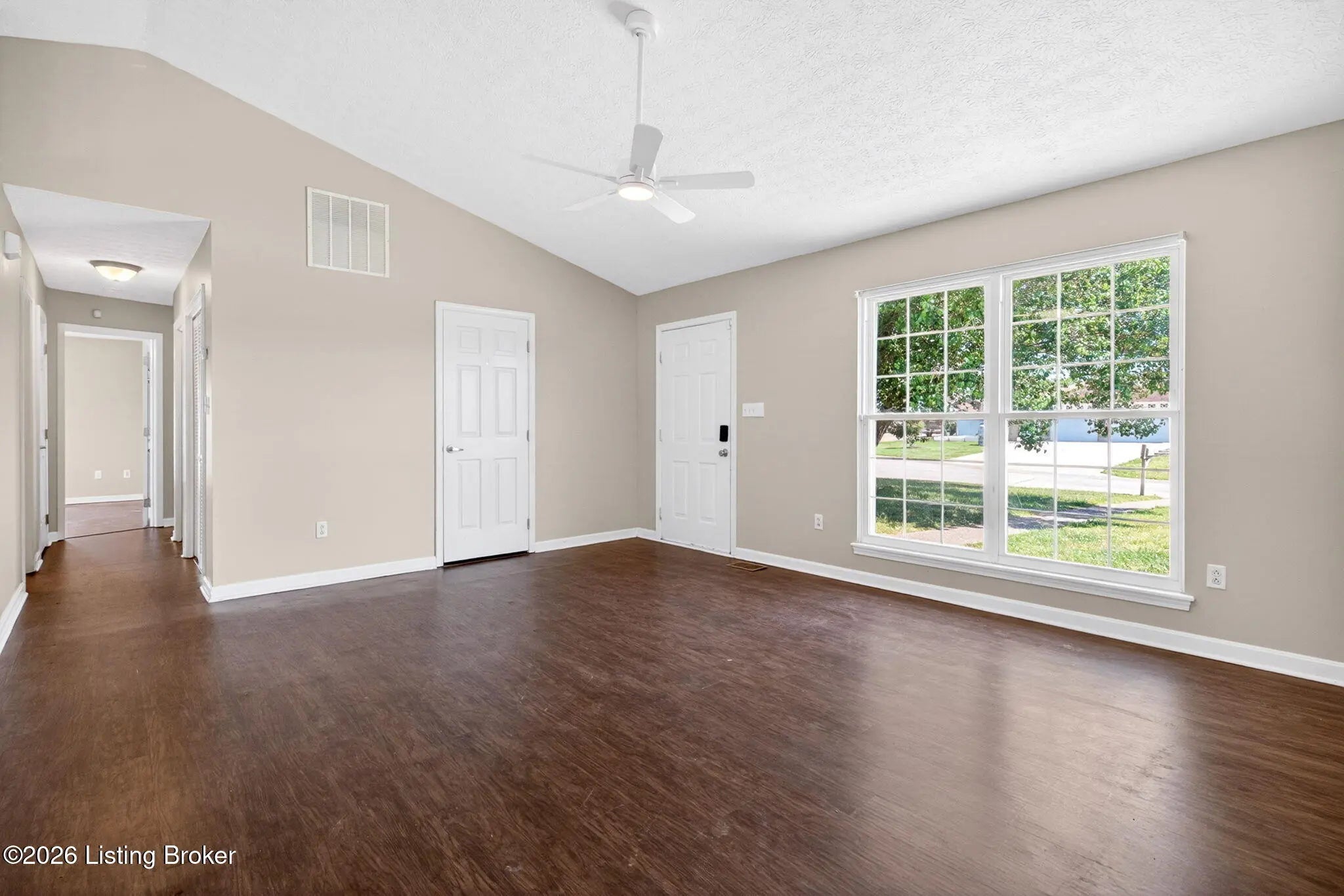 3 bedroom, 2 bath home in 40229 located on a desirable corner lot with a 2-car attached garage. This home features a spacious living area with vaulted ceilings, an open layout, and a functional kitchen with ample cabinetry and dining space. The primary suite offers privacy with its own bathroom and access to the fenced in backyard. Two additional bedrooms and bathroom provide flexibility. Conveniently located near shopping, dining and major highway.
