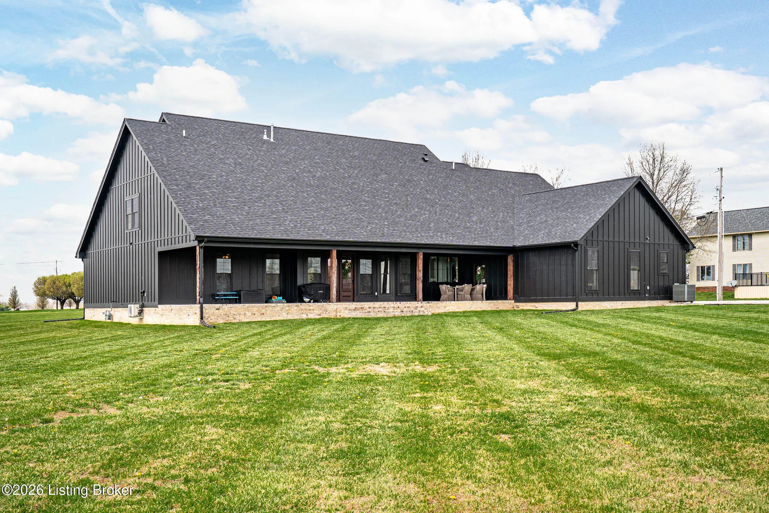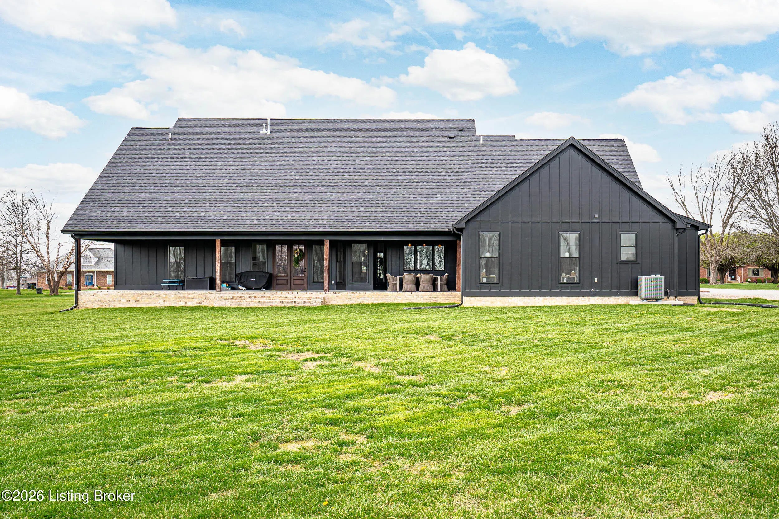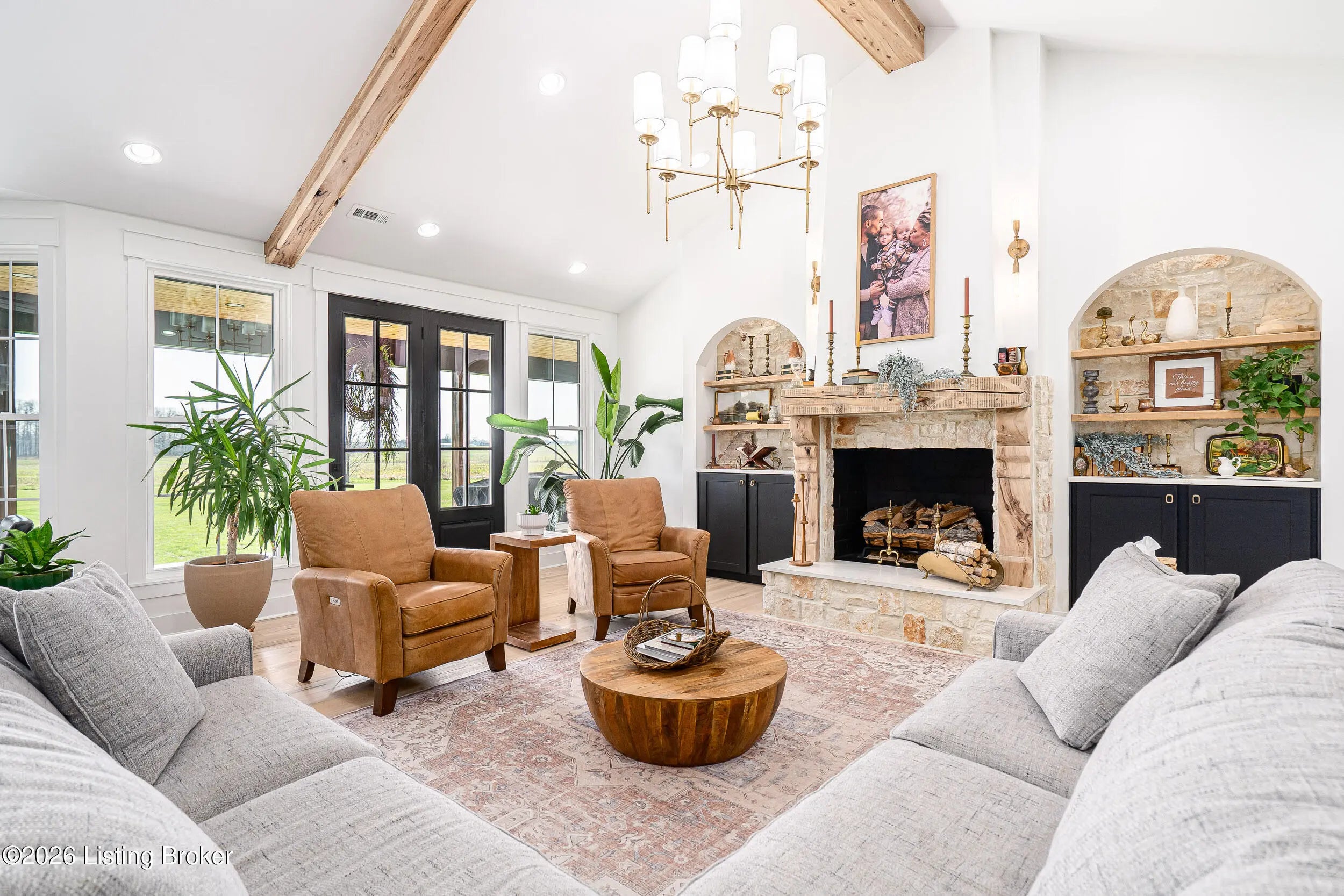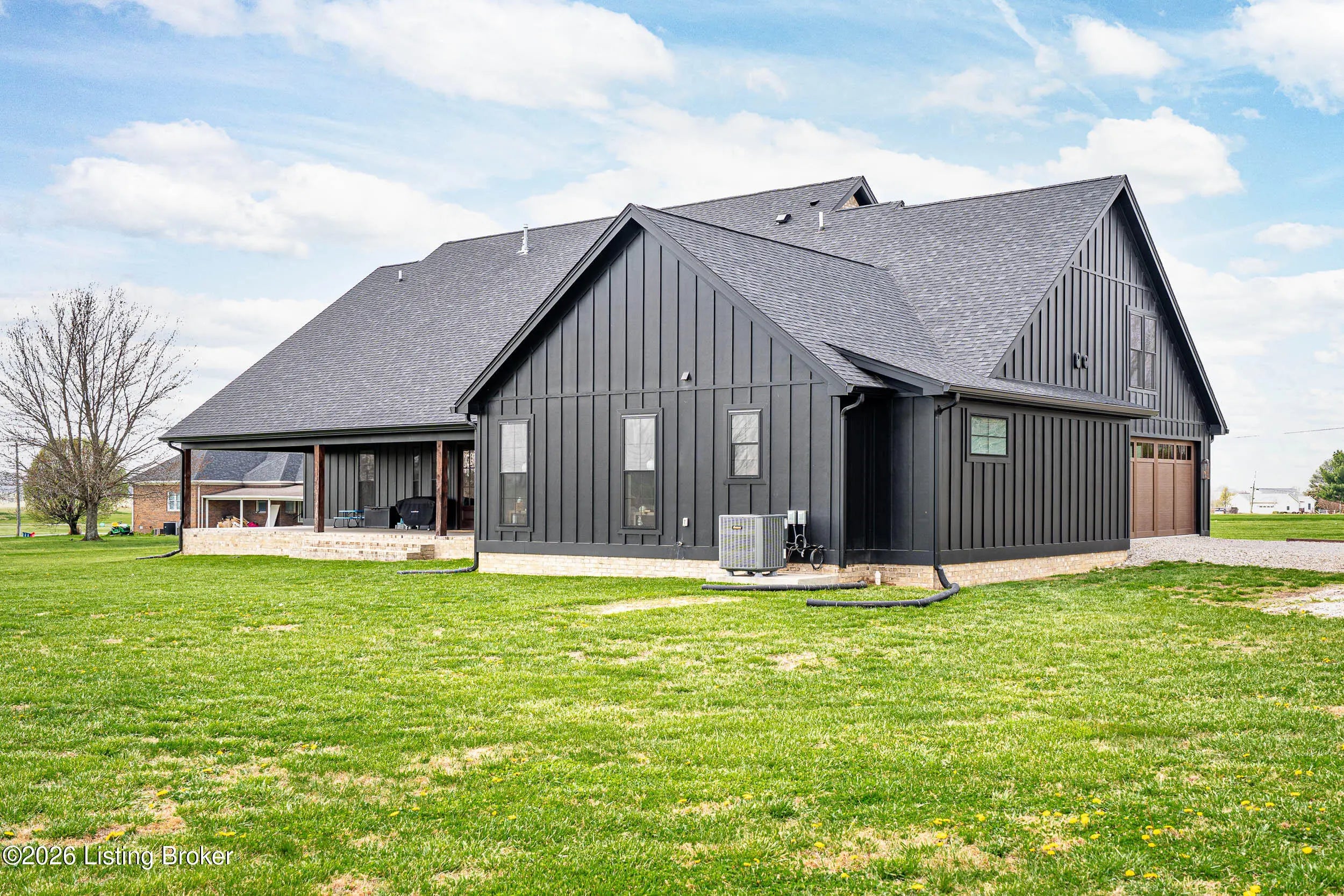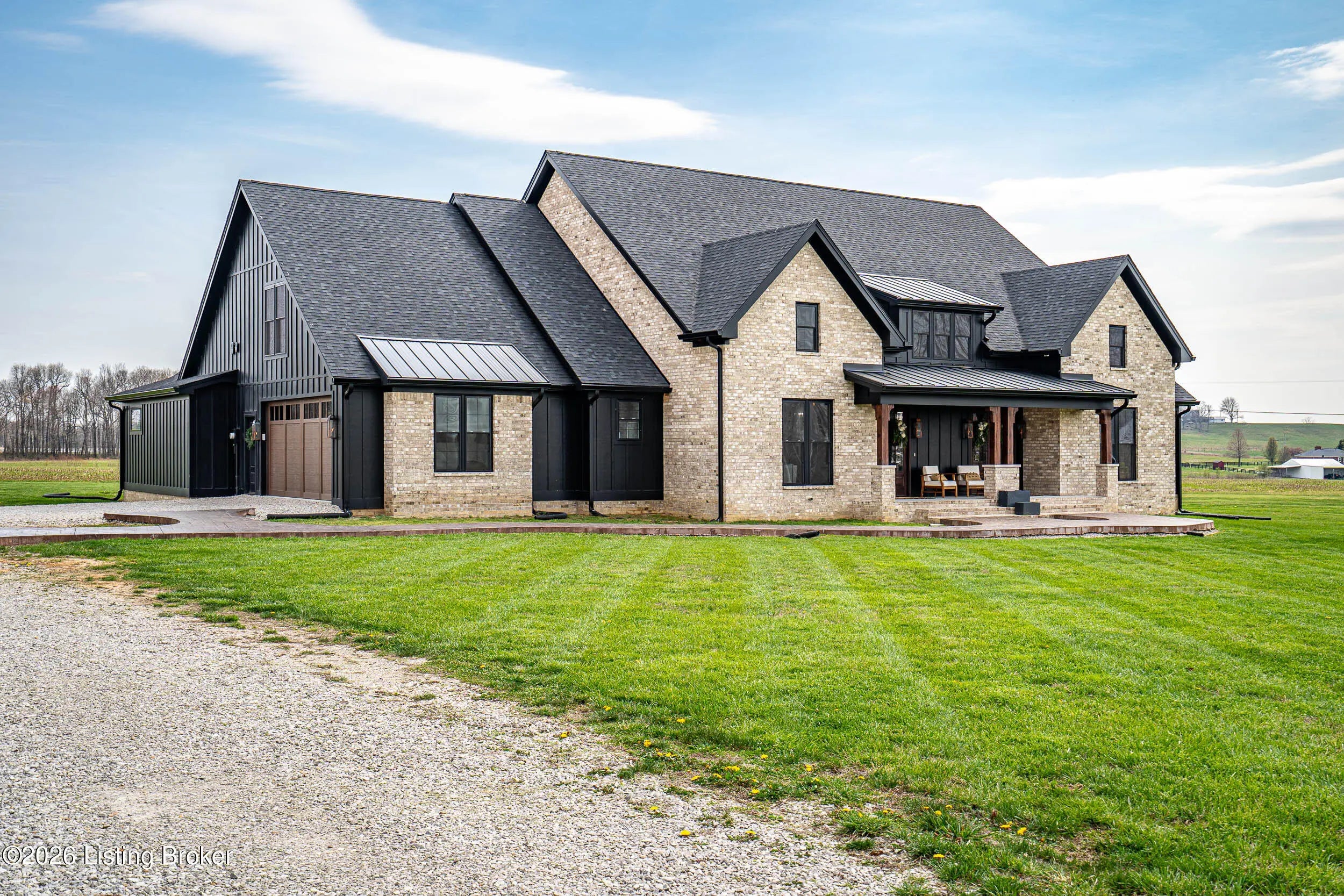 As the builder's personal residence, this home reflects a higher level of thought, craftsmanship, and detail throughout. Completed in 2025 and set on 1.70 acres, this custom home offers the space, design, and quality that make it stand out from the start. Inside, soaring ceilings, exposed beam detail, and an open-concept layout create a bright and elevated feel throughout the main living areas. The living room centers around a beautiful fireplace and flows into a standout kitchen with a large island, custom cabinetry, granite countertops, and high-end finishes that balance style and function. A formal dining room adds elegance for entertaining, while the dedicated office provides a bold and well-designed space for work or quiet retreat. The primary suite feels like a private escape with a spa-style bath and impressive closet space. Upstairs, the layout offers exceptional flexibility with a private bedroom suite featuring its own bath and kitchenette on one end of the home, while a second upstairs bedroom on the opposite end works perfectly as a playroom, guest room, or additional private living space. The huge covered back patio extends the living space outdoors and creates the perfect setting for relaxing or entertaining. A zero-threshold entry from the garage into the home adds ease, accessibility, and long-term practicality. With 5 bedrooms, 3 full baths, 1 half bath, an attached side-entry garage, and room to breathe, this is a rare opportunity to own a newer custom home with luxury, versatility, and everyday comfort.