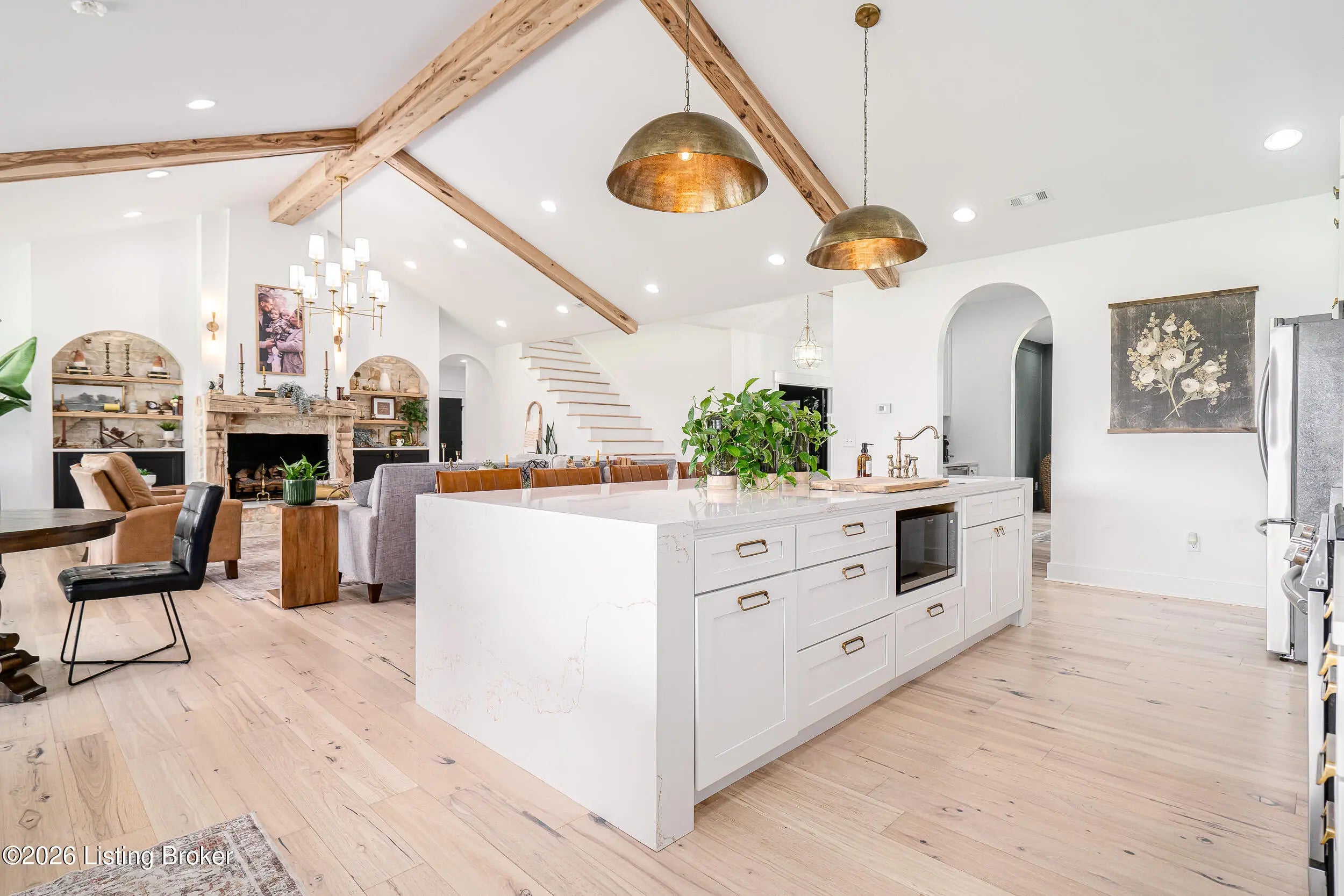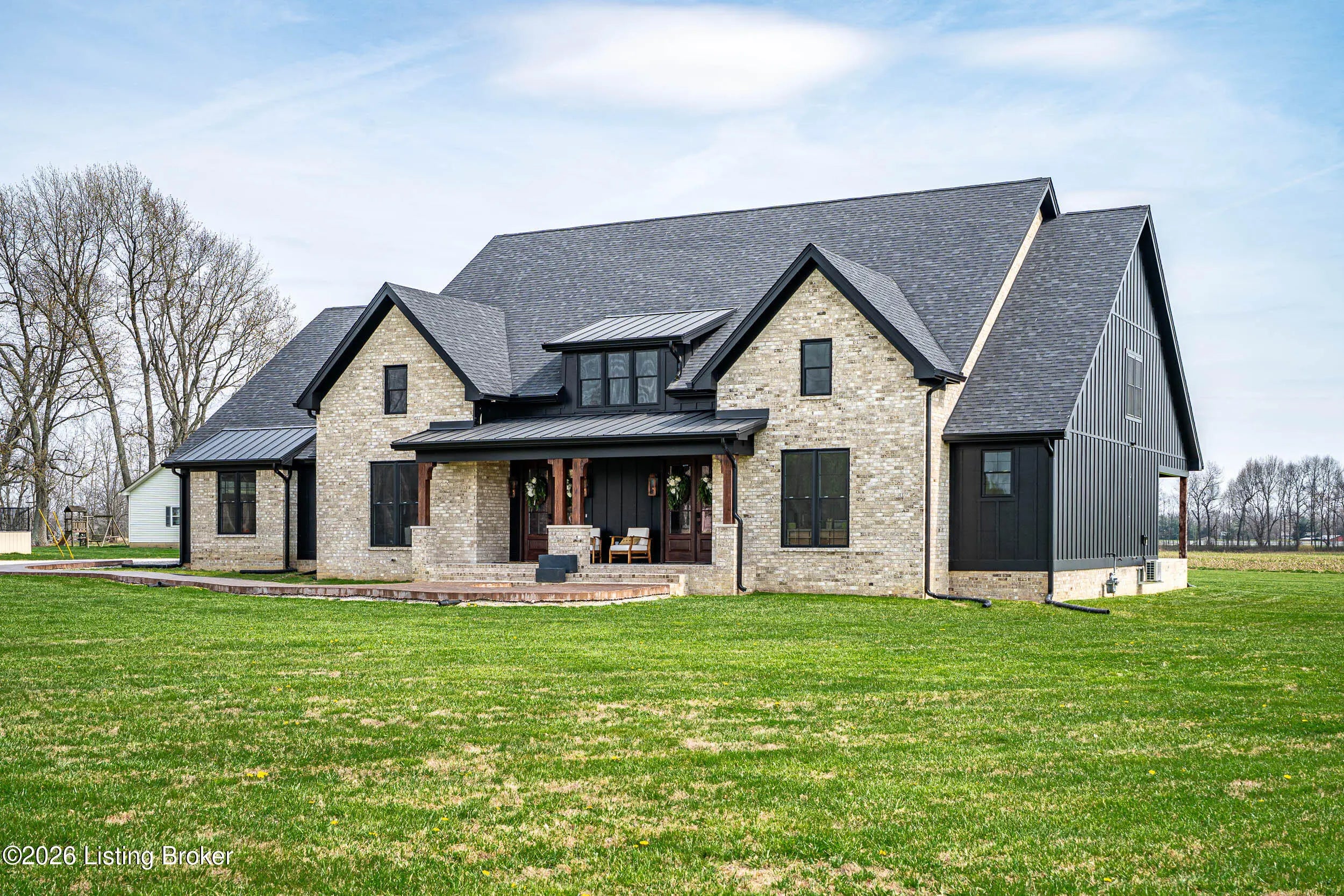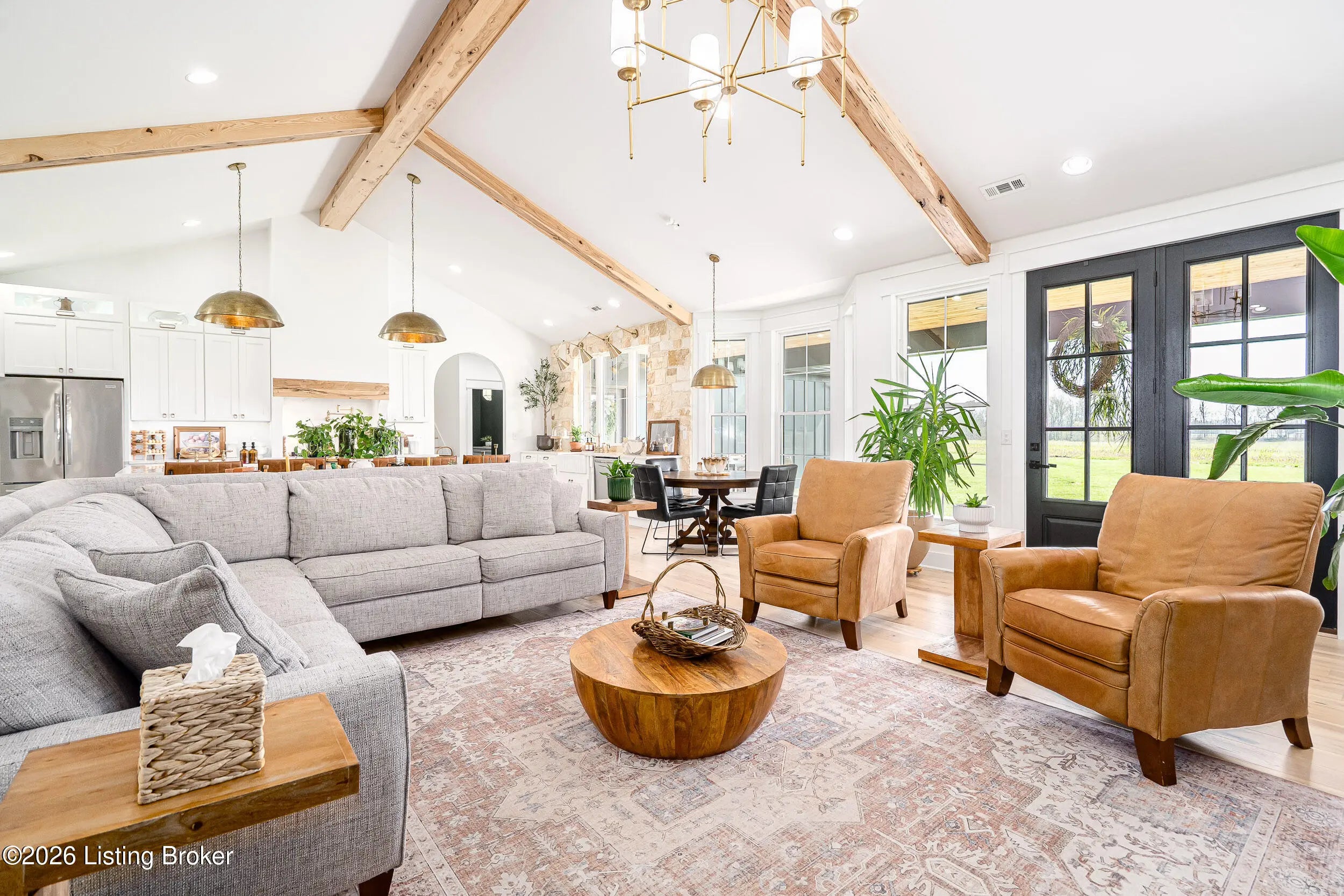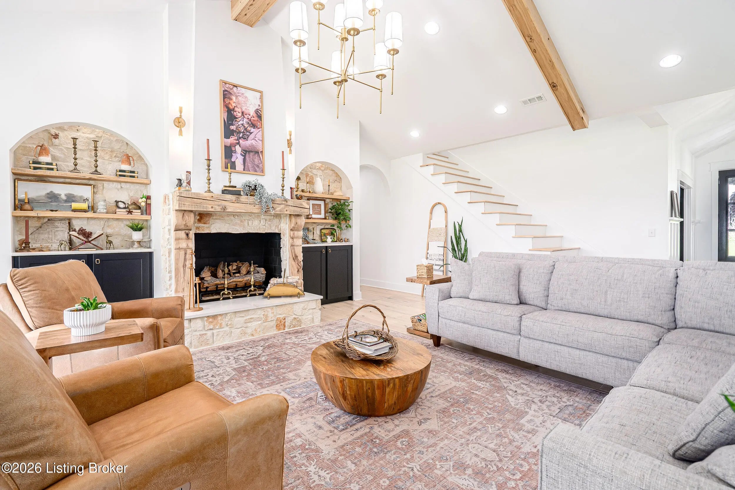 As the builder's personal residence, this home reflects a higher level of thought, craftsmanship, and detail throughout. Completed in 2025 and set on 1.70 acres, this custom home offers the space, design, and quality that make it stand out from the start. Inside, soaring ceilings, exposed beam detail, and an open-concept layout create a bright and elevated feel throughout the main living areas. The living room centers around a beautiful fireplace and flows into a standout kitchen with a large island, custom cabinetry, granite countertops, and high-end finishes that balance style and function. A formal dining room adds elegance for entertaining, while the dedicated office provides a bold and well-designed space for work or quiet retreat. The primary suite feels like a private escape with a spa-style bath and impressive closet space. Upstairs, the layout offers exceptional flexibility with a private bedroom suite featuring its own bath and kitchenette on one end of the home, while a second upstairs bedroom on the opposite end works perfectly as a playroom, guest room, or additional private living space. The huge covered back patio extends the living space outdoors and creates the perfect setting for relaxing or entertaining. A zero-threshold entry from the garage into the home adds ease, accessibility, and long-term practicality. With 5 bedrooms, 3 full baths, 1 half bath, an attached side-entry garage, and room to breathe, this is a rare opportunity to own a newer custom home with luxury, versatility, and everyday comfort.