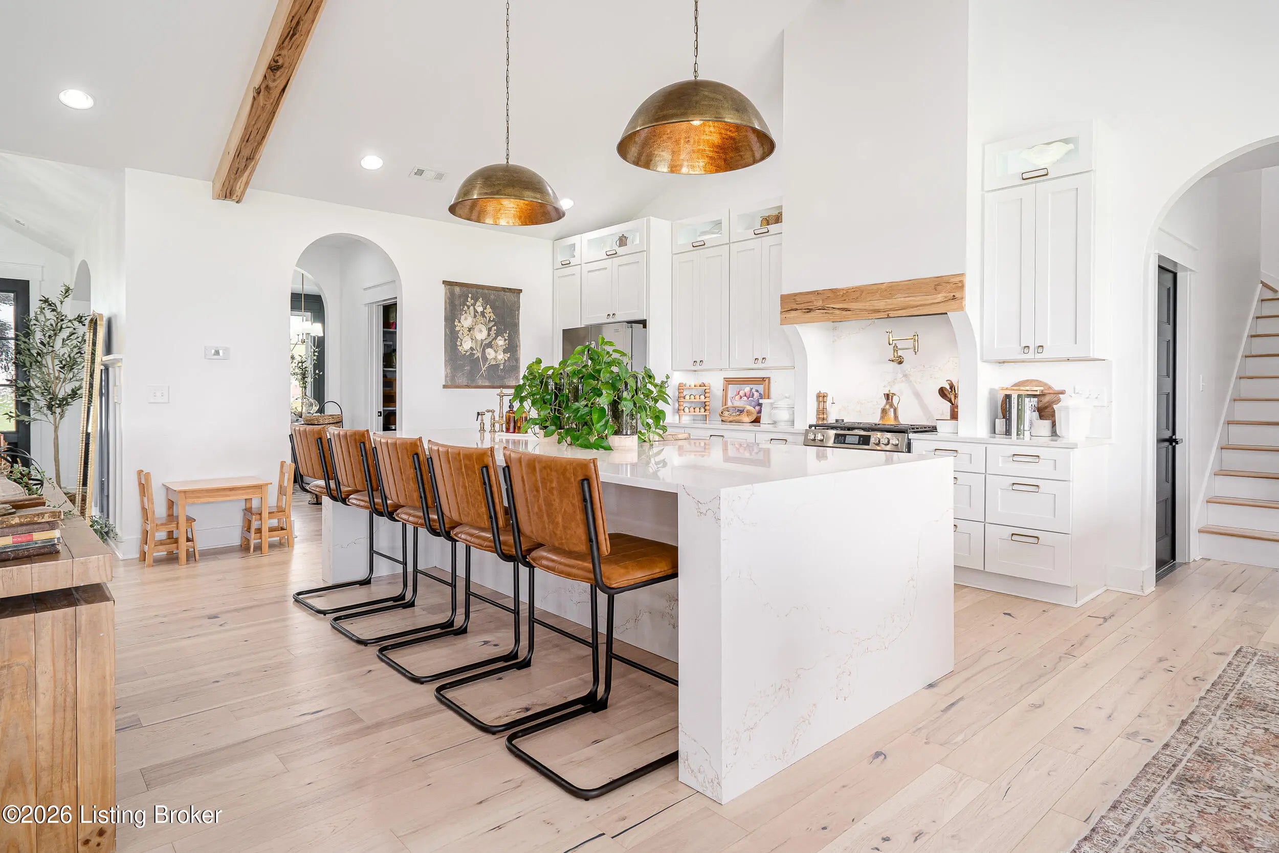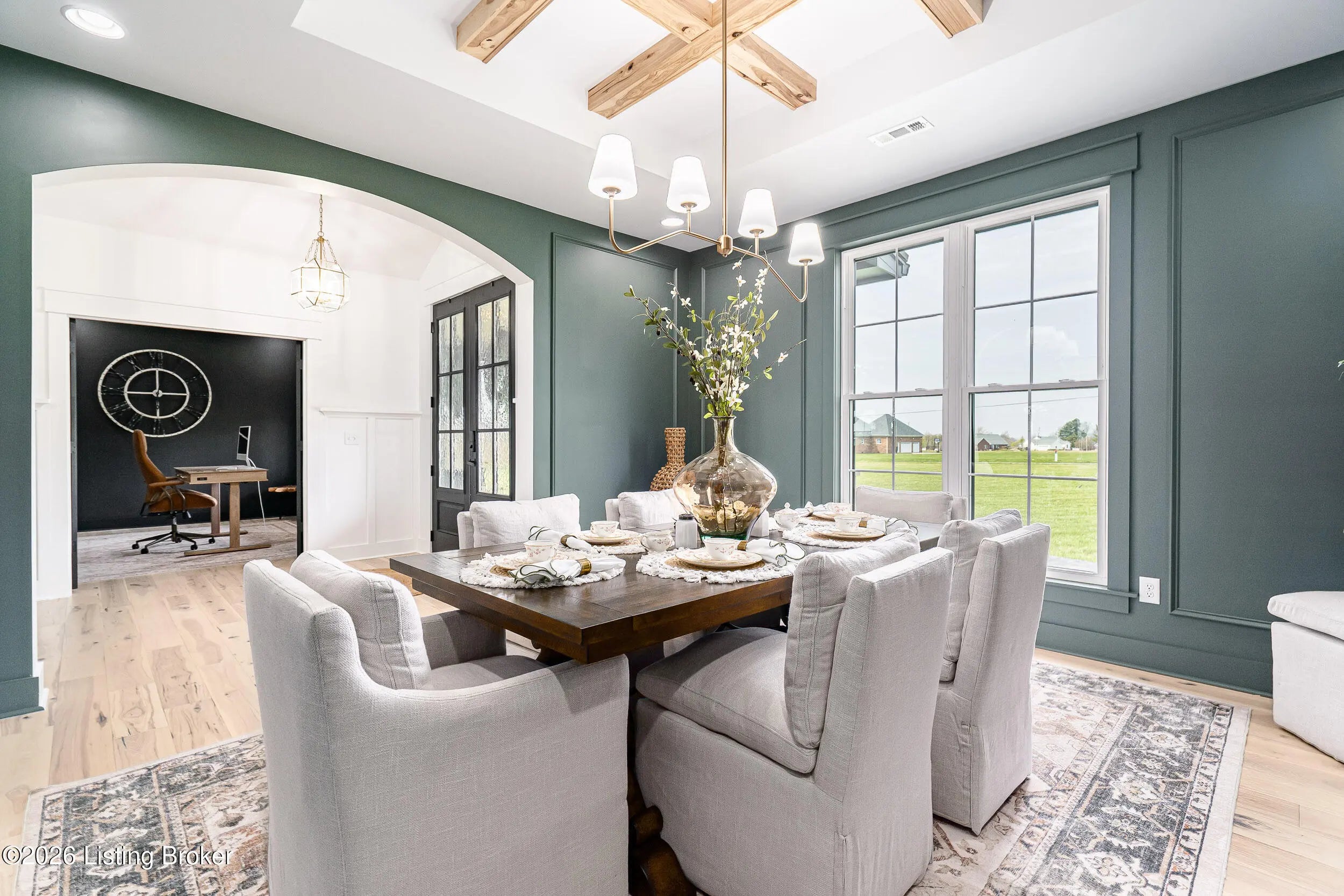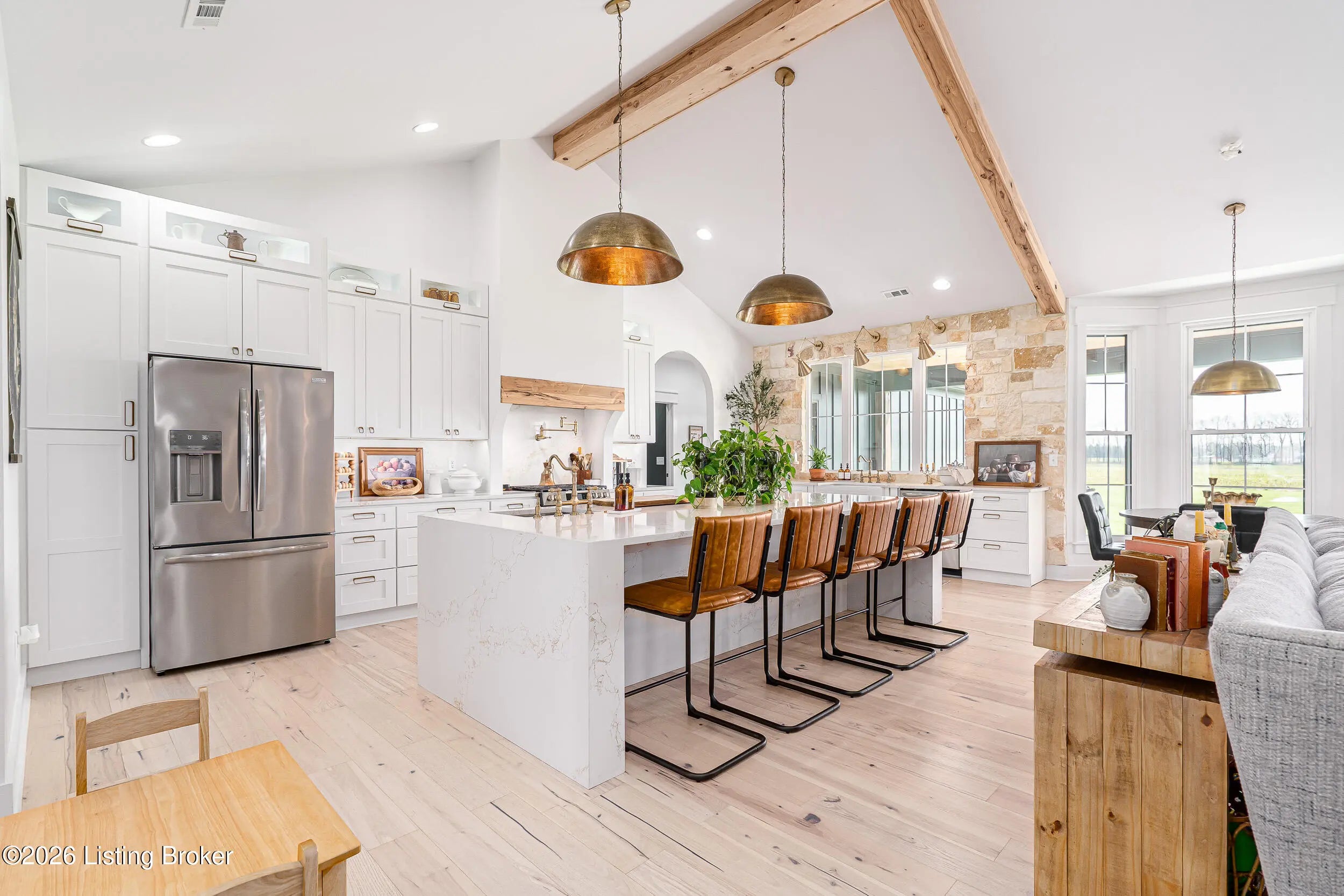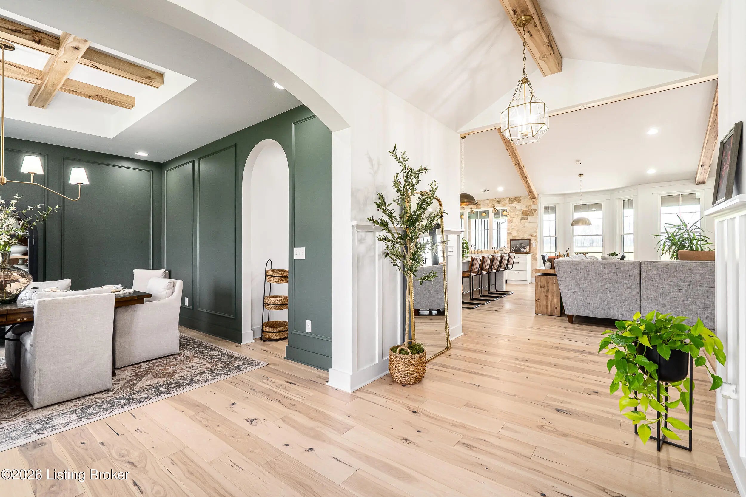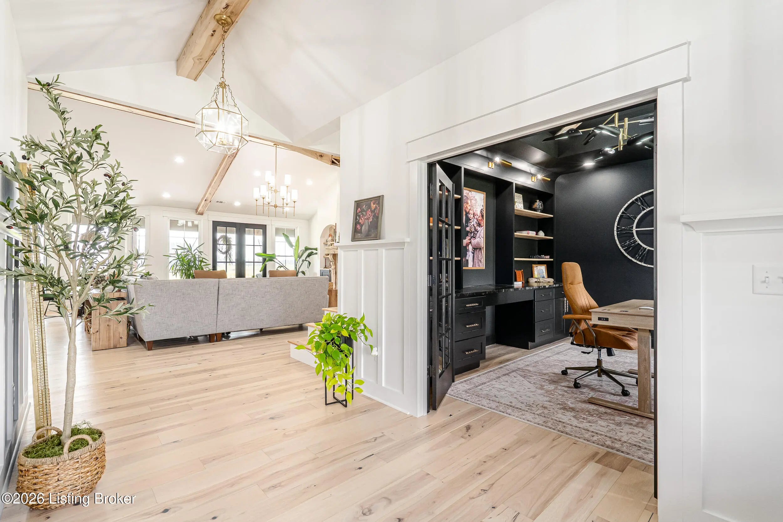 As the builder's personal residence, this home reflects a higher level of thought, craftsmanship, and detail throughout. Completed in 2025 and set on 1.70 acres, this custom home offers the space, design, and quality that make it stand out from the start. Inside, soaring ceilings, exposed beam detail, and an open-concept layout create a bright and elevated feel throughout the main living areas. The living room centers around a beautiful fireplace and flows into a standout kitchen with a large island, custom cabinetry, granite countertops, and high-end finishes that balance style and function. A formal dining room adds elegance for entertaining, while the dedicated office provides a bold and well-designed space for work or quiet retreat. The primary suite feels like a private escape with a spa-style bath and impressive closet space. Upstairs, the layout offers exceptional flexibility with a private bedroom suite featuring its own bath and kitchenette on one end of the home, while a second upstairs bedroom on the opposite end works perfectly as a playroom, guest room, or additional private living space. The huge covered back patio extends the living space outdoors and creates the perfect setting for relaxing or entertaining. A zero-threshold entry from the garage into the home adds ease, accessibility, and long-term practicality. With 5 bedrooms, 3 full baths, 1 half bath, an attached side-entry garage, and room to breathe, this is a rare opportunity to own a newer custom home with luxury, versatility, and everyday comfort.