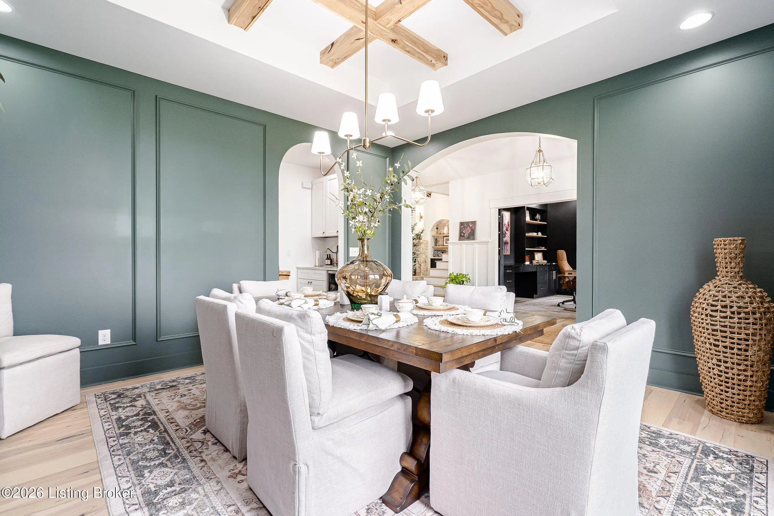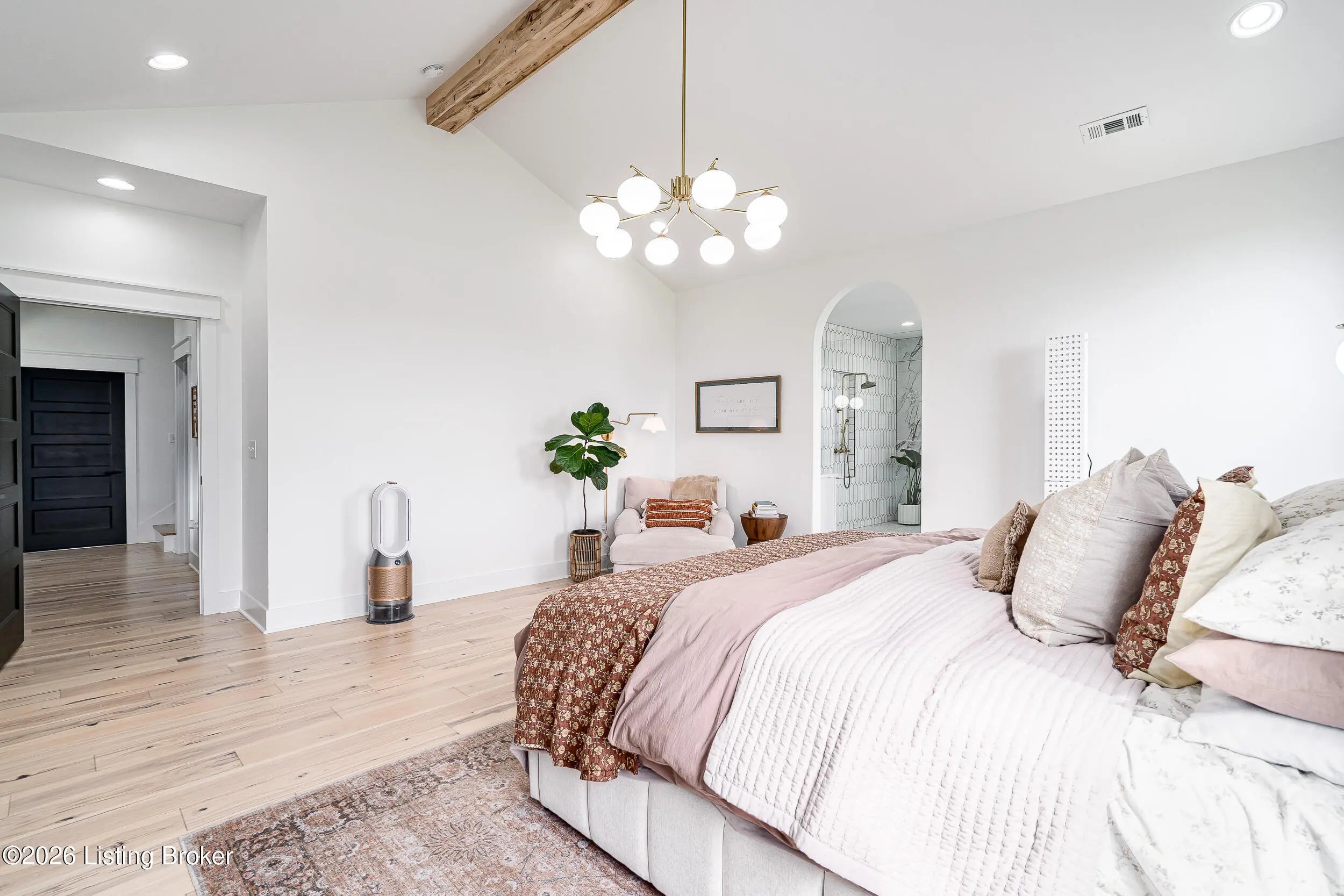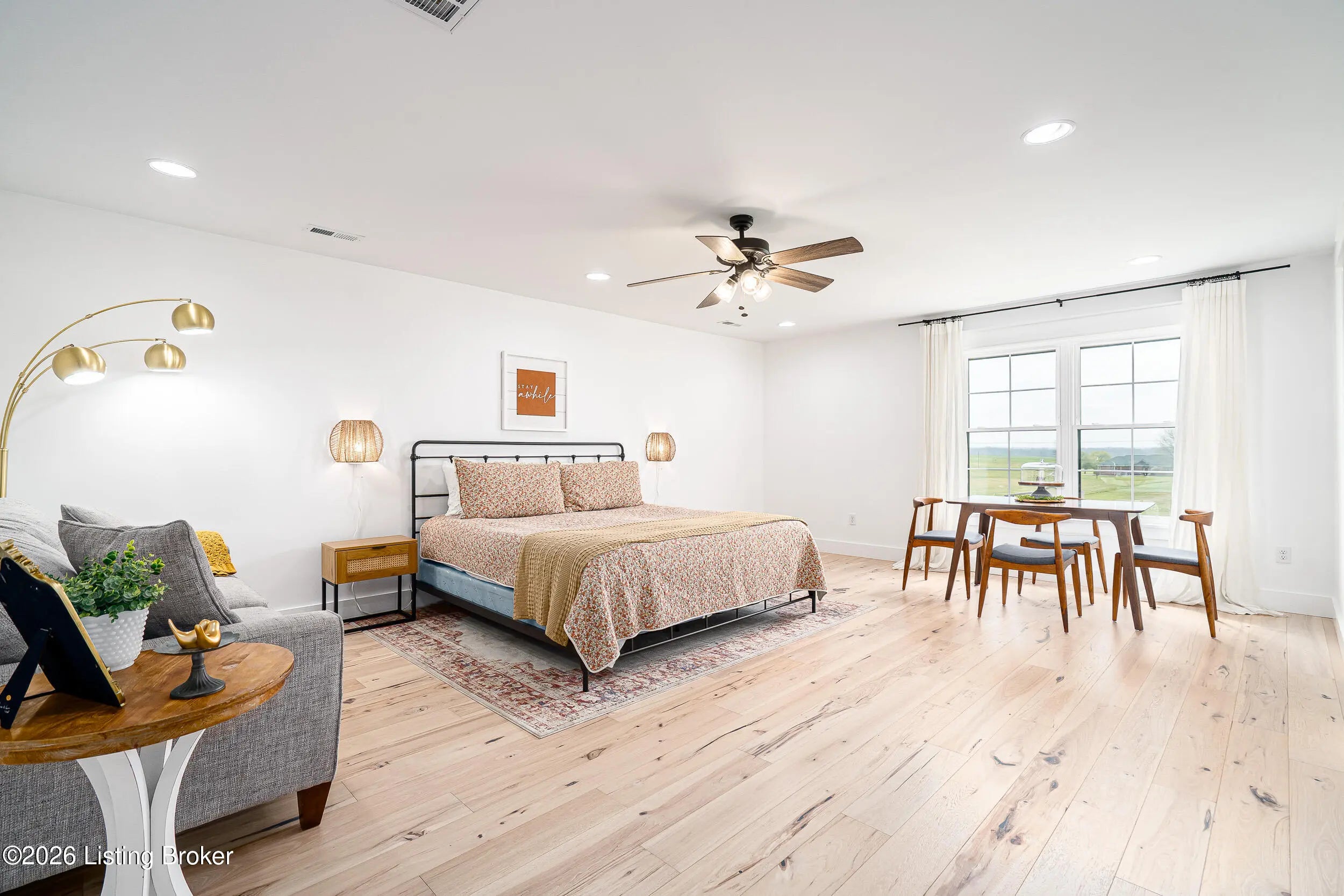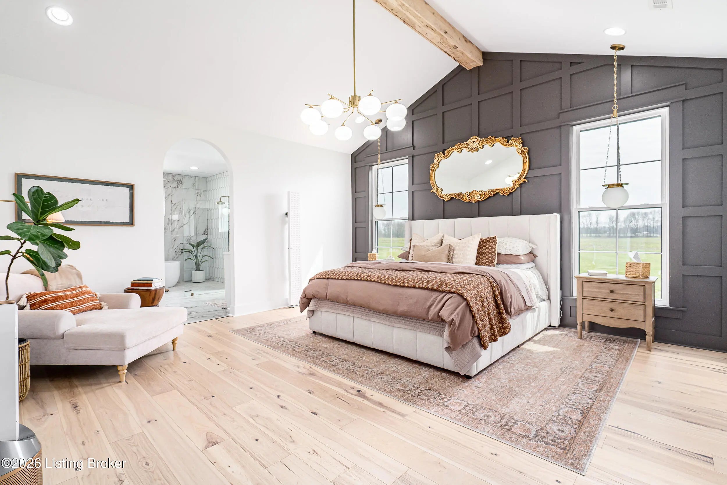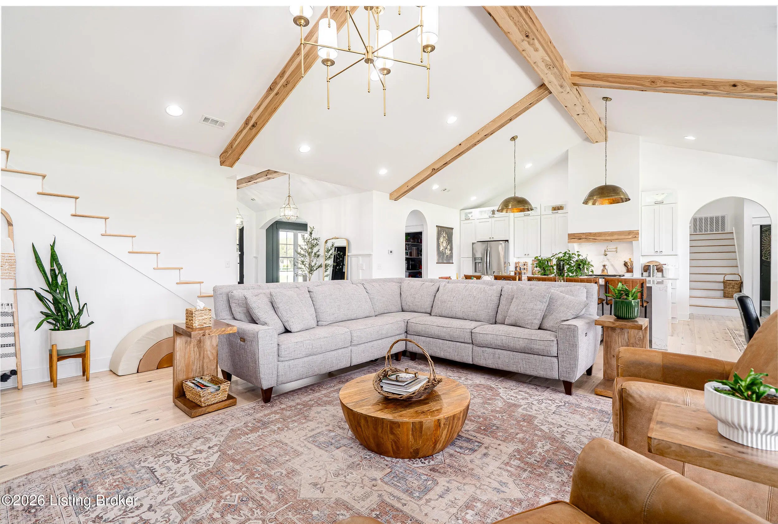 As the builder's personal residence, this home reflects a higher level of thought, craftsmanship, and detail throughout. Completed in 2025 and set on 1.70 acres, this custom home offers the space, design, and quality that make it stand out from the start. Inside, soaring ceilings, exposed beam detail, and an open-concept layout create a bright and elevated feel throughout the main living areas. The living room centers around a beautiful fireplace and flows into a standout kitchen with a large island, custom cabinetry, granite countertops, and high-end finishes that balance style and function. A formal dining room adds elegance for entertaining, while the dedicated office provides a bold and well-designed space for work or quiet retreat. The primary suite feels like a private escape with a spa-style bath and impressive closet space. Upstairs, the layout offers exceptional flexibility with a private bedroom suite featuring its own bath and kitchenette on one end of the home, while a second upstairs bedroom on the opposite end works perfectly as a playroom, guest room, or additional private living space. The huge covered back patio extends the living space outdoors and creates the perfect setting for relaxing or entertaining. A zero-threshold entry from the garage into the home adds ease, accessibility, and long-term practicality. With 5 bedrooms, 3 full baths, 1 half bath, an attached side-entry garage, and room to breathe, this is a rare opportunity to own a newer custom home with luxury, versatility, and everyday comfort.