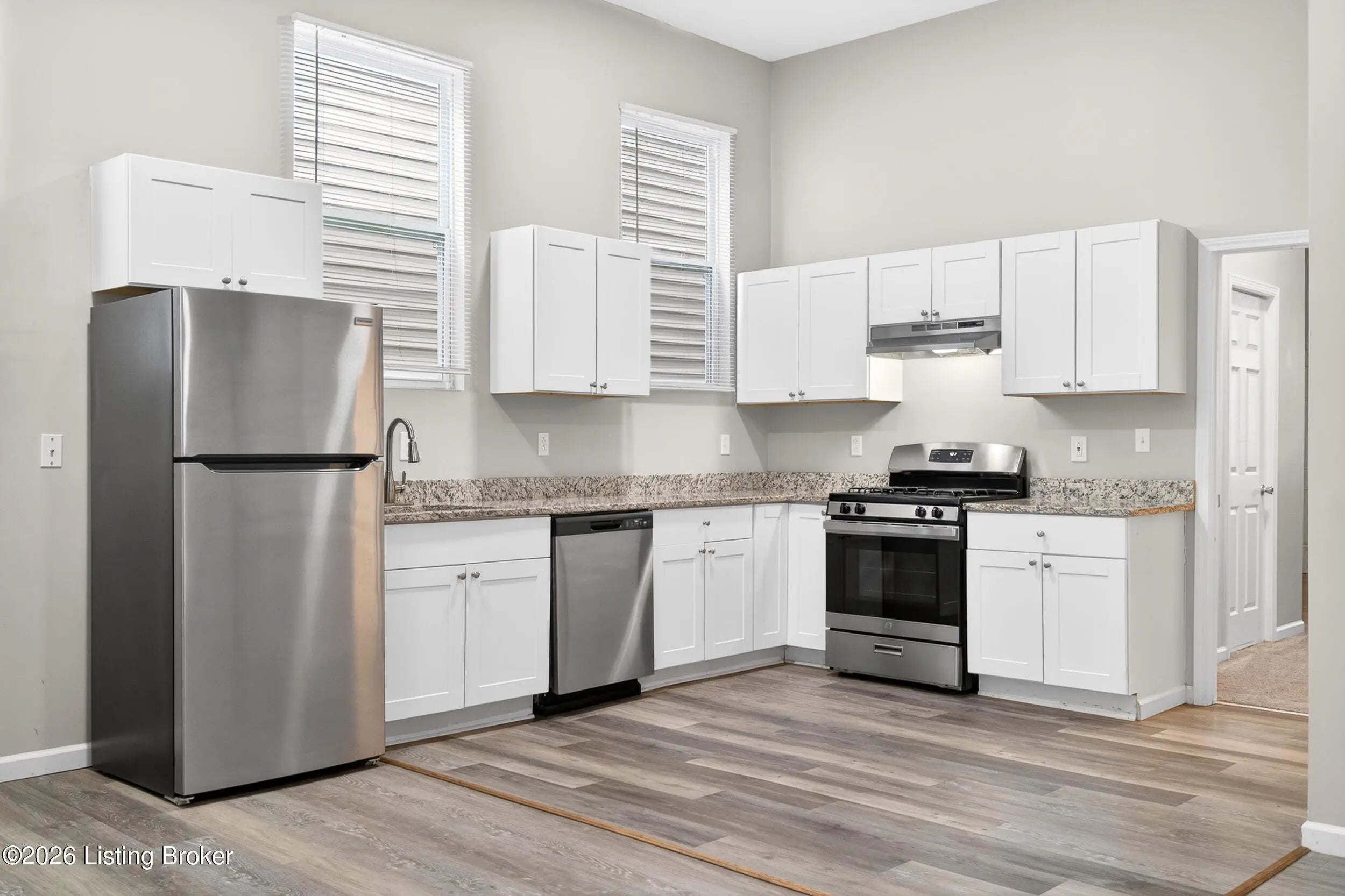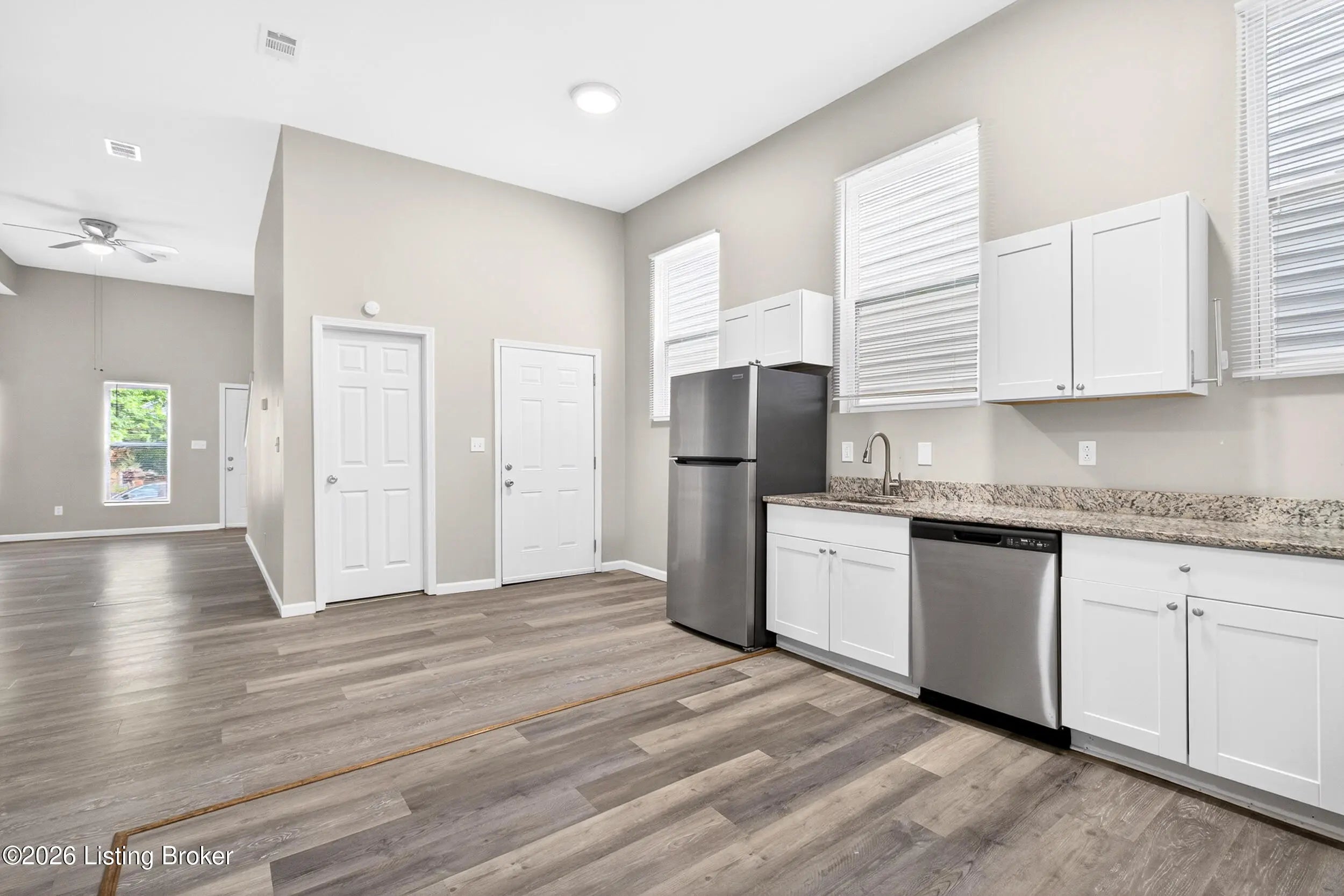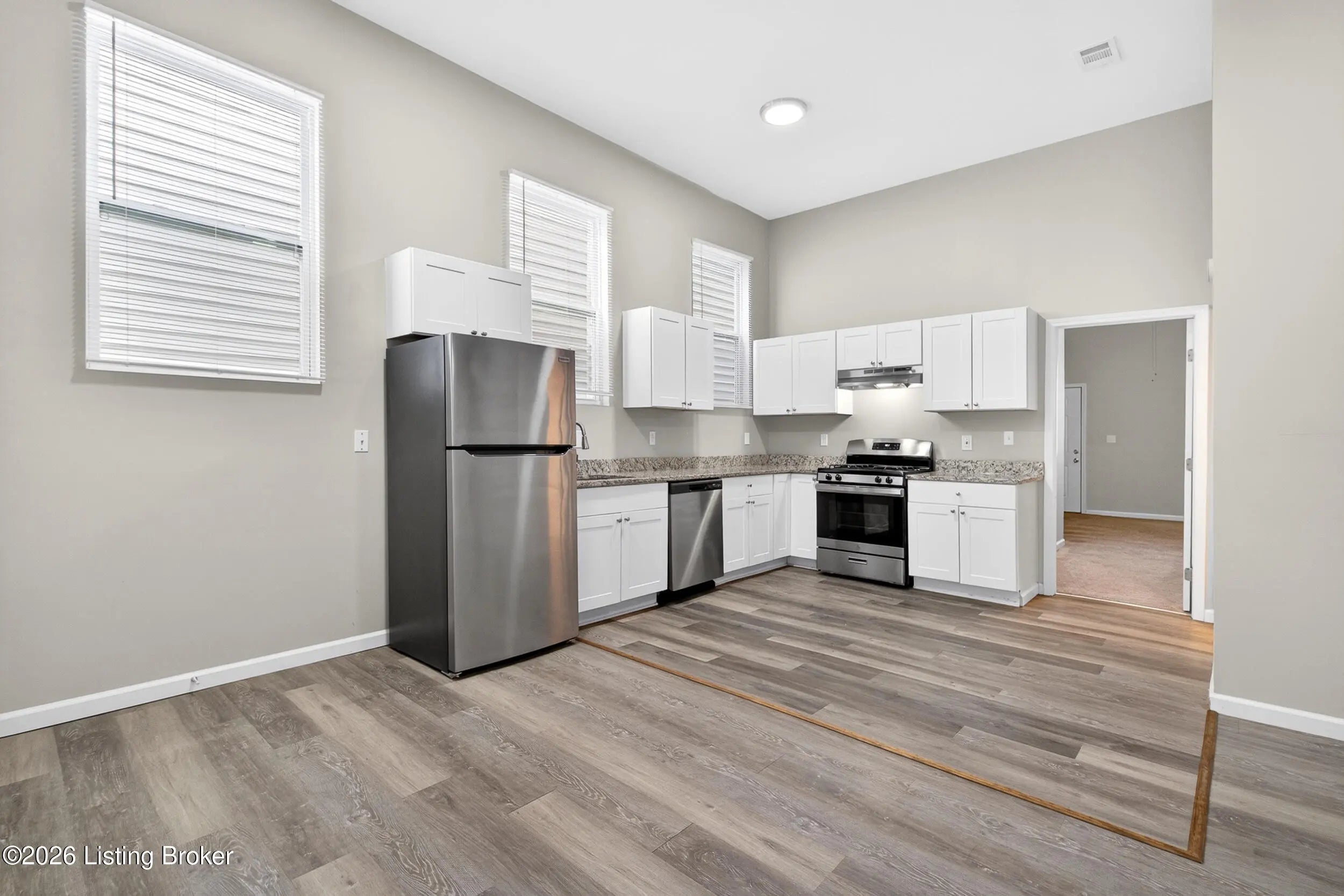Welcome to 718 Camp Street, a beautifully updated and exceptionally spacious home in the heart of the ever-popular Shelby Park neighborhood. Offering an impressive 2,323 square feet, this rare find combines modern updates, flexible living space, and an unbeatable central location. Inside, you'll love the open-concept layout, tall ceilings, and updated flooring throughout. The main living area flows seamlessly into a generous dining and kitchen space featuring granite countertops, newer cabinetry, and stainless steel appliances—perfect for everyday living or entertaining alike. Just off the kitchen is a stylishly updated half bath, ideal for guests. The first floor also offers a true standout feature: a large primary suite complete with an enormous walk-in closet and private updated bath featuring a double vanity, refreshed shower, and newer fixtures. Upstairs, the home continues to impress with three additional spacious bedrooms, including a second potential primary suite with its own private en suite bathroom. A third full bathroom in the hallway and a conveniently located second-floor laundry room provide excellent functionality for today's lifestyle. With 4 bedrooms, 3 full baths, and 1 half bath, this home offers a rare combination of size, updates, and versatility in one of Louisville's most vibrant neighborhoods. Potential for off-street parking adds even more appeal. And, you can have peace of mind knowing the mechanicals and roof have been replaced in recent years. Conveniently located near Shelby Park, Germantown-Schnitzelburg and all that Goss Ave has to offer, Downtown Louisville, the Highlands, shopping, dining, and the University of Louisville. Move-in ready, generously sized, and hard to duplicate—this is city living with room to grow.