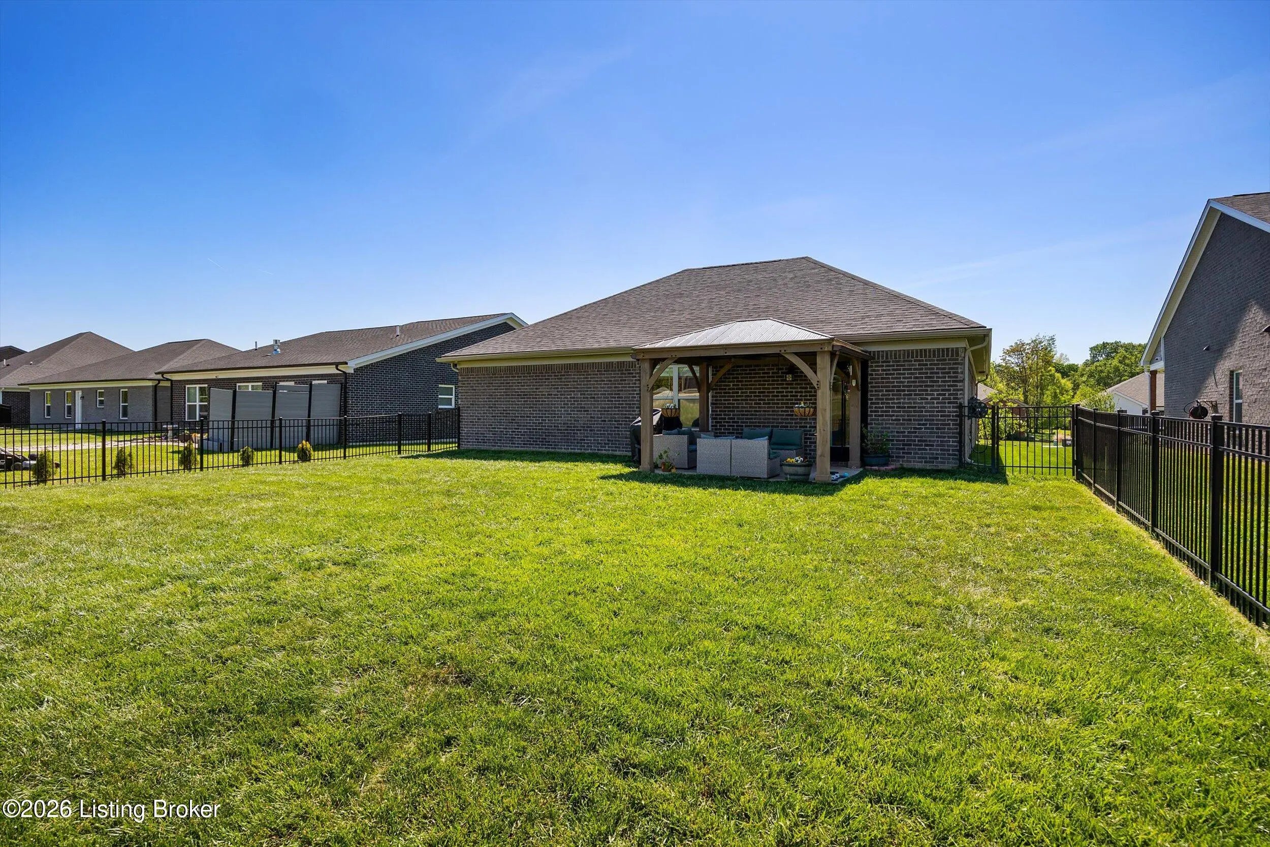 Better than New Construction!! Welcome to effortless living in this beautifully maintained 2023-built home in desirable Charlestown, Indiana. Offering the perfect blend of modern design and thoughtful upgrades, this property shows like new—without the wait or added expense of new construction. Step inside to discover an airy open floorplan highlighted by soaring vaulted ceilings and abundant natural light. The heart of the home flows seamlessly from the living area into the kitchen and dining space, making it ideal for both everyday living and entertaining. Designed with privacy in mind, the split ranch layout places the spacious primary suite on its own side of the home. This retreat features a luxurious ensuite bath and dual walk-in closets—perfect for keeping everything organized and accessible. On the opposite side, you'll find additional bedrooms and a full bath, offering comfort and flexibility for family, guests, or a home office. Practicality meets style with a generously sized laundry room complete with ample storage, while the attached two-car garage adds everyday convenience. Throughout the home, plantation shutters provide a timeless, upscale touch. Out back, enjoy a fully fenced yard—ideal for pets, play, or relaxing evenings—along with a covered deck that extends your living space outdoors year-round. If you've been searching for a move-in ready home with modern finishes, functional design, and zero compromise, this one delivers.