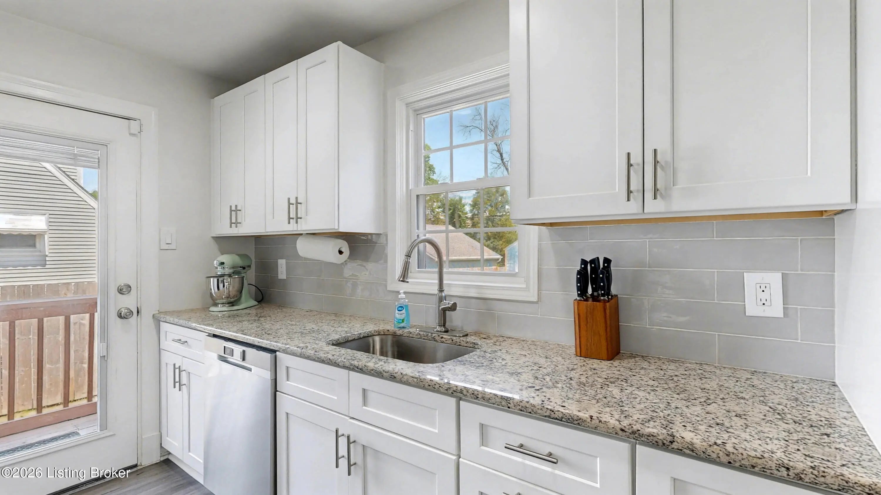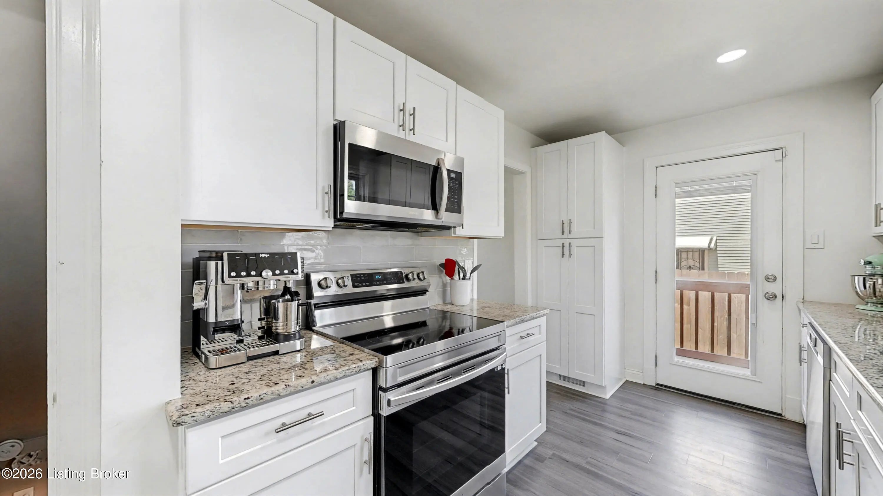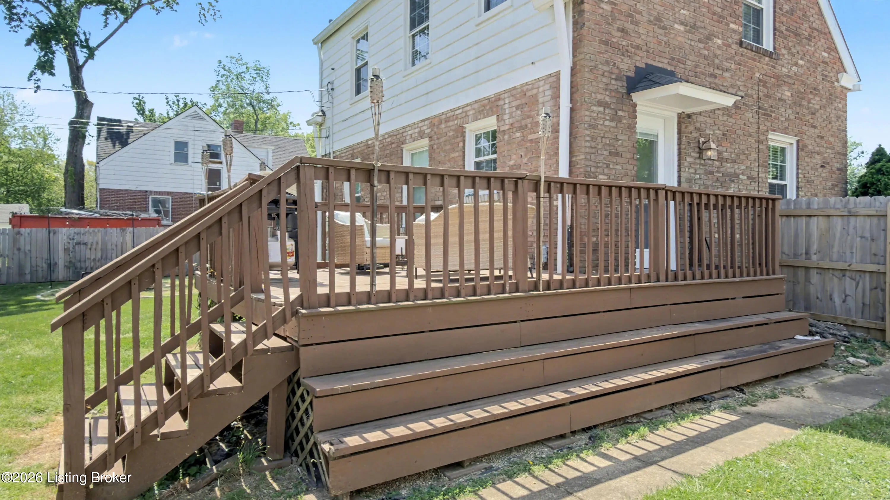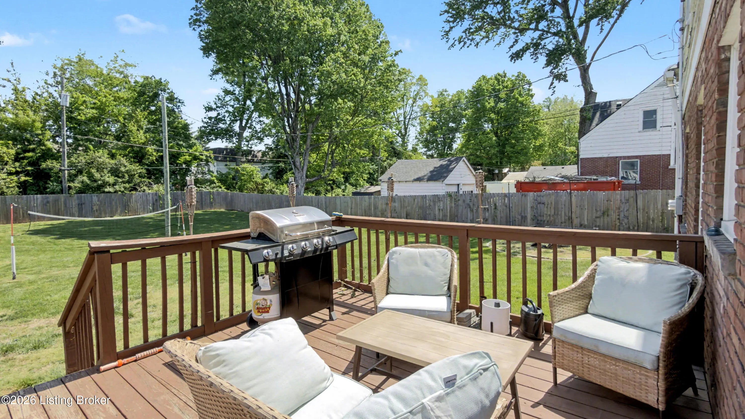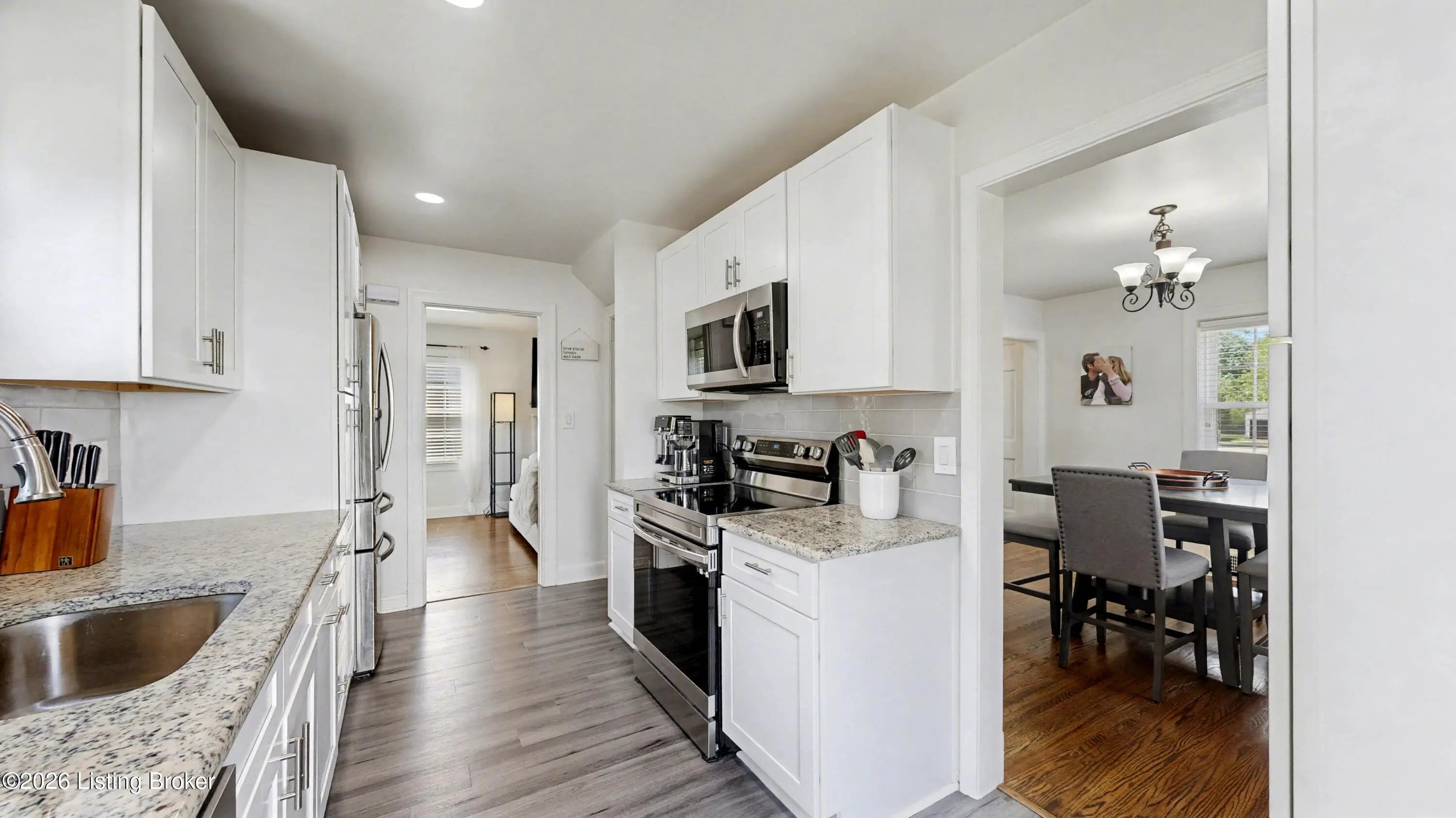 All-Brick Cape Cod on a Dead-End Street in Avondale Tucked into the Avondale pocket of Hikes Point, this all-brick Cape Cod sits back from a quiet dead-end street on one of the section's larger homesites. The curb appeal is the real thing: classic dormers, a brick chimney, mature landscaping, and a red front door that tells you exactly what kind of home this is. Inside, the living room anchors on an original white mantel with a marble-tiled firebox and herringbone hearth, flanked by windows that pull light across the hardwood floors. The remodeled kitchen is the showpiece: white shaker cabinetry, granite counters, a gray subway tile backsplash, stainless appliances including a Samsung French-door refrigerator, and a rear door that opens straight to the deck. The dining room sits just off the kitchen with its original hardwoods intact. Upstairs, two bedrooms stretch the full length of the home under dormered ceilings, both with hardwood floors and ceiling fans. The second-floor full bath preserves its period black-and-white tile, a detail you cannot reproduce. The finished basement adds real square footage: a rec room with a shiplap accent wall and barn door, a built-in wet bar with a wine fridge, plus a half bath. Out back, the grilling deck overlooks a yard enclosed by a new $25,000 privacy fence. A one-car detached garage adds covered parking and storage. Recent mechanicals are handled: furnace installed February 2026.