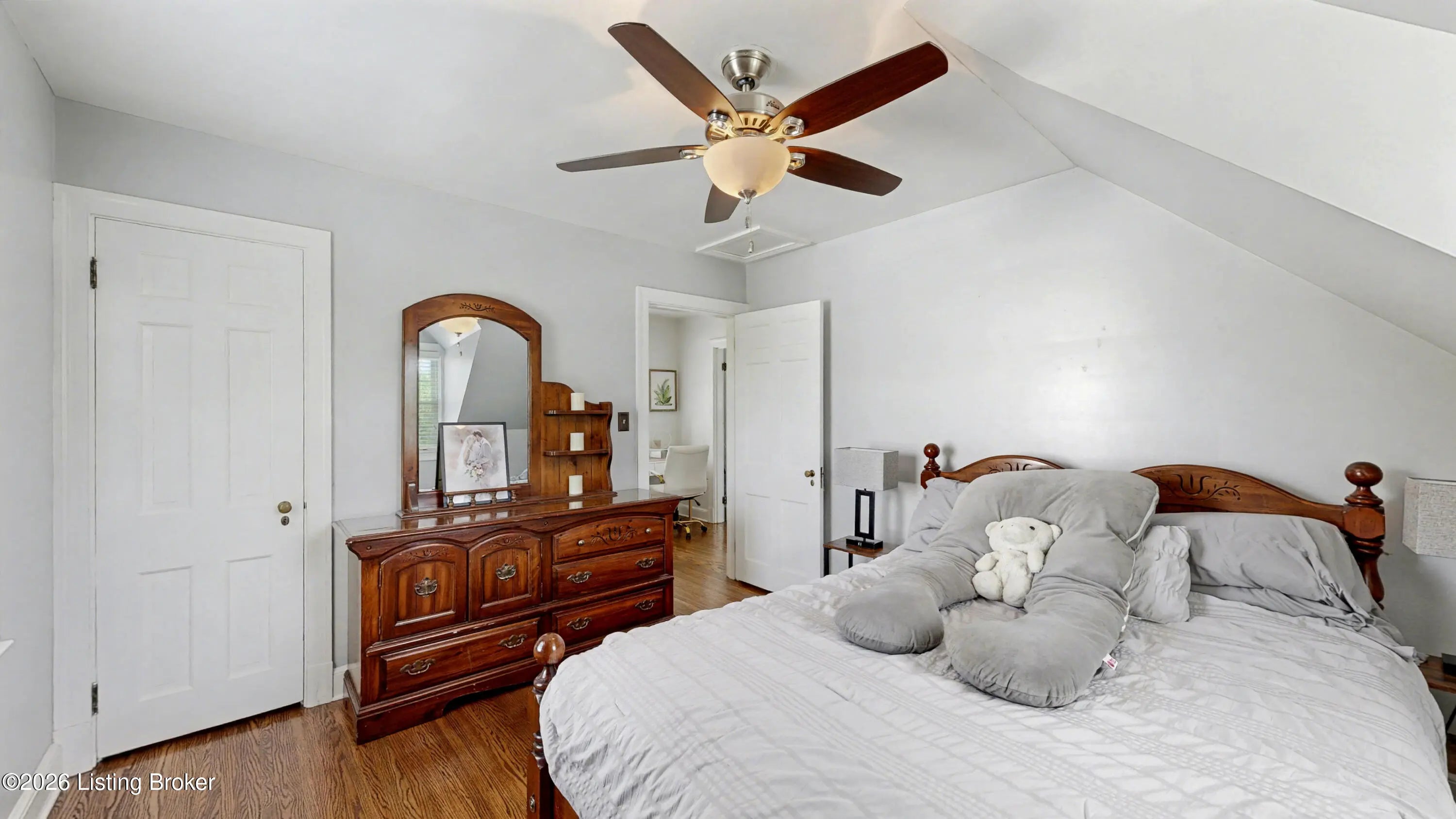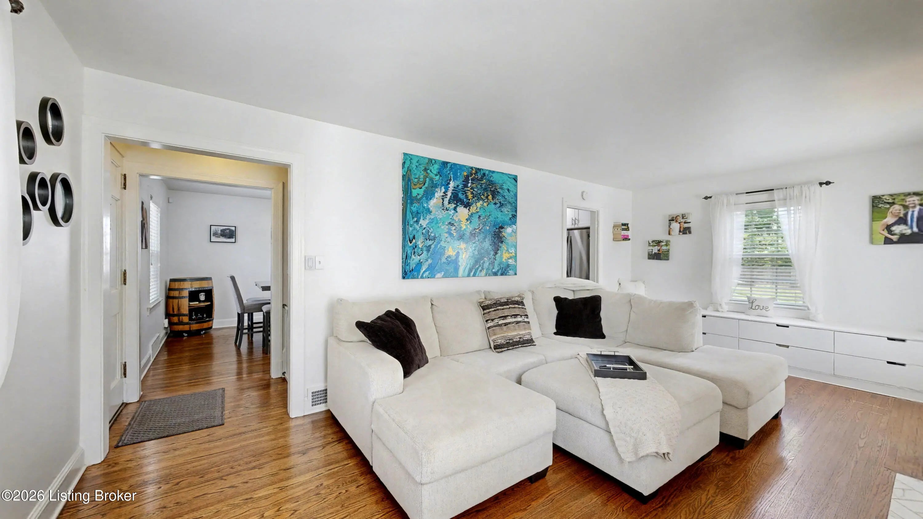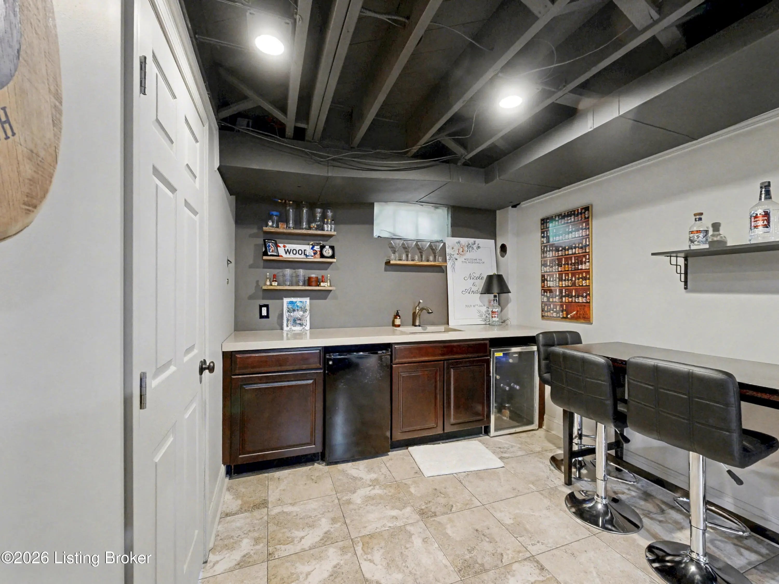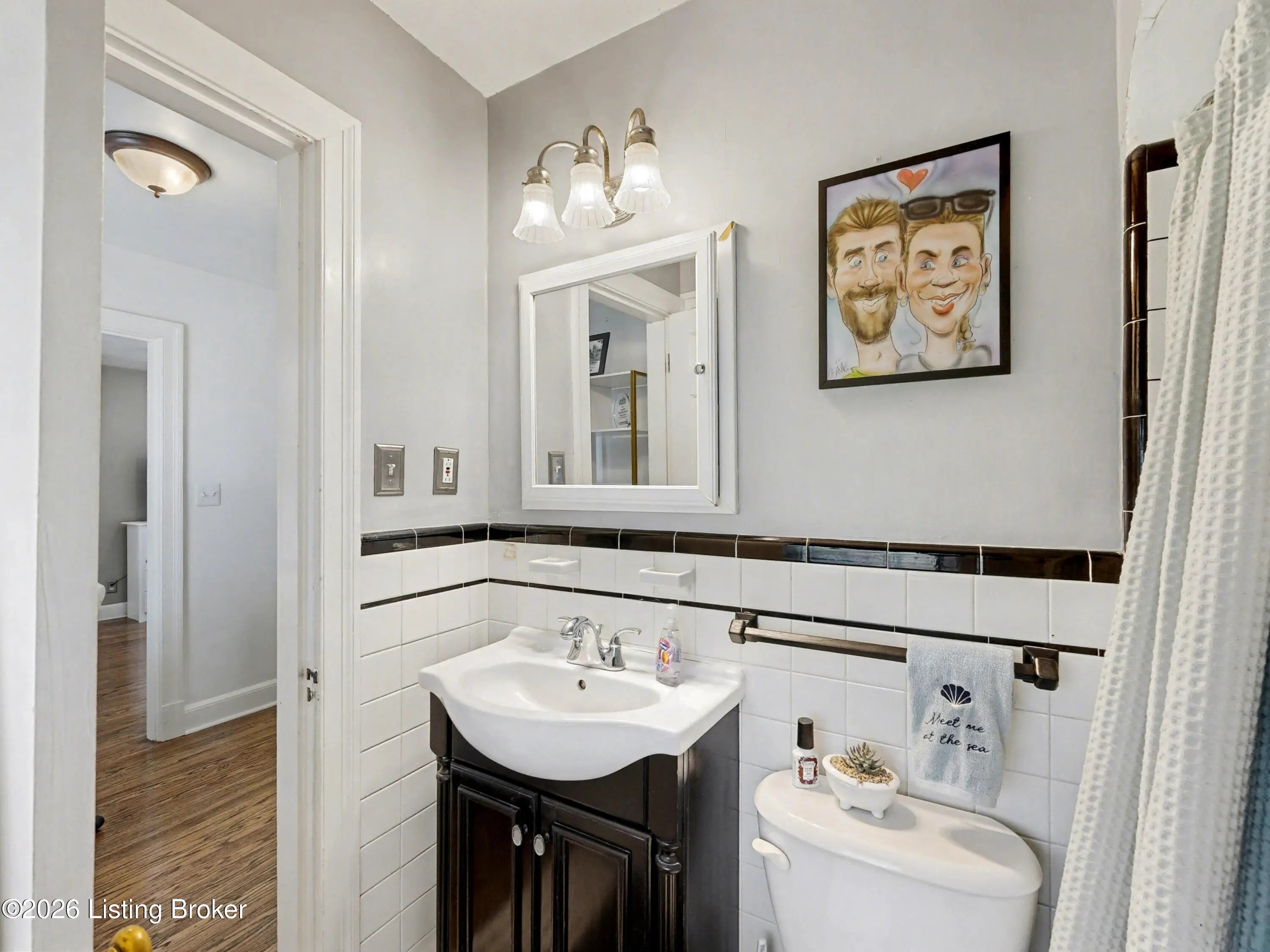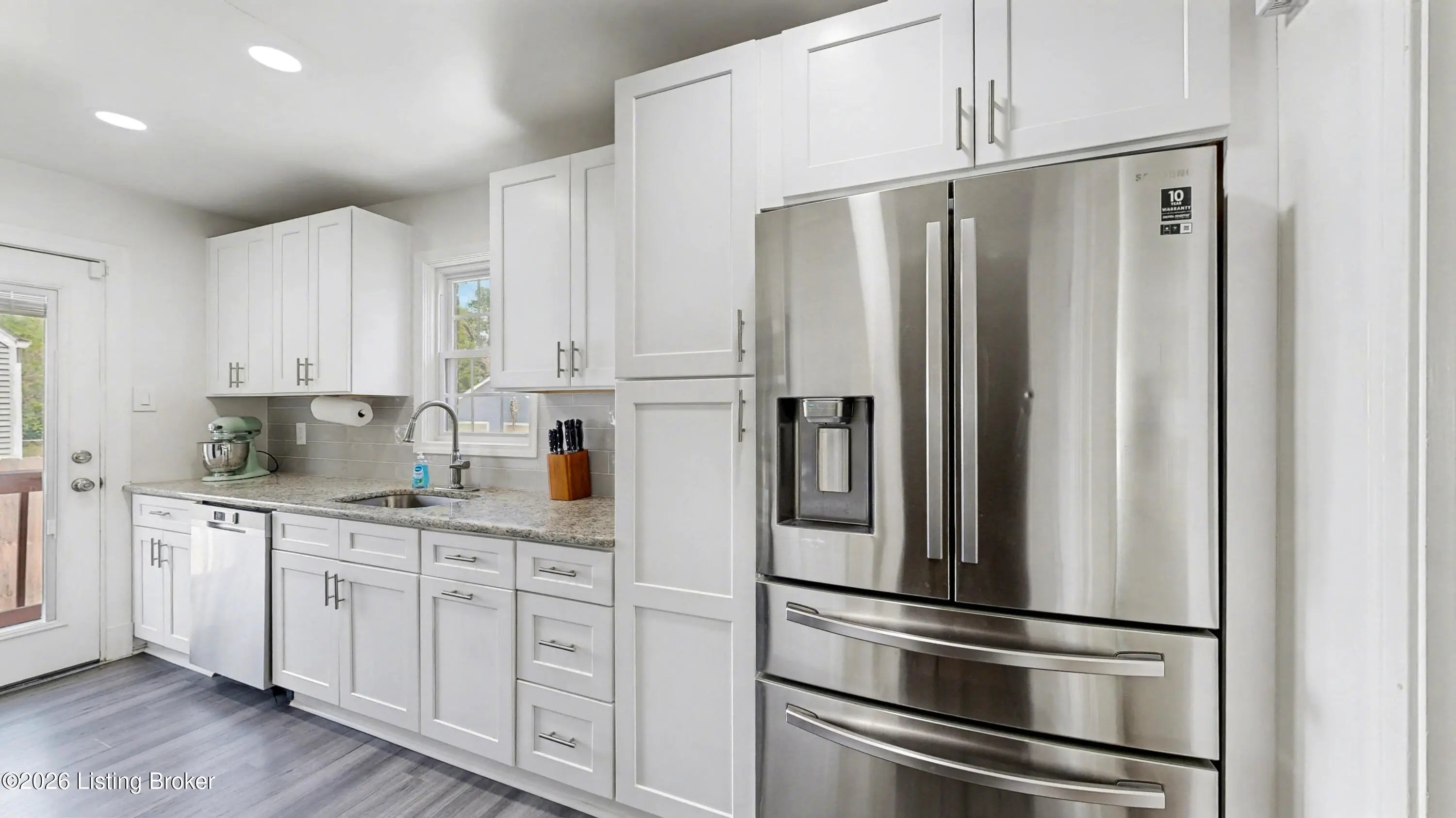 All-Brick Cape Cod on a Dead-End Street in Avondale Tucked into the Avondale pocket of Hikes Point, this all-brick Cape Cod sits back from a quiet dead-end street on one of the section's larger homesites. The curb appeal is the real thing: classic dormers, a brick chimney, mature landscaping, and a red front door that tells you exactly what kind of home this is. Inside, the living room anchors on an original white mantel with a marble-tiled firebox and herringbone hearth, flanked by windows that pull light across the hardwood floors. The remodeled kitchen is the showpiece: white shaker cabinetry, granite counters, a gray subway tile backsplash, stainless appliances including a Samsung French-door refrigerator, and a rear door that opens straight to the deck. The dining room sits just off the kitchen with its original hardwoods intact. Upstairs, two bedrooms stretch the full length of the home under dormered ceilings, both with hardwood floors and ceiling fans. The second-floor full bath preserves its period black-and-white tile, a detail you cannot reproduce. The finished basement adds real square footage: a rec room with a shiplap accent wall and barn door, a built-in wet bar with a wine fridge, plus a half bath. Out back, the grilling deck overlooks a yard enclosed by a new $25,000 privacy fence. A one-car detached garage adds covered parking and storage. Recent mechanicals are handled: furnace installed February 2026.