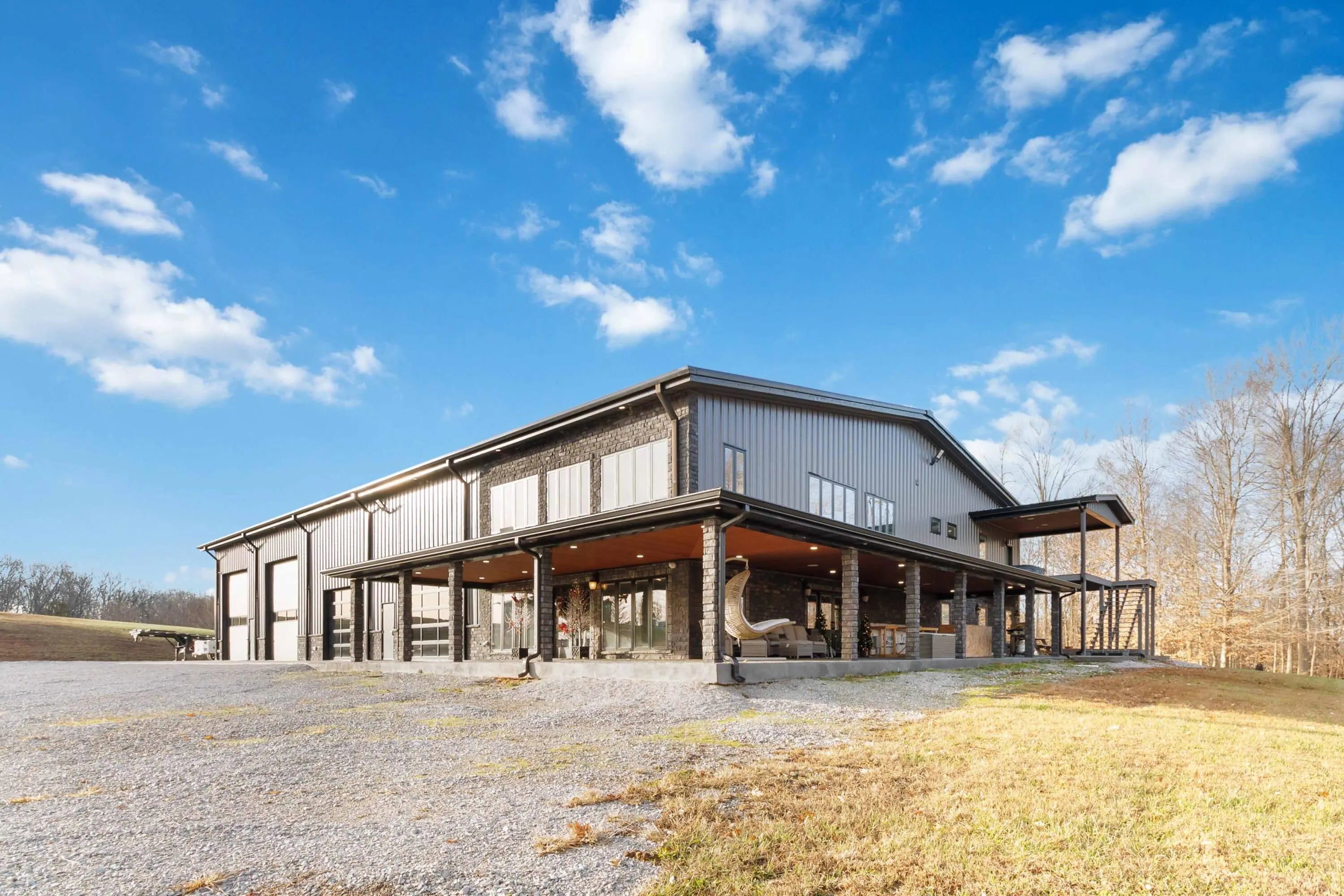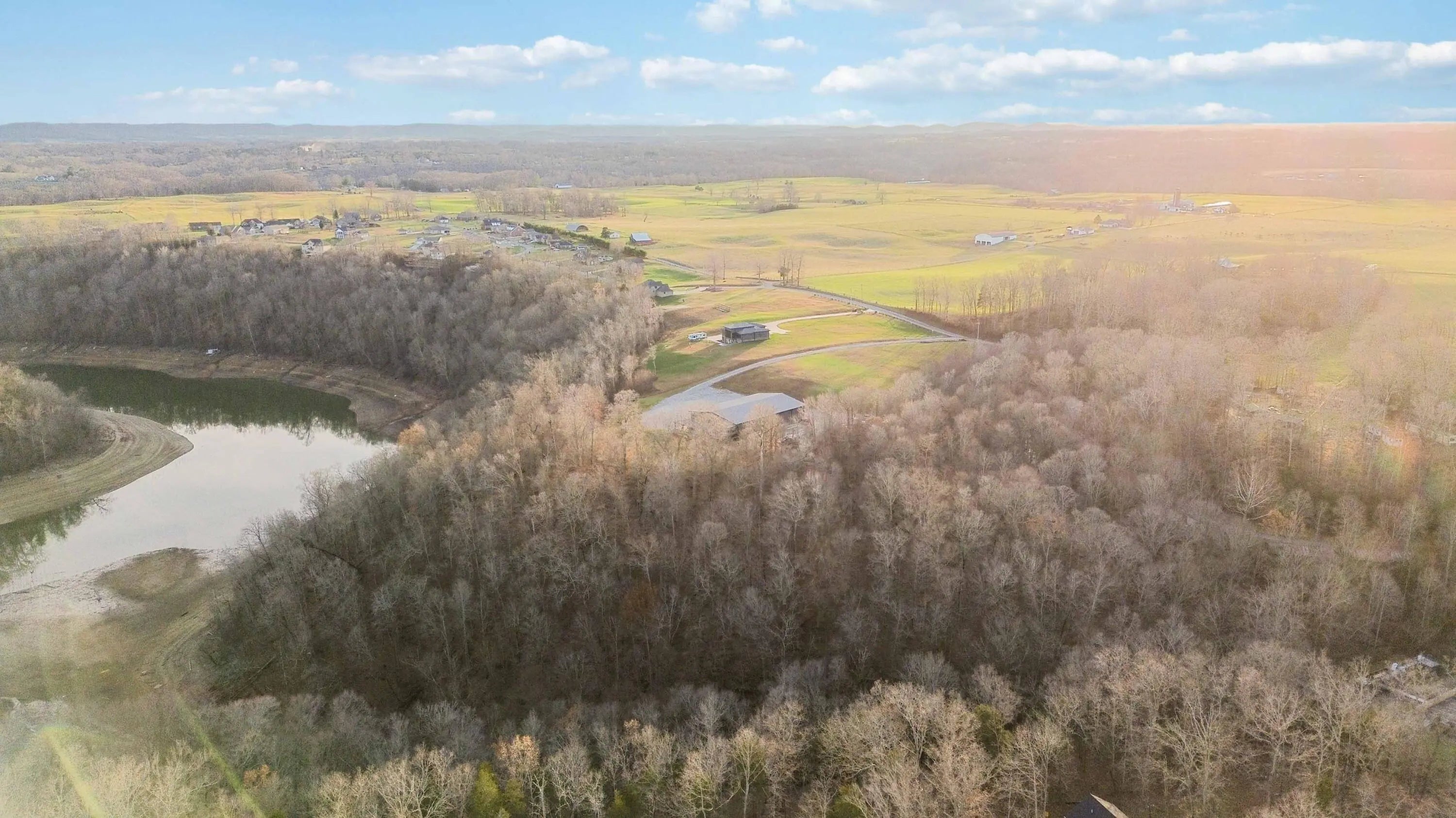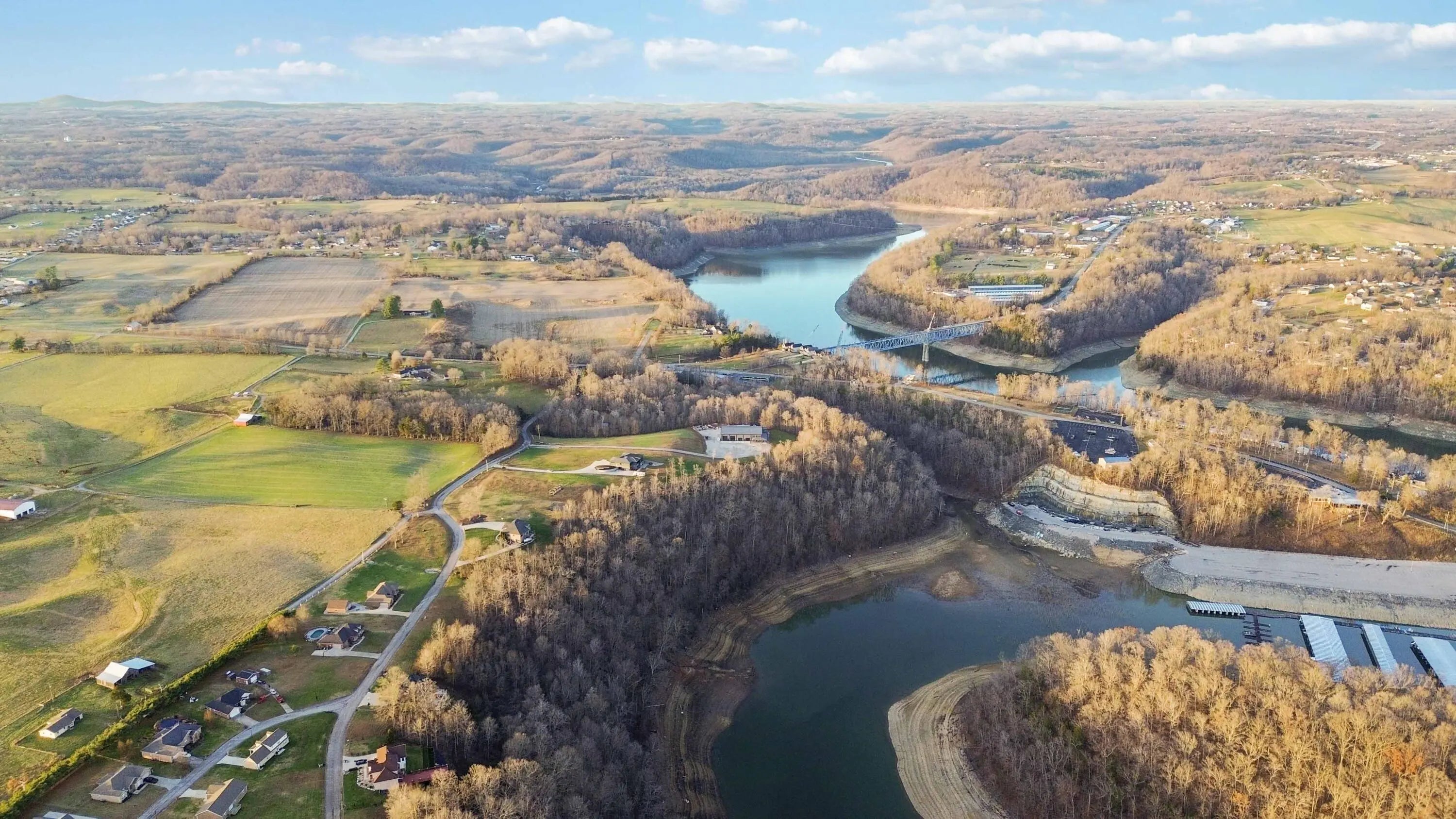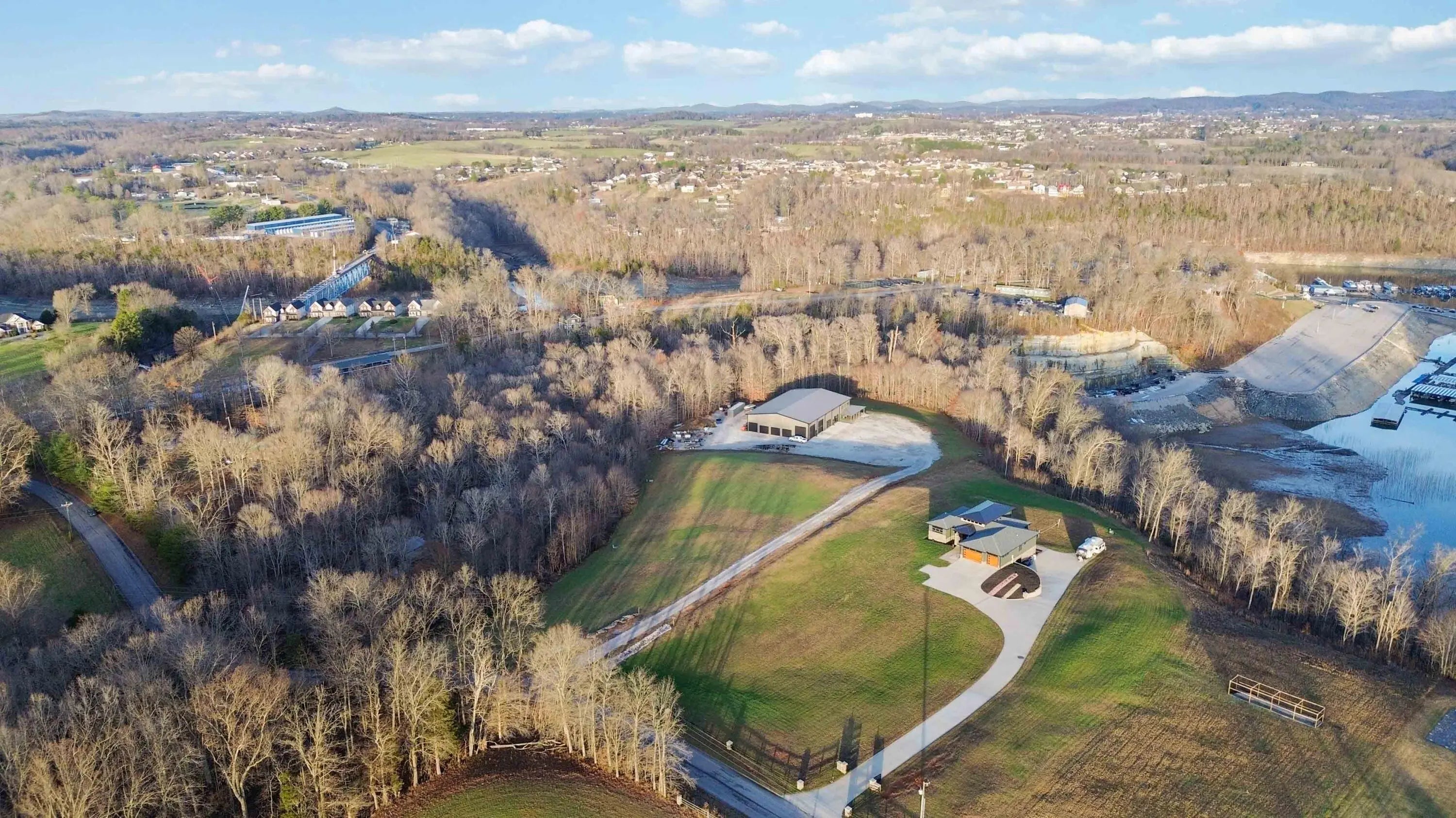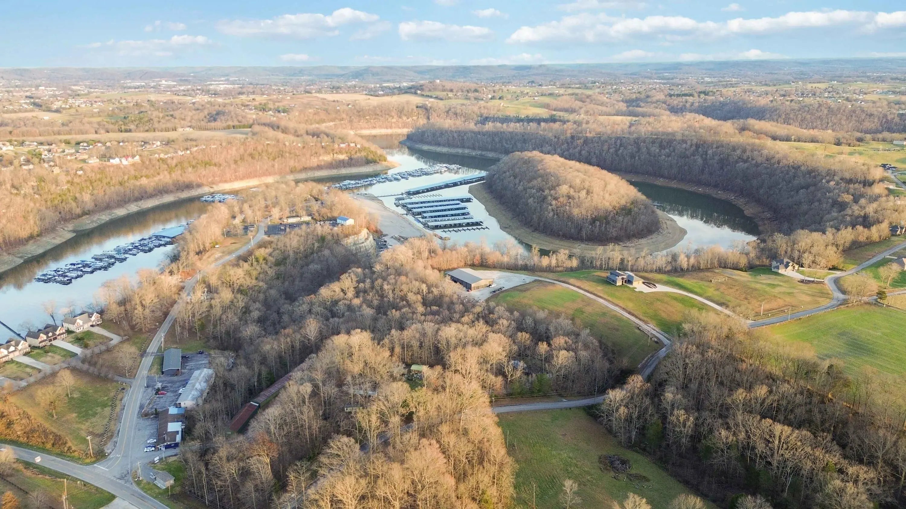Escape to paradise, with this stunning barn dominium on 5+ serene acres. Surrounded by a creek on one side & convenience to Lake Cumberland on the other. Built in 2020, this 4bed, 3.5bath home features 22ft ceilings upon entry, imported marble floors throughout, a grand stone fireplace, dream kitchen with solid marble countertops, custom cabinetry, double oven, hideaway fridge, & induction cooktop. The app-controlled surround stereo system fills the home with your favorite music. Upstairs offers 9 ft ceilings & heated floors. The massive primary suite open to a 20x30 composite deck, spa-like bath with double rain-tree showers, double vanities, a soaking tub, plus a massive walk-in closet with additional washer and dryer. The 7,000 sq ft garage is a masterpiece of its own, perfect for cars,boats and other recreational vehichicles with 11 garage door for easy access. It's also insulated and heated with sealed concrete floors and custom shelving. Convenient golf cart access to Lee's Ford Marina offers a perfect day on the lake. This property is designed for those who appreciate luxury, functionality, lots of wildlife in a tranquill setting. Additional lots available for purchase
