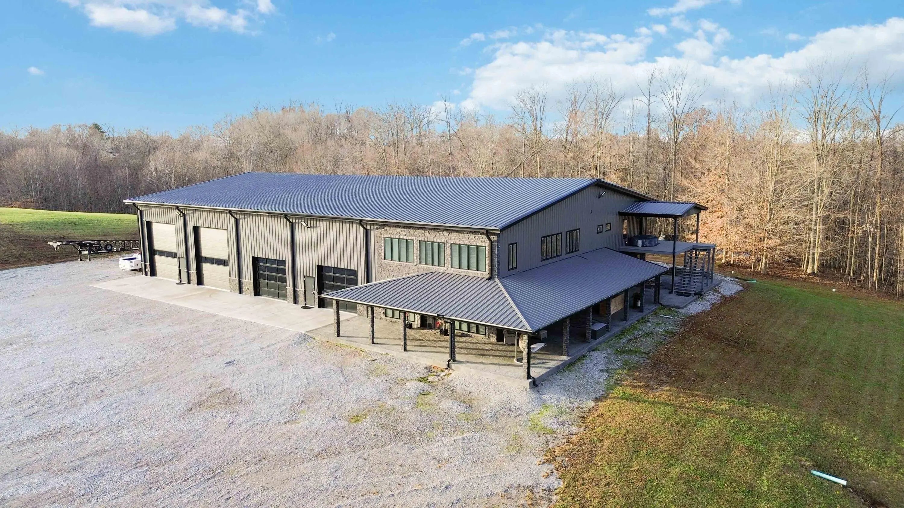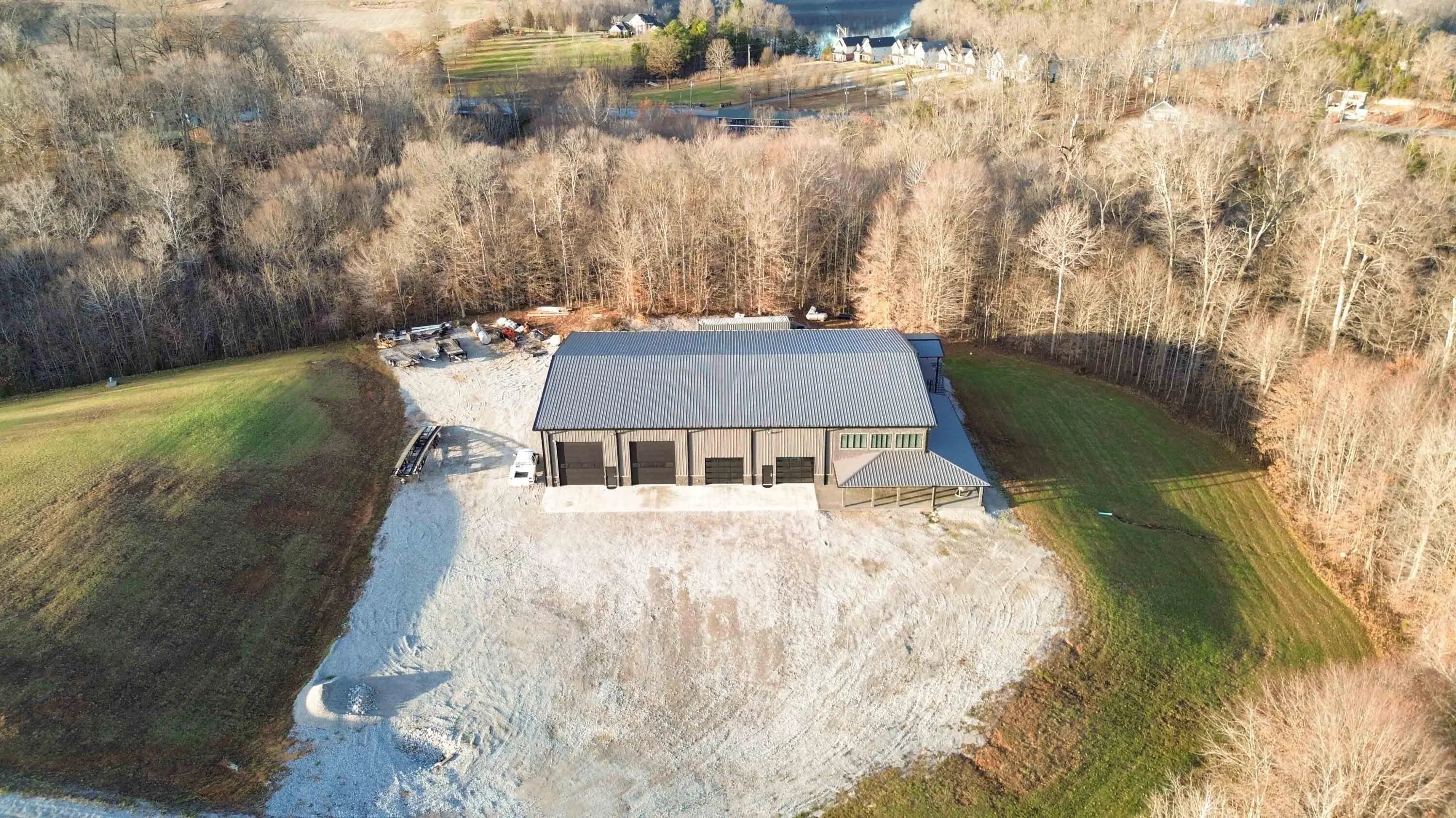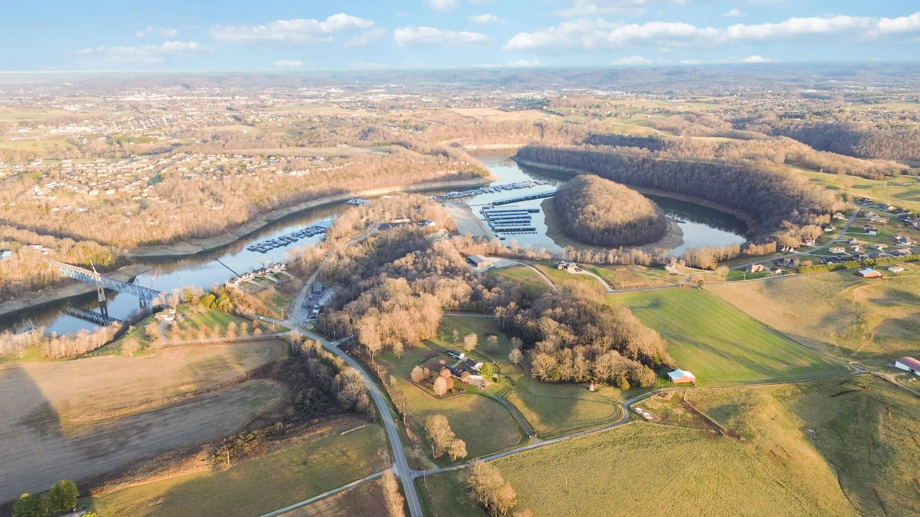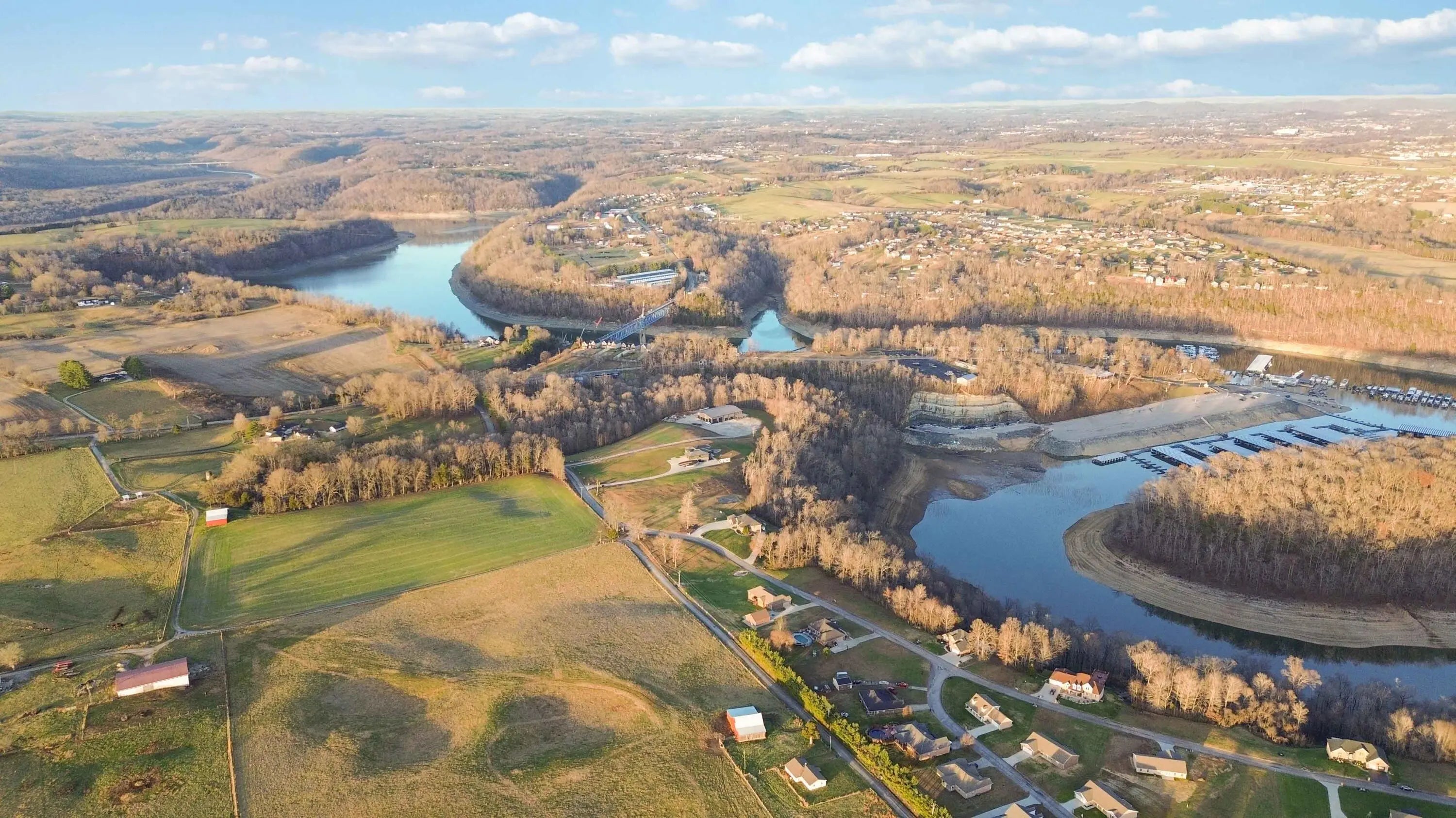Escape to paradise, with this stunning barn dominium on 5+ serene acres. Surrounded by a creek on one side & convenience to Lake Cumberland on the other. Built in 2020, this 4bed, 3.5bath home features 22ft ceilings upon entry, imported marble floors throughout, a grand stone fireplace, dream kitchen with solid marble countertops, custom cabinetry, double oven, hideaway fridge, & induction cooktop. The app-controlled surround stereo system fills the home with your favorite music. Upstairs offers 9 ft ceilings & heated floors. The massive primary suite open to a 20x30 composite deck, spa-like bath with double rain-tree showers, double vanities, a soaking tub, plus a massive walk-in closet with additional washer and dryer. The 7,000 sq ft garage is a masterpiece of its own, perfect for cars,boats and other recreational vehichicles with 11 garage door for easy access. It's also insulated and heated with sealed concrete floors and custom shelving. Convenient golf cart access to Lee's Ford Marina offers a perfect day on the lake. This property is designed for those who appreciate luxury, functionality, lots of wildlife in a tranquill setting. Additional lots available for purchase