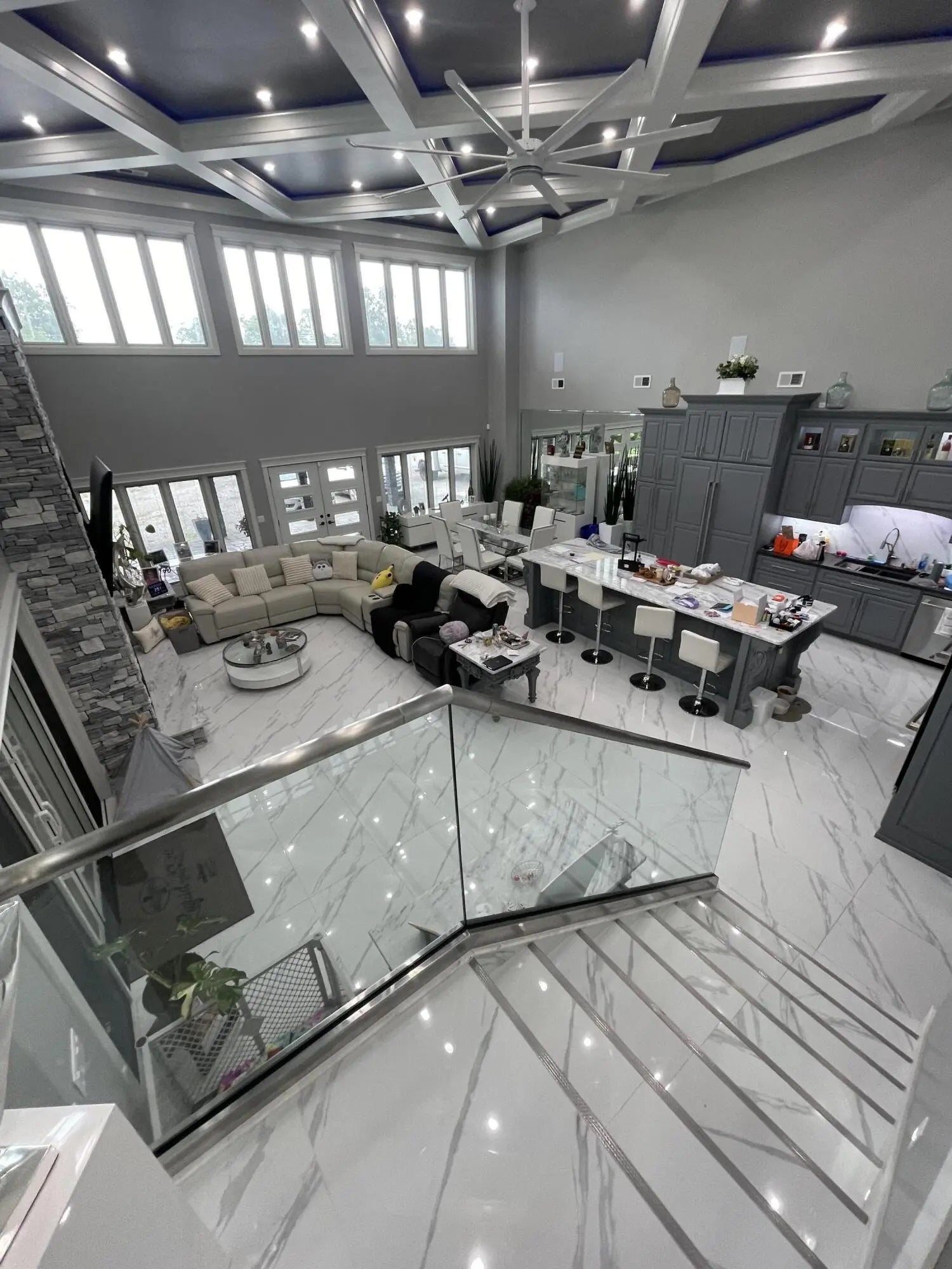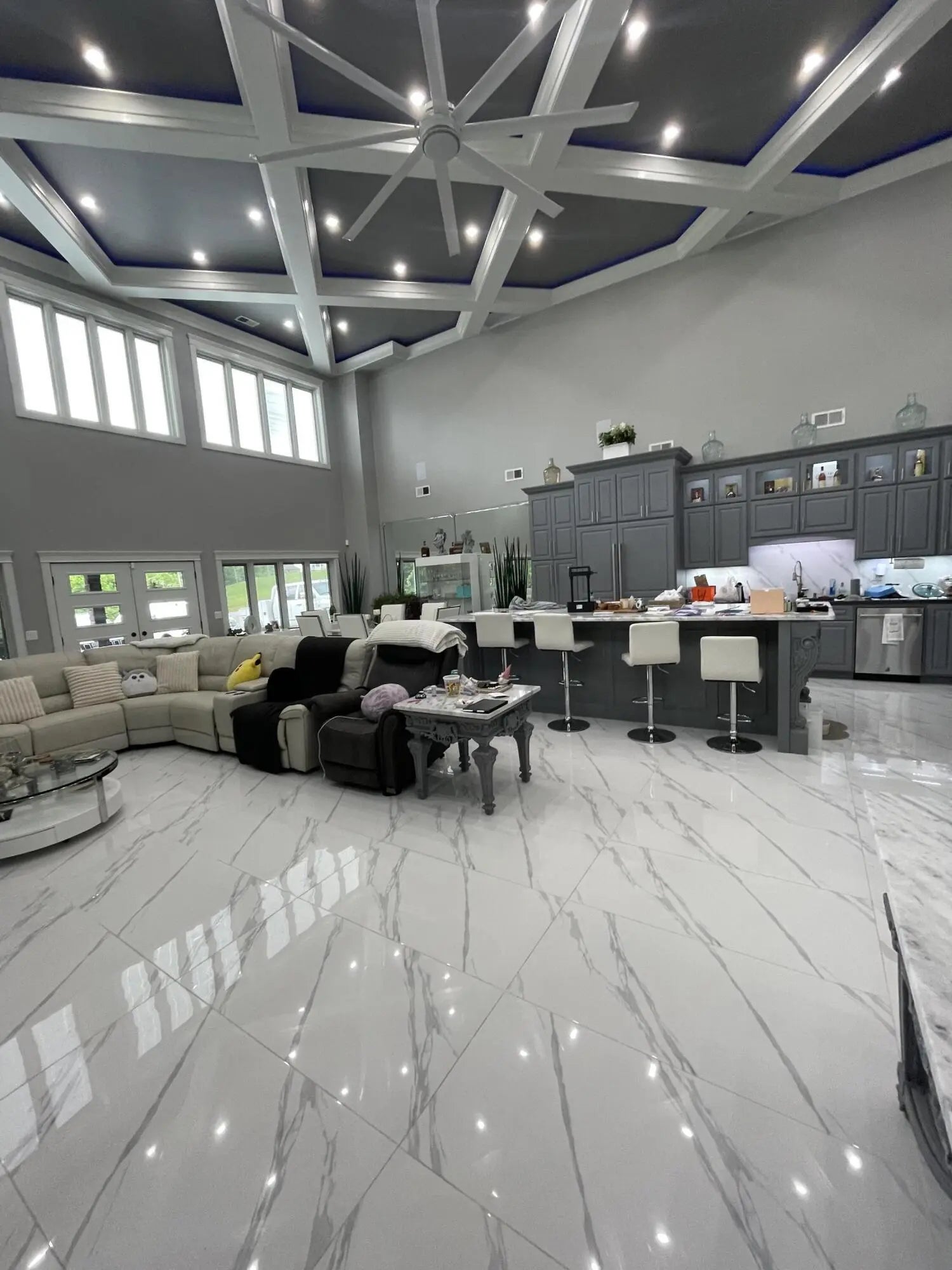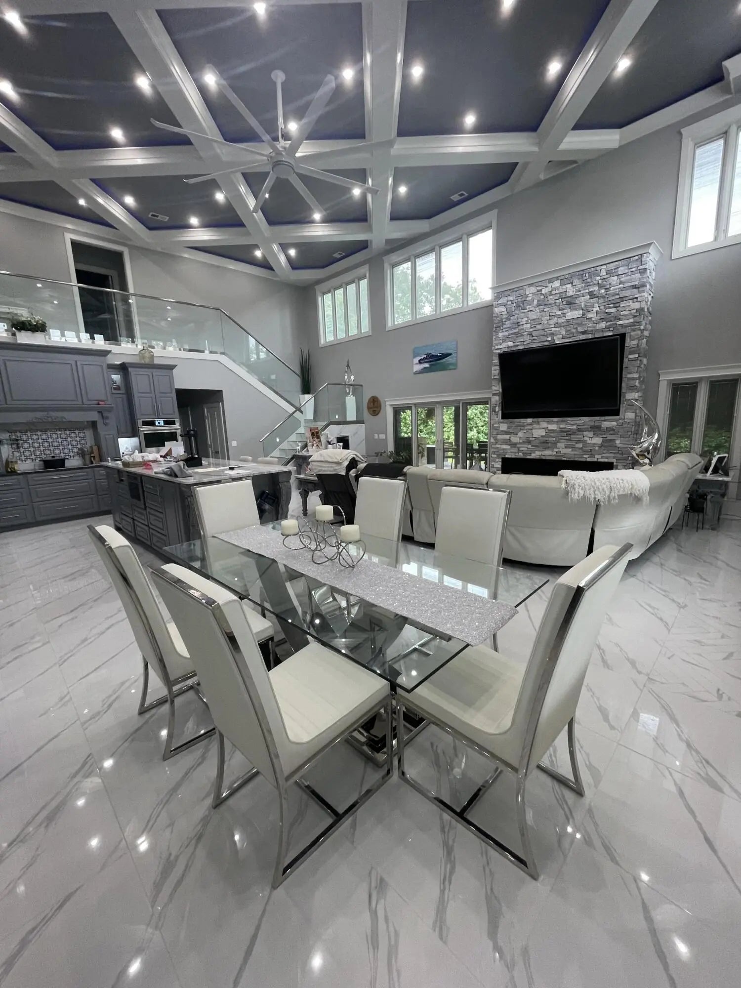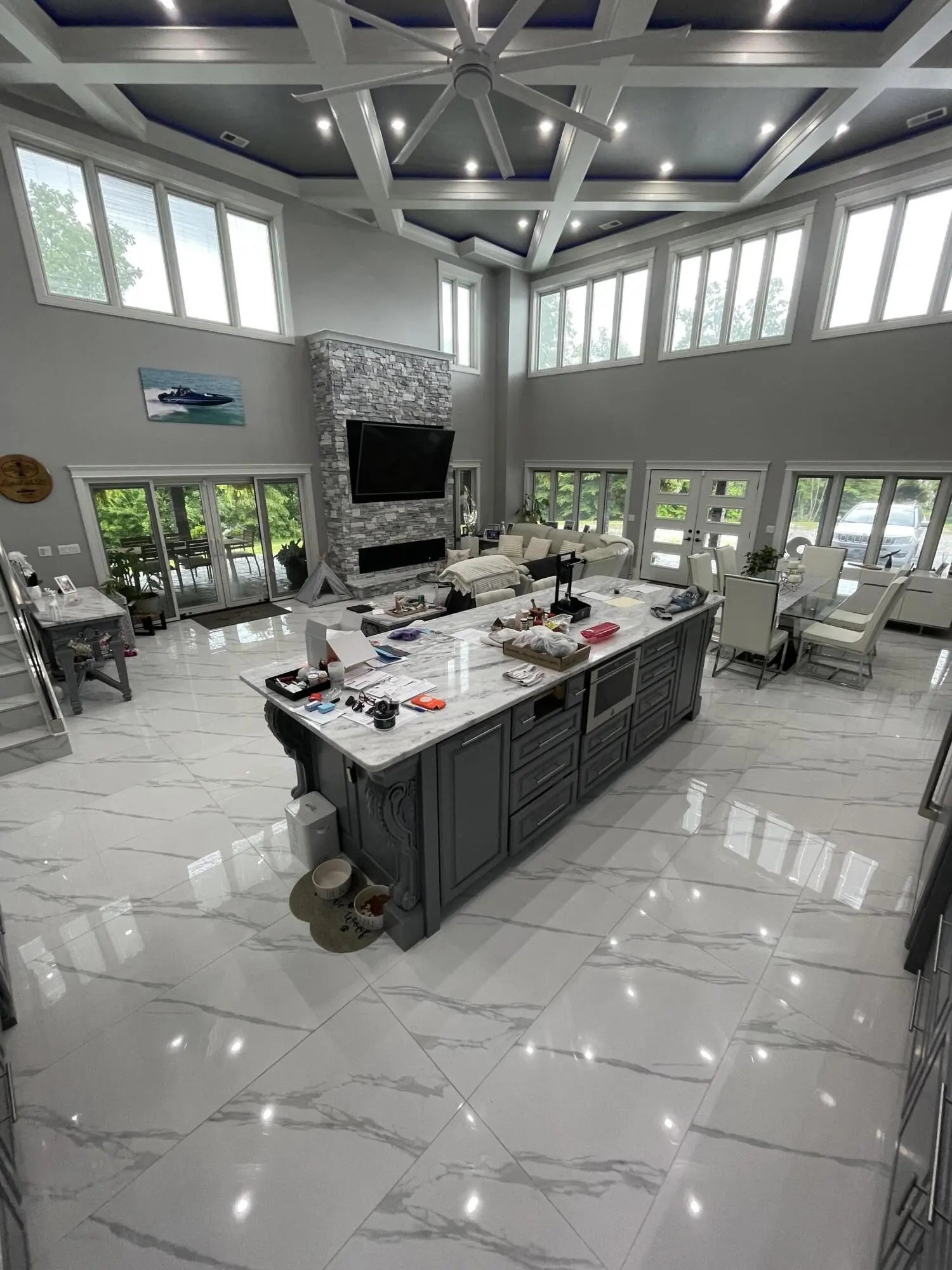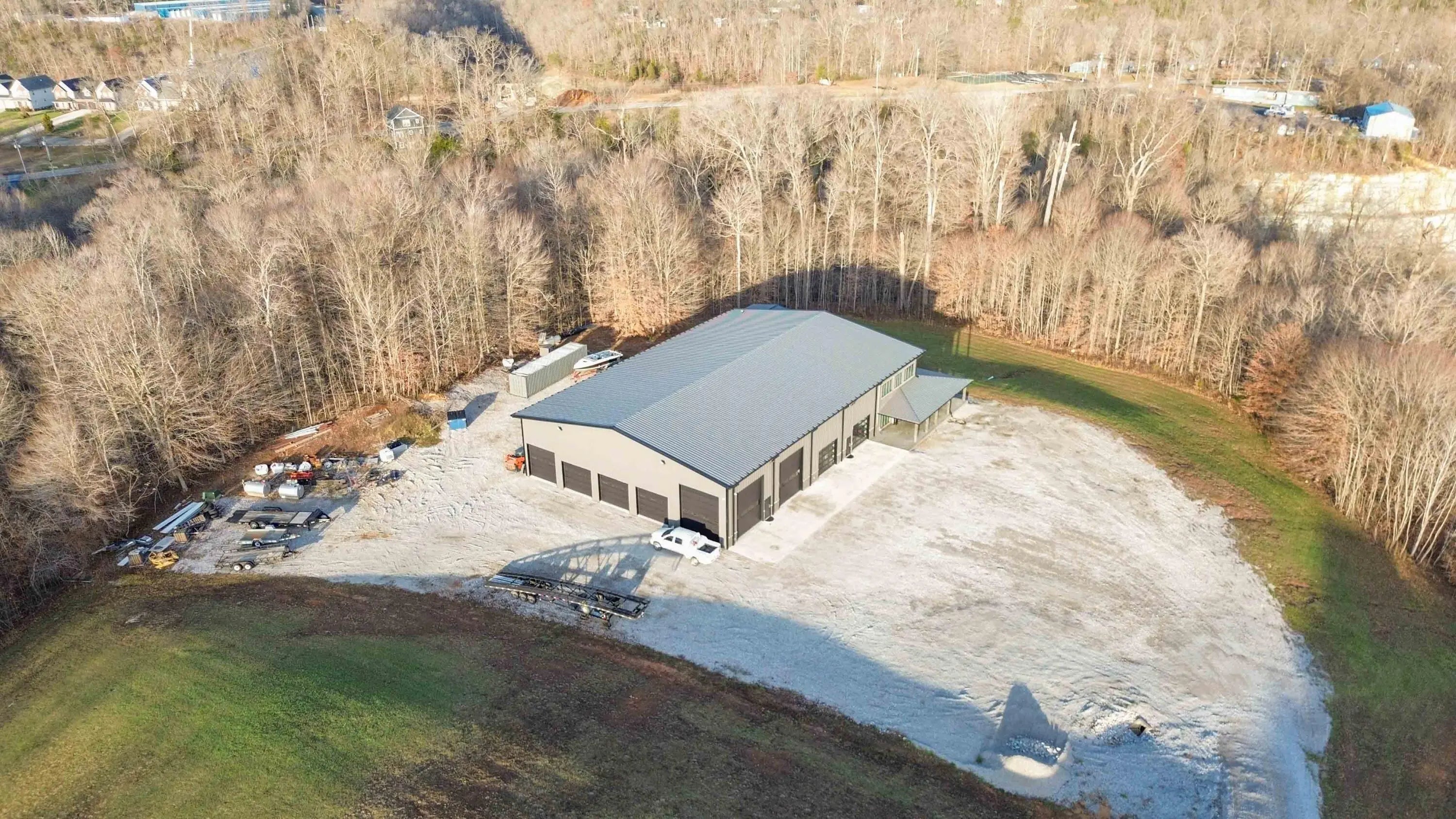 Escape to paradise, with this stunning barn dominium on 5+ serene acres. Surrounded by a creek on one side & convenience to Lake Cumberland on the other. Built in 2020, this 4bed, 3.5bath home features 22ft ceilings upon entry, imported marble floors throughout, a grand stone fireplace, dream kitchen with solid marble countertops, custom cabinetry, double oven, hideaway fridge, & induction cooktop. The app-controlled surround stereo system fills the home with your favorite music. Upstairs offers 9 ft ceilings & heated floors. The massive primary suite open to a 20x30 composite deck, spa-like bath with double rain-tree showers, double vanities, a soaking tub, plus a massive walk-in closet with additional washer and dryer. The 7,000 sq ft garage is a masterpiece of its own, perfect for cars,boats and other recreational vehichicles with 11 garage door for easy access. It's also insulated and heated with sealed concrete floors and custom shelving. Convenient golf cart access to Lee's Ford Marina offers a perfect day on the lake. This property is designed for those who appreciate luxury, functionality, lots of wildlife in a tranquill setting. Additional lots available for purchase