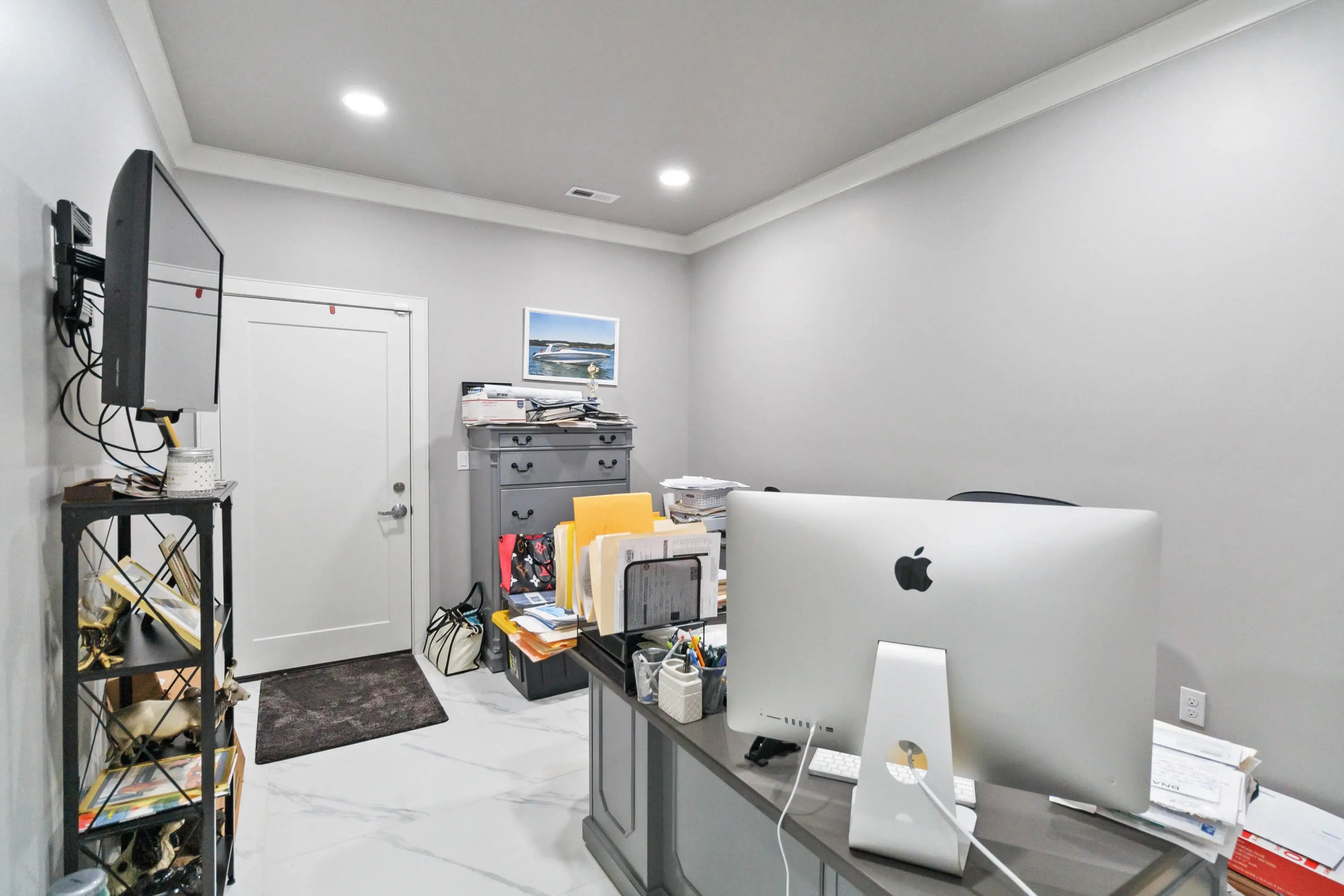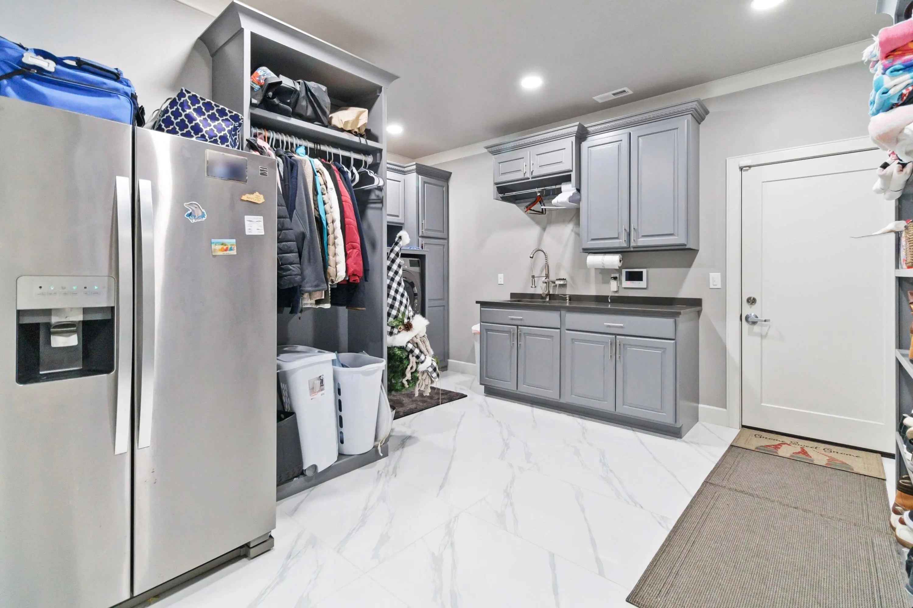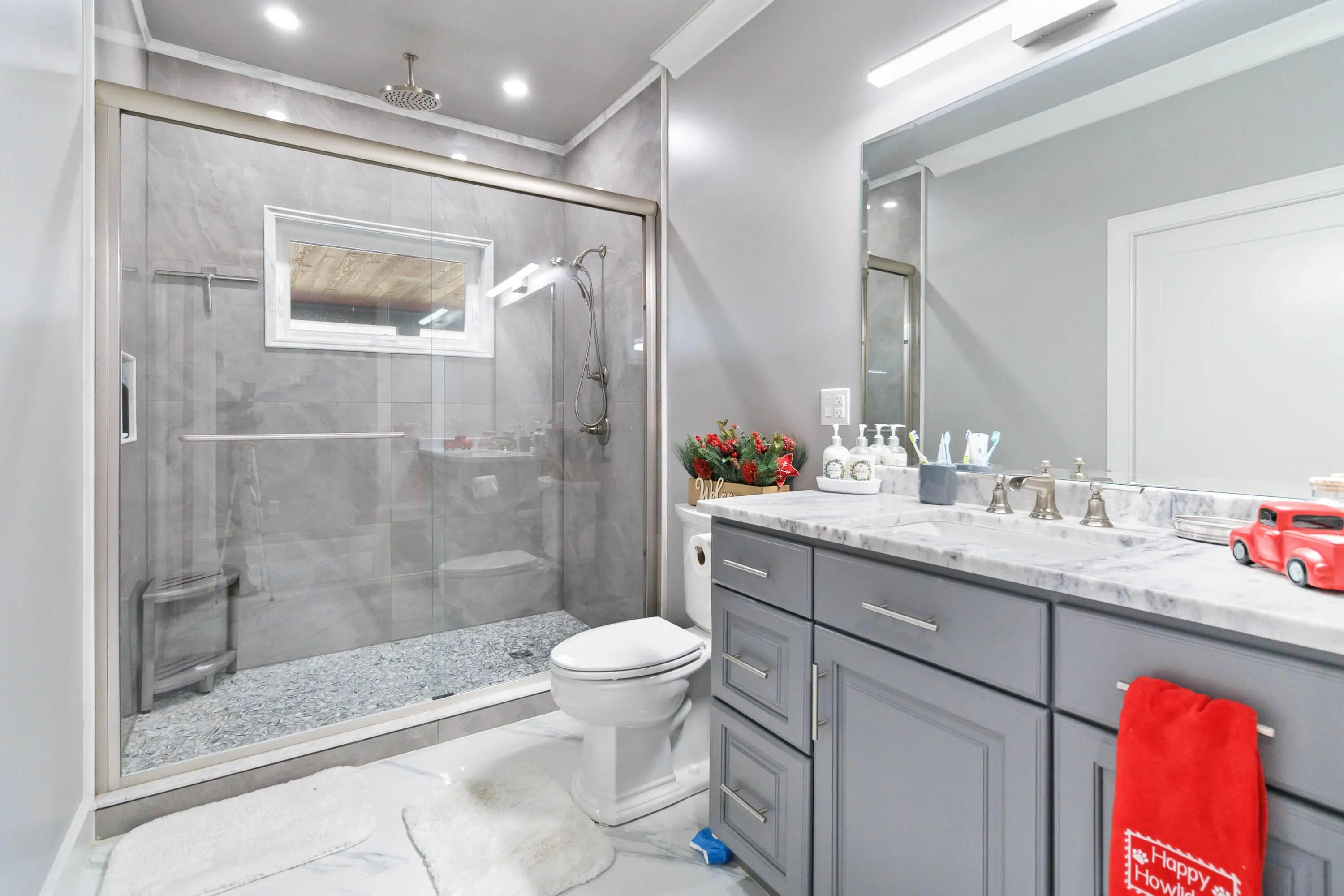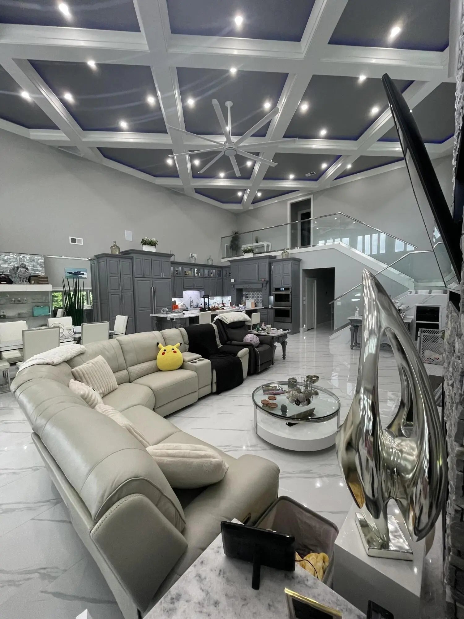 Escape to paradise, with this stunning barn dominium on 5+ serene acres. Surrounded by a creek on one side & convenience to Lake Cumberland on the other. Built in 2020, this 4bed, 3.5bath home features 22ft ceilings upon entry, imported marble floors throughout, a grand stone fireplace, dream kitchen with solid marble countertops, custom cabinetry, double oven, hideaway fridge, & induction cooktop. The app-controlled surround stereo system fills the home with your favorite music. Upstairs offers 9 ft ceilings & heated floors. The massive primary suite open to a 20x30 composite deck, spa-like bath with double rain-tree showers, double vanities, a soaking tub, plus a massive walk-in closet with additional washer and dryer. The 7,000 sq ft garage is a masterpiece of its own, perfect for cars,boats and other recreational vehichicles with 11 garage door for easy access. It's also insulated and heated with sealed concrete floors and custom shelving. Convenient golf cart access to Lee's Ford Marina offers a perfect day on the lake. This property is designed for those who appreciate luxury, functionality, lots of wildlife in a tranquill setting. Additional lots available for purchase