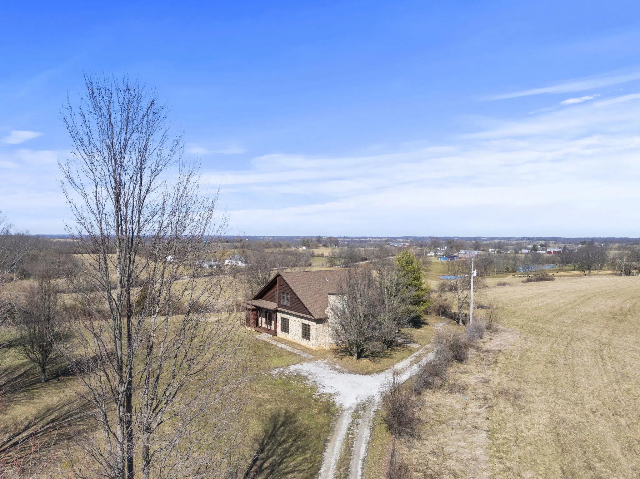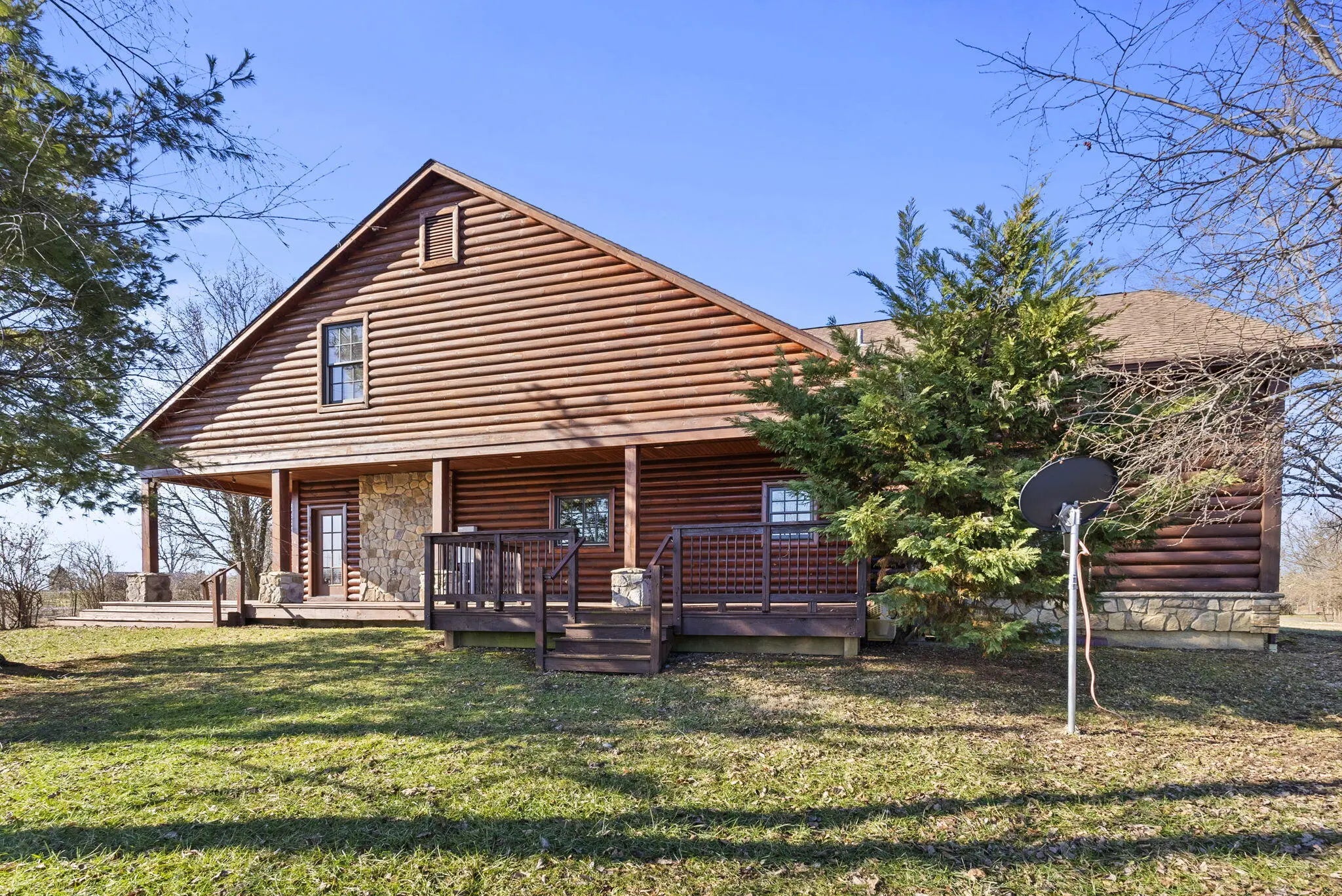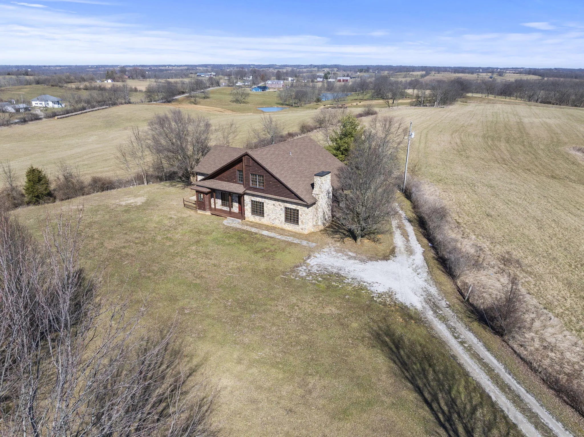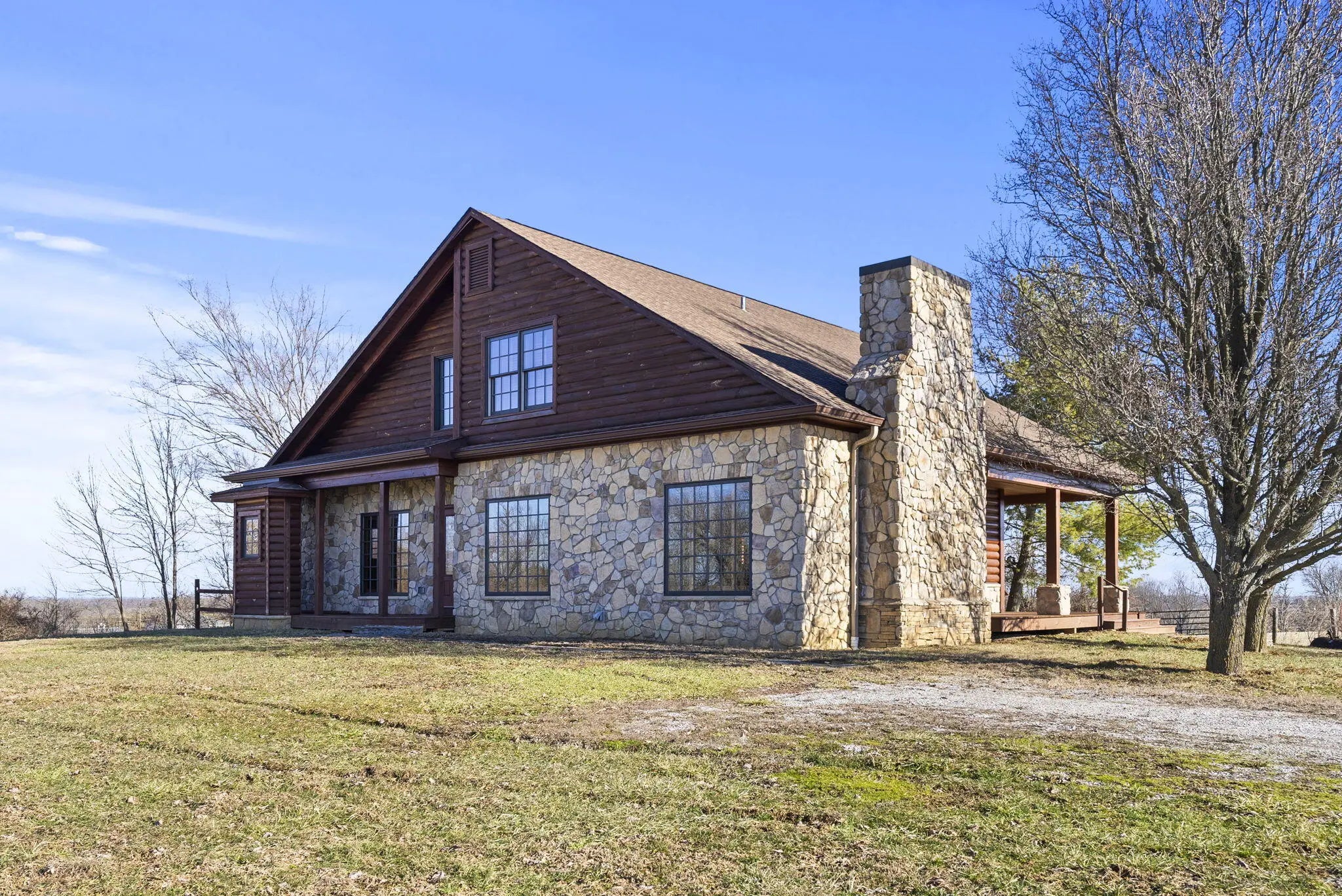 Nestled on 5 acres just outside of town, this stunning property offers the perfect balance of convenience and tranquility. With easy access to local amenities, you'll still enjoy the peaceful, picturesque views of the countryside. Step inside to discover expansive open rooms, ideal for entertaining guests or relaxing in your personal retreat. The custom design features a beautiful blend of rock, wood accents, and a true cabin-like ambiance that creates a warm, inviting atmosphere throughout. The spacious primary bedroom suite is a true sanctuary, complete with a private bathroom and direct access to the back porch for your morning coffee or evening relaxation. The open loft room overlooks the main living area, adding to the home's sense of space and charm. Upstairs, you'll find another generously-sized bedroom and a full bath—perfect for guests or family. Outside, you'll love the expansive back and side decks, perfect for enjoying nature and taking in the serene surroundings.. Though not currently fenced for animals, this property has endless possibilities, whether you're looking to create a mini farm, build your dream landscape, or design the perfect play space for family and friends. There's plenty of room to add a workshop, or whatever you envision for your ideal country lifestyle. Come see this exceptional property today - your dream home awaits!