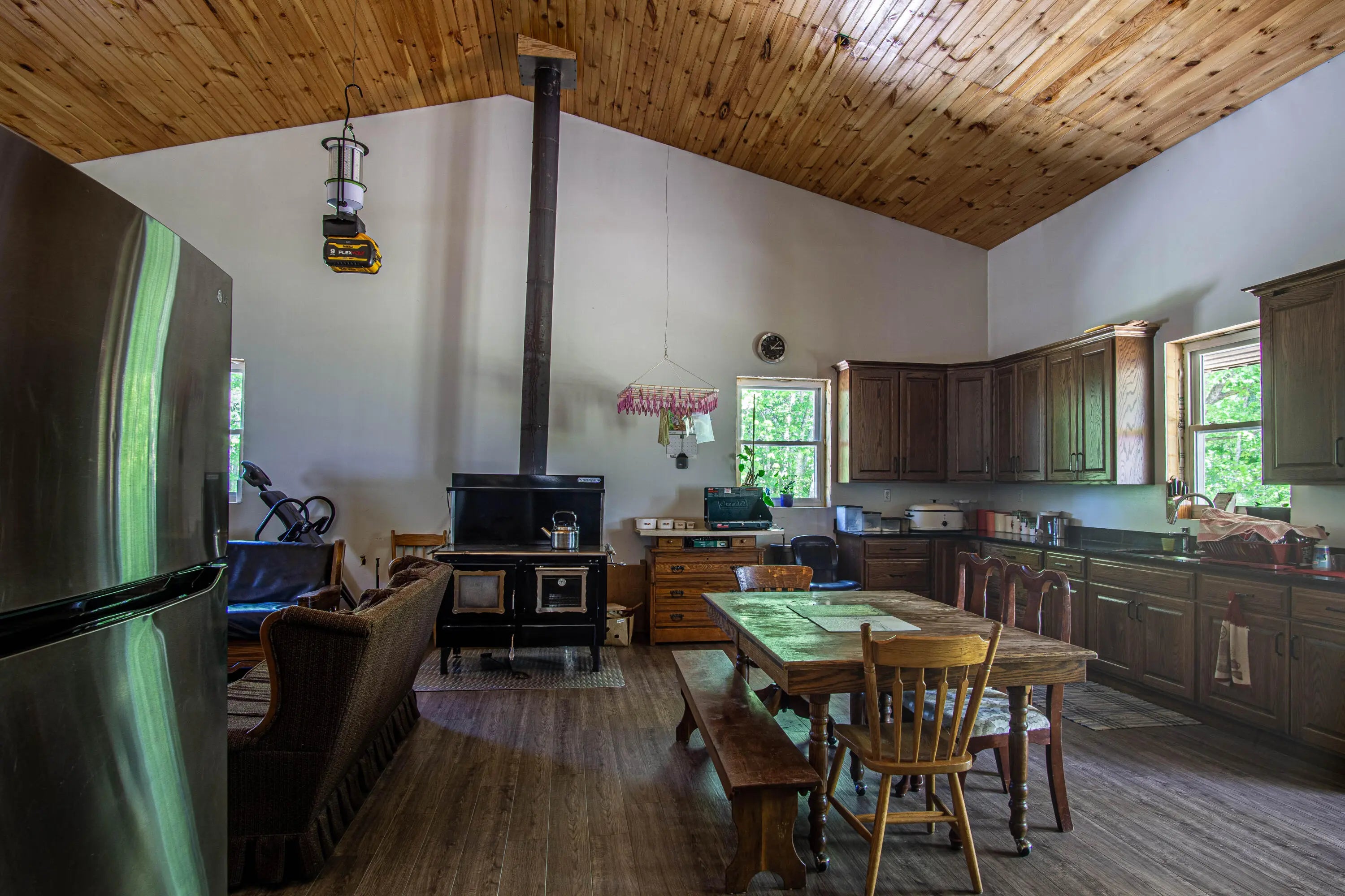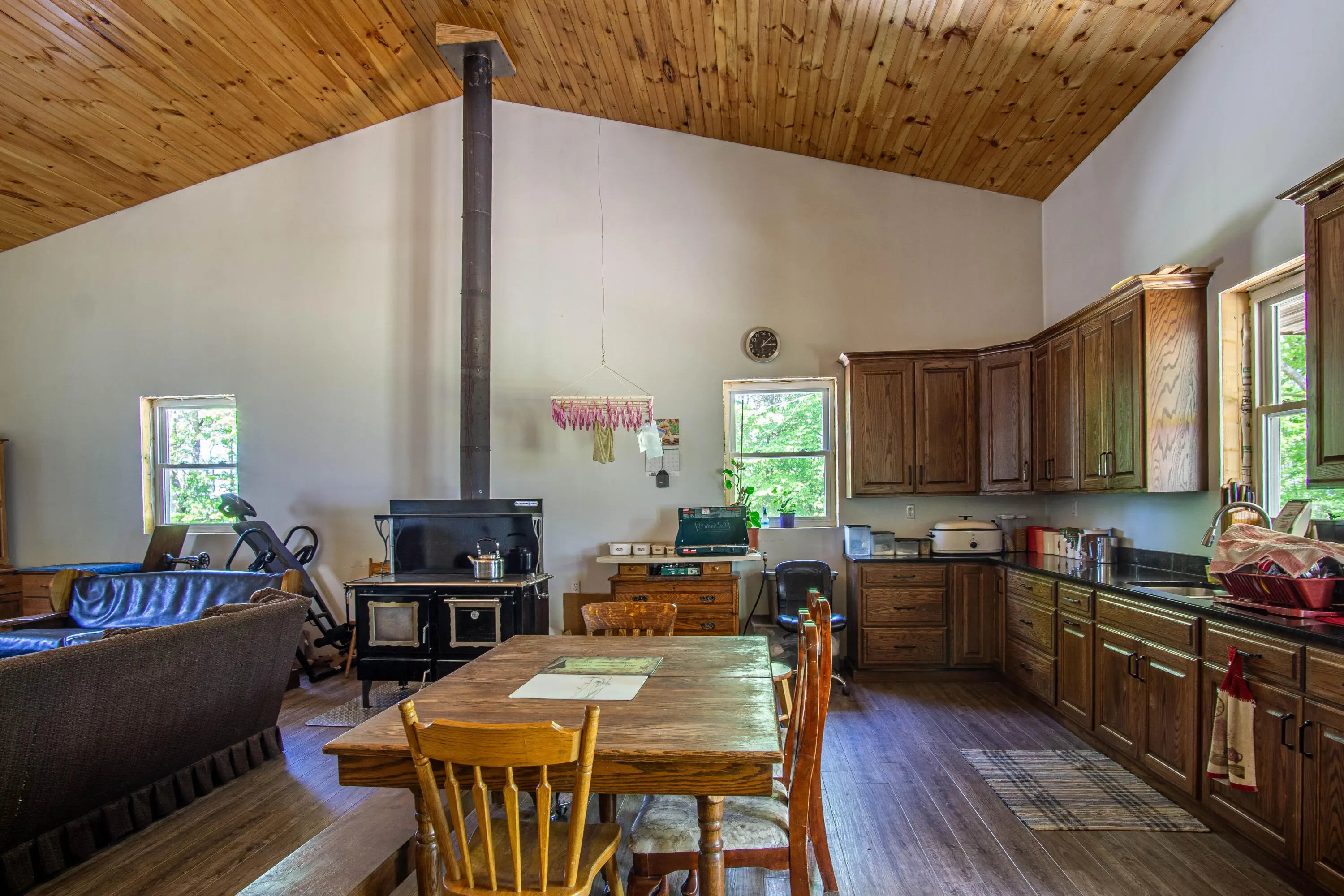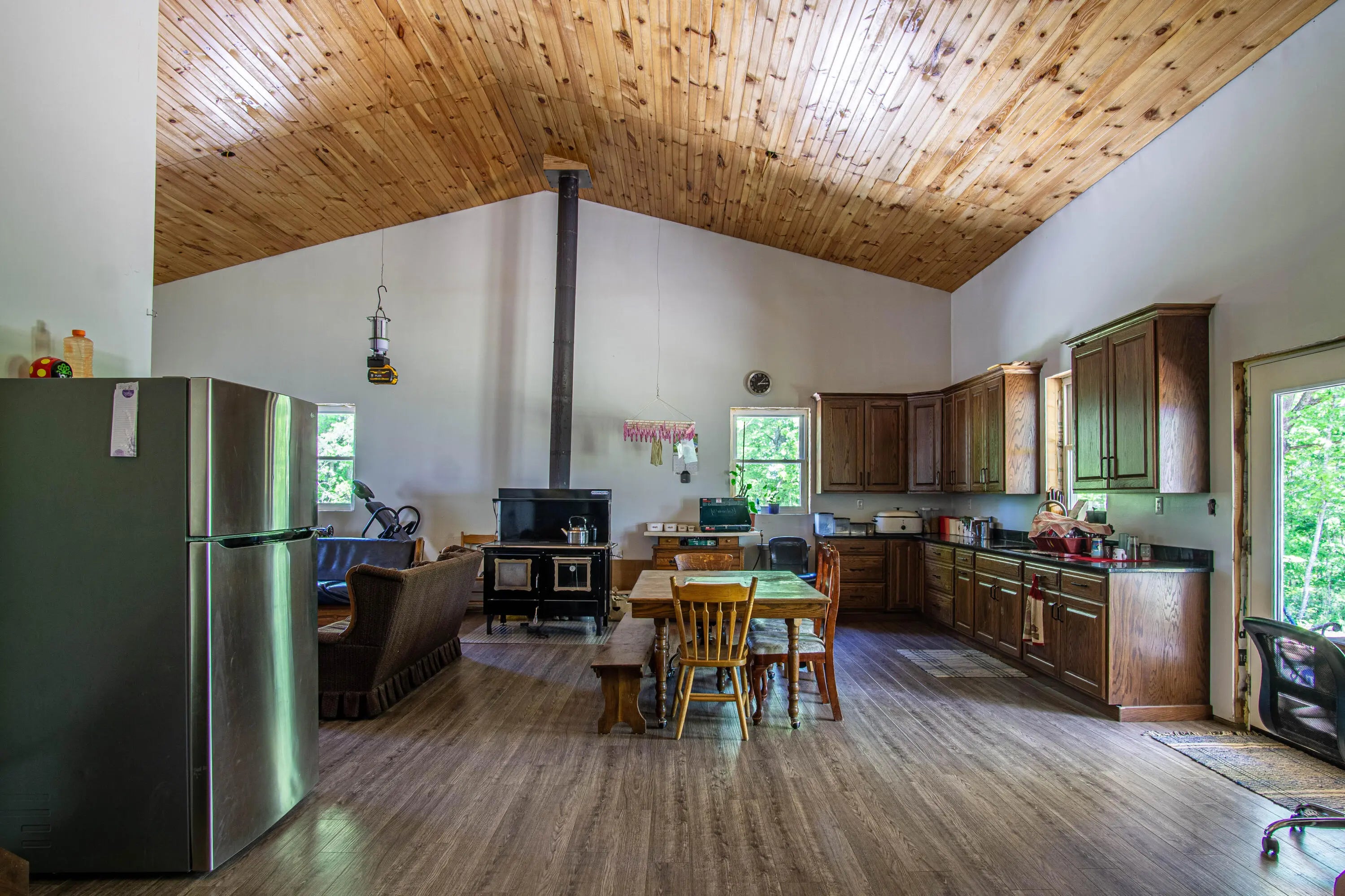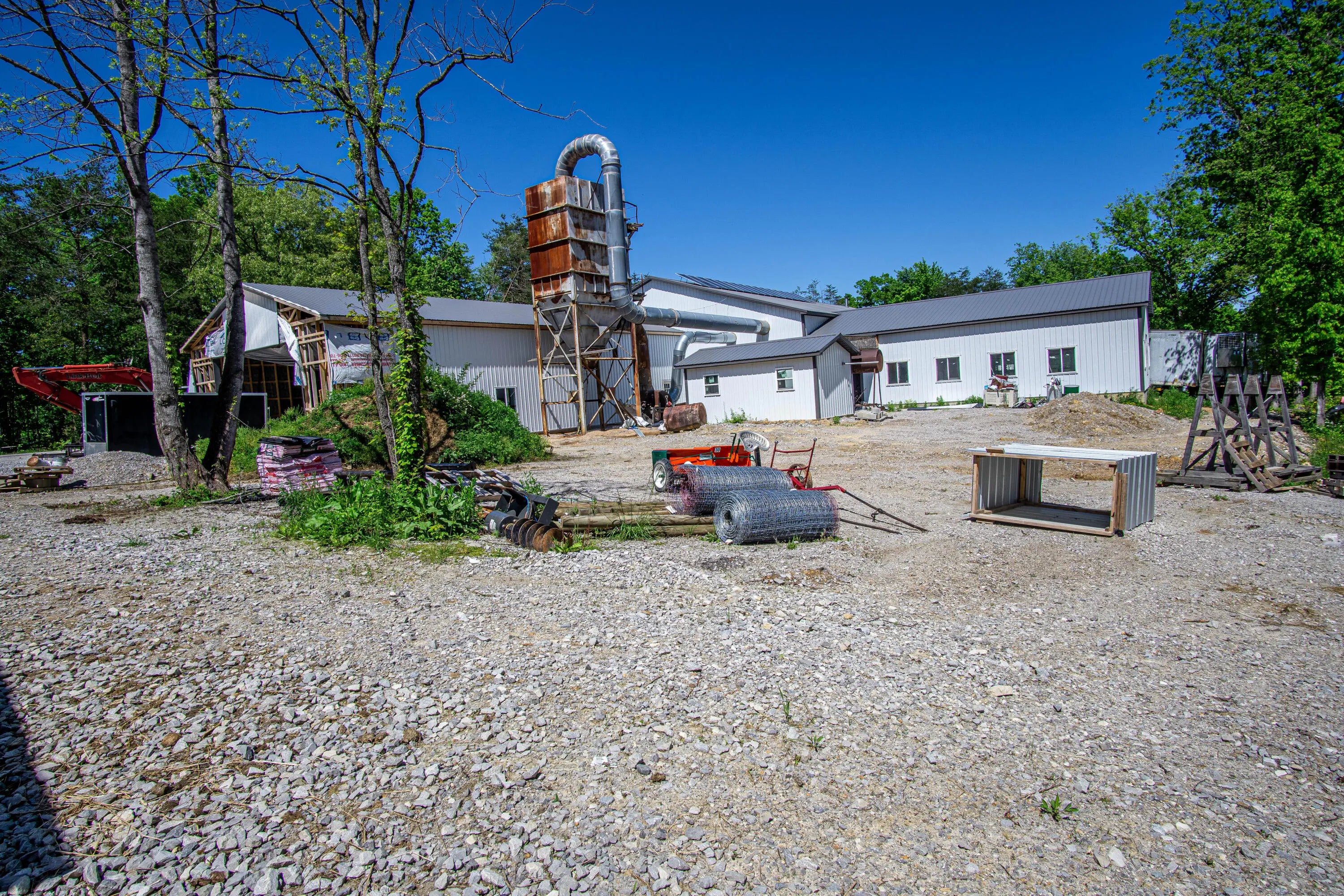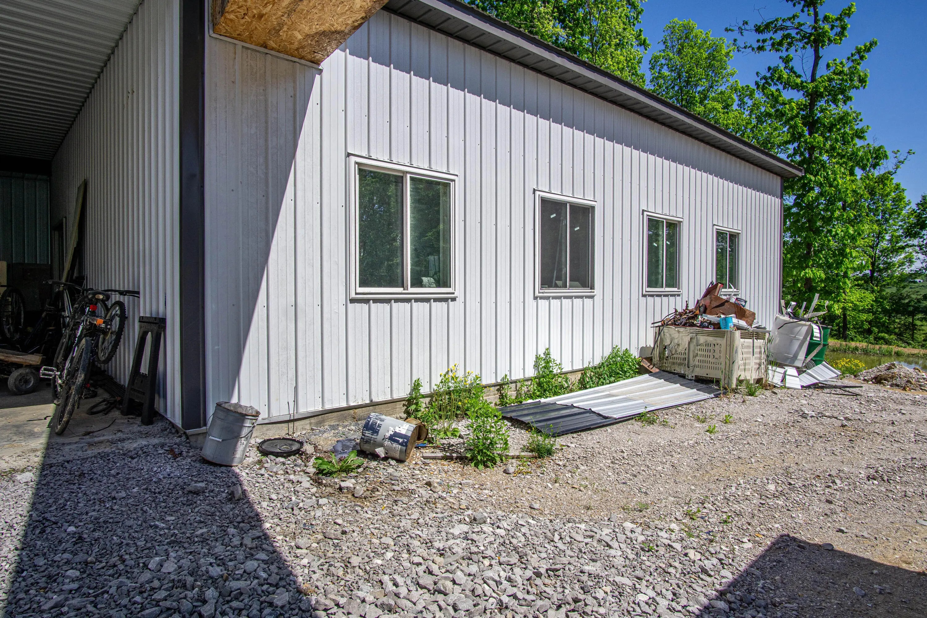 Unlock the potential of this unique and expansive property offering over 11,600 square feet of metal shop space paired with comfortable living quarters all set on 5.66 acres of mostly fenced land with a pond, dedicated deer pen and pasture for horses or cattle. Currently operating as a cabinet shop, this property is fully solar-powered (with traditional electric wiring in place) and multiple 14-foot bay doors, making it ideal for RV storage, semi-truck access, or a wide range of commercial and personal uses. Whether you're looking to continue a light industrial operation, create a storage facility, workshop, or something entirely new — the possibilities here are endless. The attached 1,280 sq ft residence features 2 bedrooms, 1.5 bathrooms, and a loft which could make extra bedroom space, making it perfect for live/work flexibility or onsite management. The property features a barn with several stalls. Whether you're an entrepreneur, hobbyist, or investor this is a rare opportunity to own a multi-functional property that blends work, home, and the great outdoors.