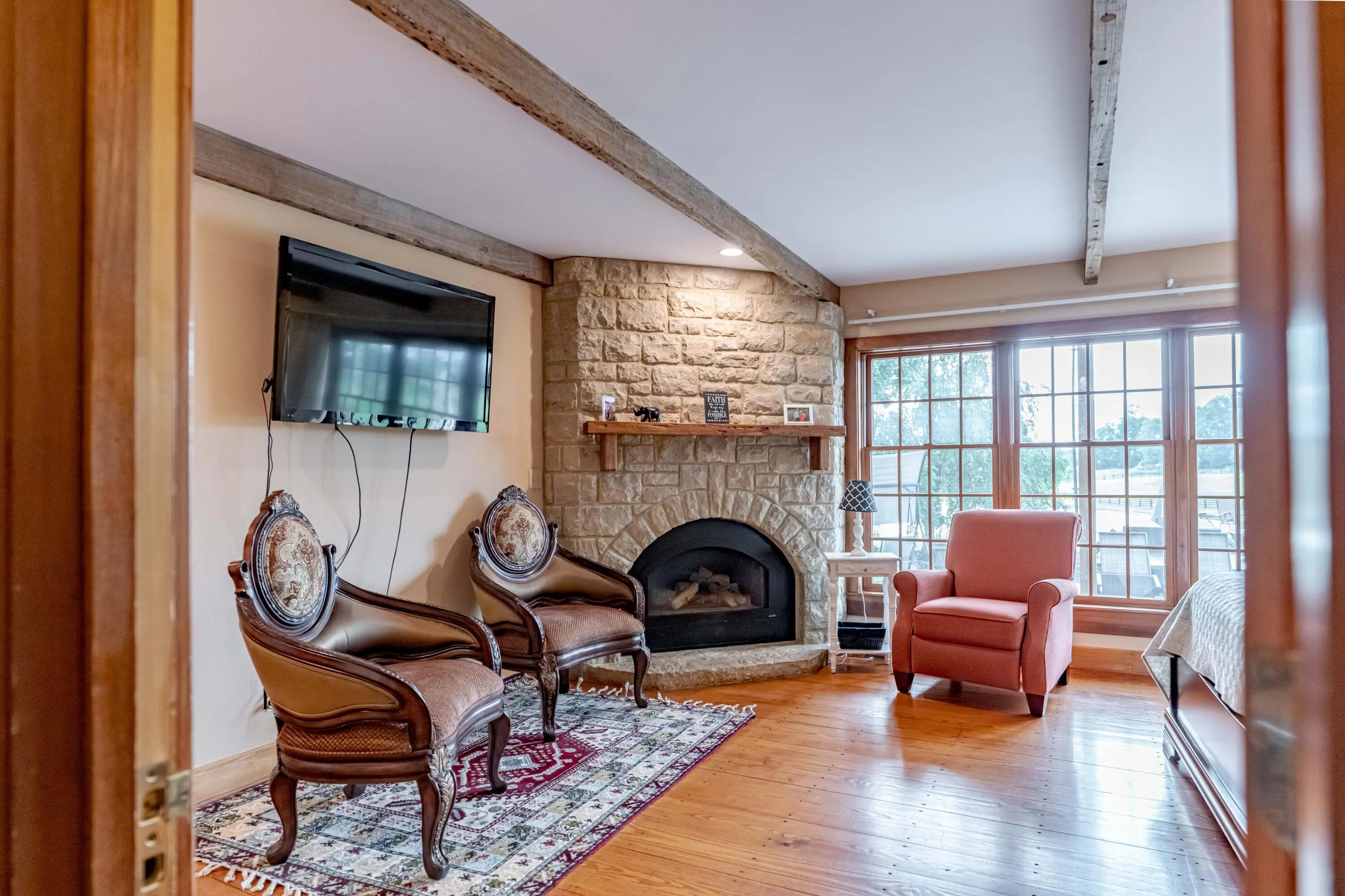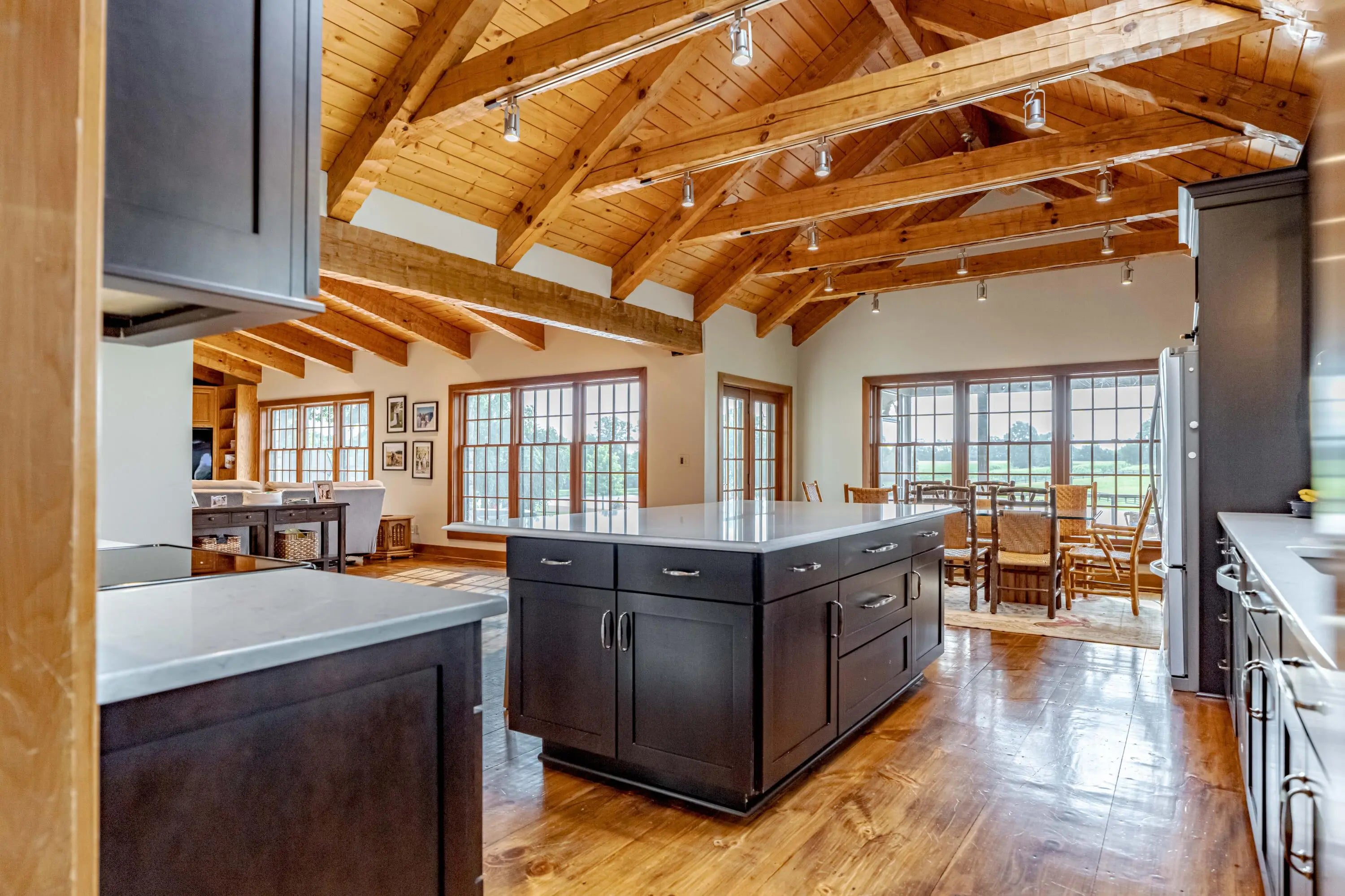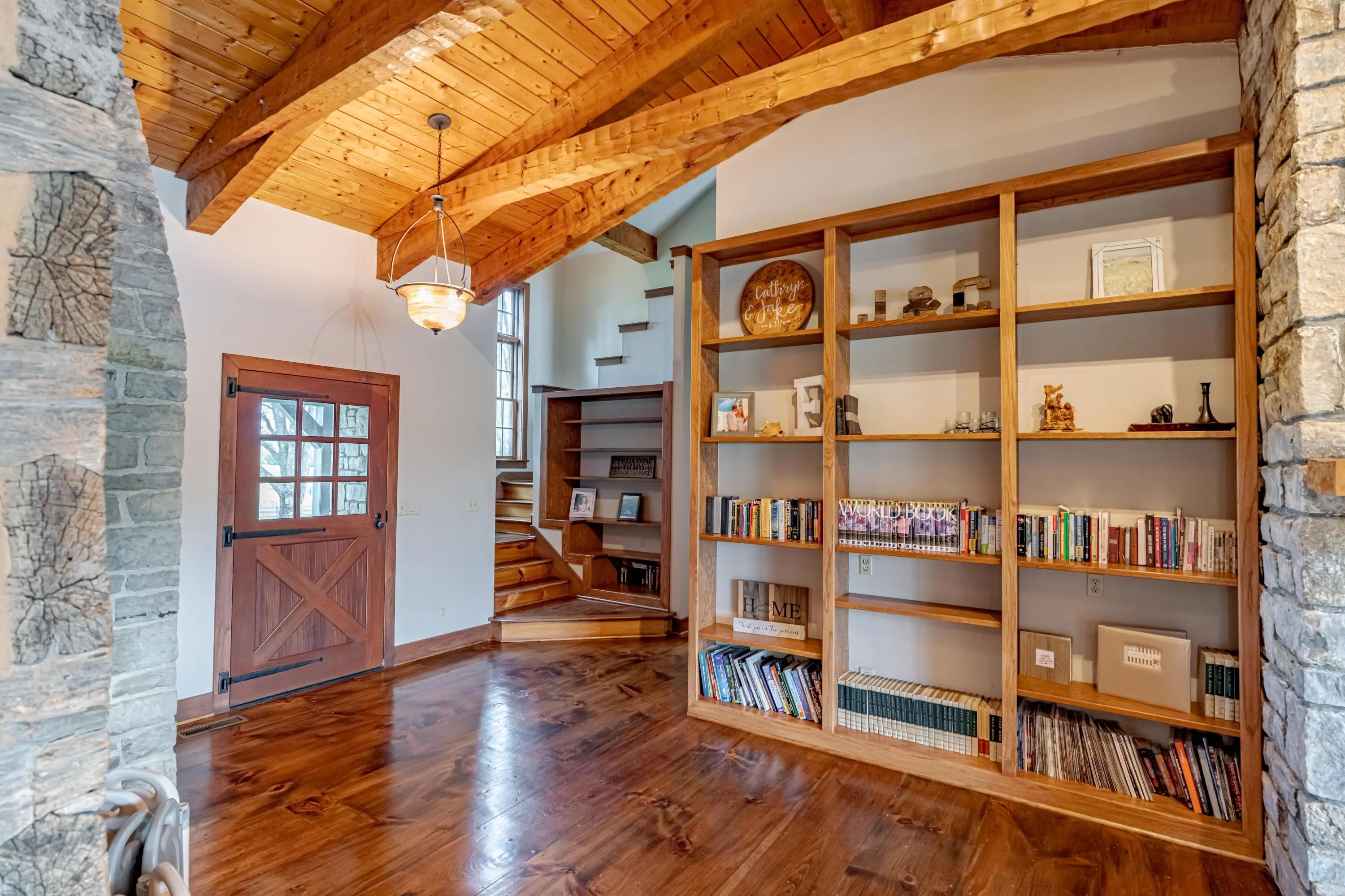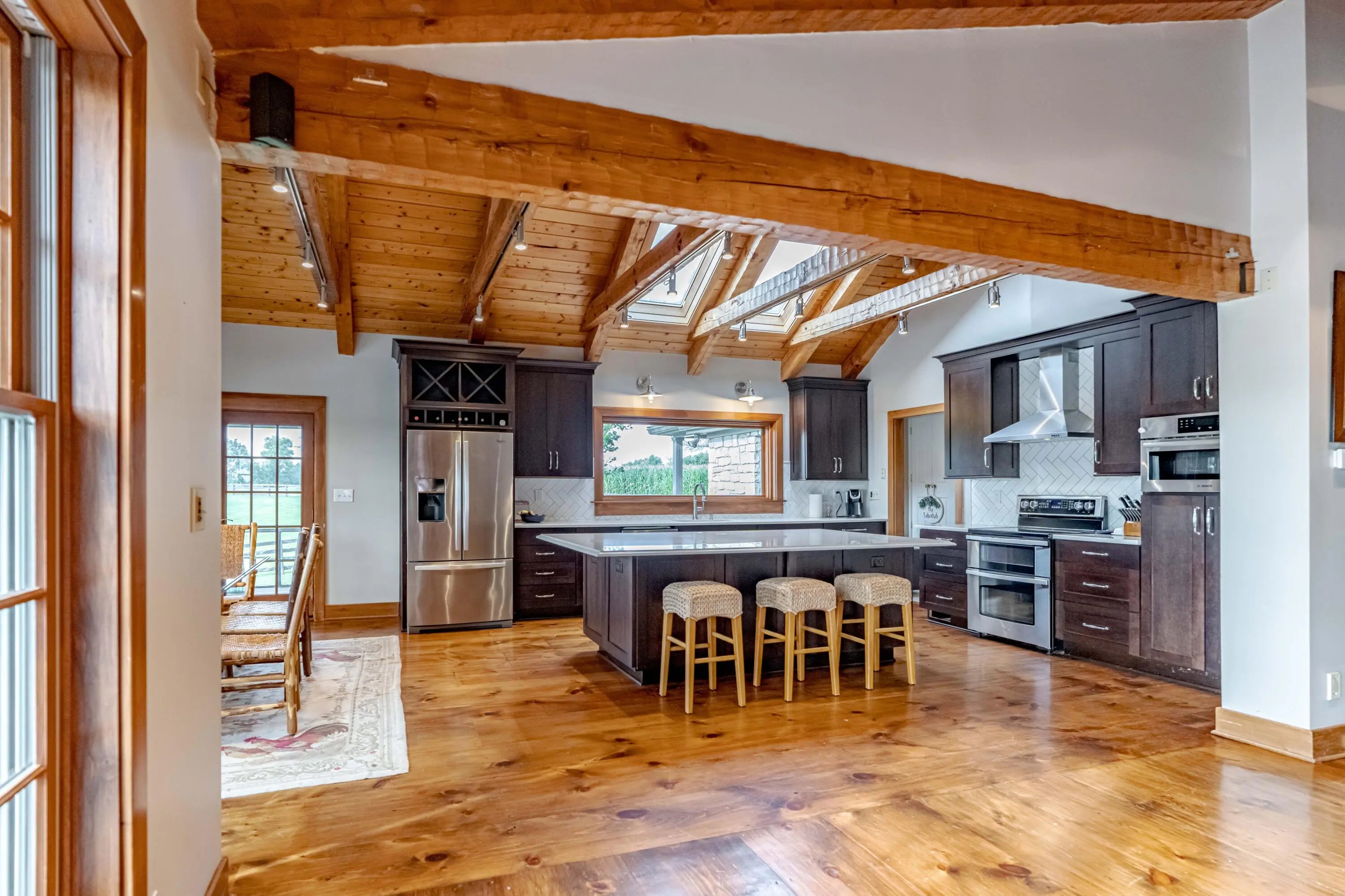 Cabin Chase Farm. One of the well known farms in Shelby County. This property is absolutely stunning, from the long paved driveway back to the 1800's log cabin and the addition around that history with 5 bedrooms and 7 baths. The open floor plan has large vaulted ceilings, a kitchen straight out of a magazine, large windows that look out onto the farm, the inground pool and lake. A first level enclosed patio area is perfect for relaxing with the family after a swim. The primary suite is huge with walk in closet most people dream of and walk in shower in the primary bath. Large bedrooms upstairs and another sunroom office area that over looks the farm. Horse barn with 7 stalls, paddocks and 6 car garage. All on 60 +/- acres. Even an elevator if you don't like the steps . WOW