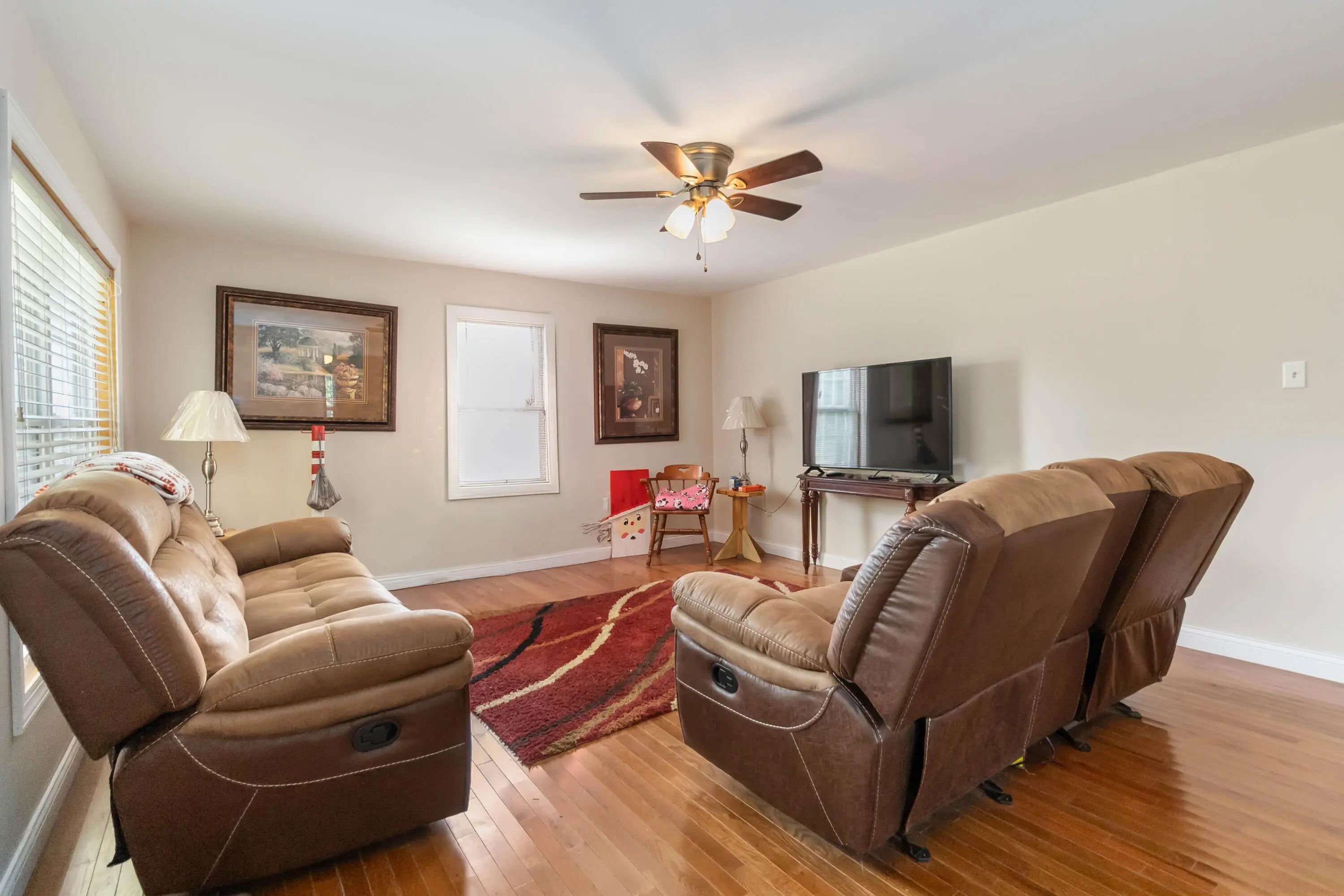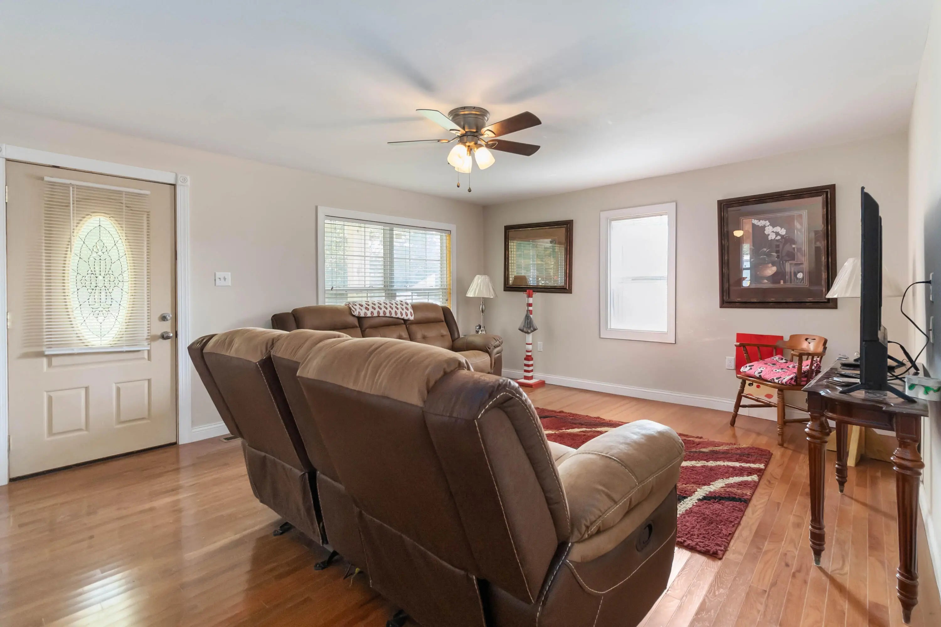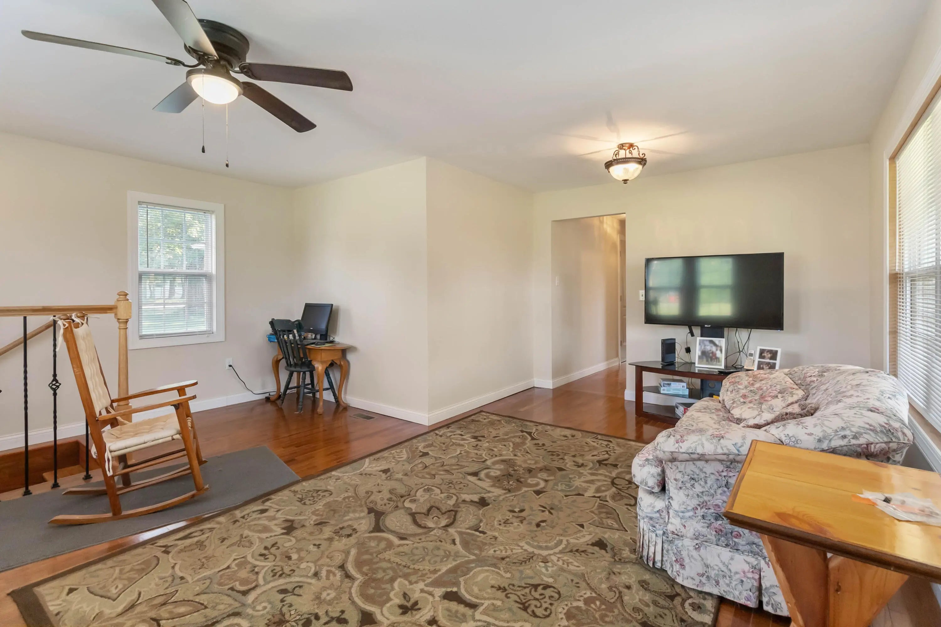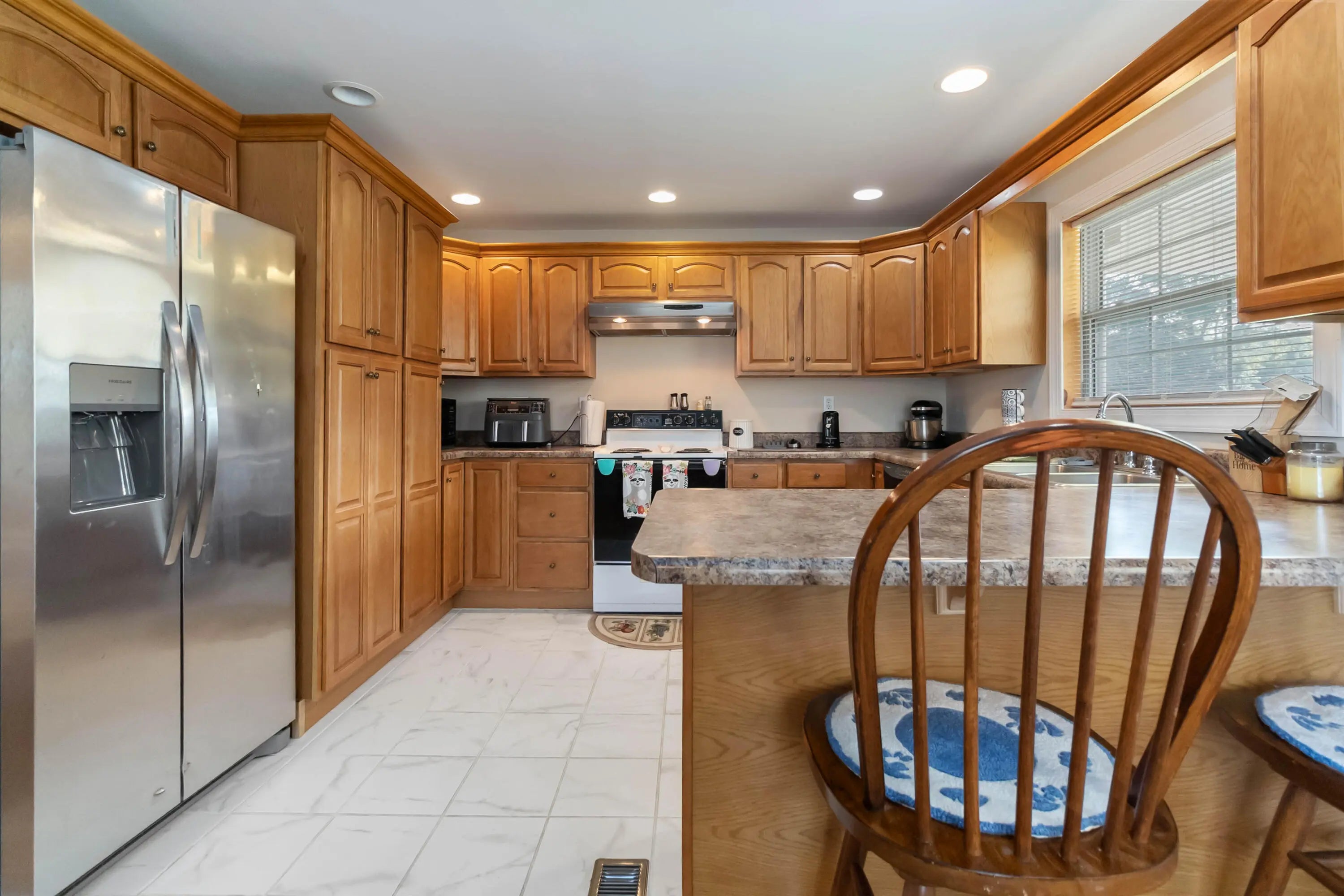 - Interior FeaturesBreakfast Bar, Eat-in Kitchen, Primary Downstairs, Ceiling Fan(s)