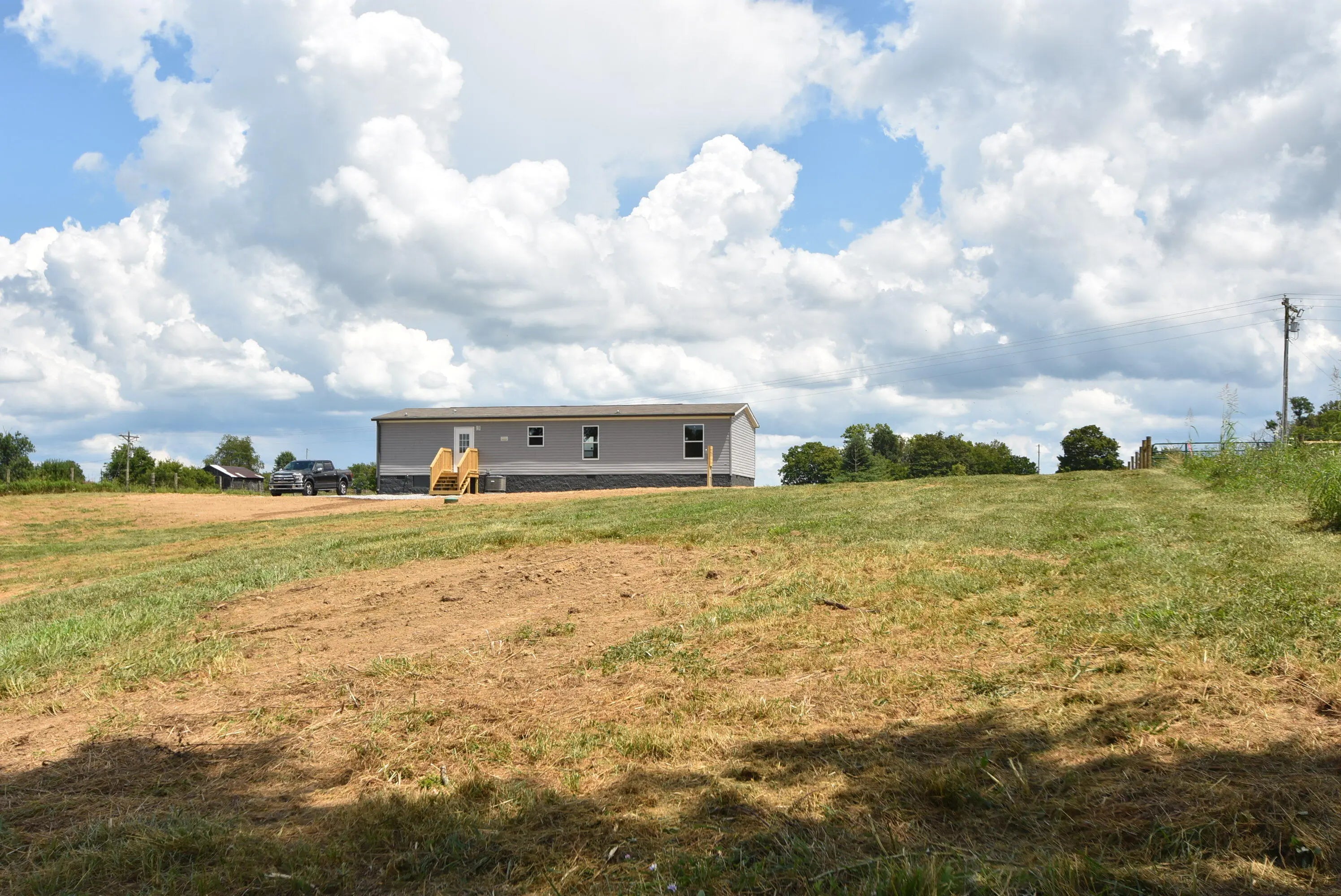 Gorgeous new Champion Apex home with 1568 sf and featuring an open concept, spacious bedrooms, comfortable baths, walk-in closets in all bedrooms, and placed on a permanent foundation with a deep crawl. Flooring is vinyl that looks like barnwood. New appliances and an island in kitchen. Spacious laundry room with room for a folding table. Covered porch on the front (faces east) and an access deck on back. Everything is new. The home sits on top of a ridge with a great view of the entire 5.2 acres and surrounding farmland. There is a new gravel drive to the house, about 174 yards from the road, providing plenty of distance from neighboring homes and plenty of room for horses, goats, or recreation, both in front of and behind the house. Right side is fenced with woven wire, as it part of left side. Rear field has potential for hunting or can be kept clear for livestock. Conveniently located just minutes from US 127 (Louisville Rd), 15 minutes from Harrodsburg and about 40 minutes from Lexington or Frankfort.