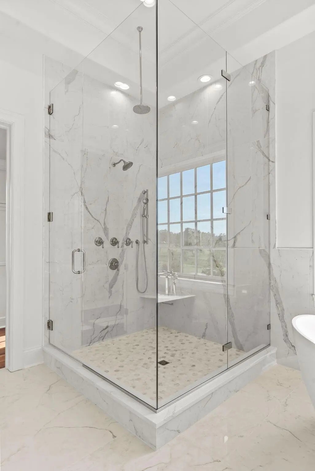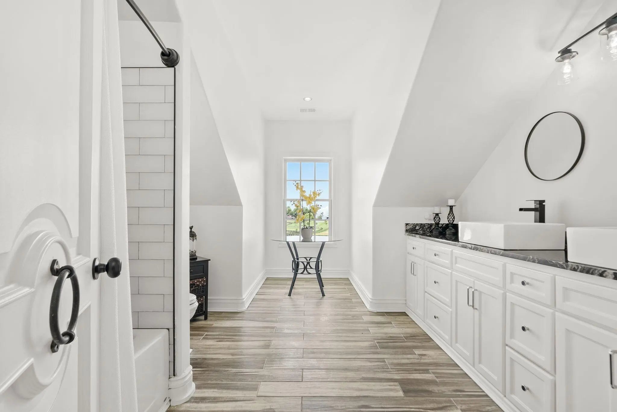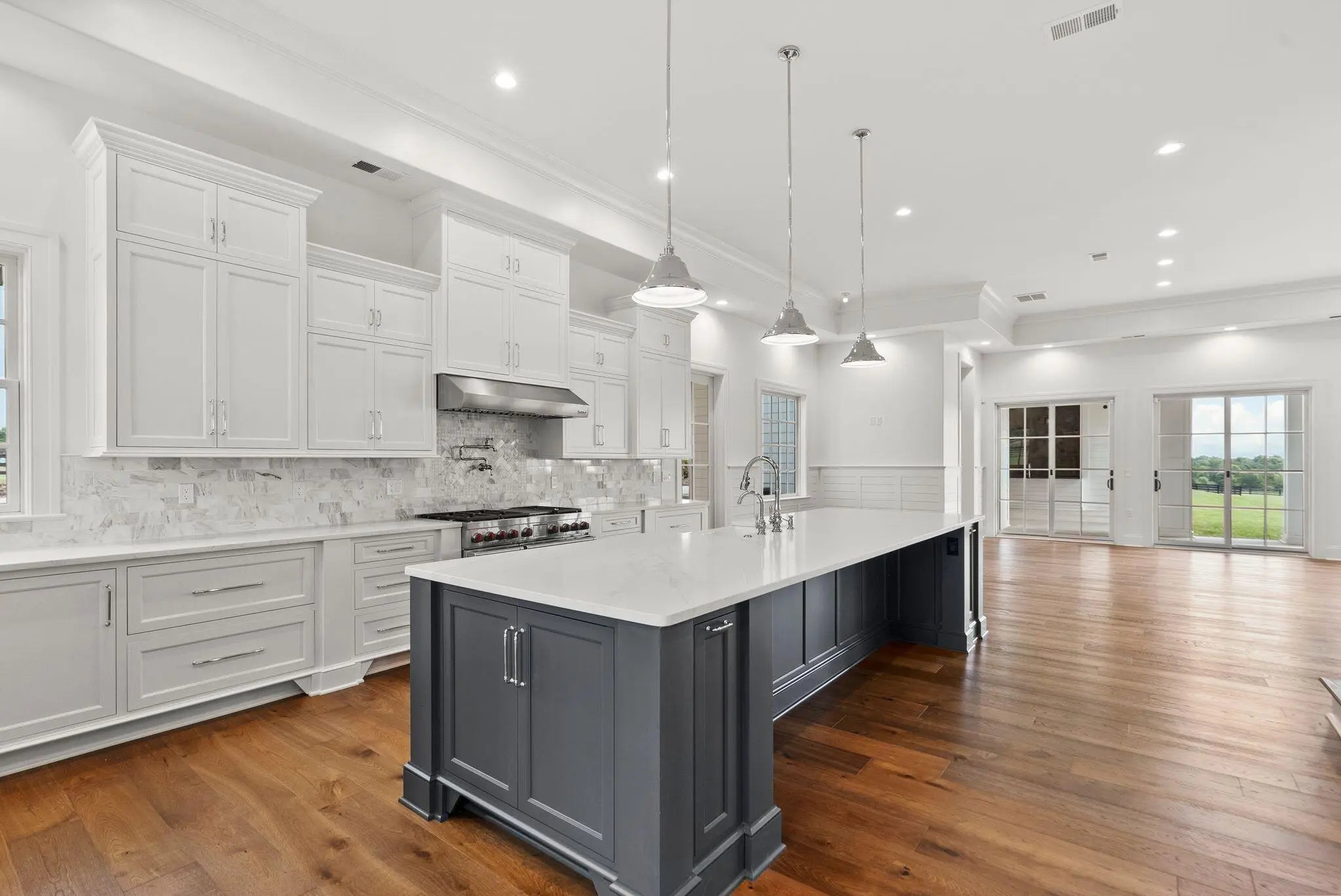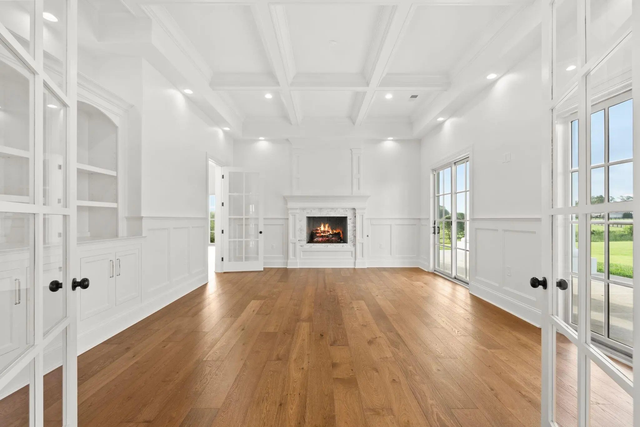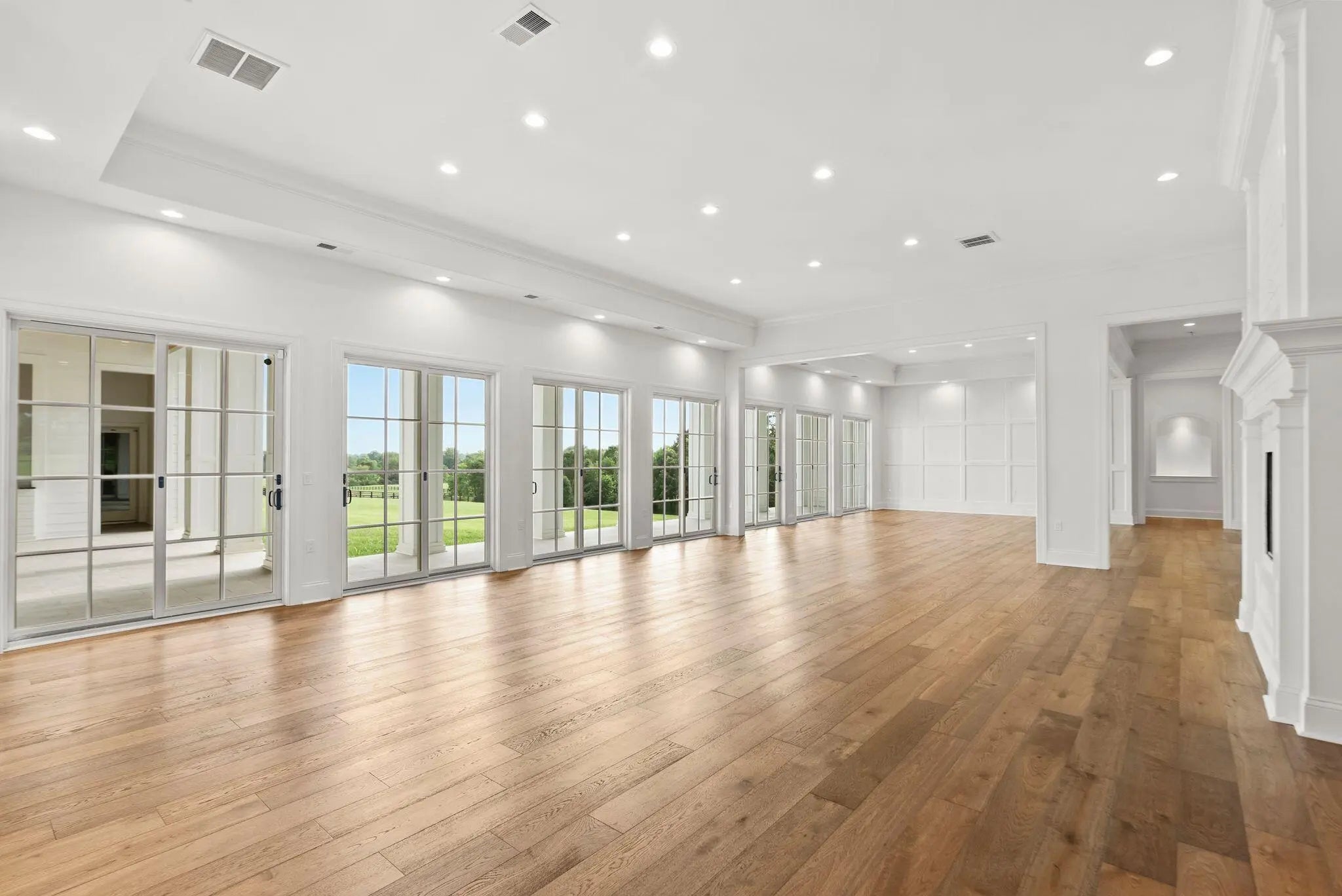 Experience the best of Kentucky living at La Vista Estate, a striking brand-new custom colonial set on over 27 rolling acres along the coveted Iron Works Road, in the heart of Bourbon County horse country. Designed to impress, this newly constructed home pairs timeless architectural details with modern amenities, all surrounded by panoramic views of the Bluegrass countryside. A floating spiral staircase under a domed ceiling welcomes you into a grand interior featuring wide plank French oak floors, soaring coffered ceilings, and extensive custom millwork. The chef's kitchen is outfitted with Wolf, Sub-Zero, and Cove appliances, Calcutta Izaro quartz countertops, a large island, and a spacious butler's pantry. Step outside to enjoy the covered outdoor kitchen with granite counters and a stacked stone fireplace, along with multiple verandas designed for relaxing and taking in the views. The main level also includes a stately study, formal dining room, grand great room with wet bar, expansive living room, laundry room, and four fireplaces. The main-level primary suite offers a spa-like ensuite bath, a makeup room, and dual walk-in closets. Upstairs, a second primary suite, four additional bedrooms, a spacious den (living room aka helm) with a fireplace, and four bathrooms provide generous space and flexibility. The third level features a truss-beamed theatre room, a bonus room, and a half bath. The home is elevator-ready with a built-in shaft in place and wired for a whole-house generator. Perched above the oversized garage, featuring six doors and space for up to 12 vehicles, the guest house includes two bedrooms, two full baths, a den, and a full kitchen. With over 950 feet of road frontage, the property also includes a 4-stall insulated barn with a tractor bay, a 60' x 80' barn with two 16' garage doors, a fully fenced perimeter, and a 673-square-foot tenant house with an RV hookup. Located just 15 minutes from Lexington, Paris, and Winchester, this estate offers high-speed internet, public water, and integrated Google Smart Home systems. EVADI Horse Farm borders the property and offers training and convenient boarding. An additional 150-acre tract, situated just two miles down the road, is also available for purchase.