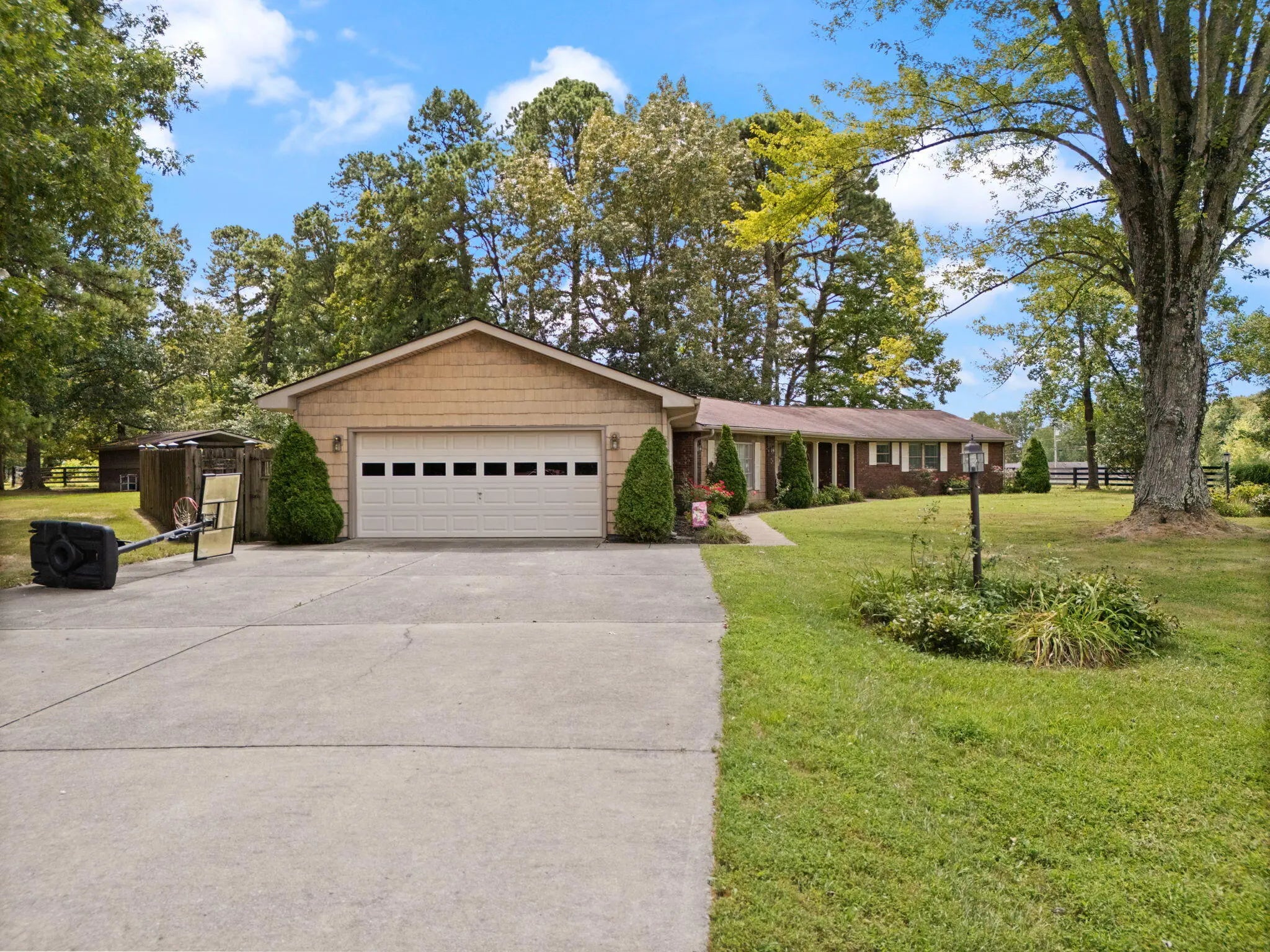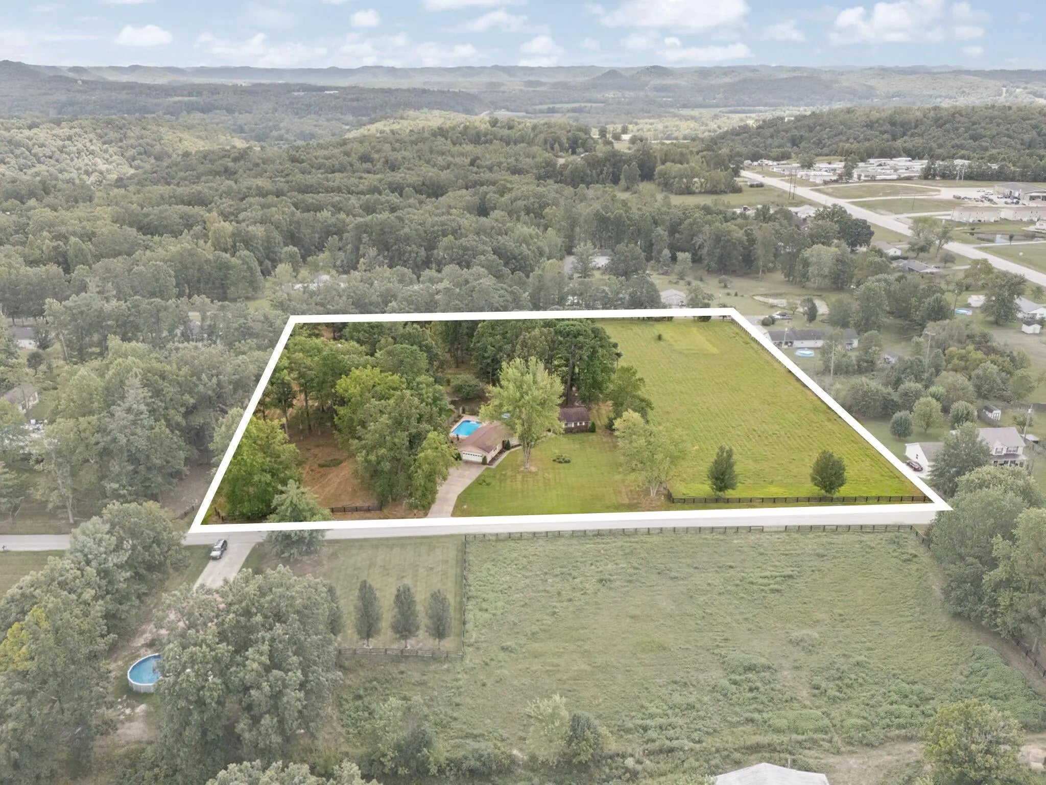 You will be living large in the sprawling ranch home. Lots of amenities! Brick and vinyl siding adorn this traditional layout. Large Dining Room, Sunken Living room with brick fireplace. Cherry stained solid wood cabinets flank the kitchen. The MASSIVE great room is where all the entertaining will be- when you are not on the patio or lounging in the in-ground pool. 3 large bedrooms, 2 full and 1/2 bath round out the living areas. This property sits on 6 - 1 acre lots. Yes you read that correctly this property is 6 acres. There is a 3 board fence surrounding the property and a privacy fence to keep the pool private. There is a separate outbuilding/shed for the mowers and tools but the Winner, Winner-Chicken Dinner Grand Daddy of the outside features is the large 36 x 48 fully wired ...Wood shop/garage. This building may just save your marriage if you spend enough time out there. There is a small wall heater and ac to keep you there during the elements. Efficient heating and cooling with the Delta natural gas that powers the furnace and 2 fireplaces. Minutes to Cave Run Lake, Walmart, Kroger and downtown. What are you waiting for? If you have to sleep on it, you may never get to sleep in it!