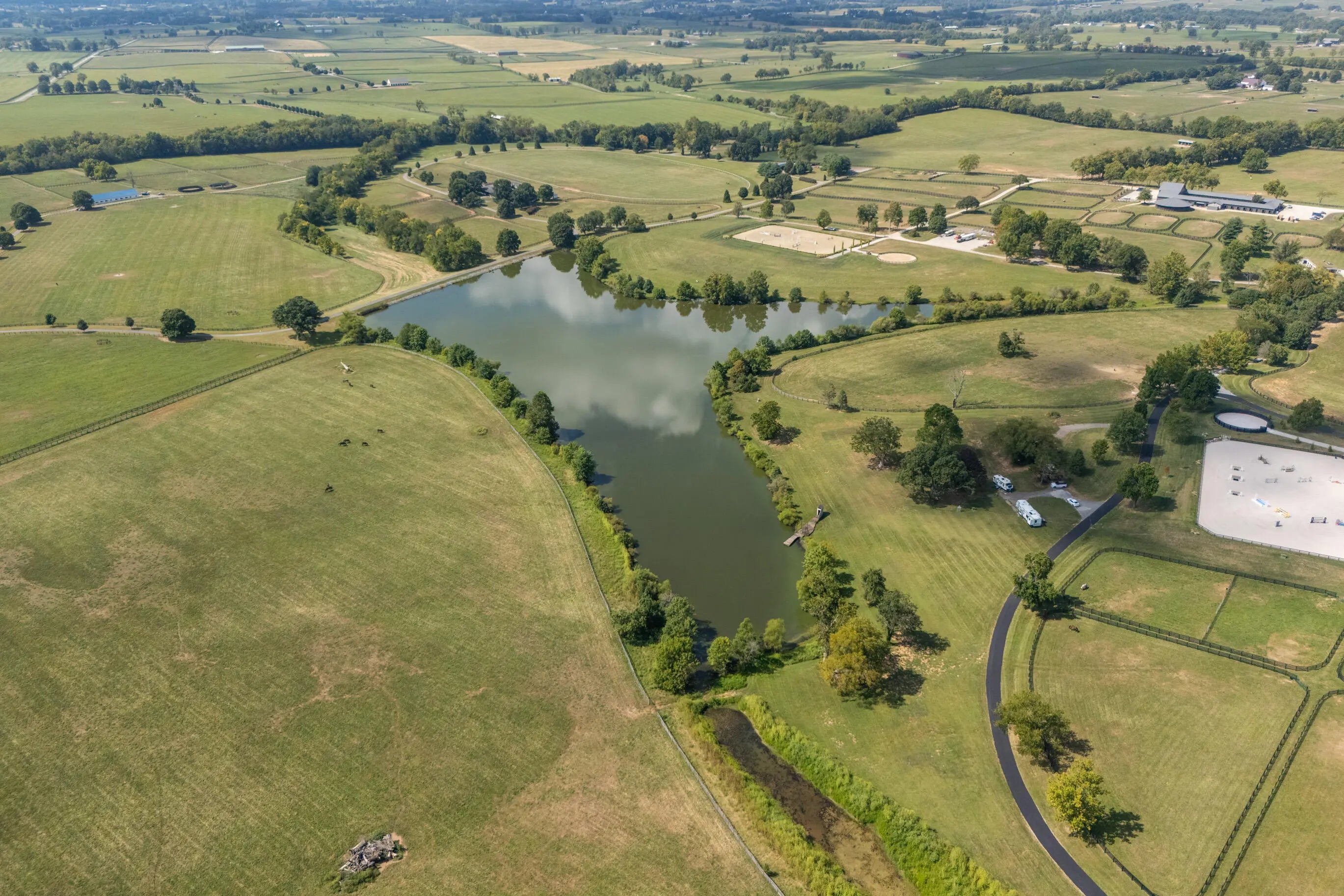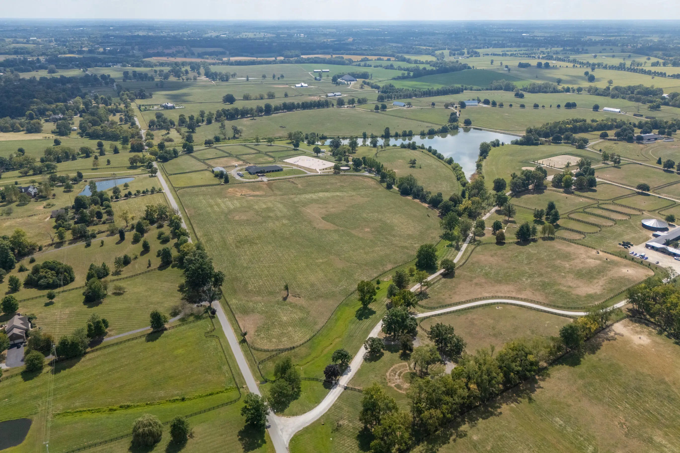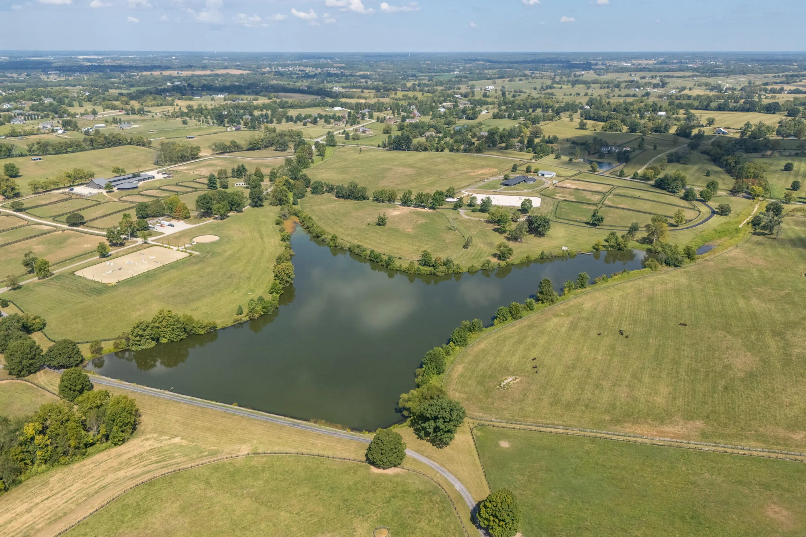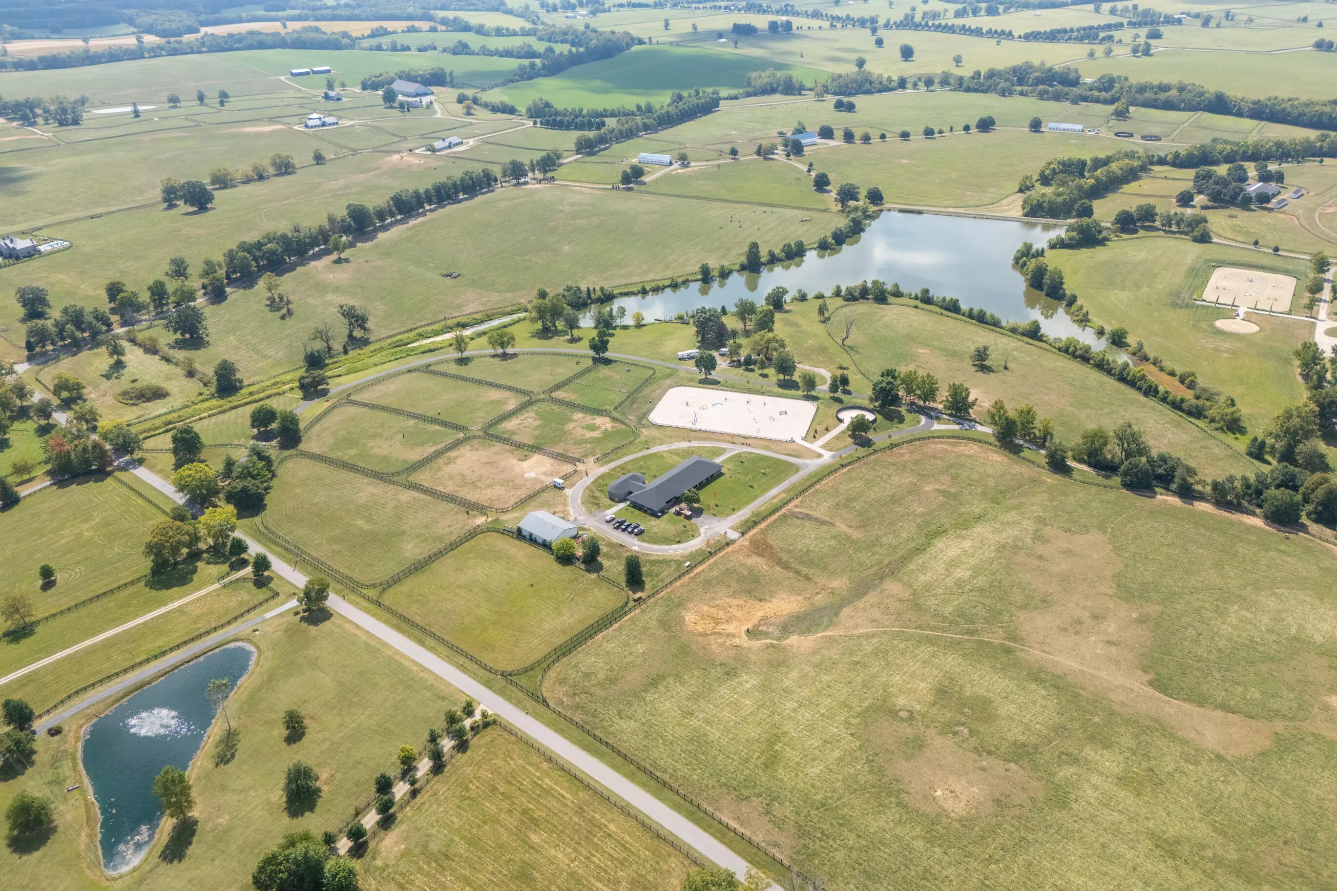 This is a spectacular, sport horse farm with all the bells and whistles. Resting on a knoll overlooking a private 11 acre lake, the views cannot be beat-read multiple gorgeous building sites. The completely redone 16 stall barn sports 12' x 14' stalls with inside and outside doors, matress style floor mats, 4 additional stalls in the inside turnout area, Lucas stall doors, tongue -in-grove woodwork, new bathroom, new laundry room, new tack room with heating & cooling, feed room, additional storage room, 2 grooming stalls, a wash stall, and a covered indoor turnout area. The farm also has a new synthetic footing 150' x 200' ring with irrigation system, round pen with synthetic footing, 45' x 65' storage building with concrete floor and electricity, 8 new paddocks, 2 large fields, lot of road frontage. This farm is comprised of 3 separate parcels.