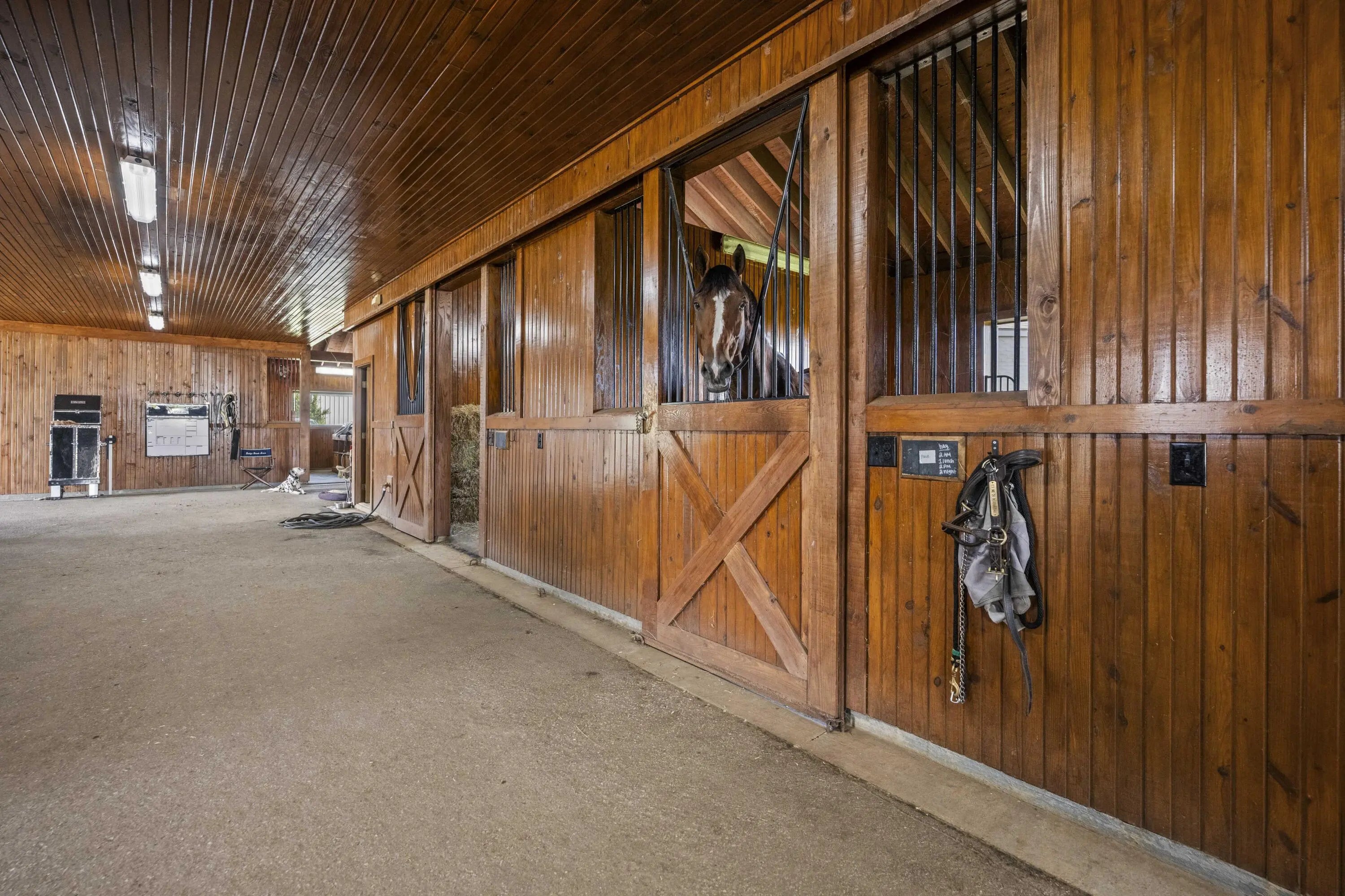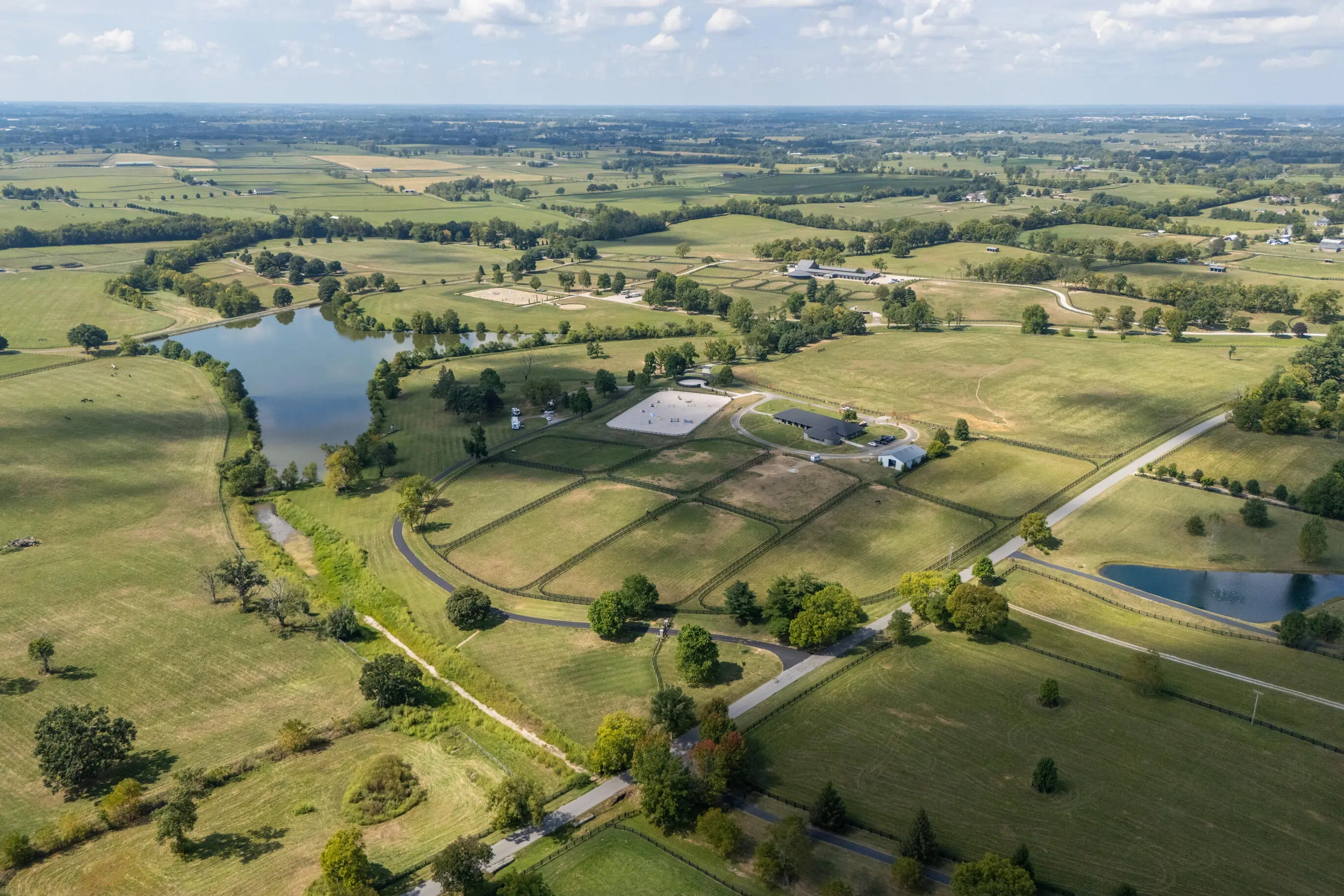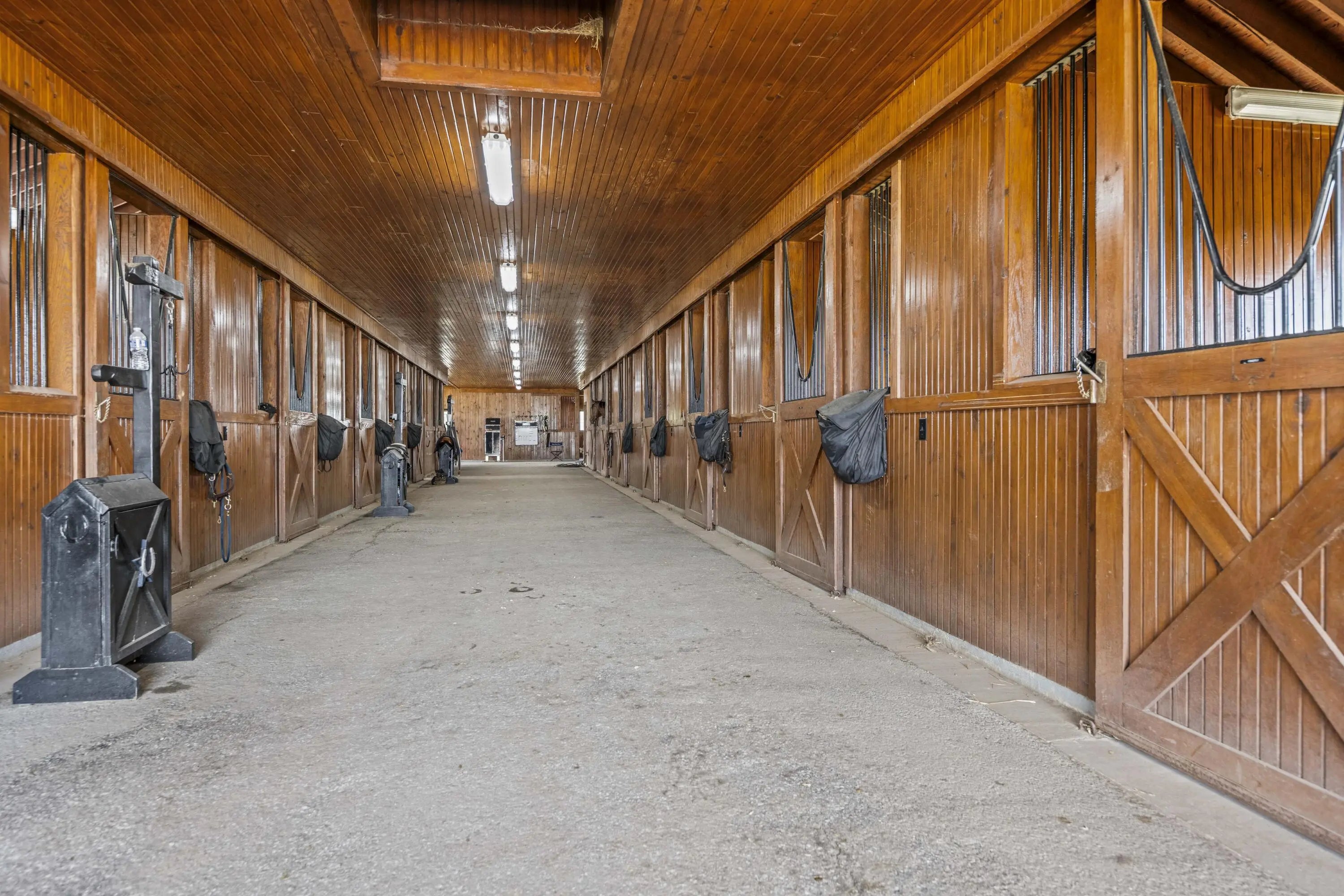 This is a spectacular, sport horse farm with all the bells and whistles. Resting on a knoll overlooking a private 11 acre lake, the views cannot be beat-read multiple gorgeous building sites. The completely redone 16 stall barn sports 12' x 14' stalls with inside and outside doors, matress style floor mats, 4 additional stalls in the inside turnout area, Lucas stall doors, tongue -in-grove woodwork, new bathroom, new laundry room, new tack room with heating & cooling, feed room, additional storage room, 2 grooming stalls, a wash stall, and a covered indoor turnout area. The farm also has a new synthetic footing 150' x 200' ring with irrigation system, round pen with synthetic footing, 45' x 65' storage building with concrete floor and electricity, 8 new paddocks, 2 large fields, lot of road frontage. This farm is comprised of 3 separate parcels.