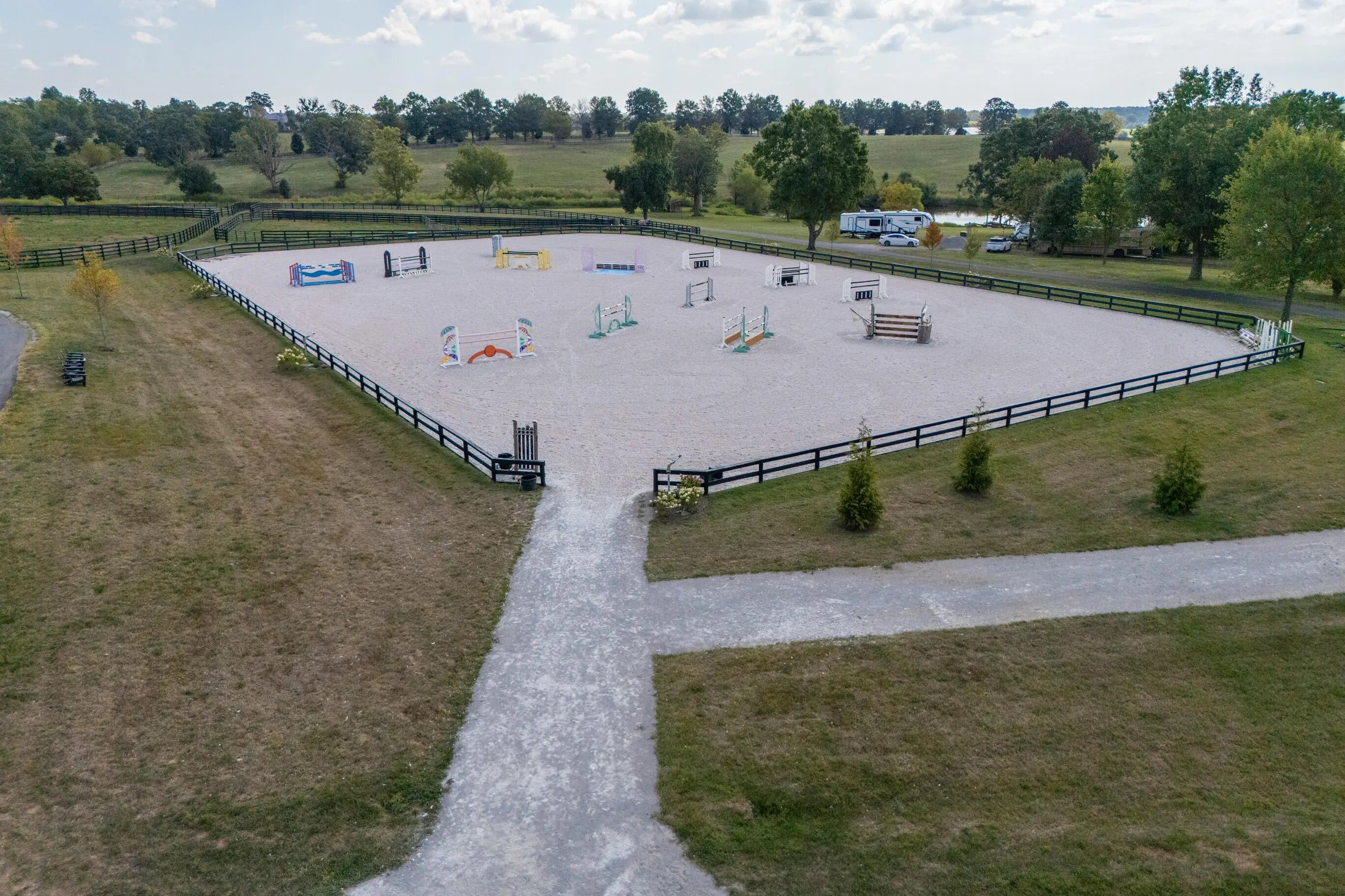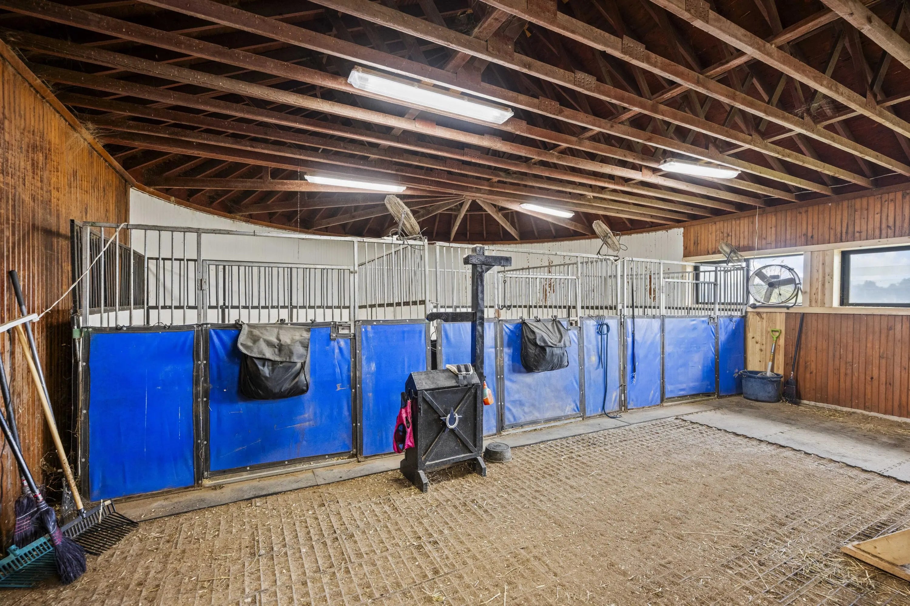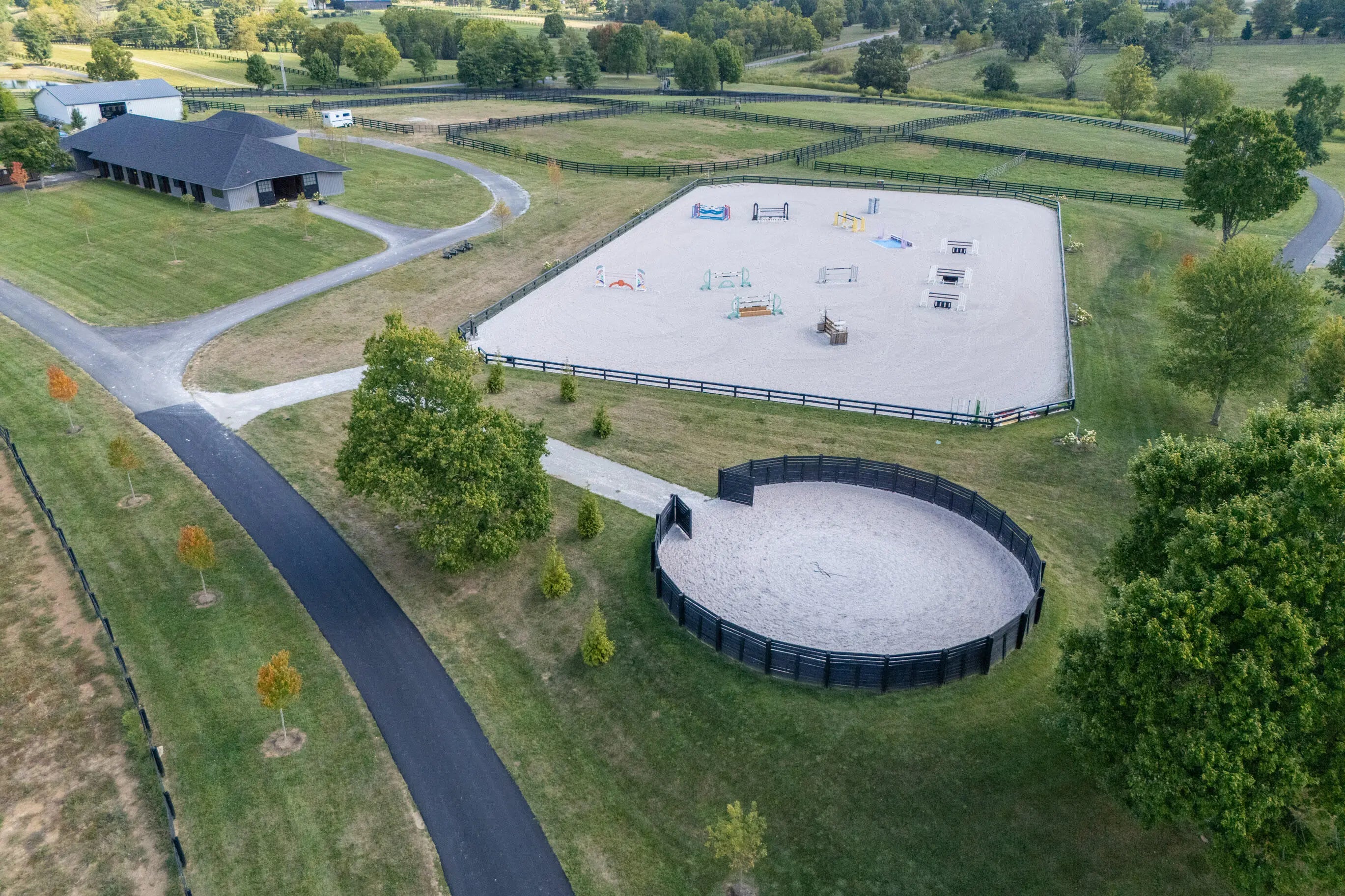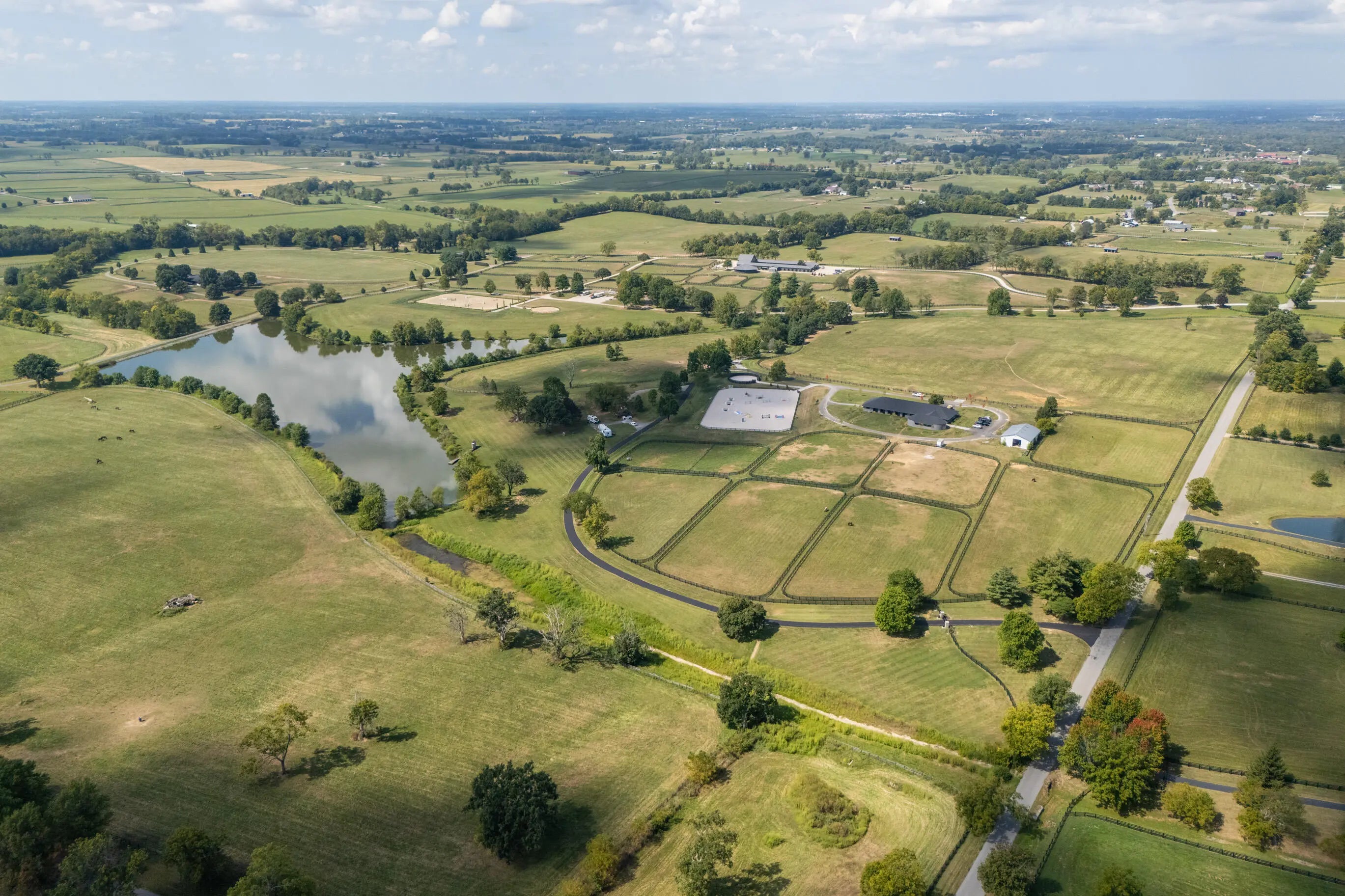 This is a spectacular, sport horse farm with all the bells and whistles. Resting on a knoll overlooking a private 11 acre lake, the views cannot be beat-read multiple gorgeous building sites. The completely redone 16 stall barn sports 12' x 14' stalls with inside and outside doors, matress style floor mats, 4 additional stalls in the inside turnout area, Lucas stall doors, tongue -in-grove woodwork, new bathroom, new laundry room, new tack room with heating & cooling, feed room, additional storage room, 2 grooming stalls, a wash stall, and a covered indoor turnout area. The farm also has a new synthetic footing 150' x 200' ring with irrigation system, round pen with synthetic footing, 45' x 65' storage building with concrete floor and electricity, 8 new paddocks, 2 large fields, lot of road frontage. This farm is comprised of 3 separate parcels.
