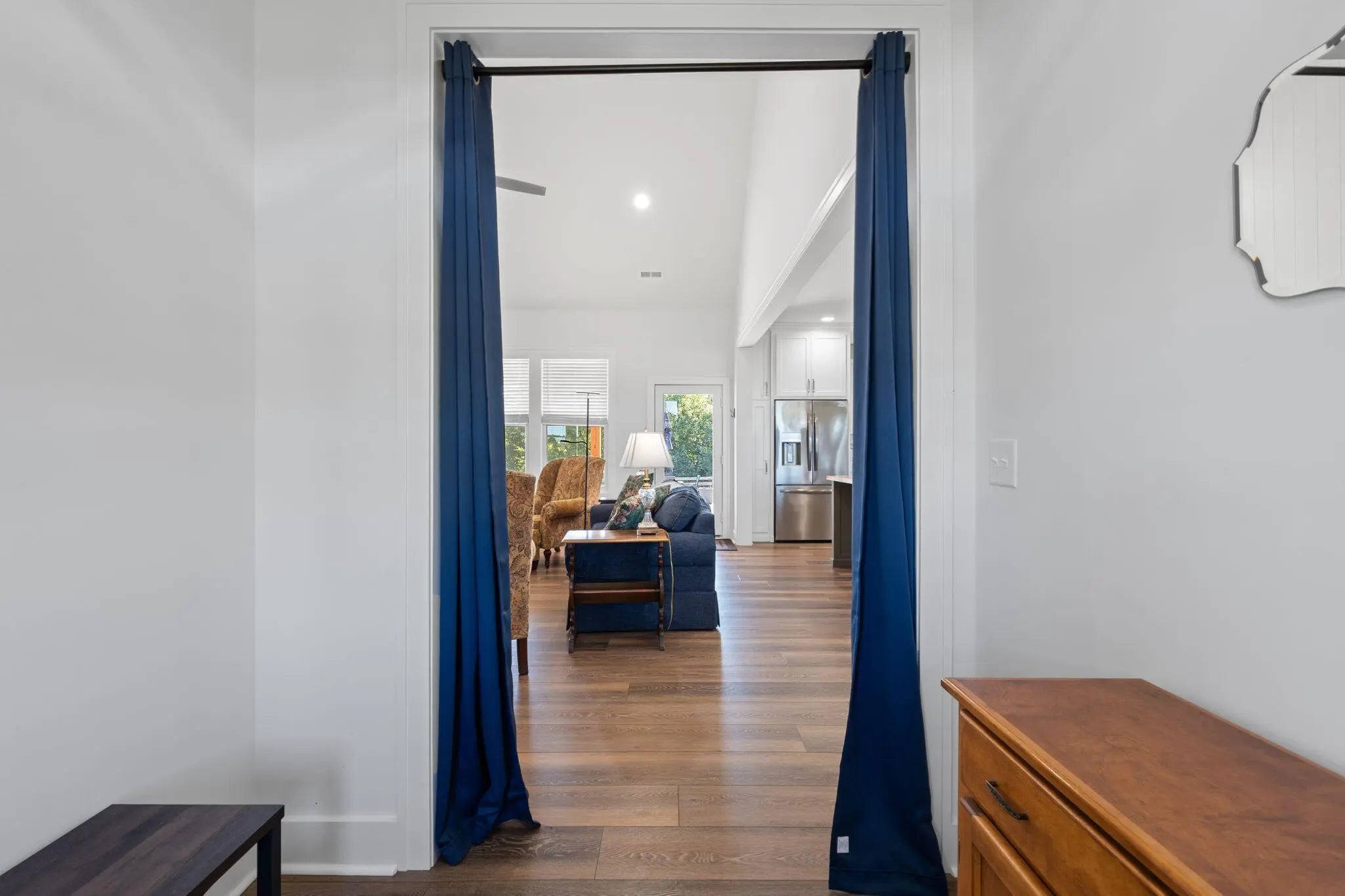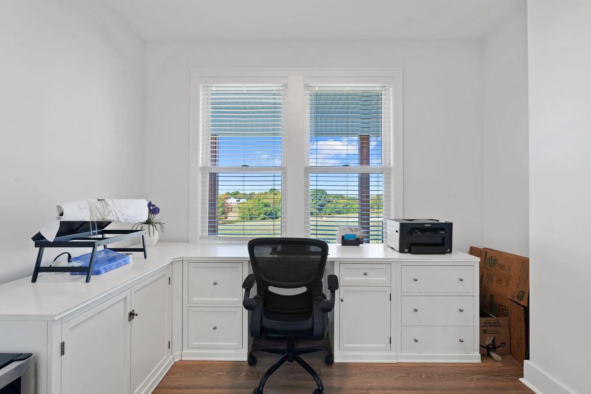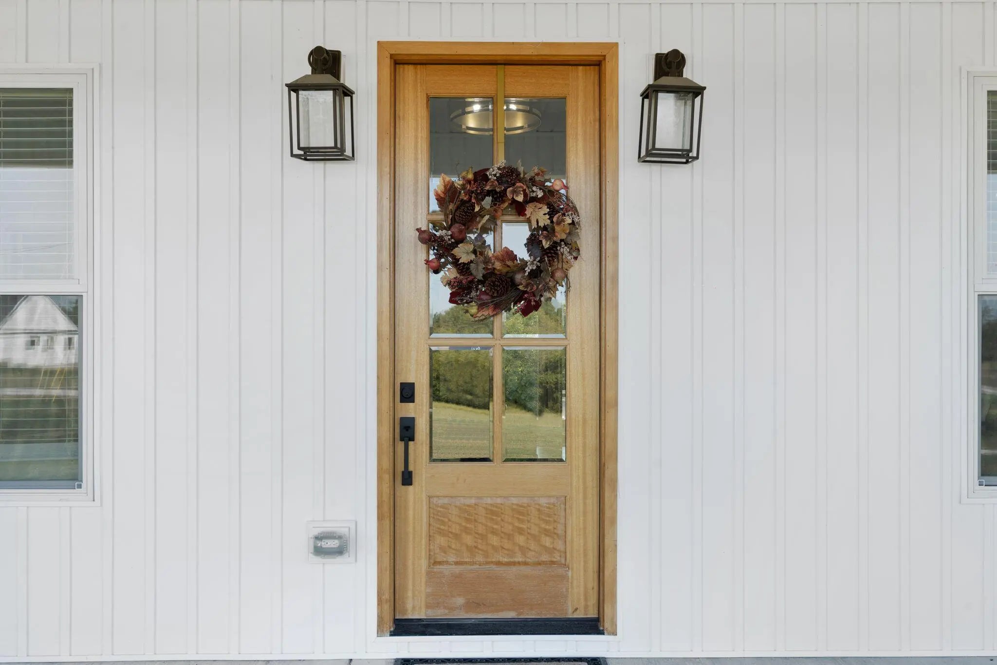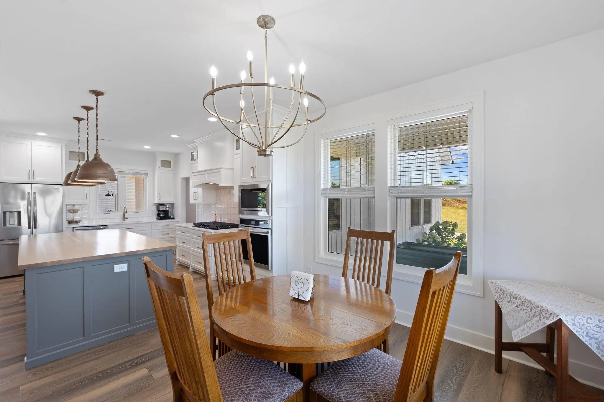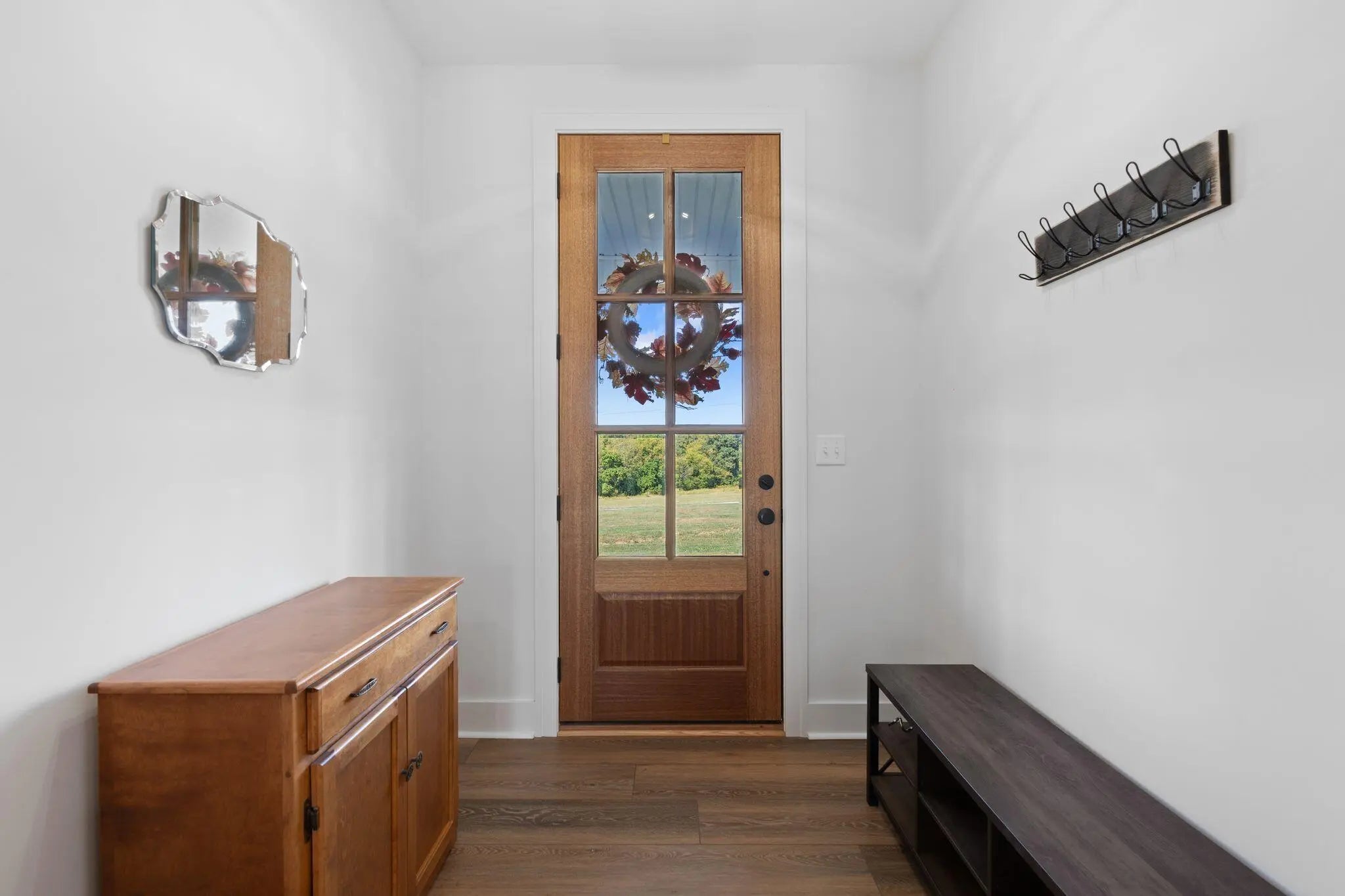 Built in 2023, this stunning modern farmhouse sits on just over 5 acres with new landscaping, horse plank fencing, and wildflowers that brighten the land each spring. A wrap-around covered front porch frames peaceful views of farmland and trees, offering a quiet retreat with timeless curb appeal. Step inside to the great room, where detailed ceilings, an impressive ventless gas fireplace, and custom built-ins create a welcoming centerpiece for the home. The open floor plan flows seamlessly into the gourmet kitchen, featuring custom wood cabinetry, quartz countertops, a tiled backsplash, a huge island, and a spacious dining area. A gas cooktop range with vent hood completes this chef's dream space. The first floor primary suite is a private haven with a luxurious ensuite bath offering spacious double vanities, a freestanding soaking tub, a large walk-in tile shower, and a massive walk-in closet with custom wood shelving. Two additional bedrooms, a full bath, a home office, and a hallway half bath are also located on the main level. Upstairs, a fourth bedroom or flexible bonus room includes its own full ensuite bathroom. The HOA takes care of a tranquil community pond and pavilion. This home is the perfect blend of modern comfort and peaceful country living.