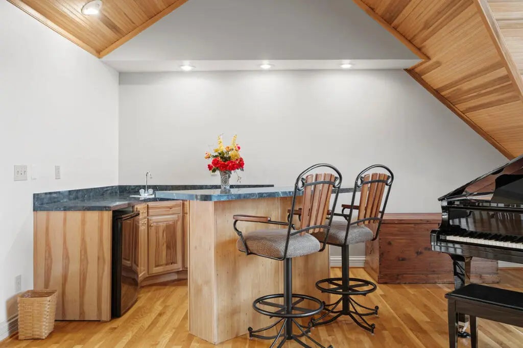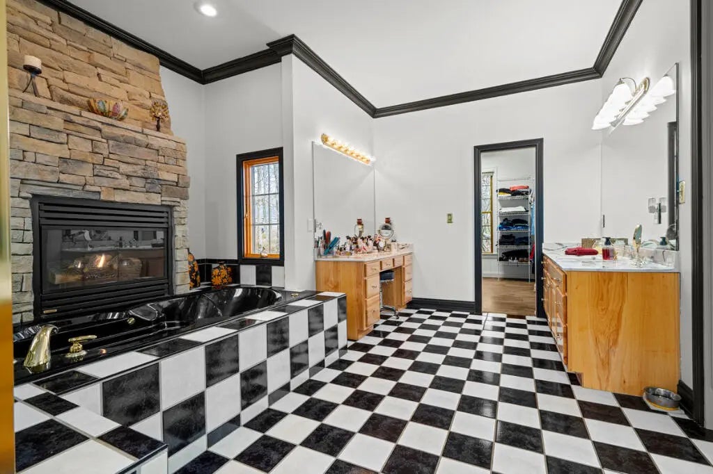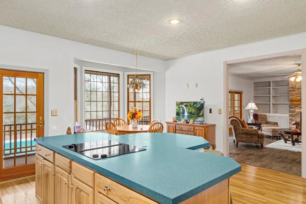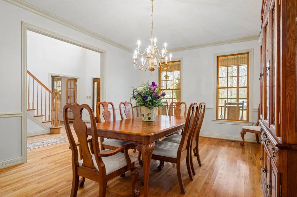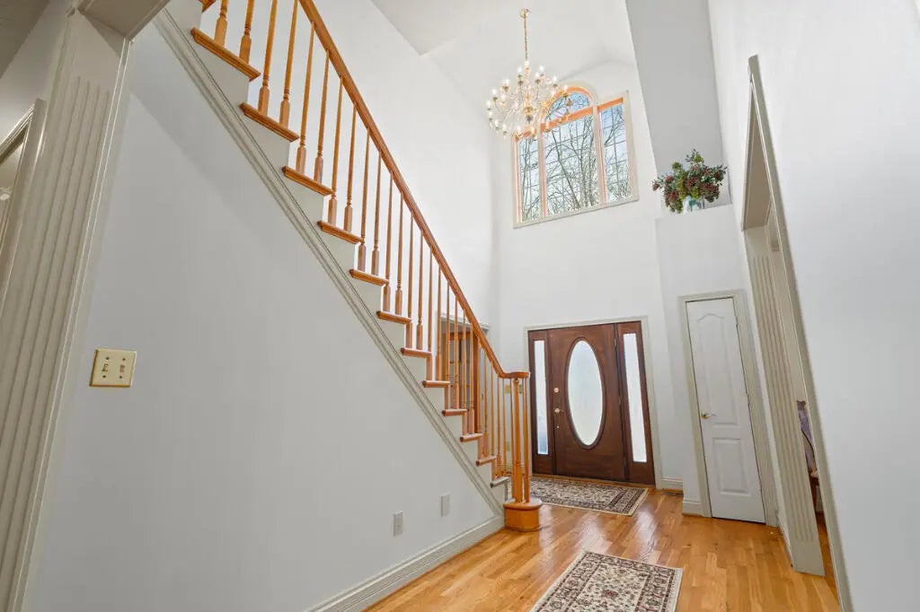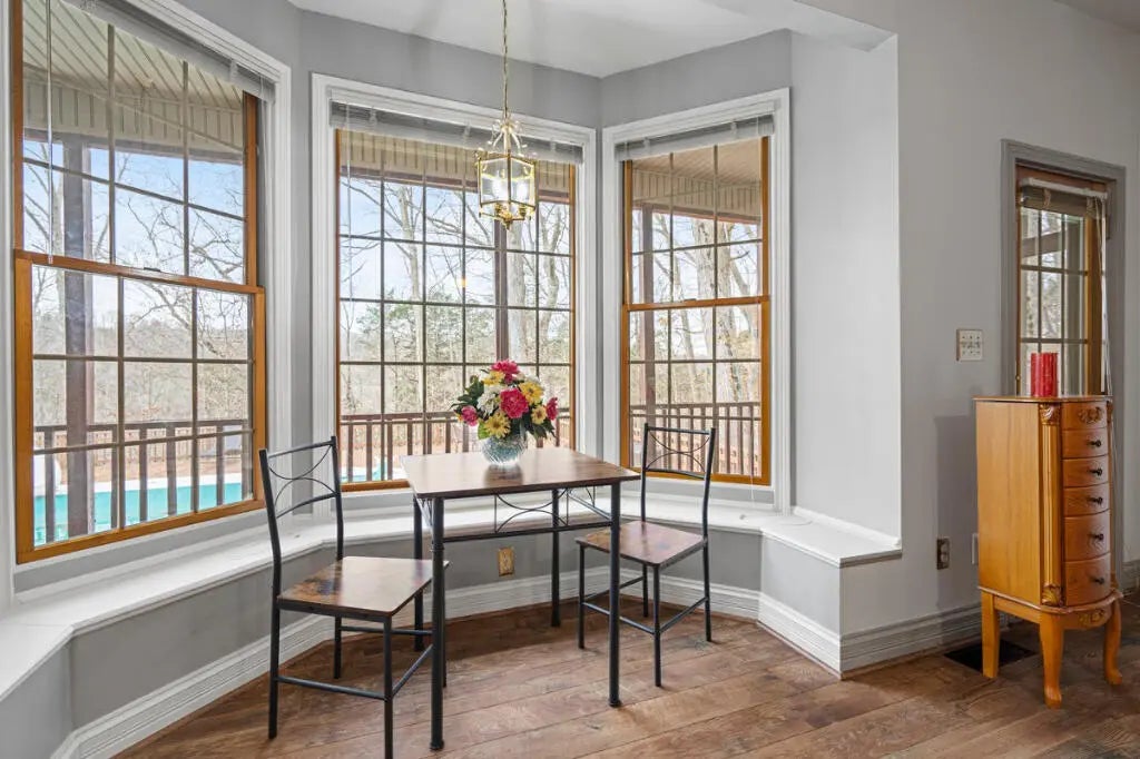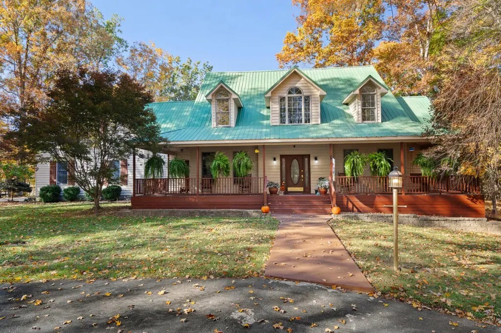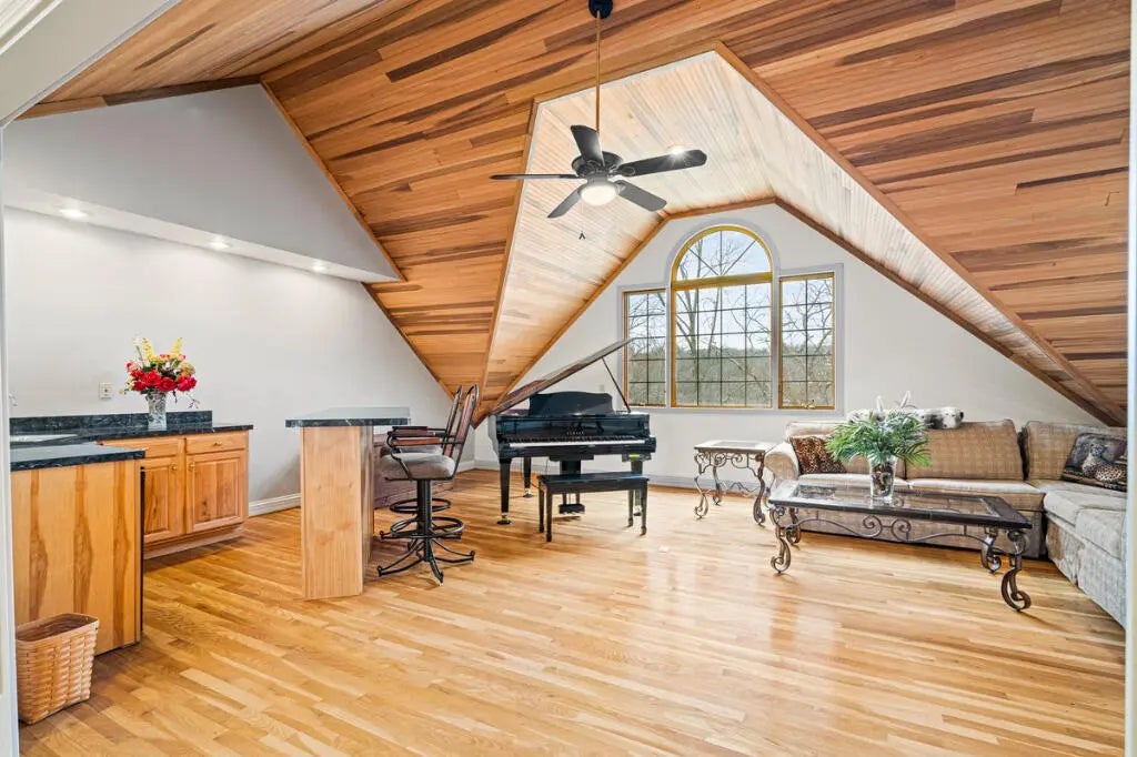 Country Estate living 15 minutes from Lexington on 7.5 wooded acres in the gated Boone's Trace community on the Kentucky river. Relax on the front porch swing and watch the deer or enjoy the screened back porch overlooking the heated in-ground pool with automatic pool cover, perfect for year-round use. With 4000 sq ft of outdoor entertainment space including the pool, deck, and patio this property offers privacy and natural beauty at every turn. The luxurious primary suite features a bay window setting area, spa tub by the fireplace, double vanities, a makup station and an oversized walk-in closet. The spacious kitchen has rich cabinetry, a center island, and a bright bay window breakfast nook. The living room boasts built-in shelving and a rock fireplace, with sliding doors opening to the porch. Upstairs you'll find a triple vaulted grand entertainment room with bar, media lounge and room for a piano. The upper level also offers a 1000 sq ft multipurpose room--ideal for a retreat, game room, gym, crafting studio, or theater. The 3 door garage fits 3 cars plus tool area, shelving and extra storage. Your private retreat awaits. Photos #47 and #54 are virtually staged.