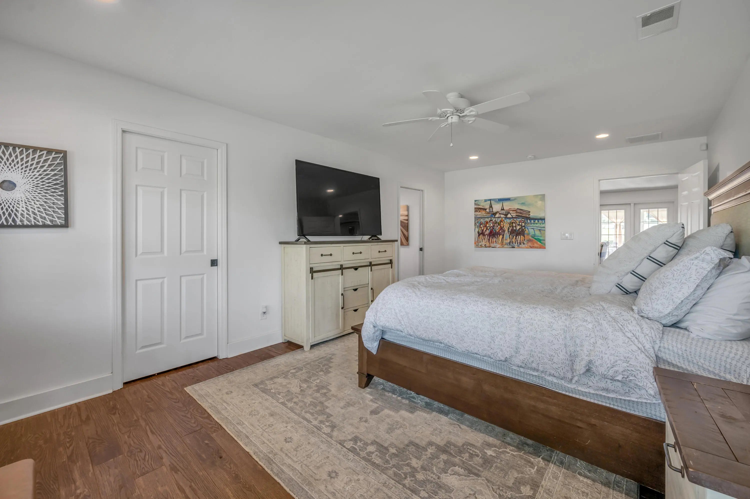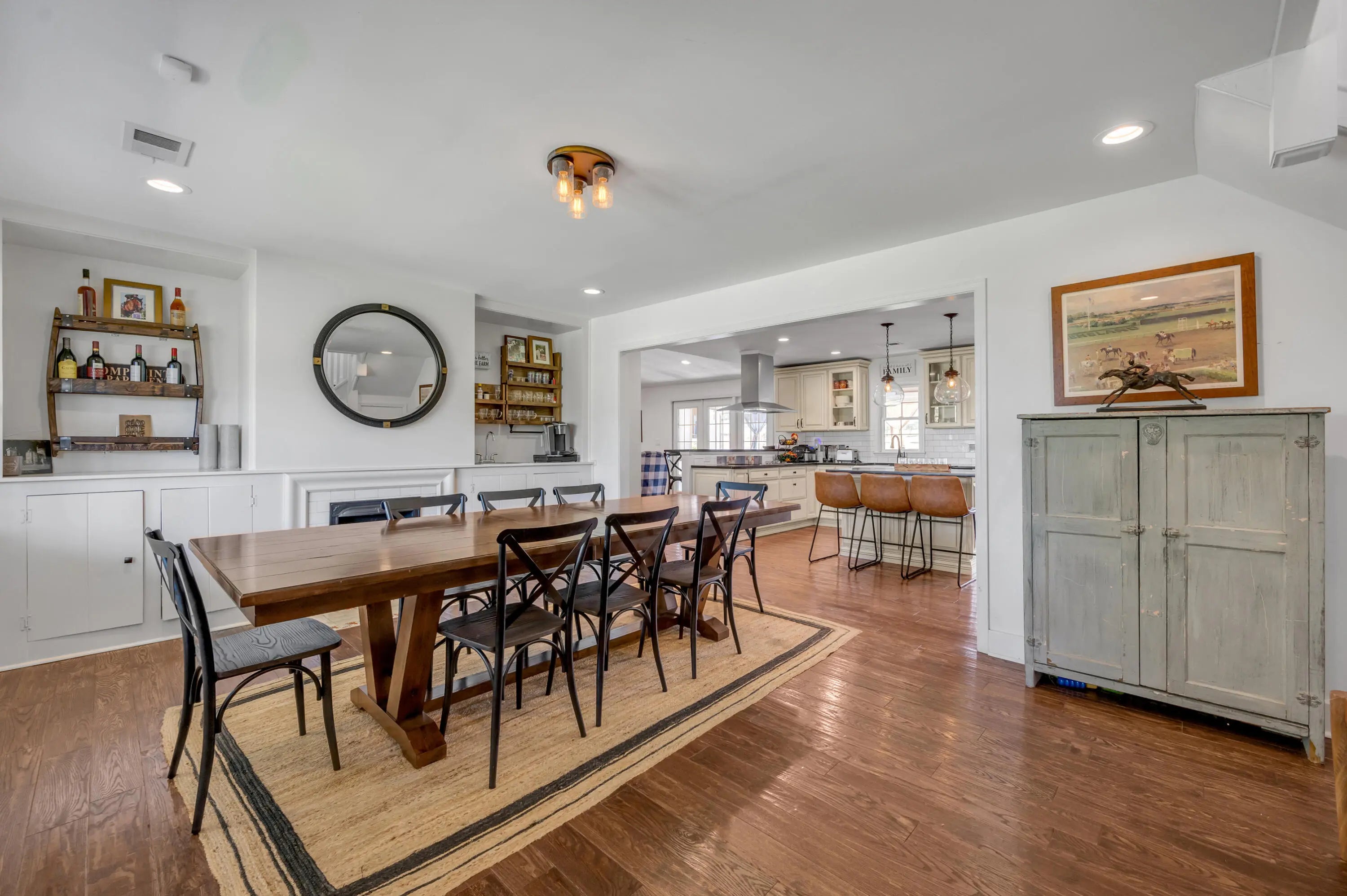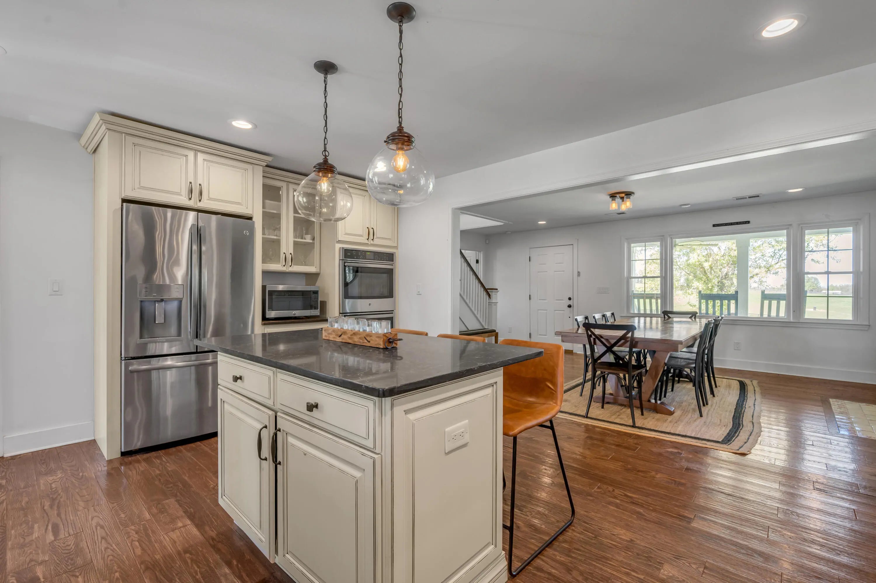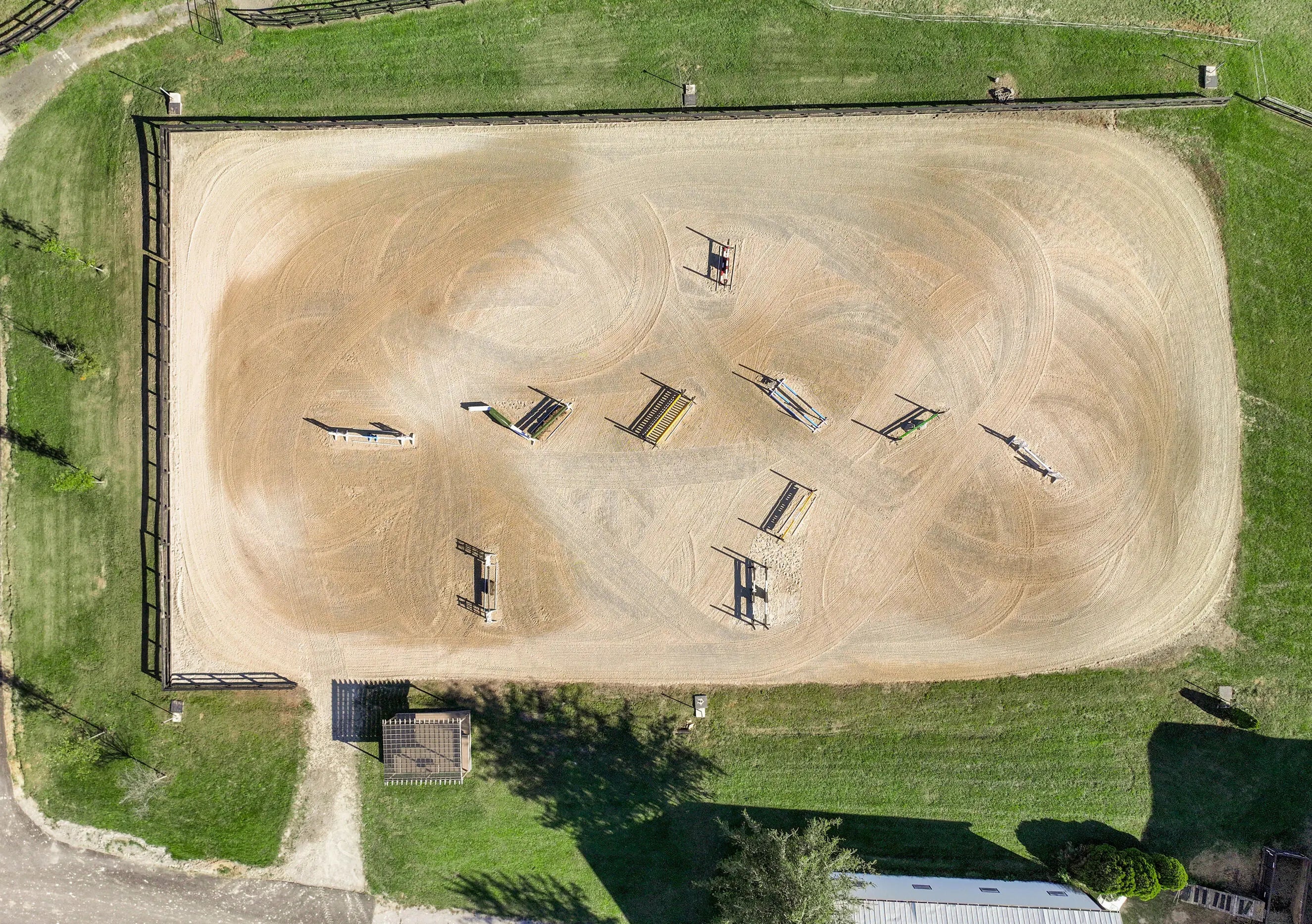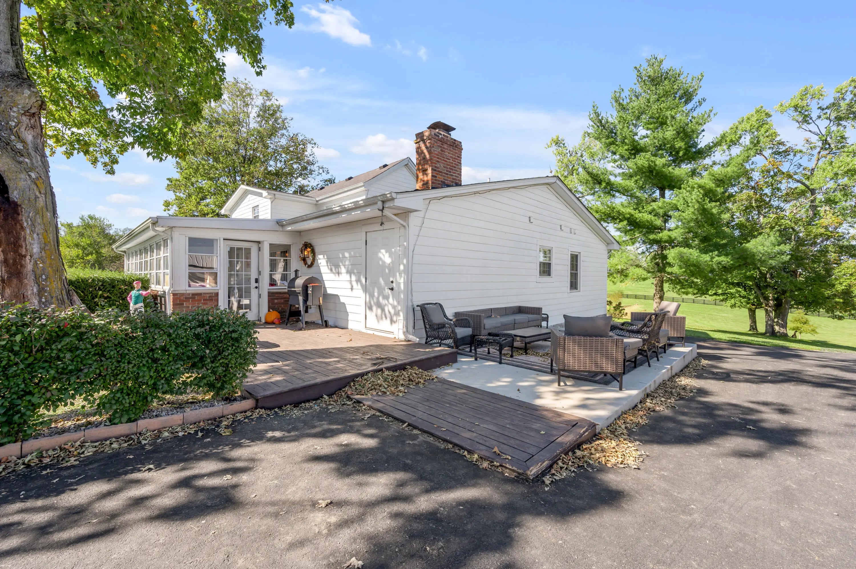 Discover this exceptional equestrian estate! Featuring four barns with a total of 49 stalls and spanning 46.45 acres, this property is ideal for professional horse enthusiasts. It offers a spacious 250'x125' outdoor arena and a 140'x72' indoor arena, both equipped with GGT footing. These arenas are irrigated using two water reclamation ponds. The two primary barns have been recently updated with new roofs, siding, and electrical systems. Additionally, there is an 80-foot round pen with Poly-Track footing. The property includes 11 grass paddocks and three large fields, perfect for retired horses and riding activities. The main residence, a 4-bedroom, 3-bathroom house, underwent a complete renovation in 2017, featuring beautiful oak wood flooring throughout and a chef's kitchen with high-quality stainless steel appliances, quartz countertops, and a tiled backsplash. The bathrooms are fitted with designer vanities, tiles, and fixtures. There are also one additional residences on the property: a 2-bedroom, 2-bathroom home, ideal for farm management or as guest accommodations.