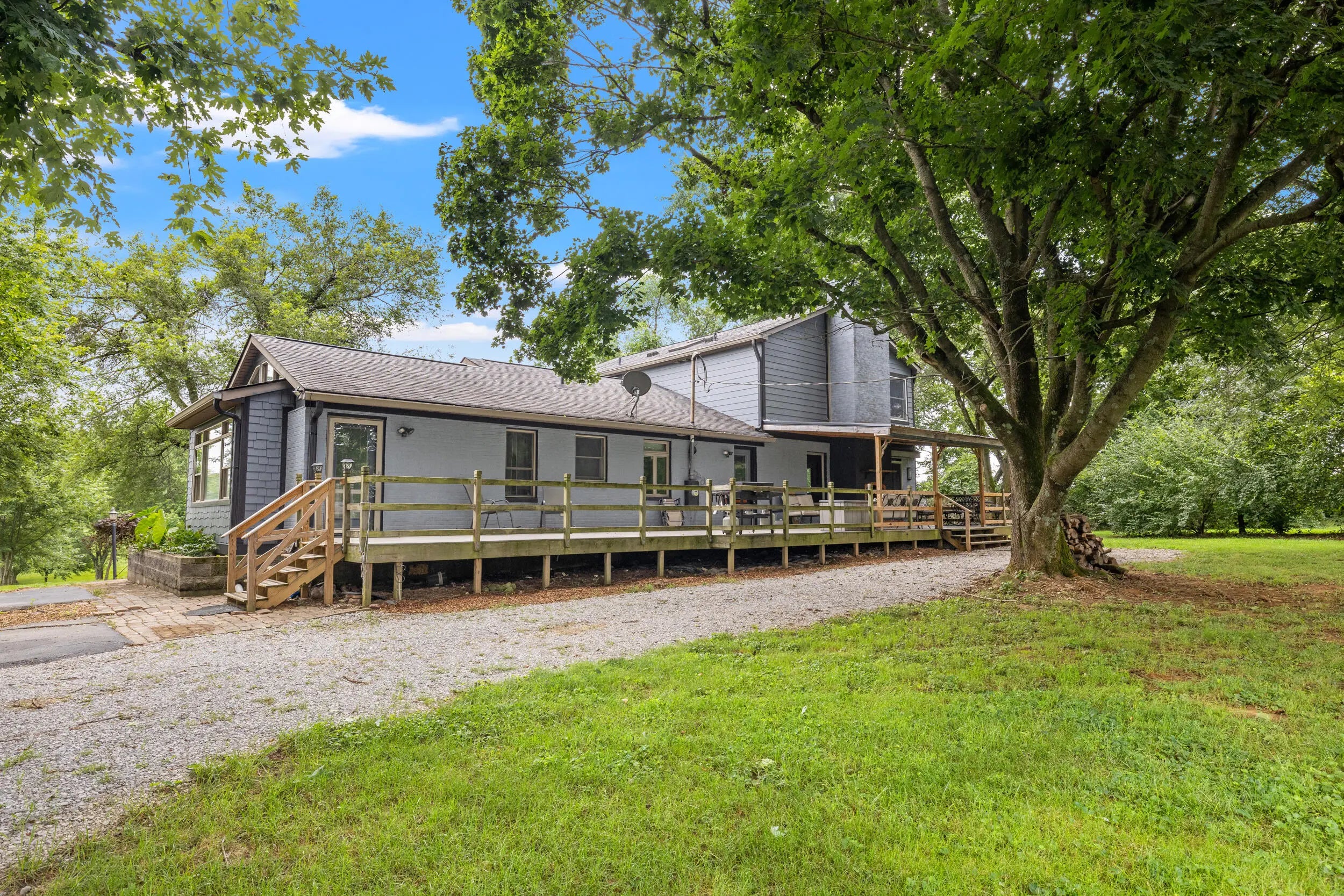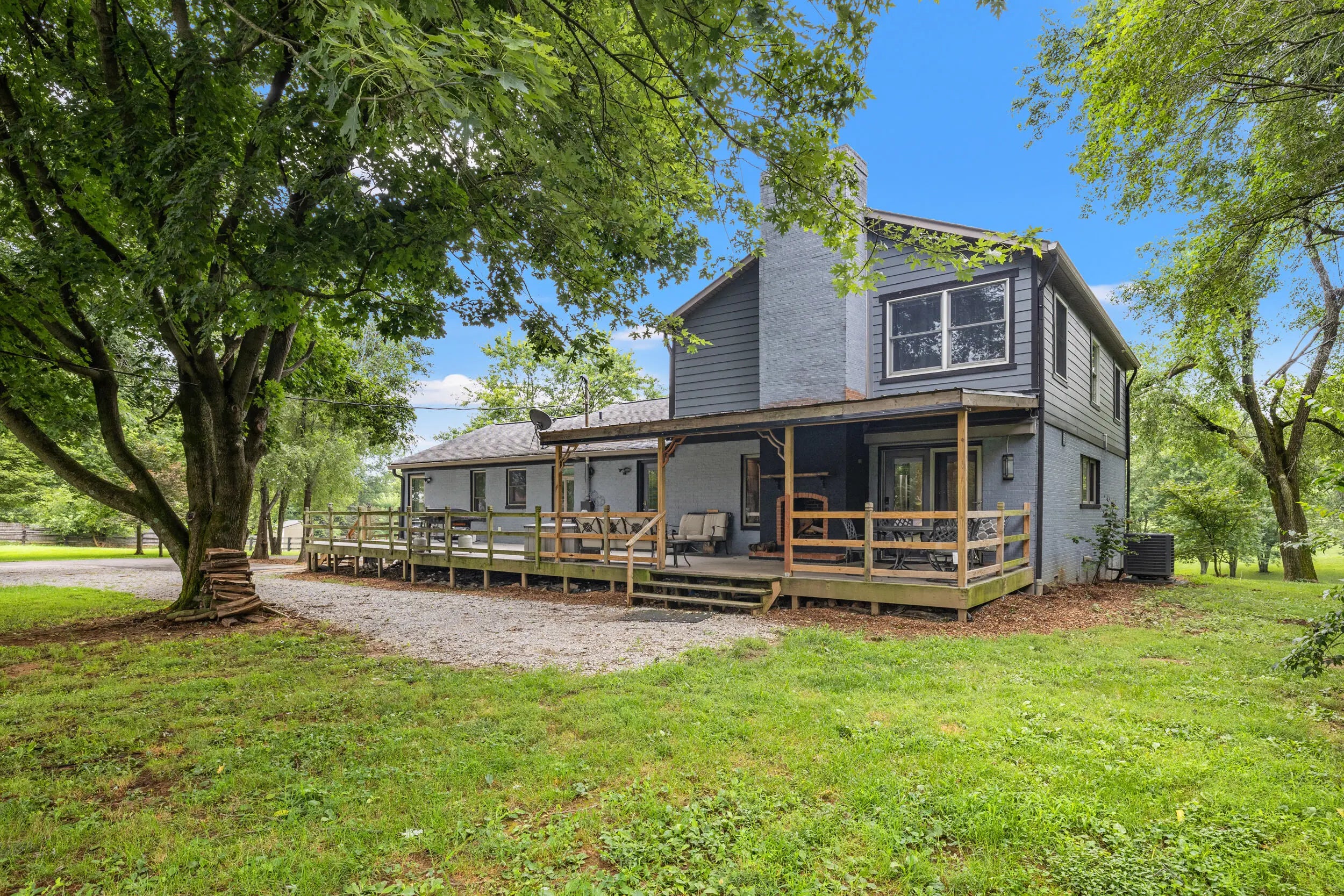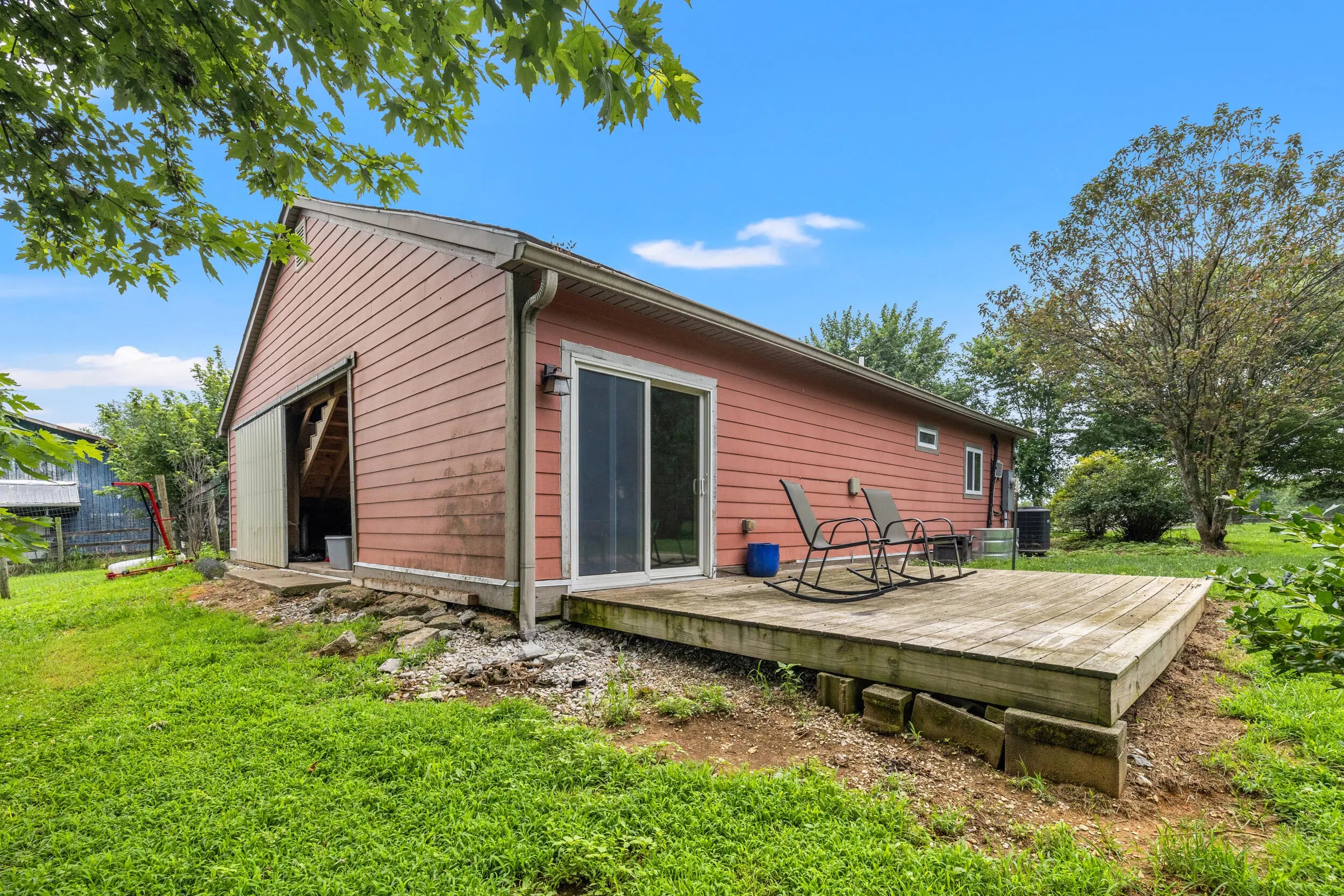 Craftsman charm meets modern function on this renovated 5-acre farm in Scott County, just minutes from Midway and Georgetown. The 3BR / 3.5BA main home features rich maple and cherry wood finishes, Andersen windows and doors, and custom-tiled ensuite baths in every bedroom including a spacious, light-filled primary suite. The gourmet kitchen includes dual sinks, a new cooktop, oversized island, and a cozy coffee nook. Outdoor living shines with a 41-ft Trex deck, new covered porch, and a custom brick fireplace. Updates include two new HVAC systems, fresh exterior paint, and an encapsulated crawl space. The 521 sq ft apartment to the barn offers a full kitchen, bath, bedroom, and living space—ideal for guests, multigenerational living, or rental income. Horse-ready with two fenced paddocks, two run-in sheds, and a two-stall barn with highlights including a custom chicken coop, fiber internet. Agent is related to the Sellers.
