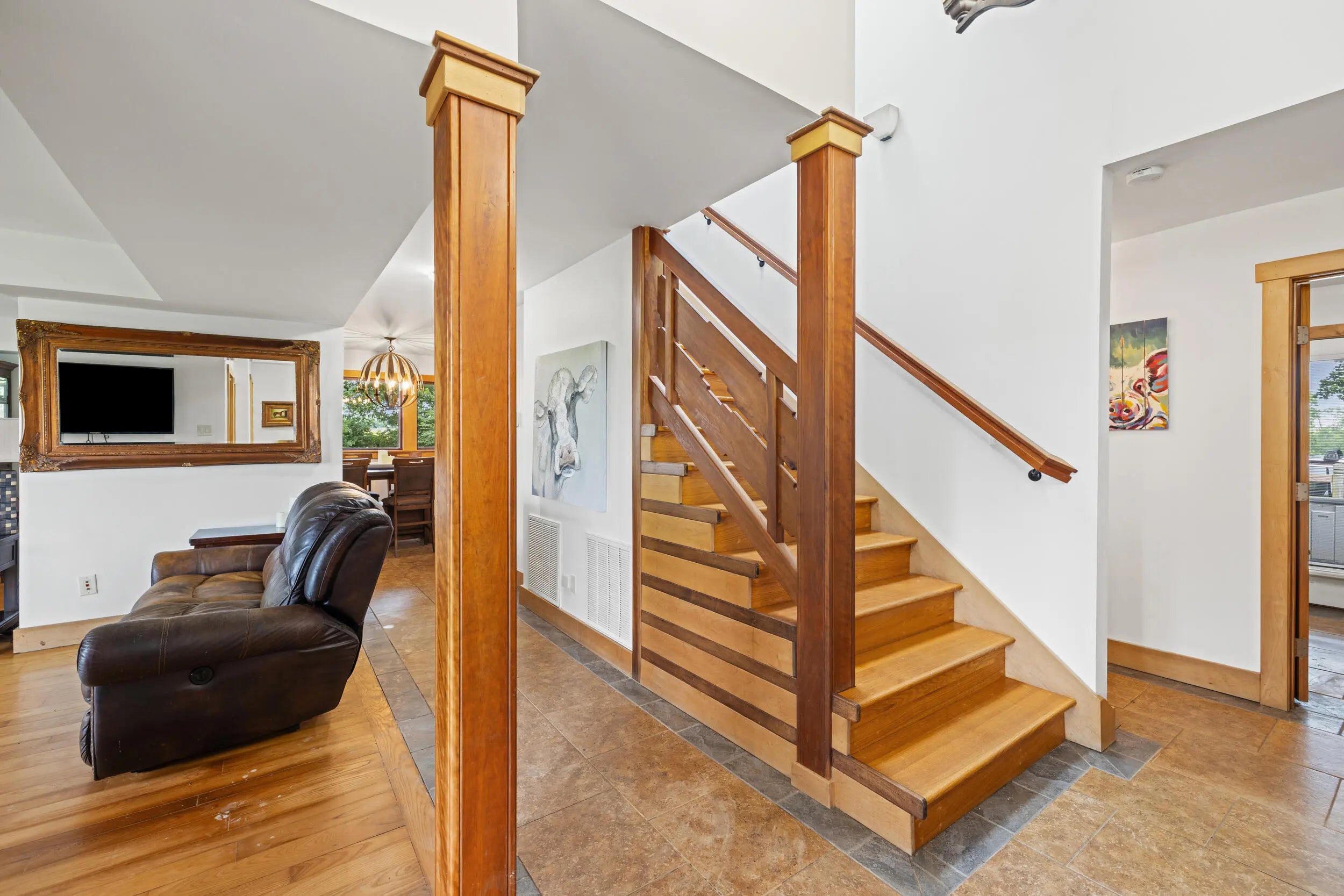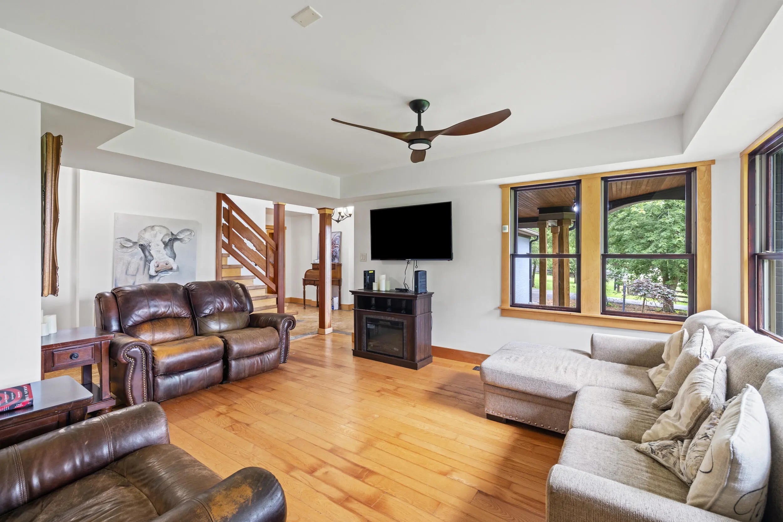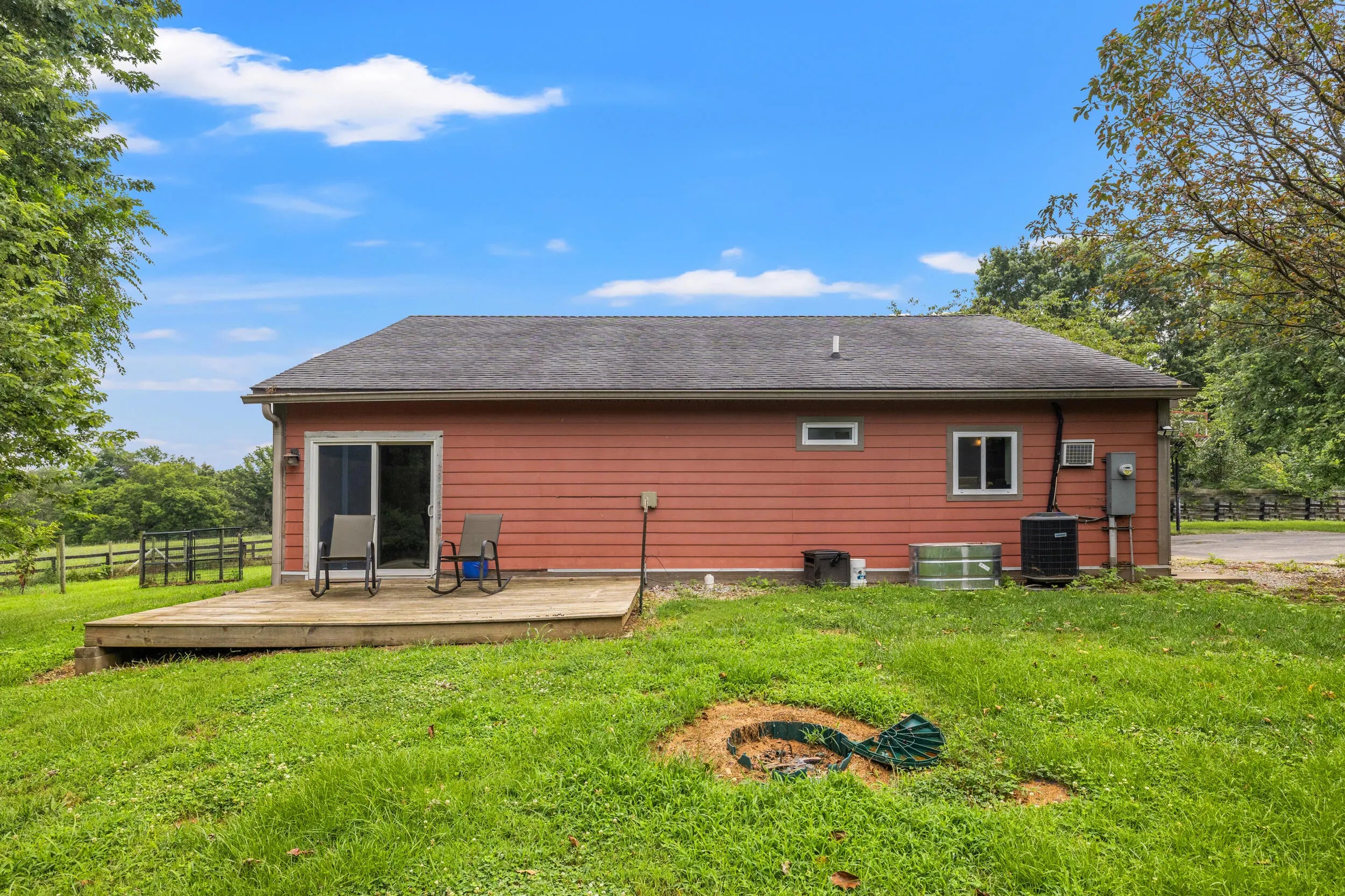 Craftsman charm meets modern function on this renovated 5-acre farm in Scott County, just minutes from Midway and Georgetown. The 3BR / 3.5BA main home features rich maple and cherry wood finishes, Andersen windows and doors, and custom-tiled ensuite baths in every bedroom including a spacious, light-filled primary suite. The gourmet kitchen includes dual sinks, a new cooktop, oversized island, and a cozy coffee nook. Outdoor living shines with a 41-ft Trex deck, new covered porch, and a custom brick fireplace. Updates include two new HVAC systems, fresh exterior paint, and an encapsulated crawl space. The 521 sq ft apartment to the barn offers a full kitchen, bath, bedroom, and living space—ideal for guests, multigenerational living, or rental income. Horse-ready with two fenced paddocks, two run-in sheds, and a two-stall barn with highlights including a custom chicken coop, fiber internet. Agent is related to the Sellers.
