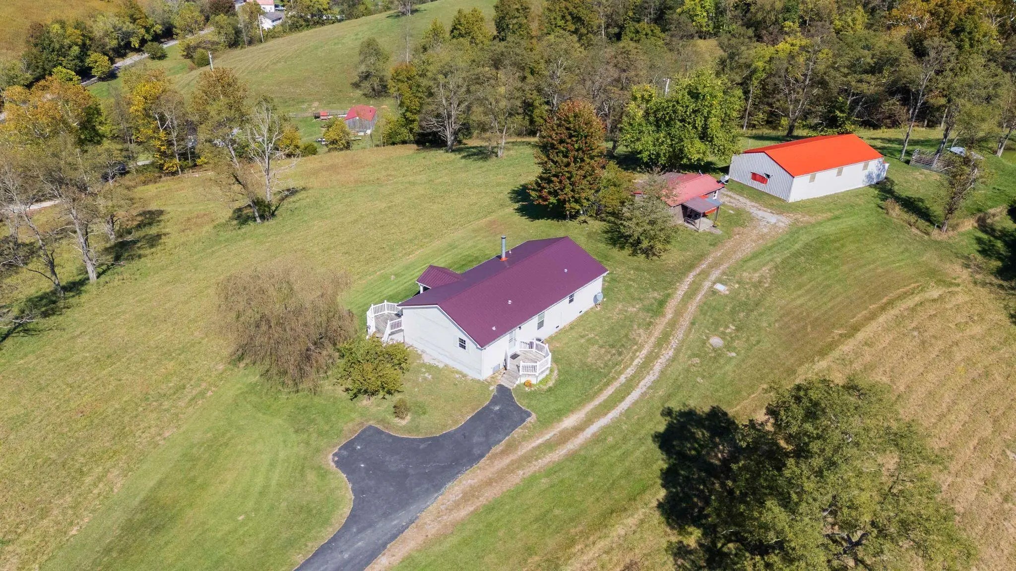 Country Living at Its Finest - 11.6 Acres of Peace and Possibility! Welcome to your own slice of Kentucky paradise! This 11.6-acre farm offers rolling hills, a paved driveway, and breathtaking views less than 5 miles from Interstate 75—peaceful country living with easy access to town. The 3-bedroom, 2-bath home, built in 2012, features a cozy wood-burning fireplace, charming front porch, and relaxing back deck—the perfect spots to enjoy sunrise coffee or sunset skies. A new metal roof adds lasting protection and peace of mind. Outside, discover a 30x50 metal barn/garage and a 14x30 cabin that can serve as a guest house, home office, or studio. The stocked pond is filled with catfish and bluegill—invites quiet afternoons of fishing and relaxation. Whether you dream of raising horses, cows, or chickens, this land is ready. Wildlife abounds—deer, turkeys, even bald eagles make frequent visits. With city water, septic, and internet, you can truly live, work, and relax here. This isn't just a farm, it's a lifestyle. A place to slow down, connect with nature, and create the life you've always dreamed of. Come experience it for yourself! Inspections welcome, sold as is.