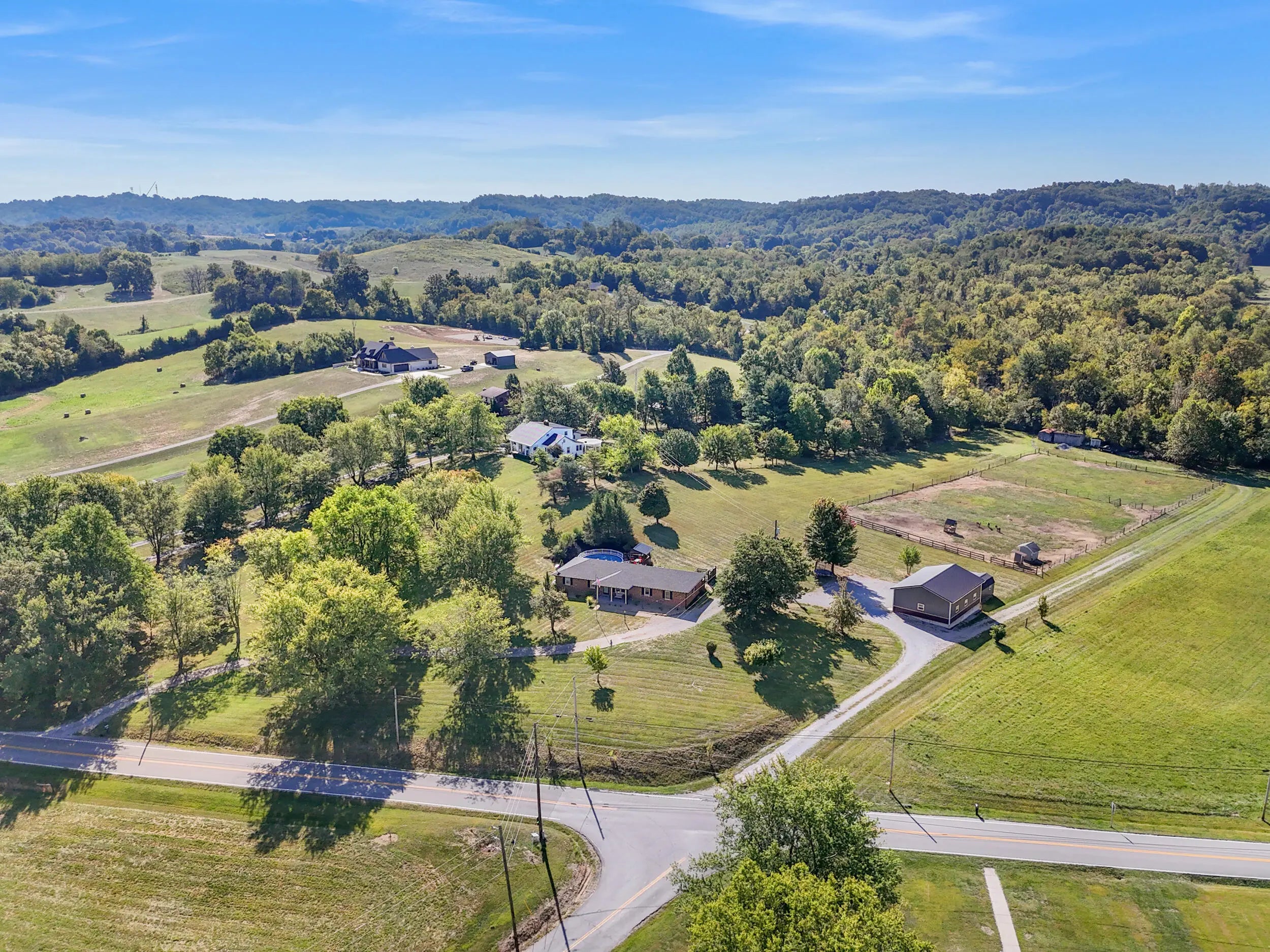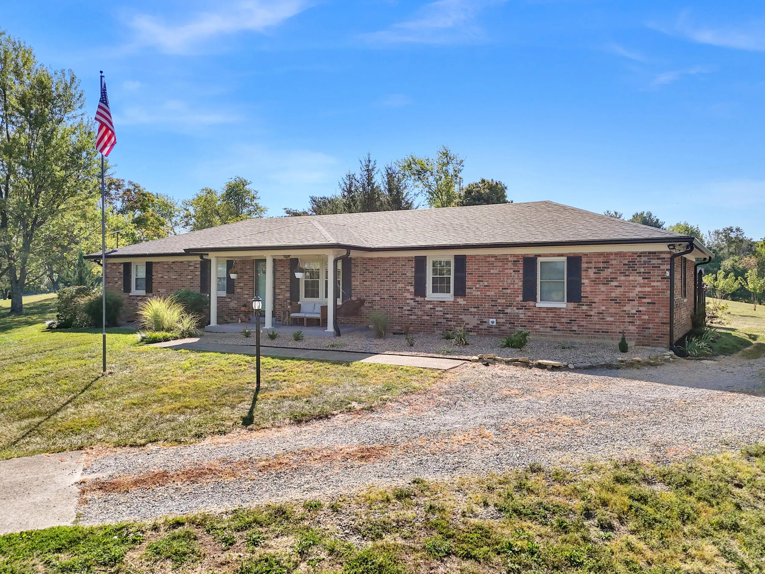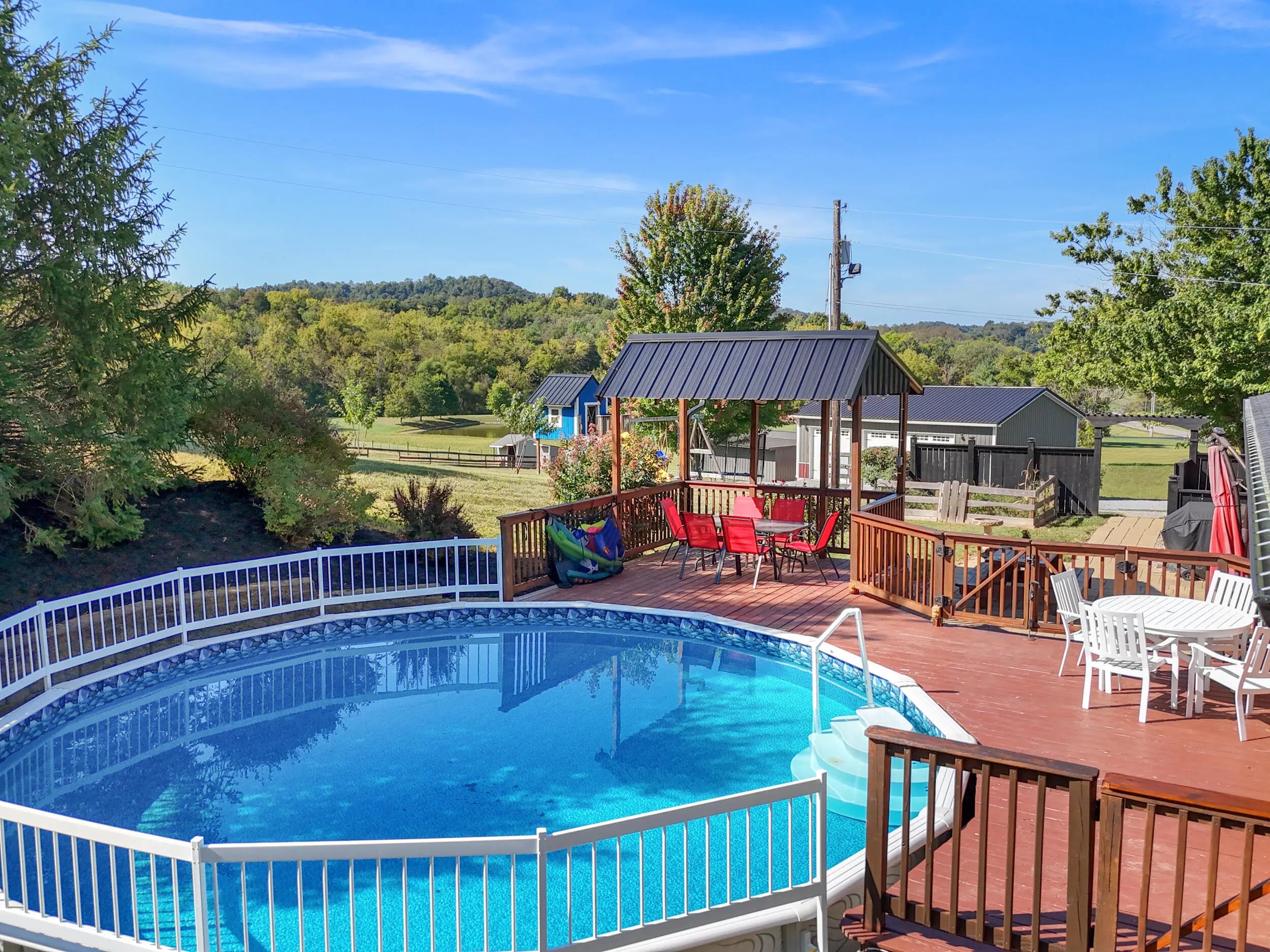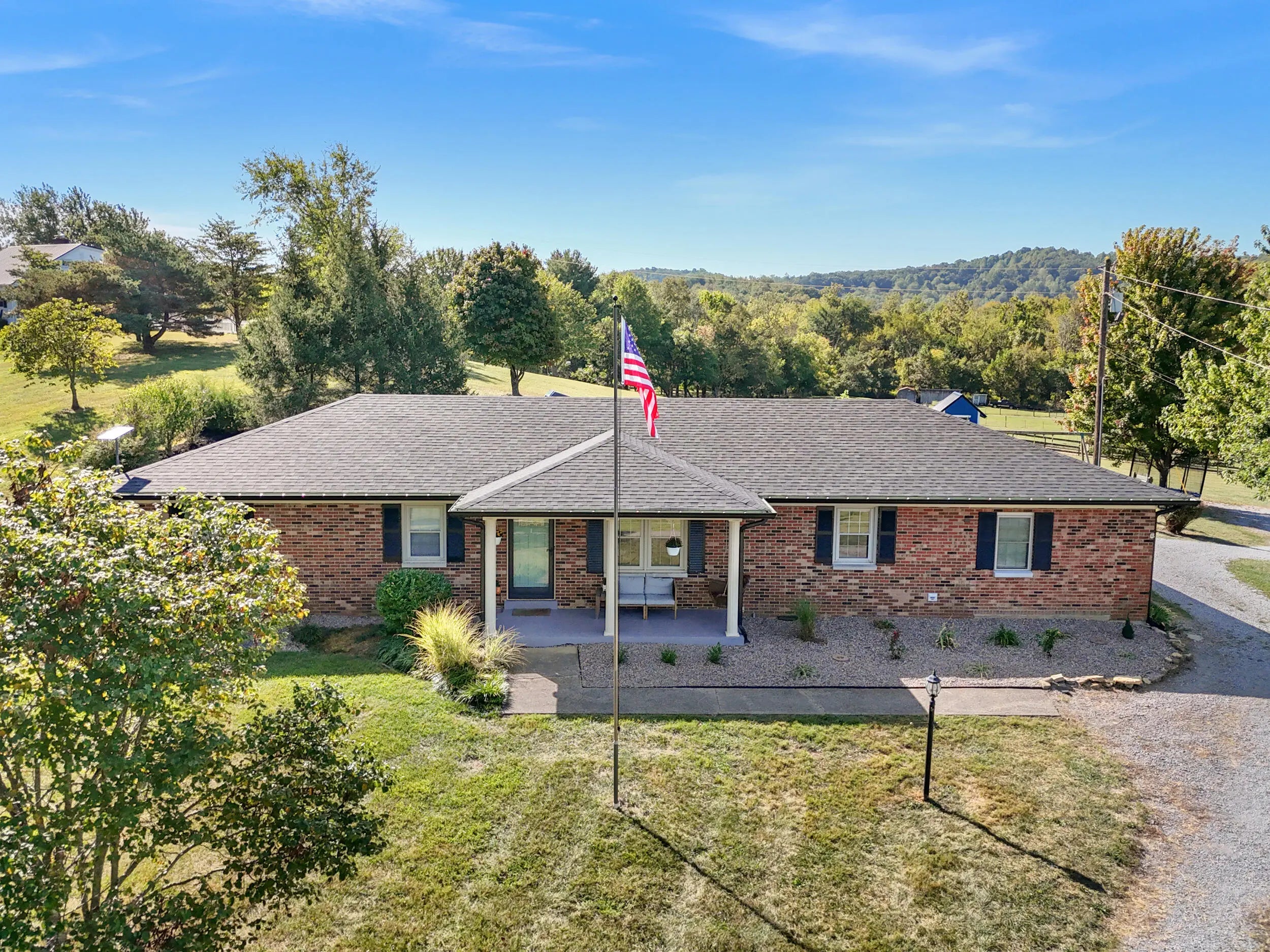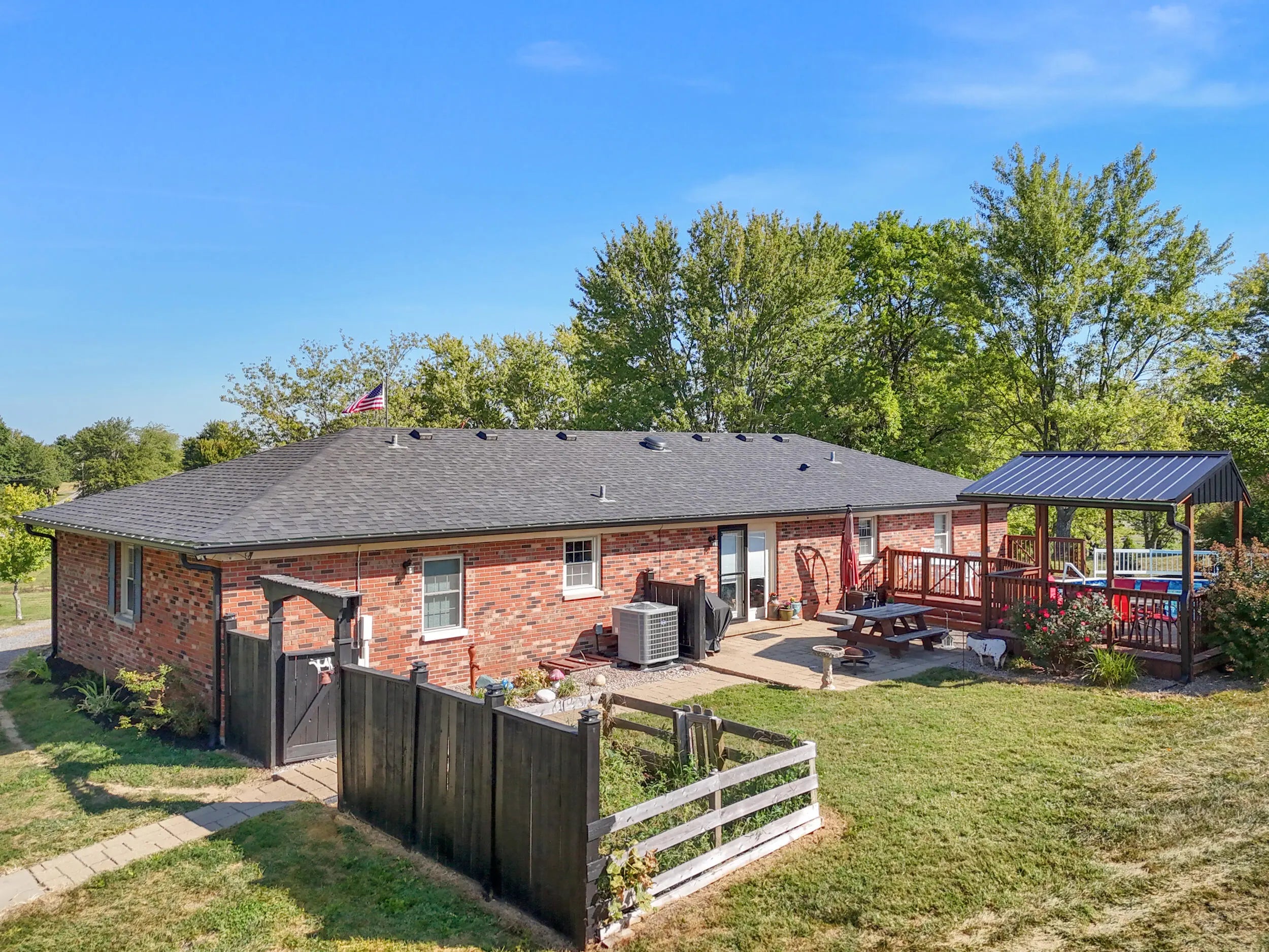 Beautiful Country Home on 5 Acres Minutes from Danville Enjoy peaceful country living with modern comforts in this spacious 4-bedroom, 2.5-bath brick ranch situated on 5 scenic acres. This home features a refreshing pool with brand-new decking, a newer roof, HVAC, and water heater, offering peace of mind for years to come. The newly added private master ensuite is a true retreat, boasting quartz countertops, marble flooring, tiled shower, and walk-in closet. The updated kitchen shines with granite countertops, a breakfast bar, and new appliances, opening to warm and welcoming living spaces. A huge utility/pantry room provides exceptional storage with a full wall of cabinetry. Outside, you'll find mature trees, a fenced pasture ready for horses or livestock, and an in-ground fence for dogs. The 1,200 sq. ft. detached 3-car garage gives plenty of room for vehicles and hobbies, complemented by additional barns and sheds for extra convenience. Set on a gentle hilltop with gorgeous rural countryside views, this property offers the best of both worlds—quiet country charm just 10 minutes from restaurants, schools, hospital, and shopping.