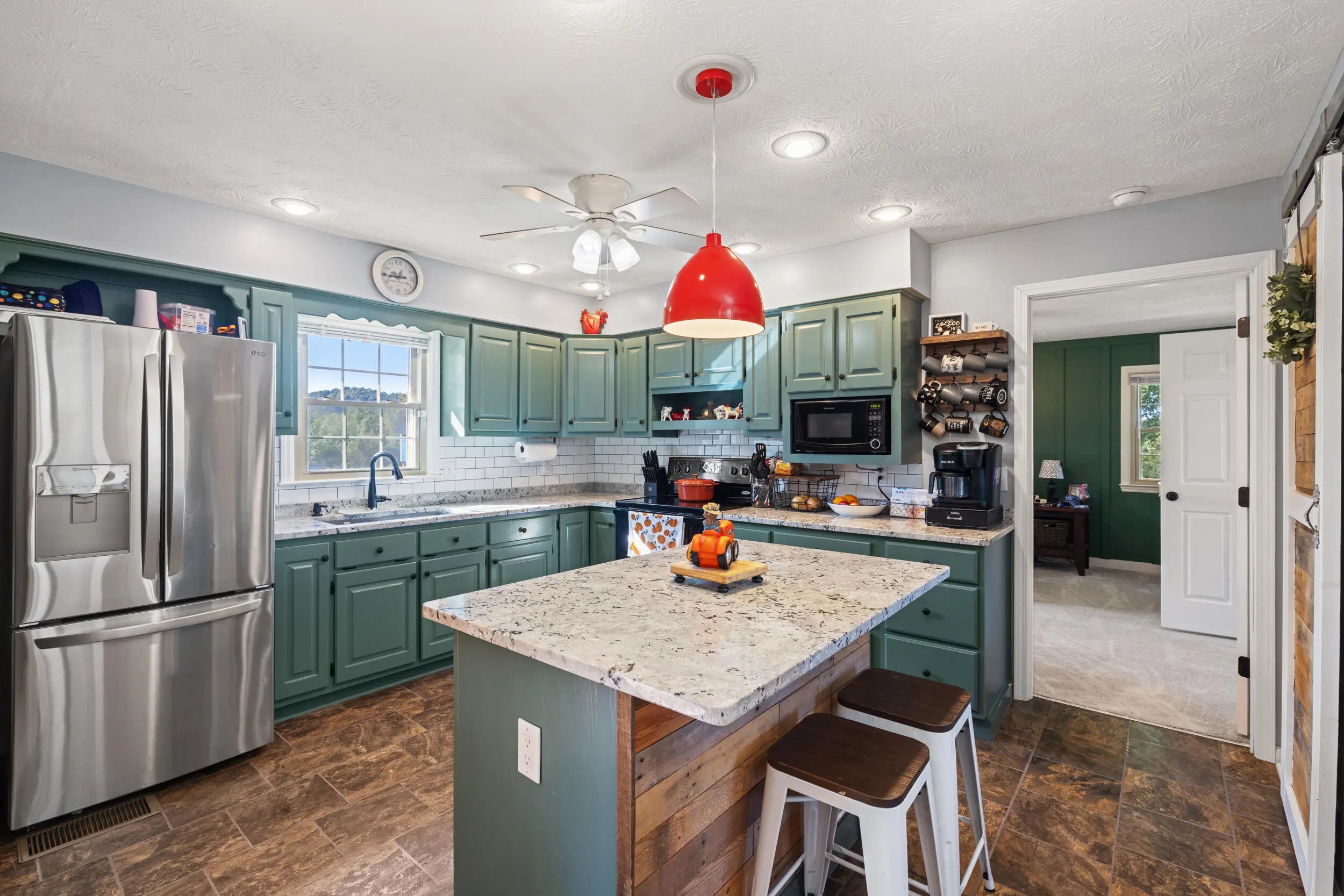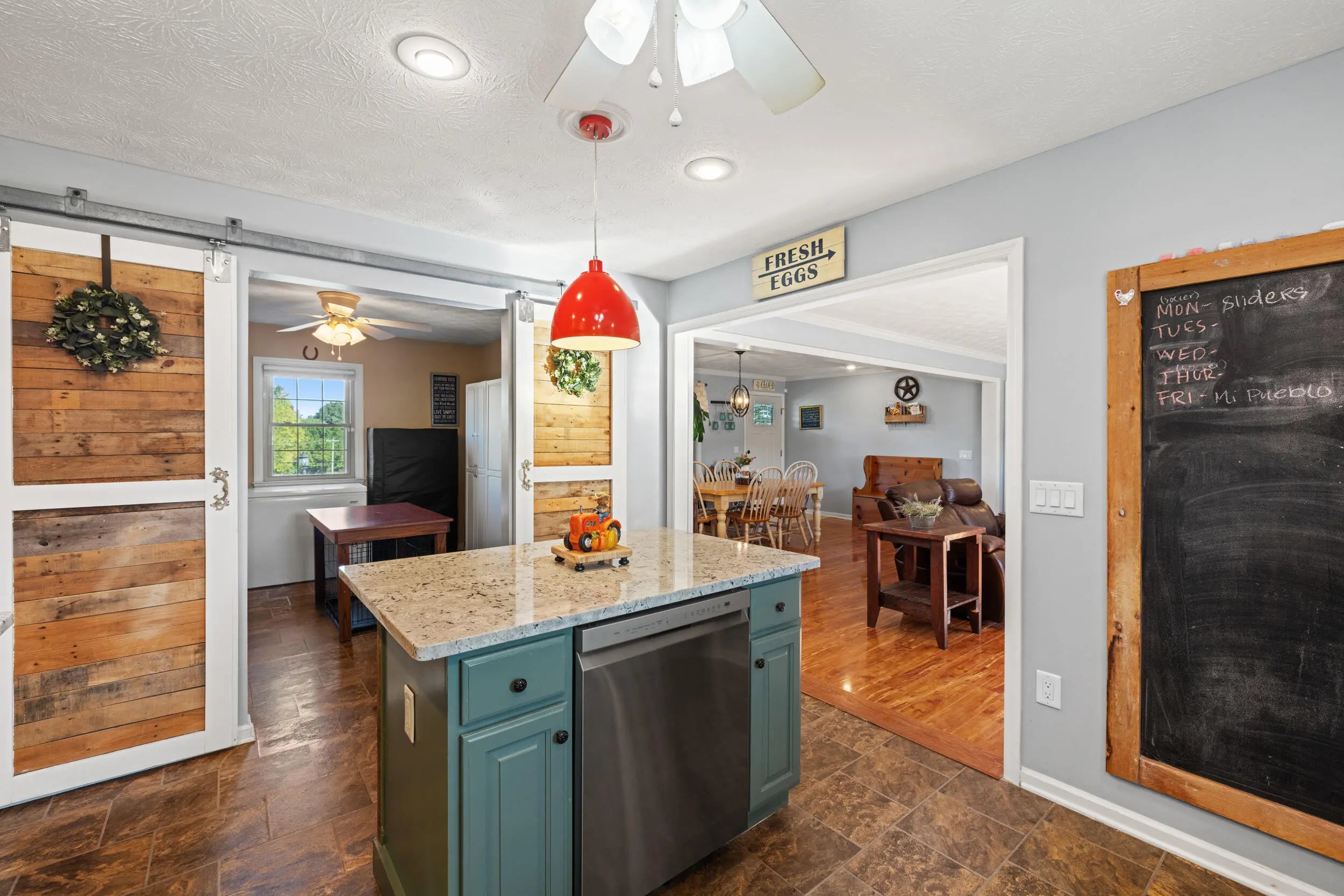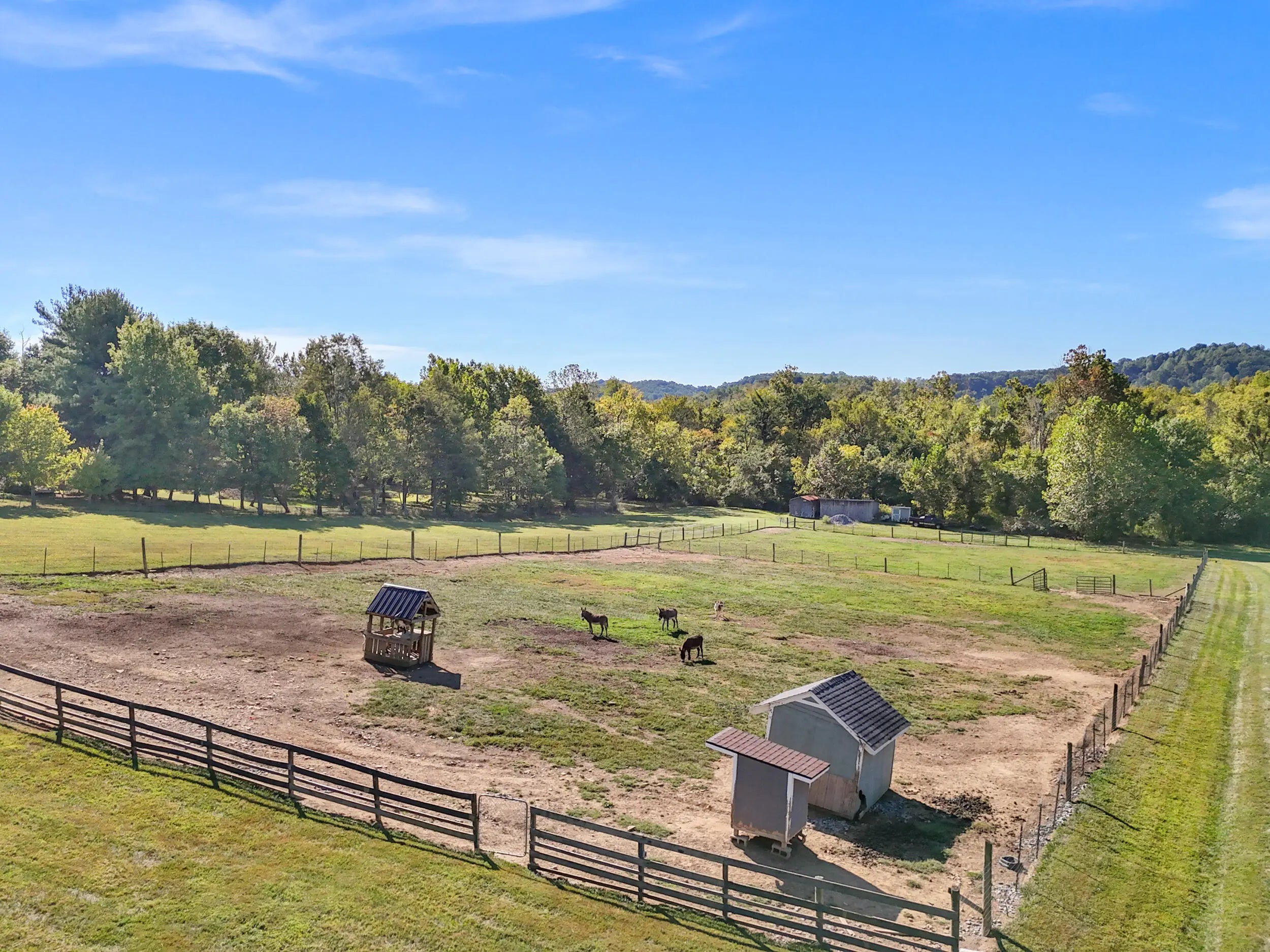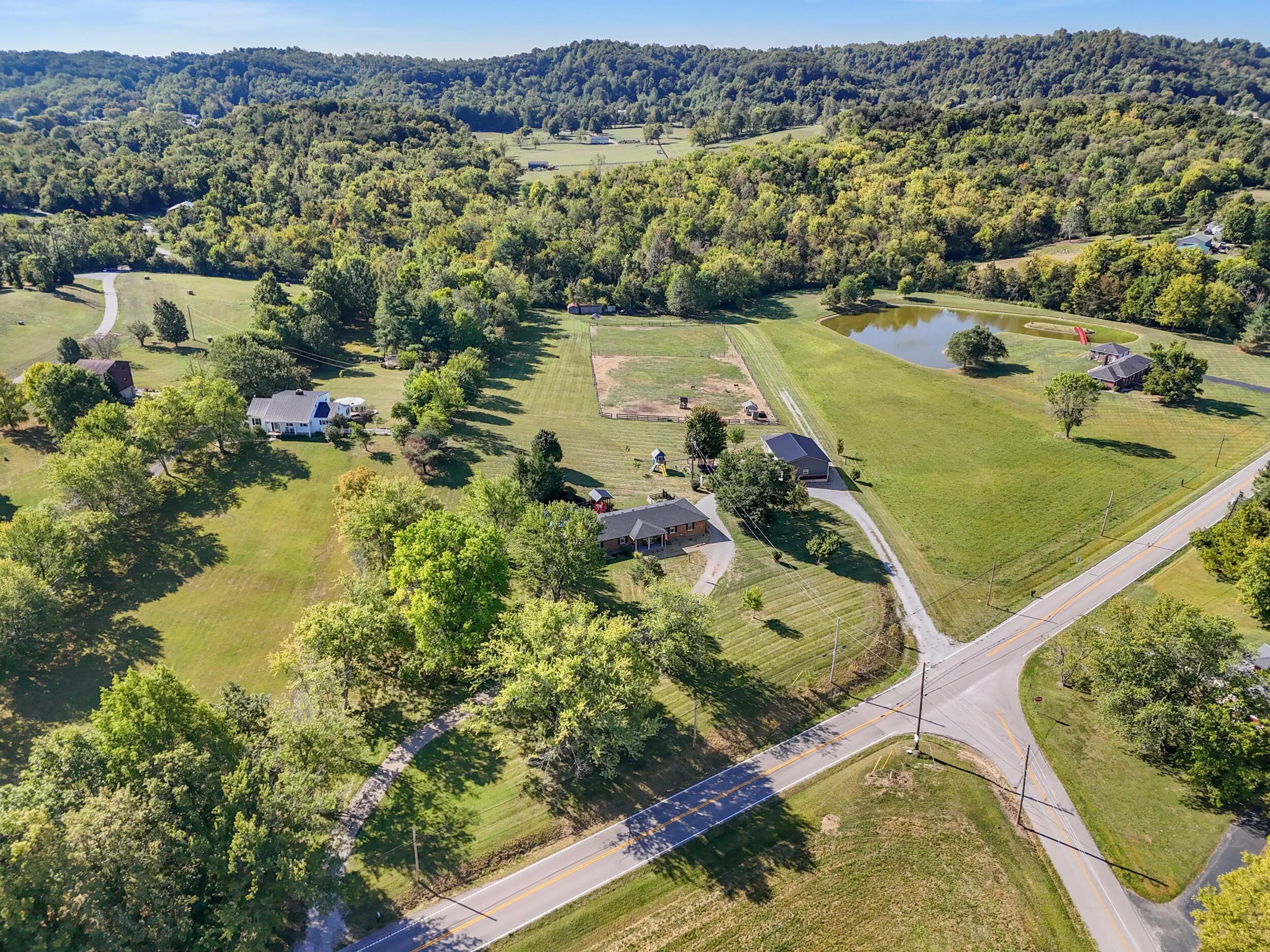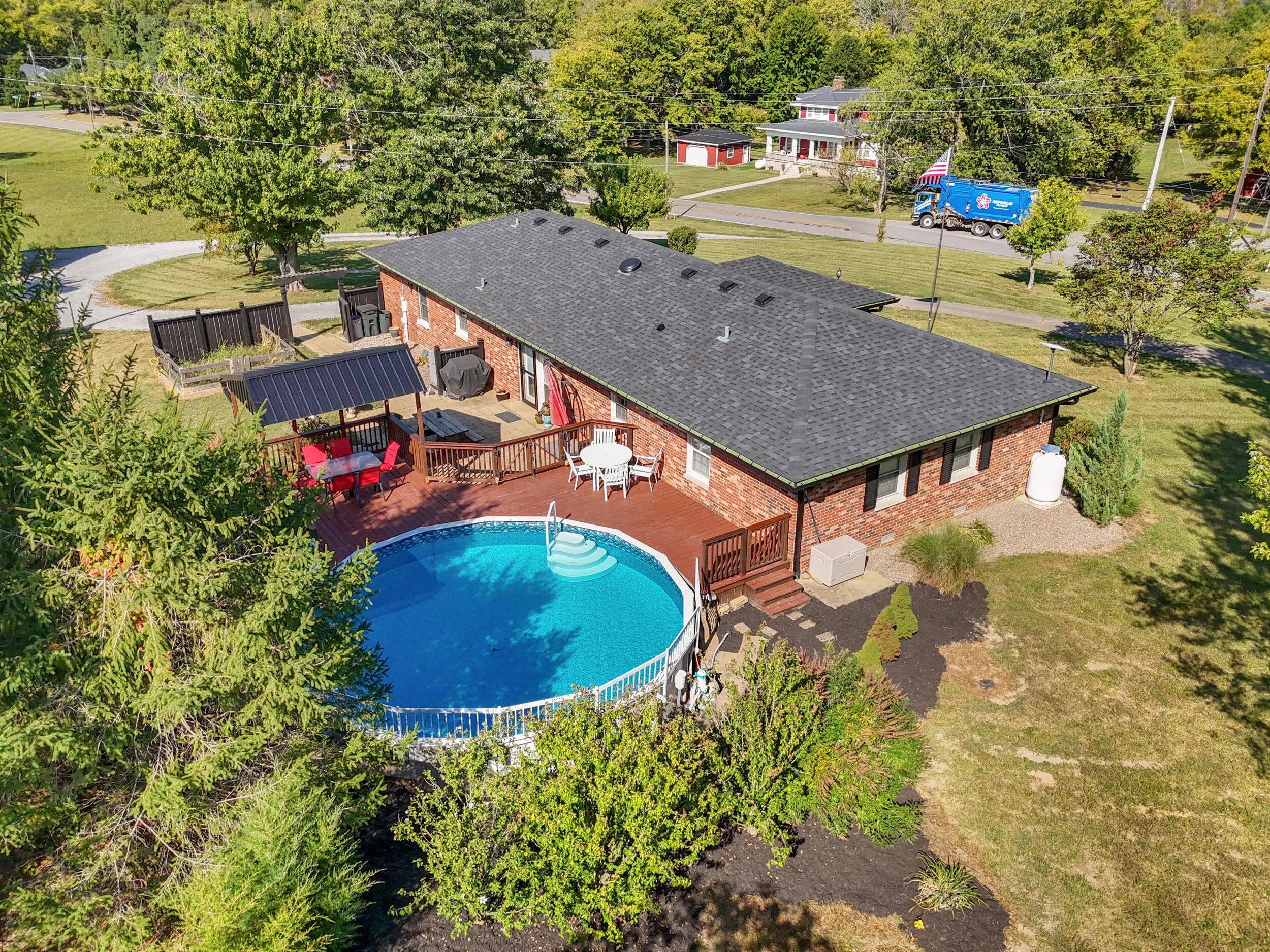 Beautiful Country Home on 5 Acres Minutes from Danville Enjoy peaceful country living with modern comforts in this spacious 4-bedroom, 2.5-bath brick ranch situated on 5 scenic acres. This home features a refreshing pool with brand-new decking, a newer roof, HVAC, and water heater, offering peace of mind for years to come. The newly added private master ensuite is a true retreat, boasting quartz countertops, marble flooring, tiled shower, and walk-in closet. The updated kitchen shines with granite countertops, a breakfast bar, and new appliances, opening to warm and welcoming living spaces. A huge utility/pantry room provides exceptional storage with a full wall of cabinetry. Outside, you'll find mature trees, a fenced pasture ready for horses or livestock, and an in-ground fence for dogs. The 1,200 sq. ft. detached 3-car garage gives plenty of room for vehicles and hobbies, complemented by additional barns and sheds for extra convenience. Set on a gentle hilltop with gorgeous rural countryside views, this property offers the best of both worlds—quiet country charm just 10 minutes from restaurants, schools, hospital, and shopping.