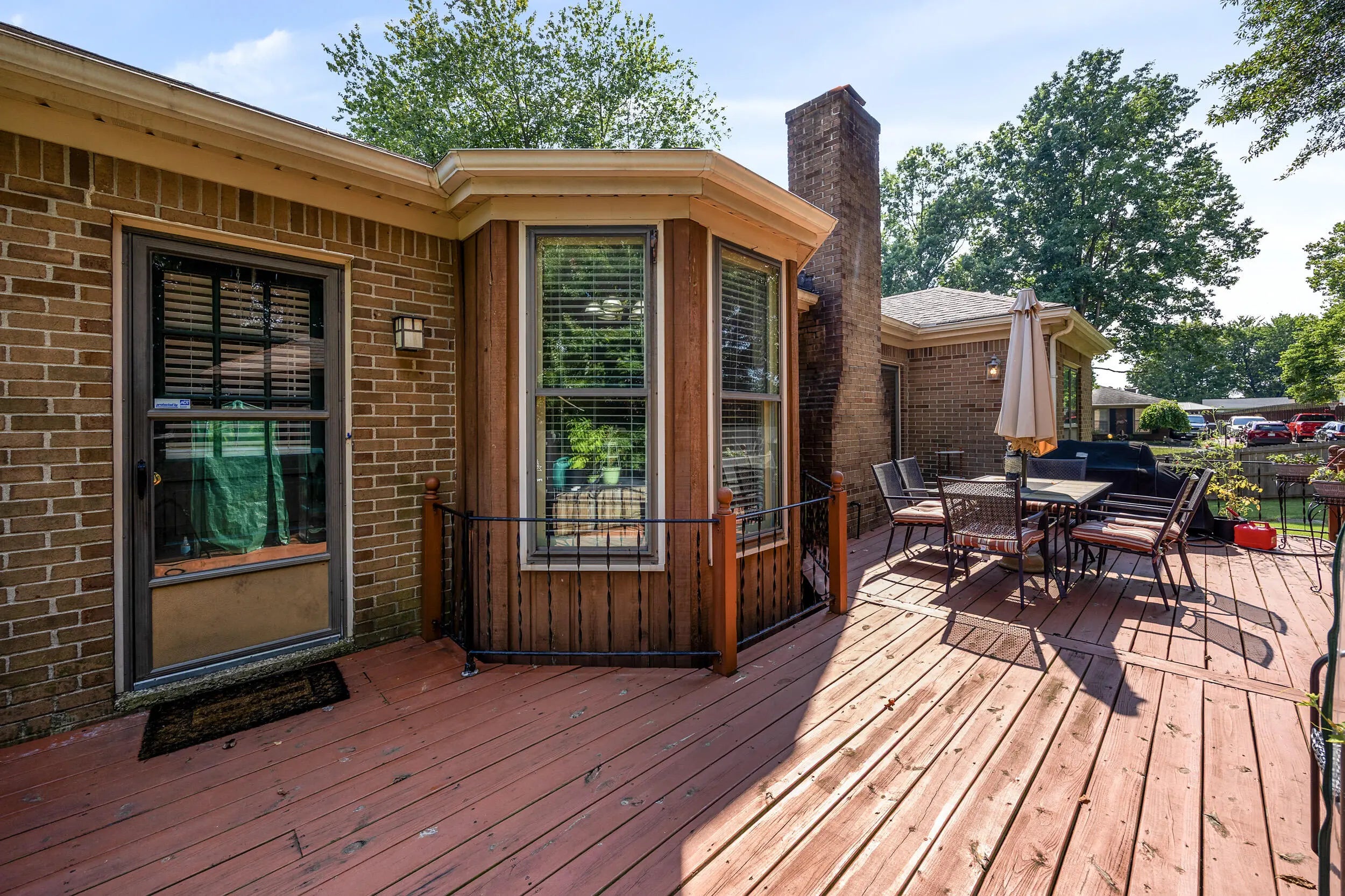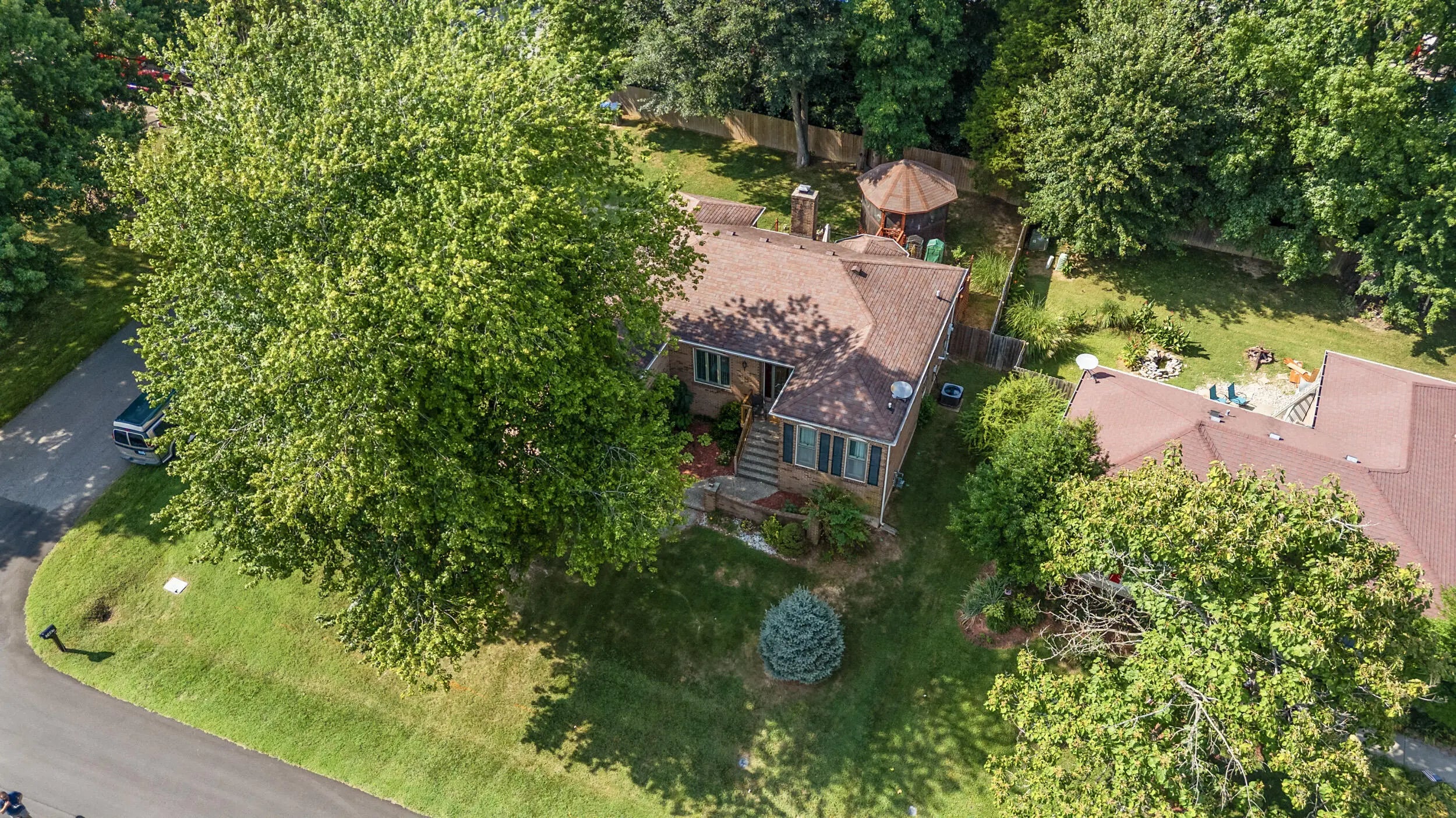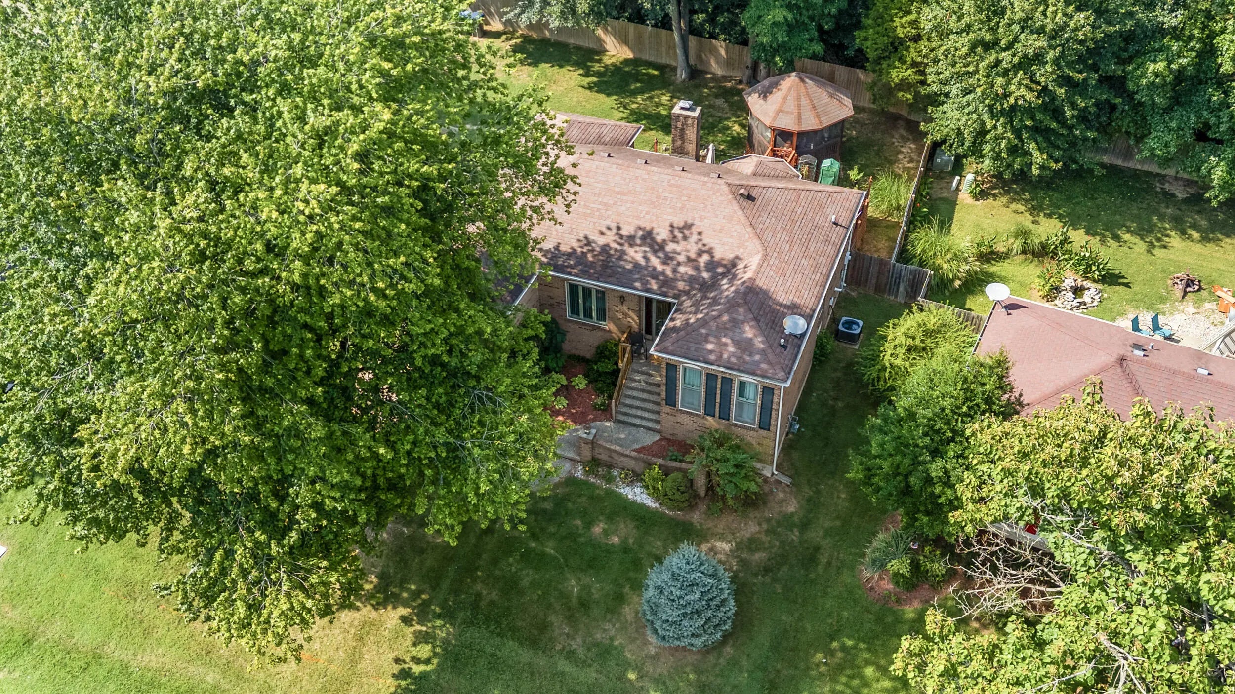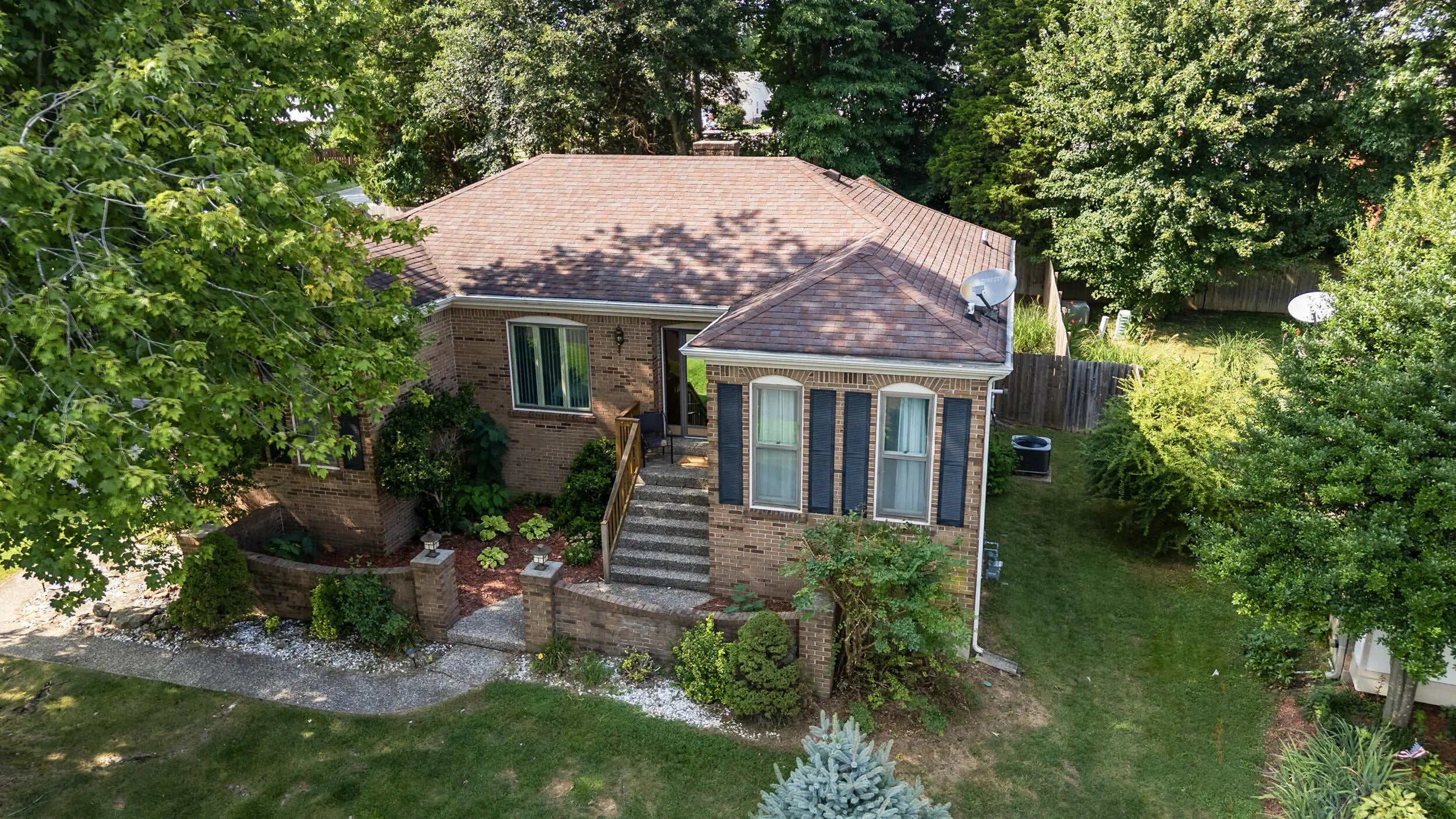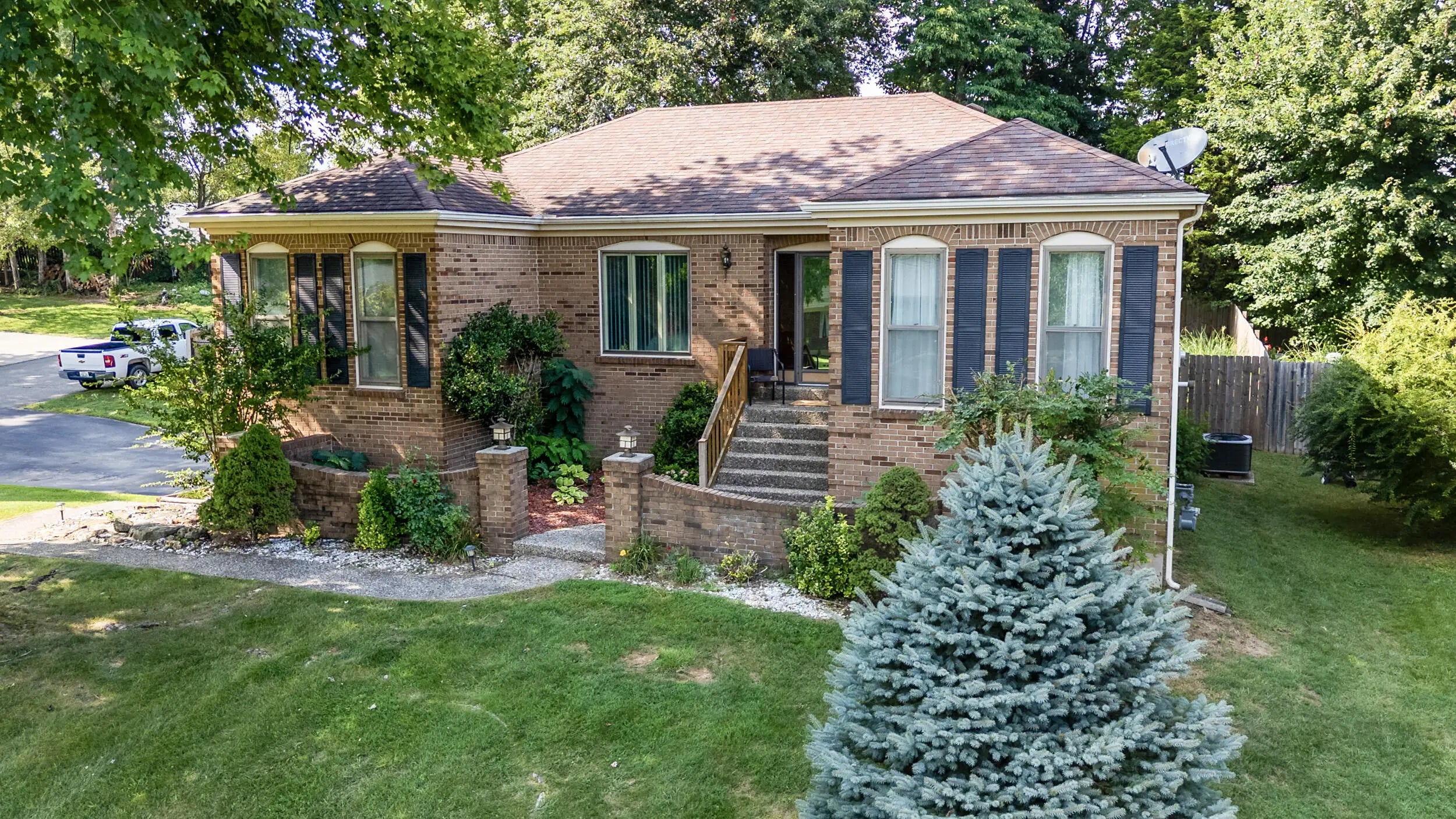 Charming all brick ranch offering 3 bedrooms, bonus room, 2 full bathrooms, attached 2 car garage and a finished basement! Desired location walking distance to Highview park, large corner lot, backyard fenced, no HOAs, under $320k! Step inside to find a warm and inviting layout. The living room features bold accent walls and opens into a formal dining area with crown molding and hardwood floors, ideal for hosting gatherings. A spacious family room boasts vaulted ceilings with wood beams, a striking brick fireplace, built-in shelving and French doors leading to the expansive private deck. The kitchen offers stainless steel appliances, and a cozy breakfast nook surrounded by windows for natural light and another walk out to the deck and gazebo! The main level includes 3 large bedrooms, including a primary suite with an updated double-sink vanity and walk in shower. The finished basement adds even more living space, featuring a versatile rec room, additional storage, and access to the 2-car garage. Outside, enjoy the fenced backyard with a large deck and a screened-in gazebo—ideal for entertaining, dining, or simply enjoying your morning coffee in peace. Perennial landscaping & mature trees provide shade and privacy, enhancing the home's curb appeal. Schedule your showing today!
