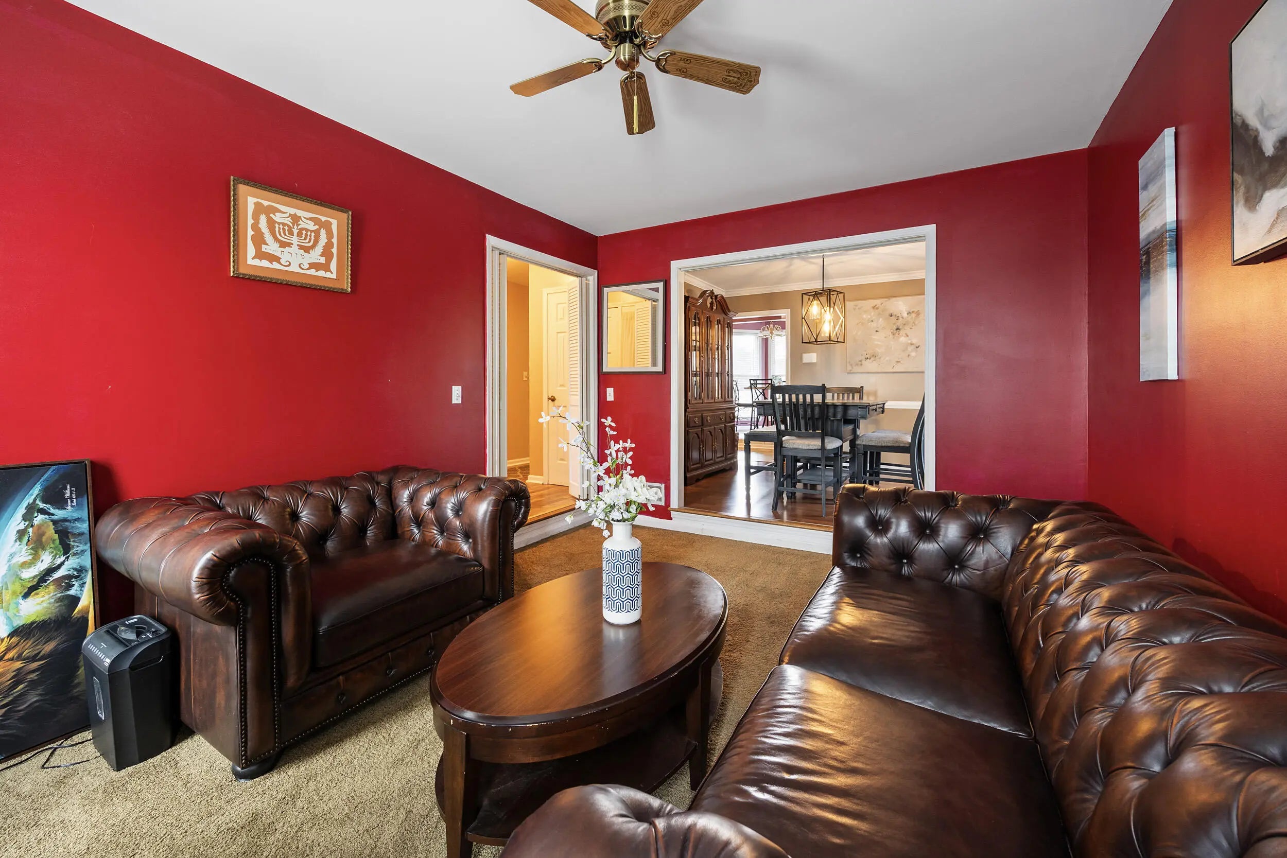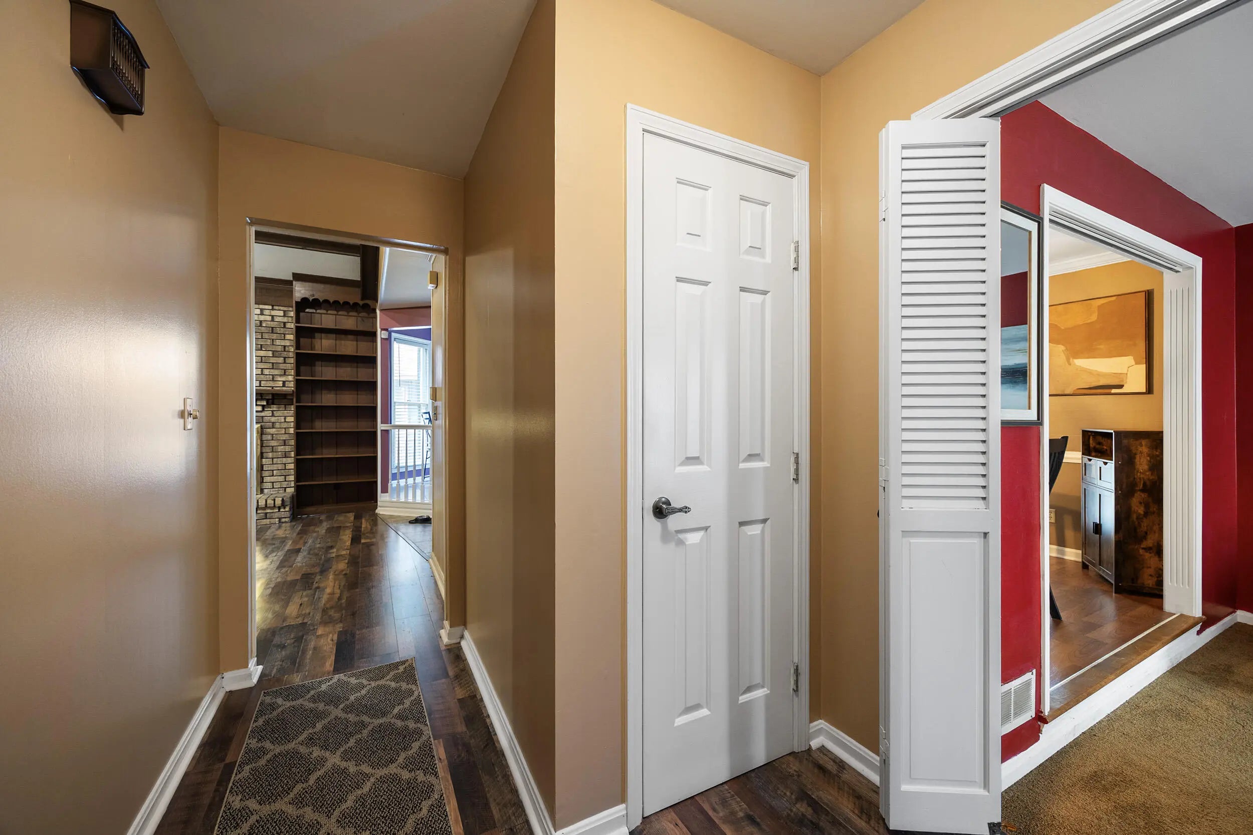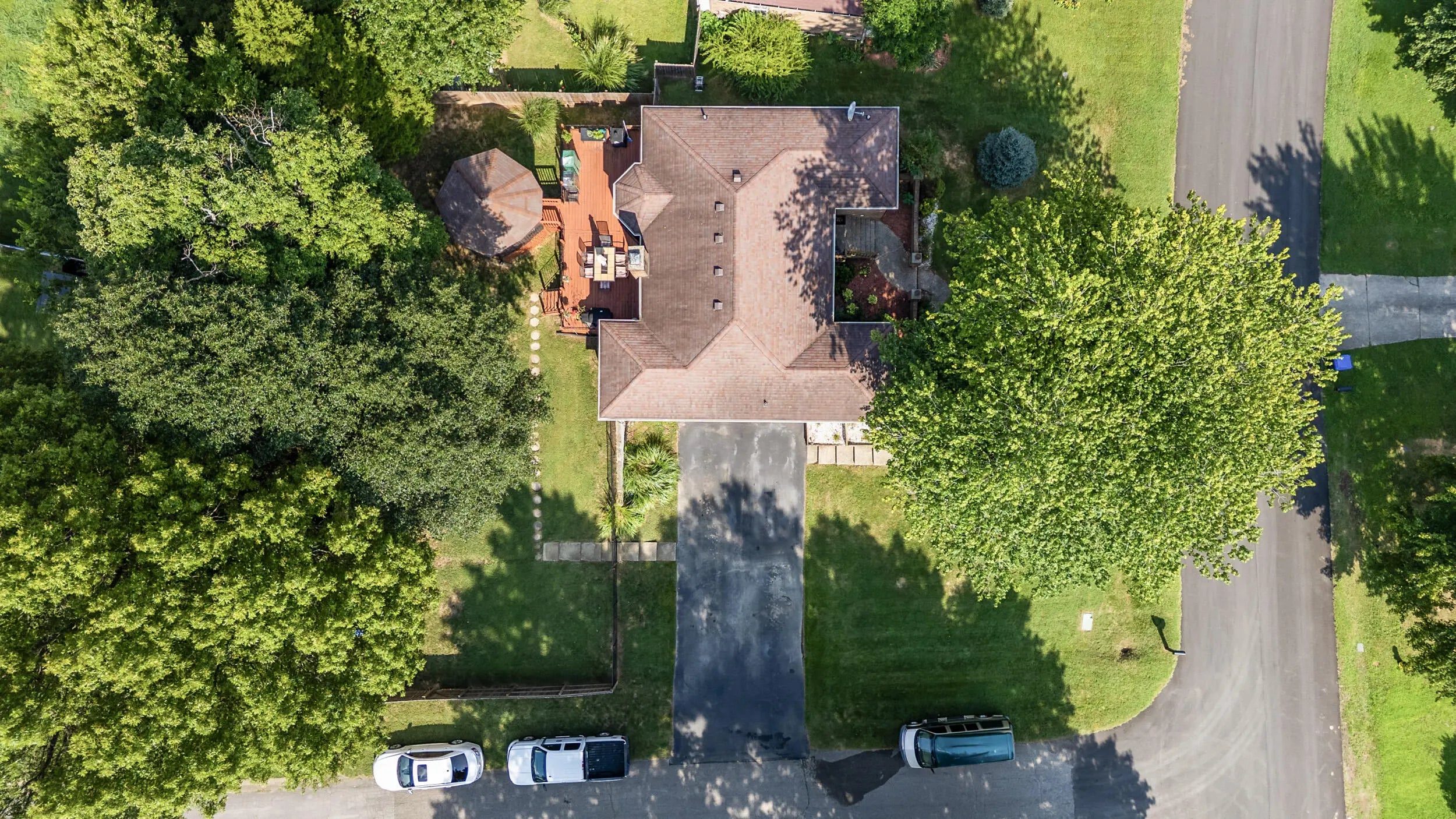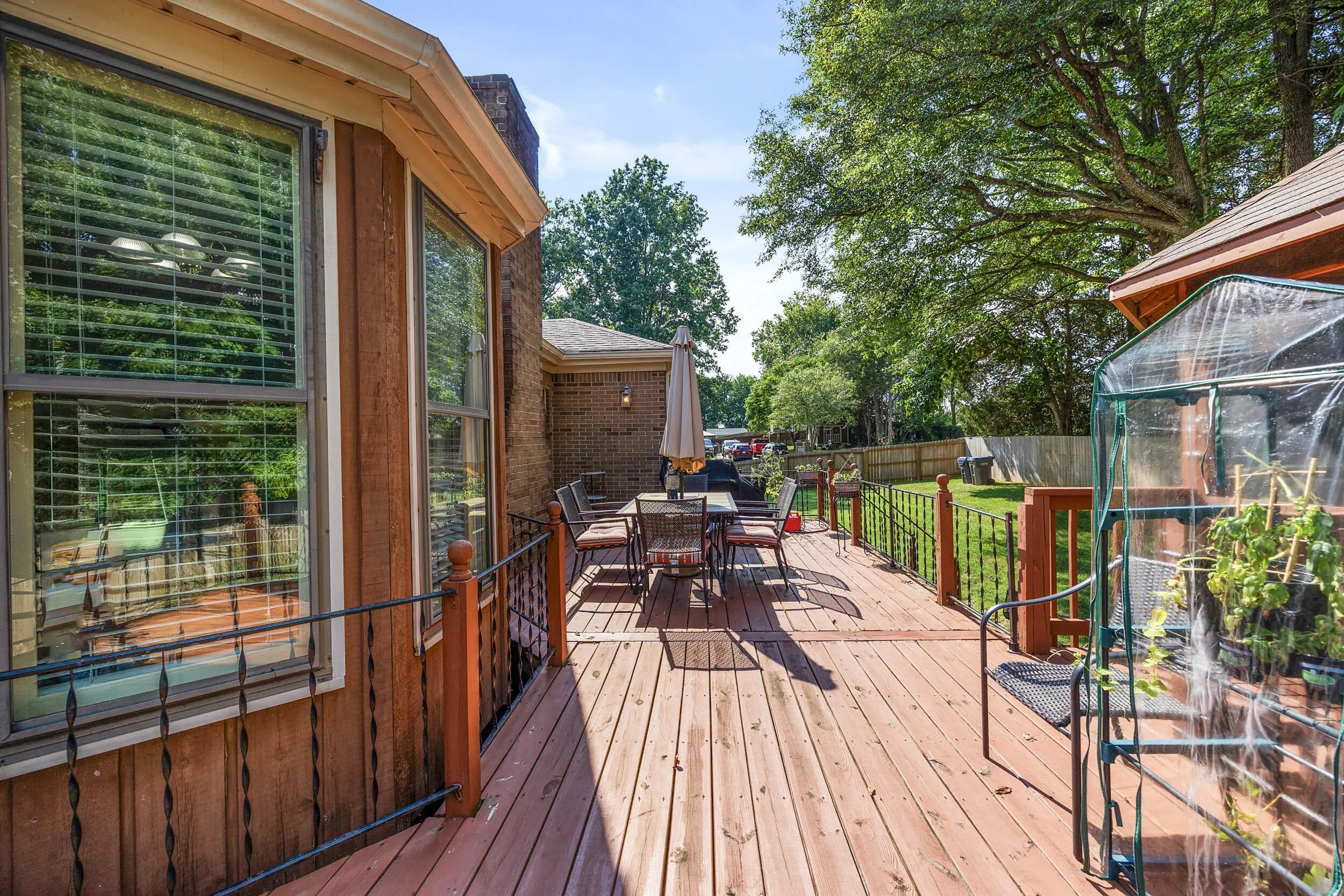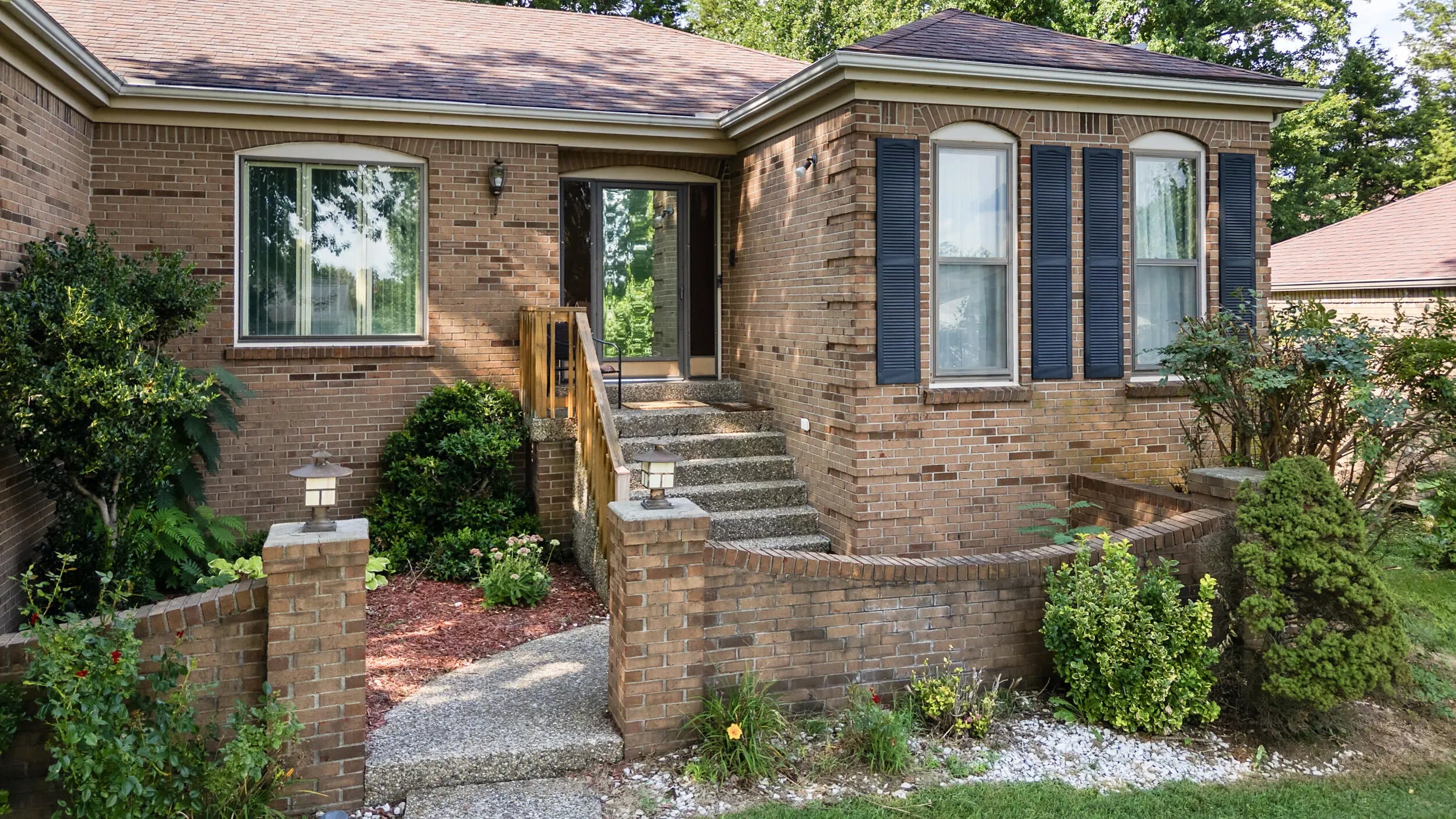 Charming all brick ranch offering 3 bedrooms, bonus room, 2 full bathrooms, attached 2 car garage and a finished basement! Desired location walking distance to Highview park, large corner lot, backyard fenced, no HOAs, under $320k! Step inside to find a warm and inviting layout. The living room features bold accent walls and opens into a formal dining area with crown molding and hardwood floors, ideal for hosting gatherings. A spacious family room boasts vaulted ceilings with wood beams, a striking brick fireplace, built-in shelving and French doors leading to the expansive private deck. The kitchen offers stainless steel appliances, and a cozy breakfast nook surrounded by windows for natural light and another walk out to the deck and gazebo! The main level includes 3 large bedrooms, including a primary suite with an updated double-sink vanity and walk in shower. The finished basement adds even more living space, featuring a versatile rec room, additional storage, and access to the 2-car garage. Outside, enjoy the fenced backyard with a large deck and a screened-in gazebo—ideal for entertaining, dining, or simply enjoying your morning coffee in peace. Perennial landscaping & mature trees provide shade and privacy, enhancing the home's curb appeal. Schedule your showing today!