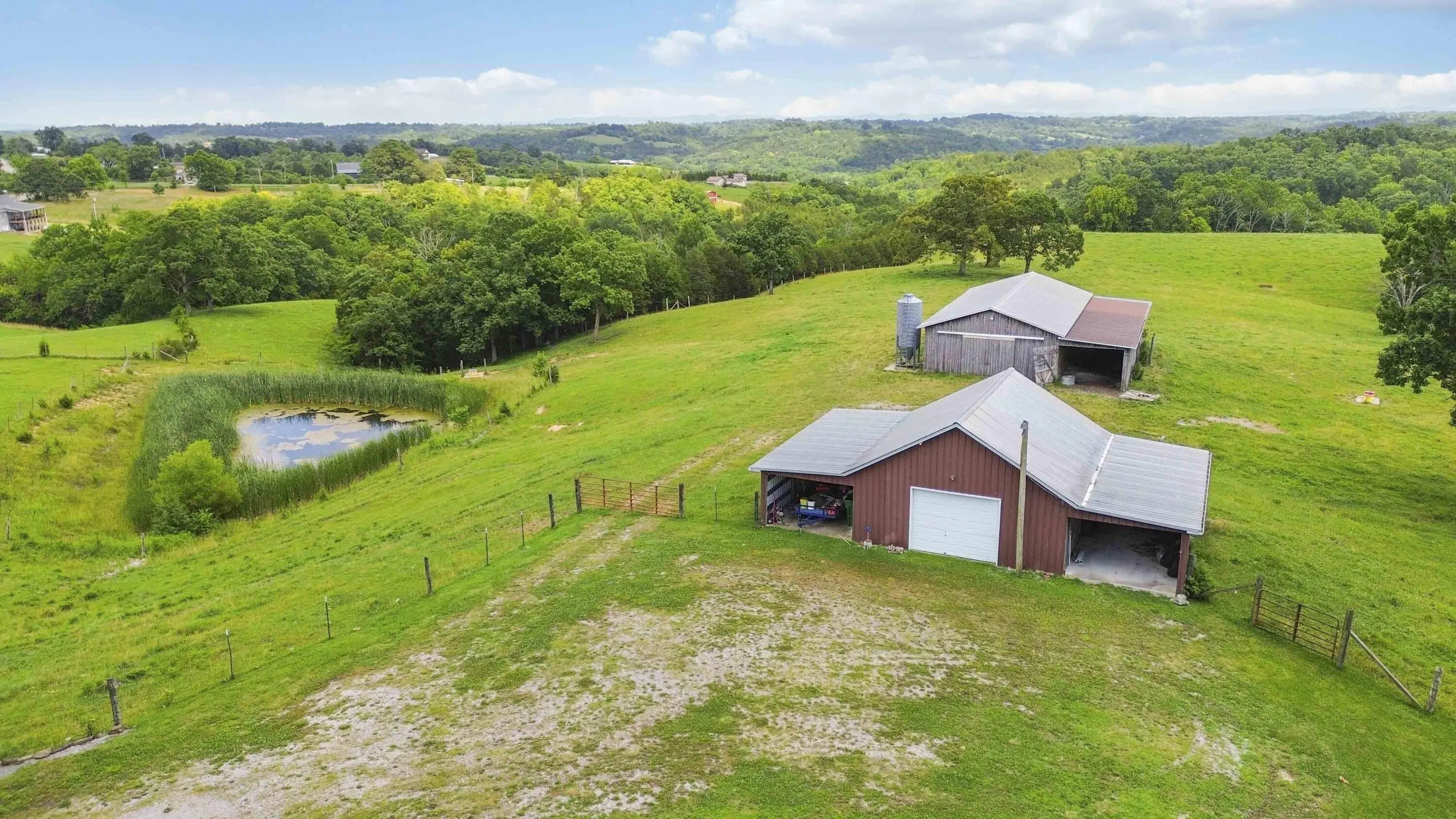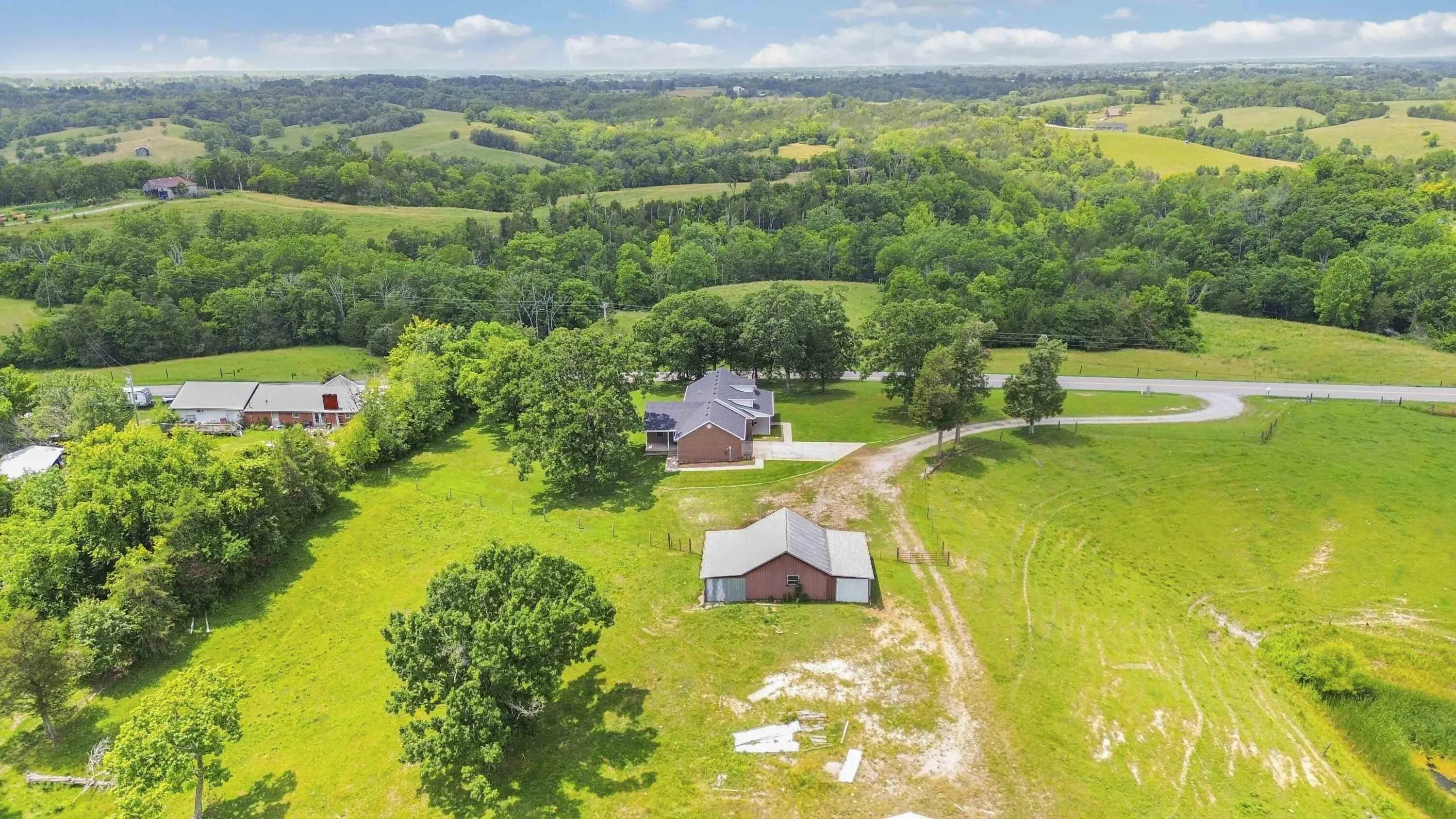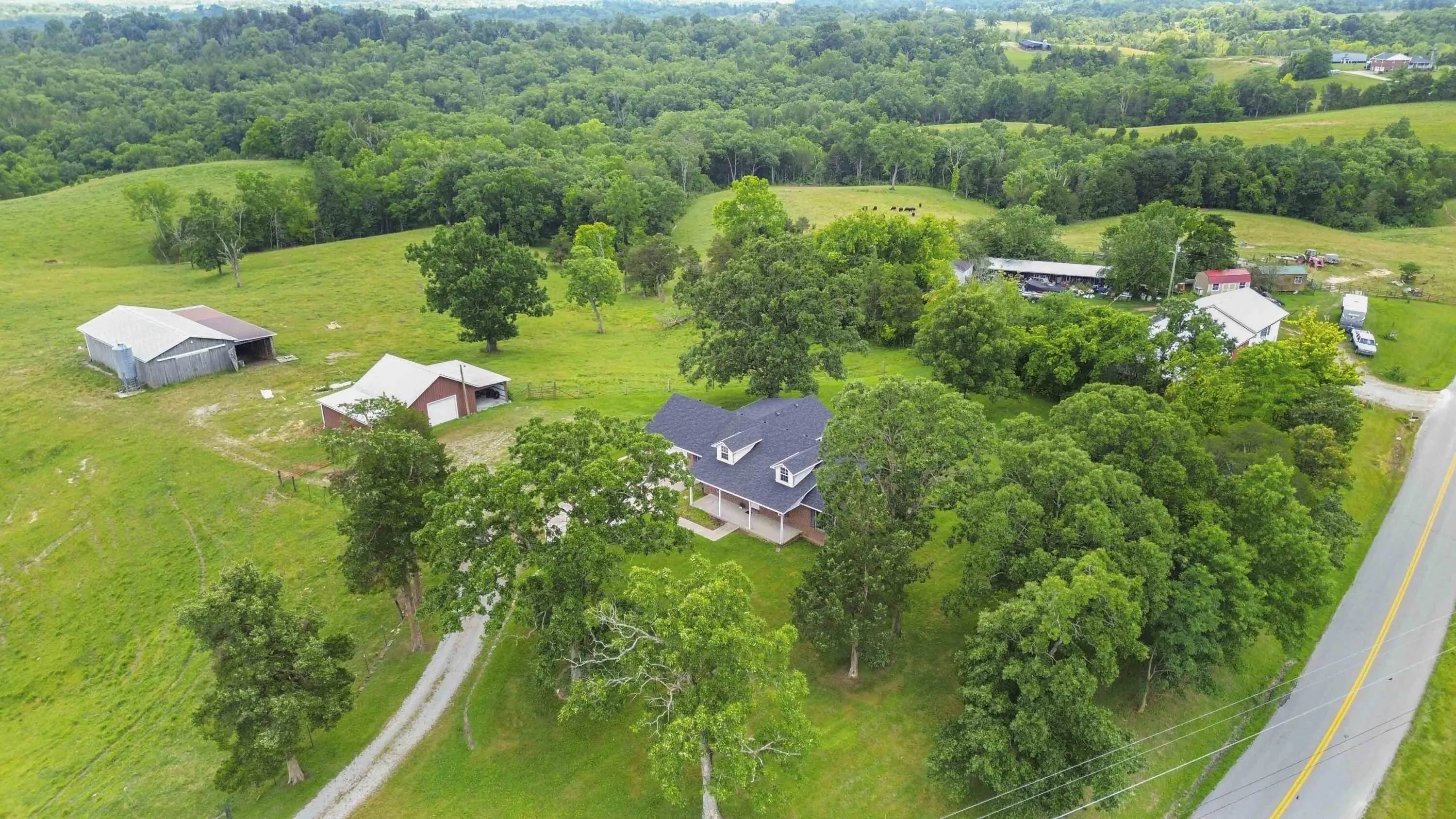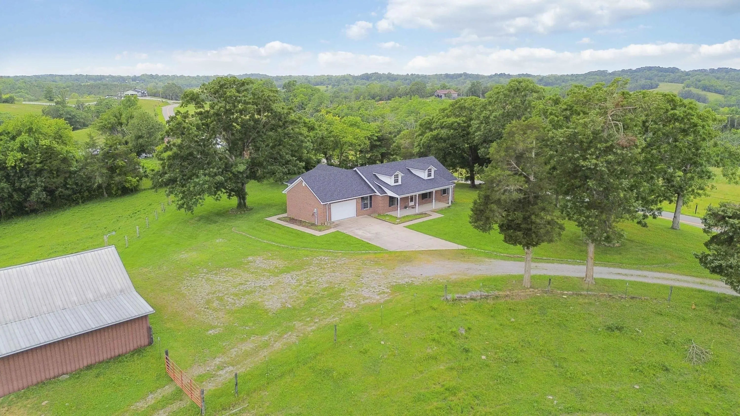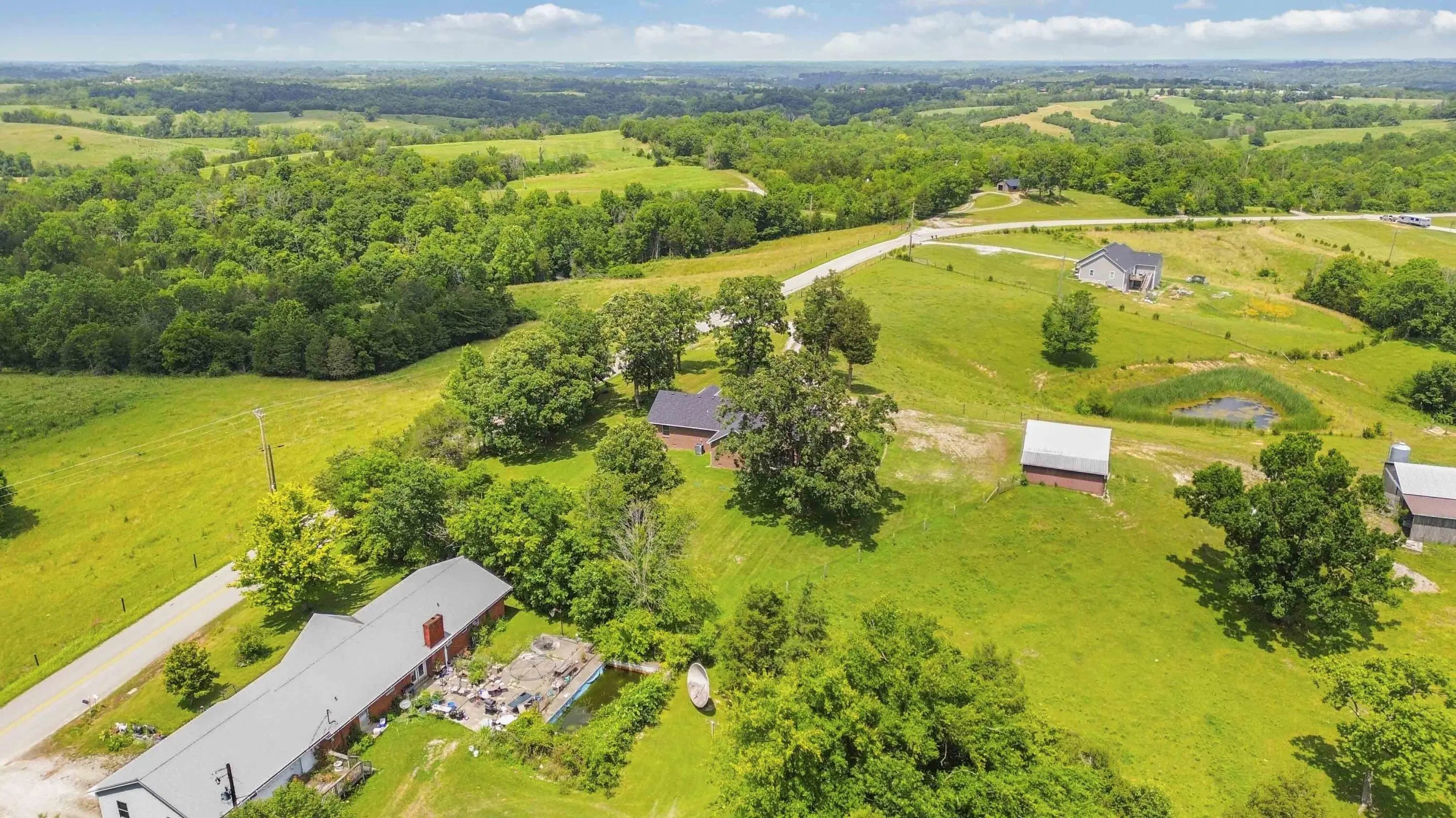 PRICED BELOW OCTOBER 2025 APPRAISAL! Welcome to your private slice of Kentucky paradise—where comfort meets countryside living at its finest. This one-owner, meticulously maintained 3-bedroom, 2-bath ranch home, built in 2005, is perfectly positioned on 14.18 acres of gently rolling farmland with views that will take your breath away. Wake up to panoramic sunrises from the covered front porch, and unwind in the evening on the side patio as deer graze in the distance and the sky stretches for miles. The spacious open-concept layout is warm and welcoming, with vaulted ceilings and a large eat-in kitchen that's ideal for family gatherings or quiet mornings with a cup of coffee. Designed with both functionality and rural charm in mind, the land is fully fenced for cattle and includes a 30x48 barn, a large detached garage/workshop with electricity, two watering stations, and a serene pond. Whether you're looking to start a small farm, enjoy peaceful country living, or simply escape the hustle and bustle, this property has it all—and then some. Don't miss your chance to own this rare piece of tranquility.