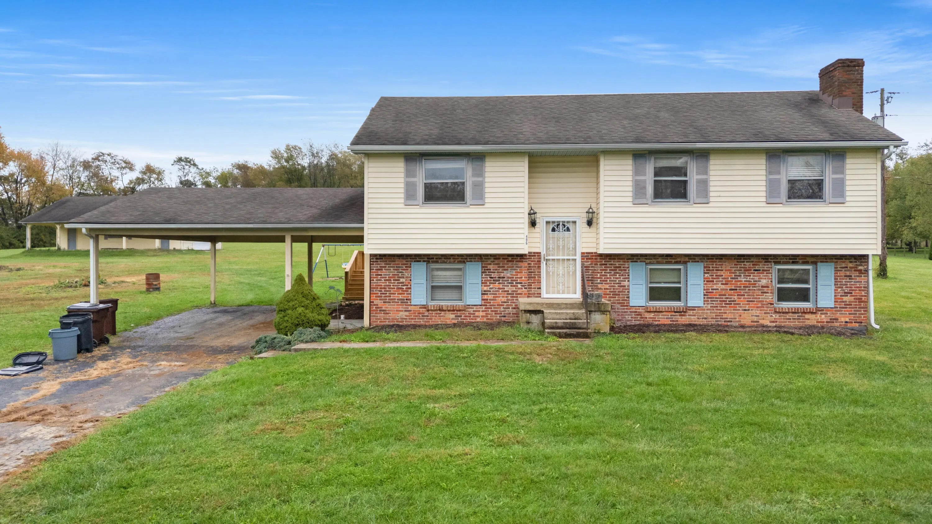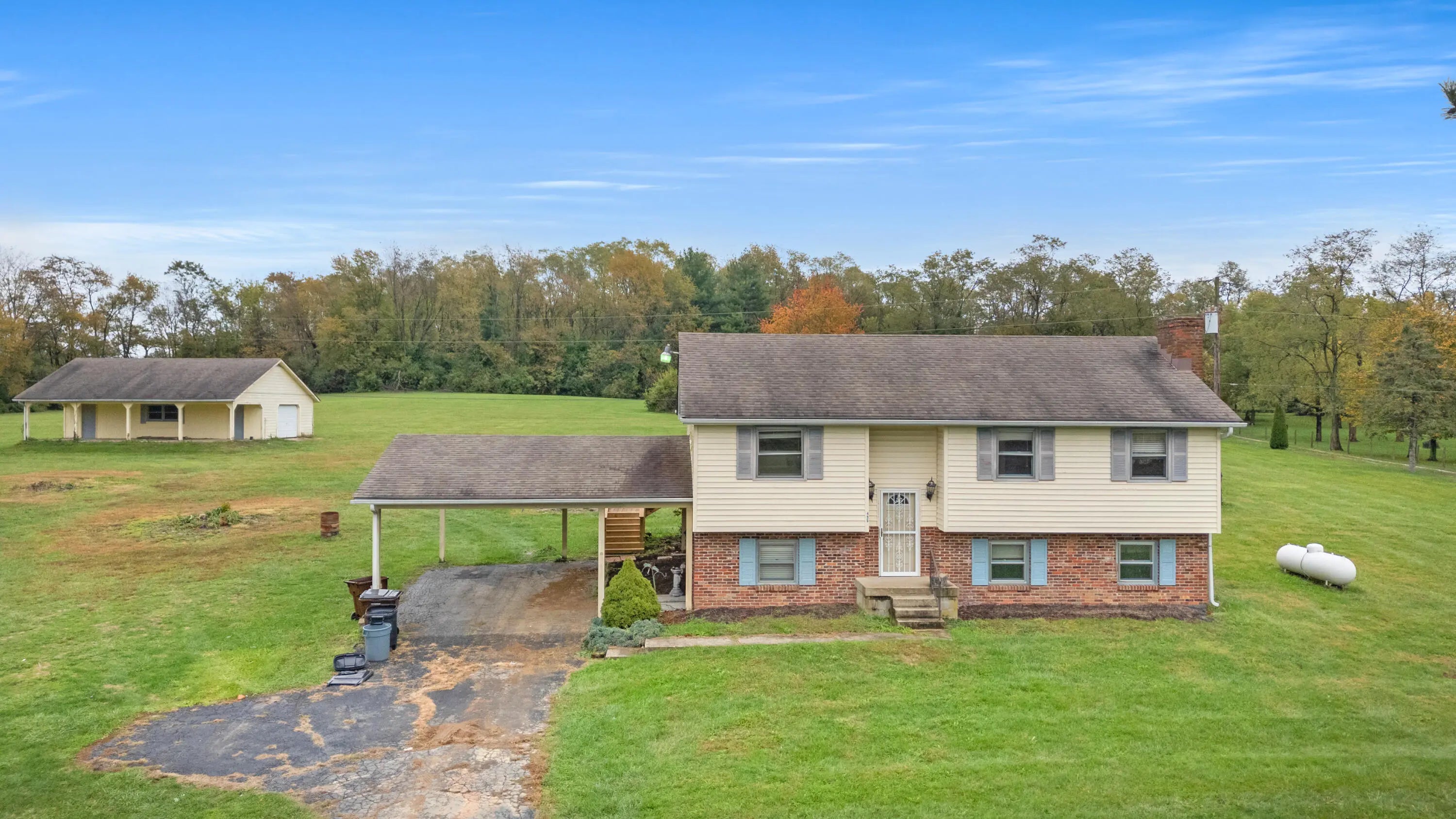 Escape to the peace and privacy of the countryside while staying just minutes from town! This five acre refuge is prime flat land, close to the interstate or Toyota manufacturing plant. The split-level home offers solid construction and great bones, and has been loved by the same family since it was built. It's ready for your personal touch and updates to make it truly your own! Enjoy plenty of space both inside and out, with room to expand, garden, or simply enjoy privacy. The large back deck is covered, so you can sit outside and take in the country views. An 800 square foot concrete floor detached building provides additional storage, workshop potential, or space for hobbies and projects. The building also has a 10 X 40 covered overhang and electricity. Perfect for those seeking a little elbow room and country living without sacrificing convenience-- this property offers the best of both worlds.