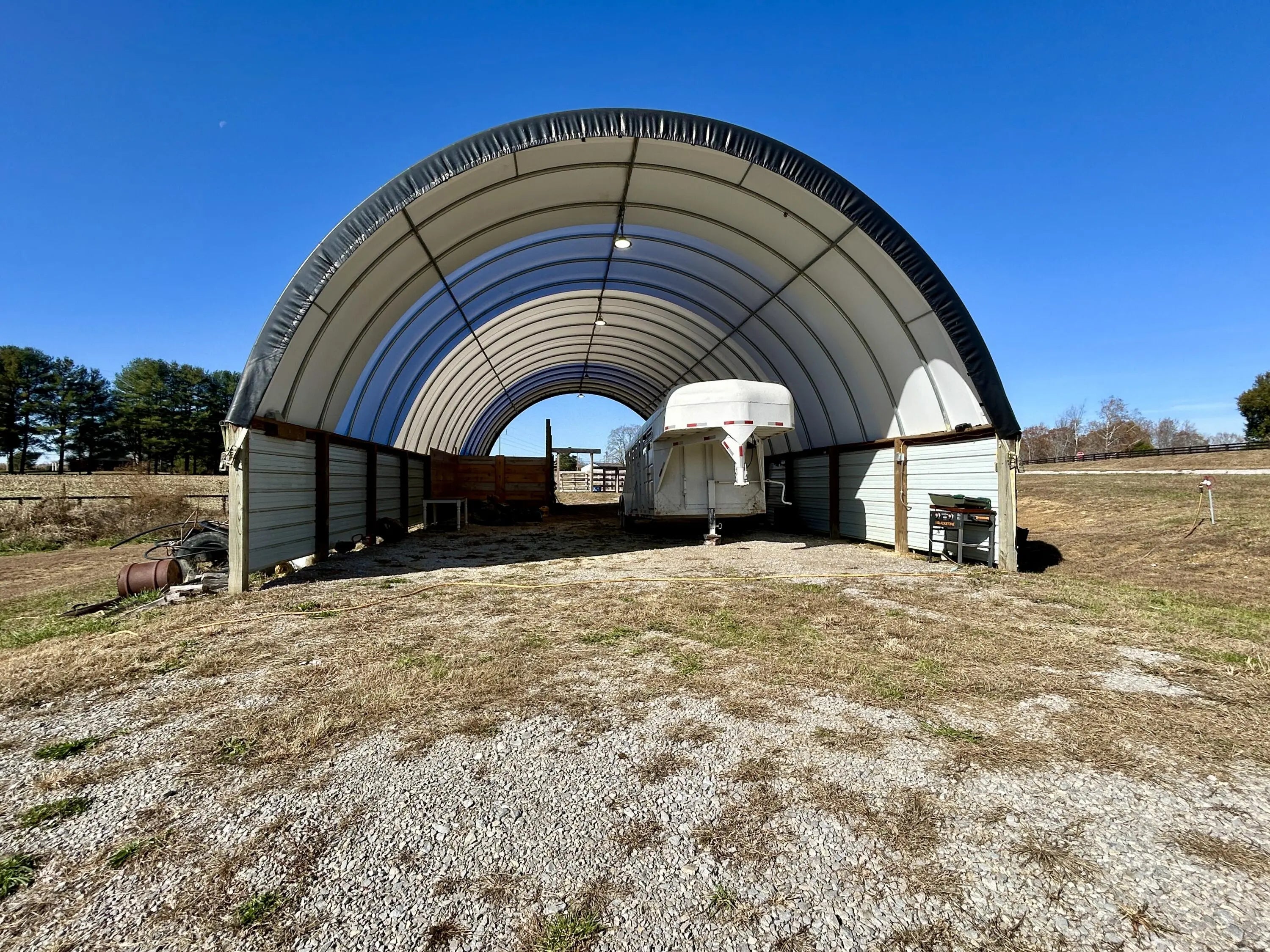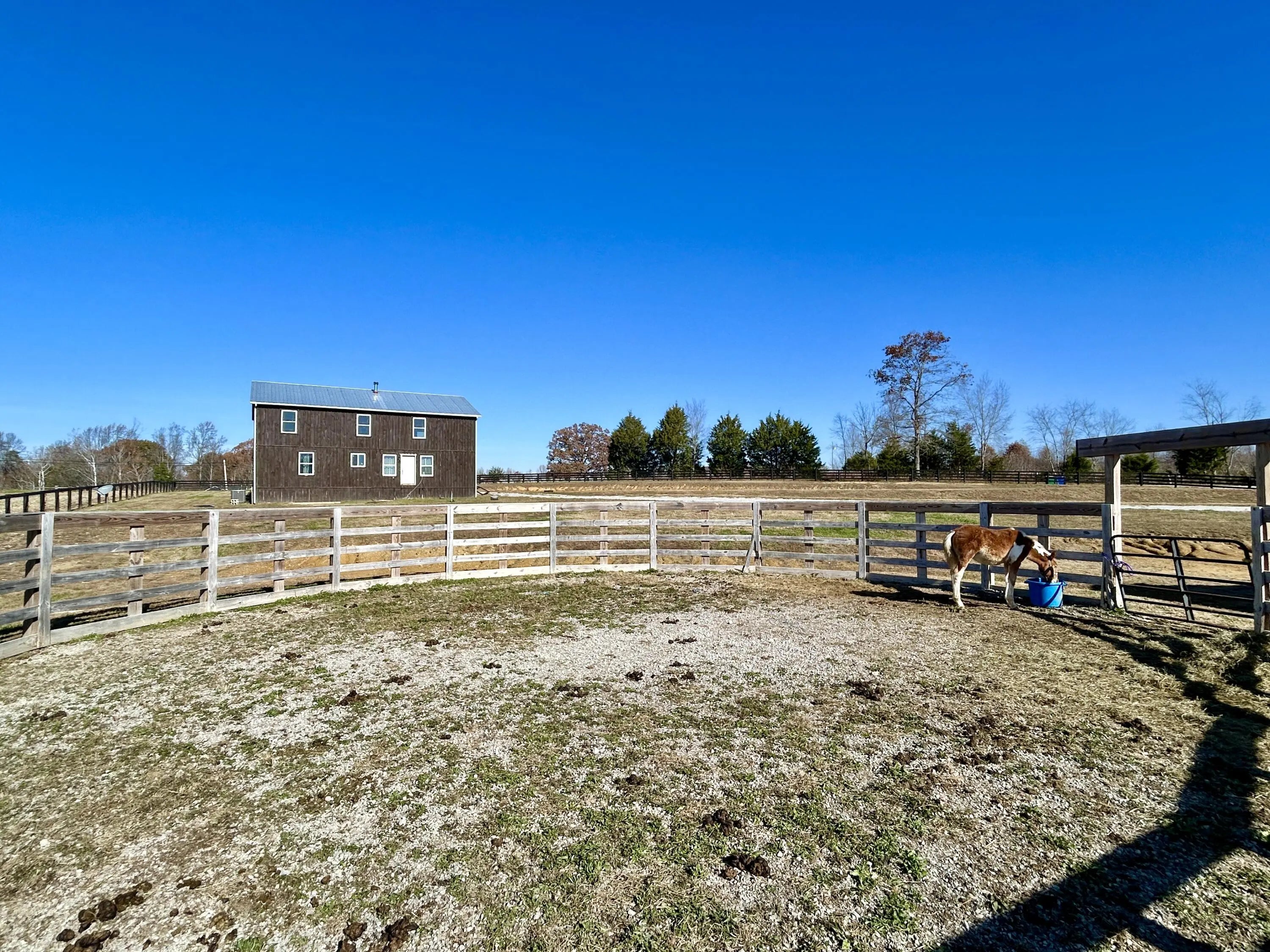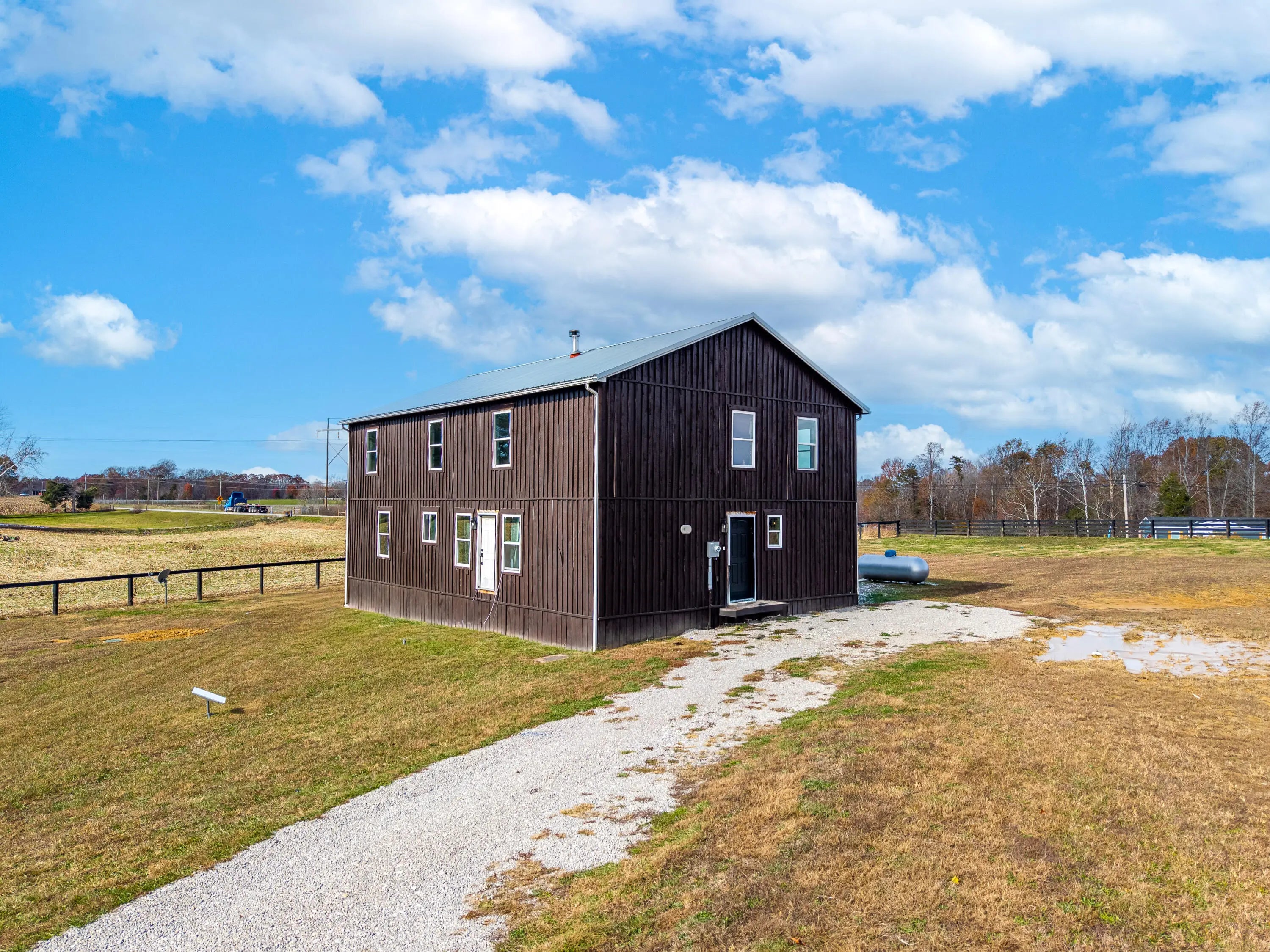 3,000 sq ft on 9.8 acres — and the upstairs is a blank canvas. This home gives you 1,500 sq ft finished with 2 bedrooms, 2 full baths, an open-concept kitchen, and a spacious living room. Plus 1,500 sq ft partially finished upstairs — framed, wired, and plumbed for a 3rd bath, Completed Tongue and Groove Wood Finished Walls and wide open to design exactly how you want. Outside? Beautiful open land, horse paddocks, partial fencing, a large hoop barn, horse walkers, and underground electric + septic already in place for an RV or future mobile home. A rare find with instant potential for equestrians, hobby farmers, or anyone wanting space and options.