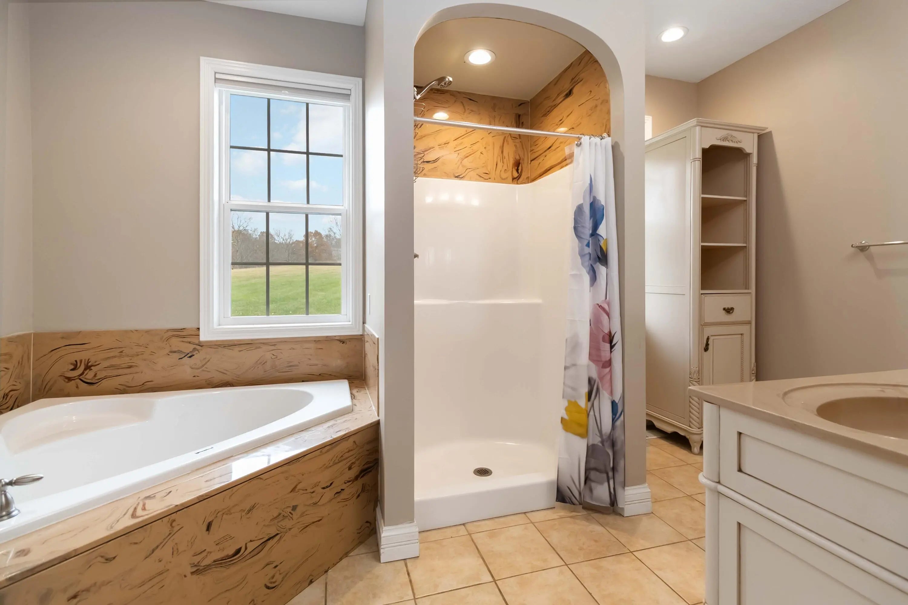 - Interior FeaturesBreakfast Bar, Entrance Foyer, Eat-in Kitchen, In-Law Floorplan, Primary Downstairs, Soaking Tub