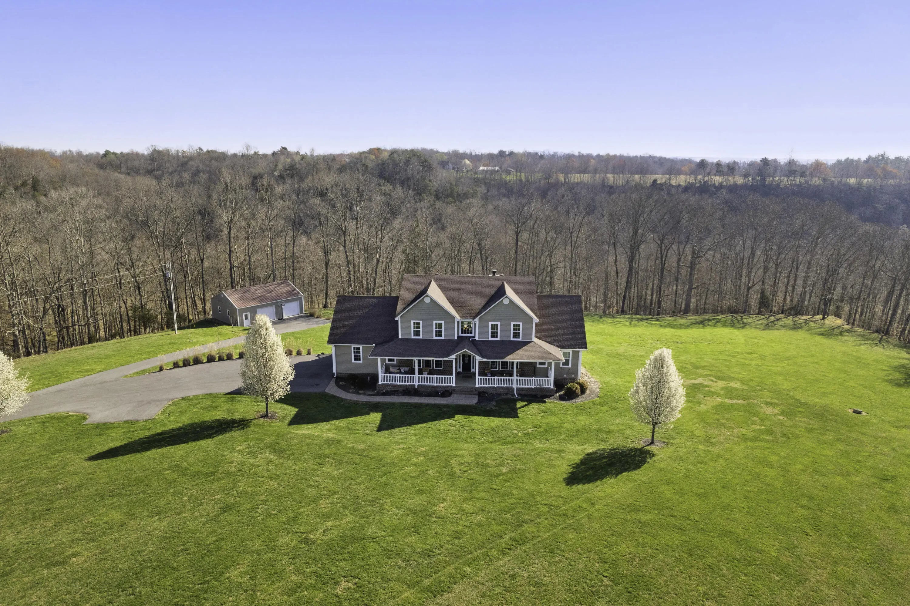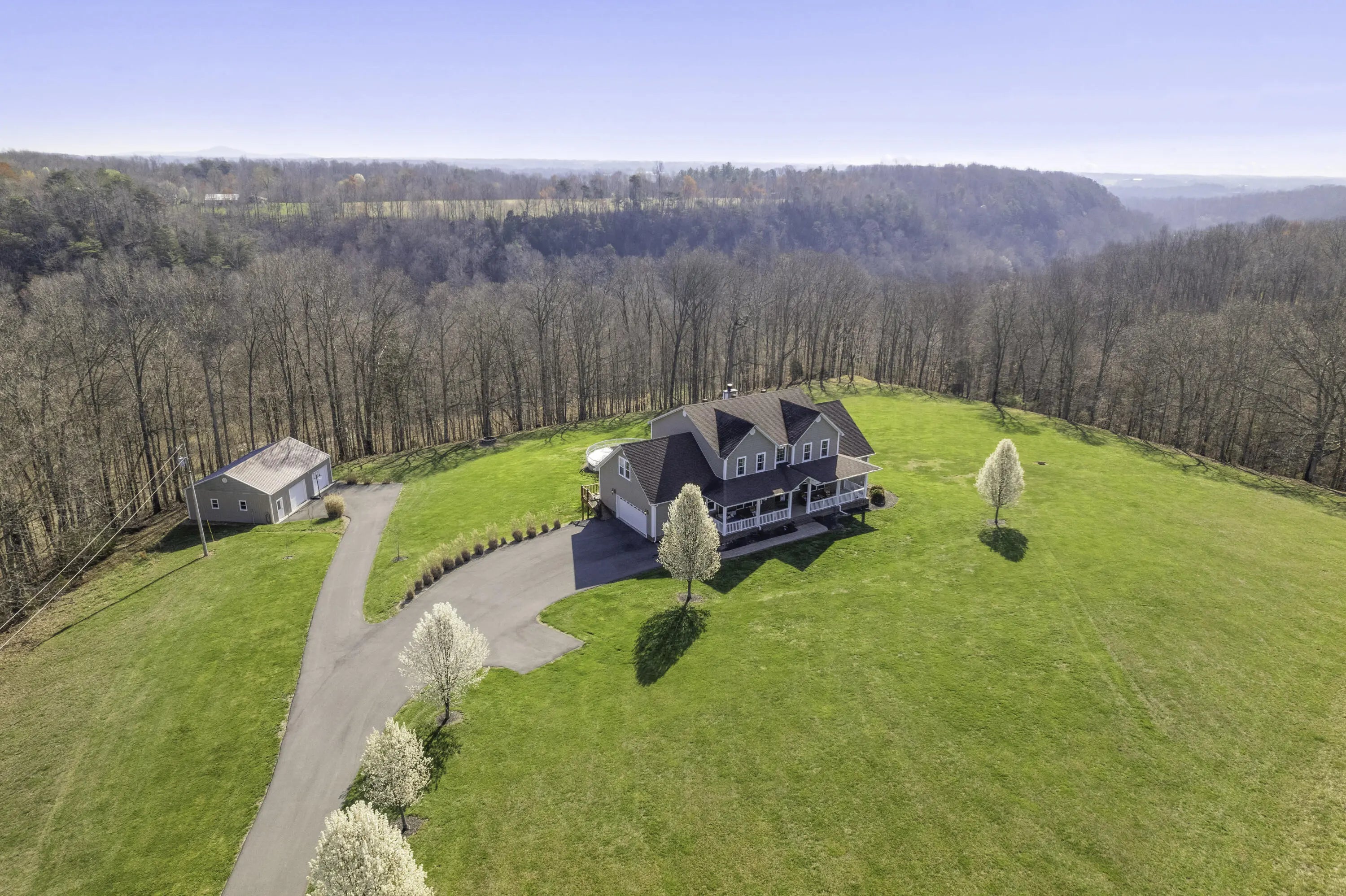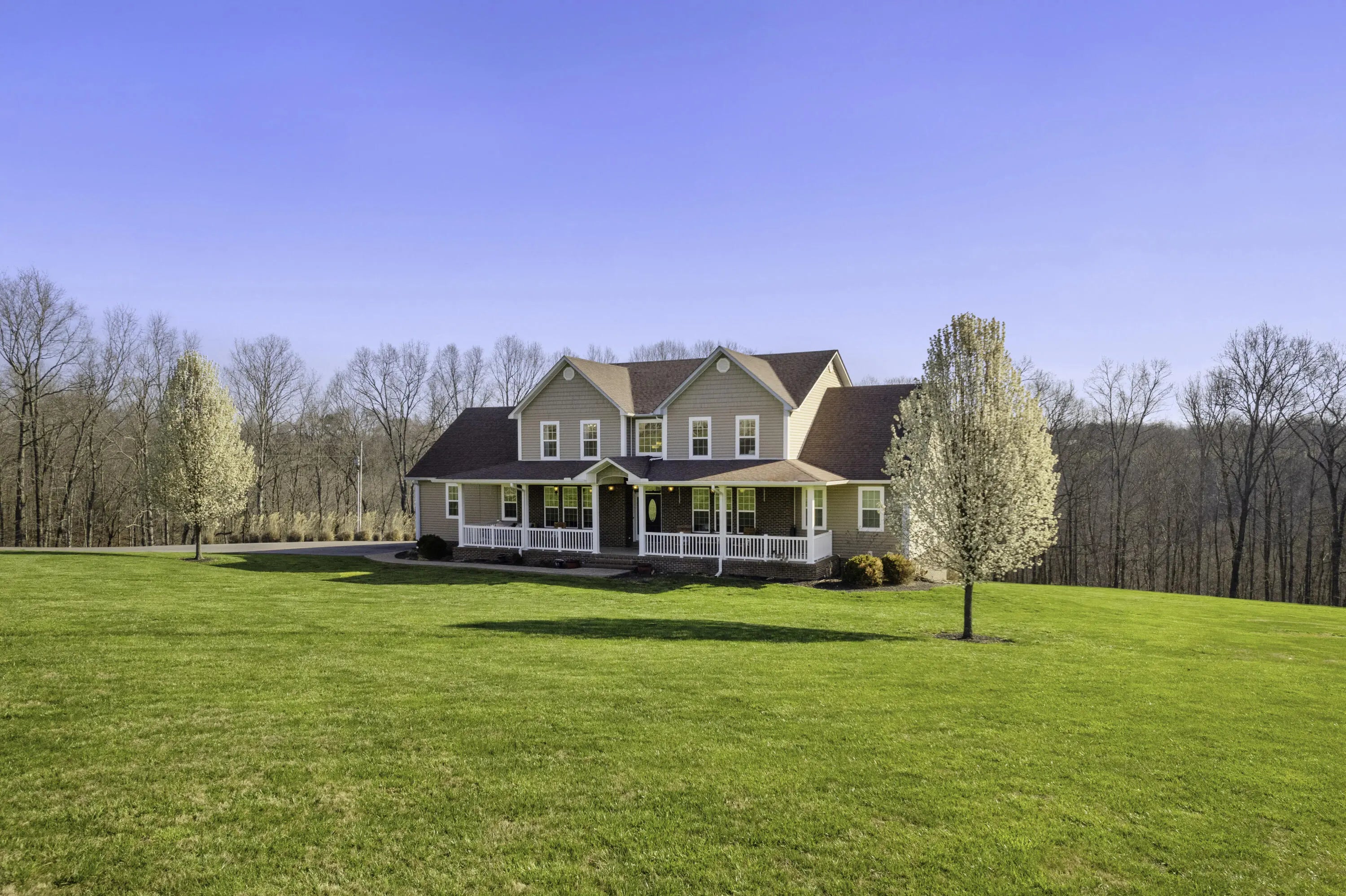 Welcome to your private Kentucky retreat—a custom-built estate tucked away on 6.8 secluded acres at the end of a blacktop driveway surrounded by mature trees and peaceful countryside. Located in beautiful South-Central Kentucky and just 13 minutes to Russell Springs, this property blends luxury, space, and serenity in a way that's rare to find. This stunning home offers 6 bedrooms, 4.5 bathrooms, and a layout designed for both comfortable living and impressive entertaining. Step inside to a soaring two-story great room, highlighted by a wall of windows that fills the home with natural light, rich wood flooring, a wood-burning fireplace, and French doors that open to the back deck overlooking total privacy. The spacious kitchen features a stainless steel oven and cooktop , custom cabinetry, a breakfast bar, and a bright dining nook. For larger gatherings, enjoy the formal dining room just off the foyer. The finished walkout basement adds even more flexibility, offering a second full kitchen, laundry area, living space, and private entry—perfect for a mother-in-law suite, Airbnb income, or long-term rental options. Also to include 619 SQFT of unfinished storage space. Outdoors, the property continues to impress with a 30×40 detached garage, ideal for boats, ATVs, tractors, or lake toys—especially being just 25-35 minutes from Lake Cumberland. Relax on the porch, explore your wooded acreage, or simply take in the sound of nature with no neighbors in sight. If you've been searching for a home that delivers space, privacy, natural beauty, and endless possibilities—this one is truly breathtaking in person.