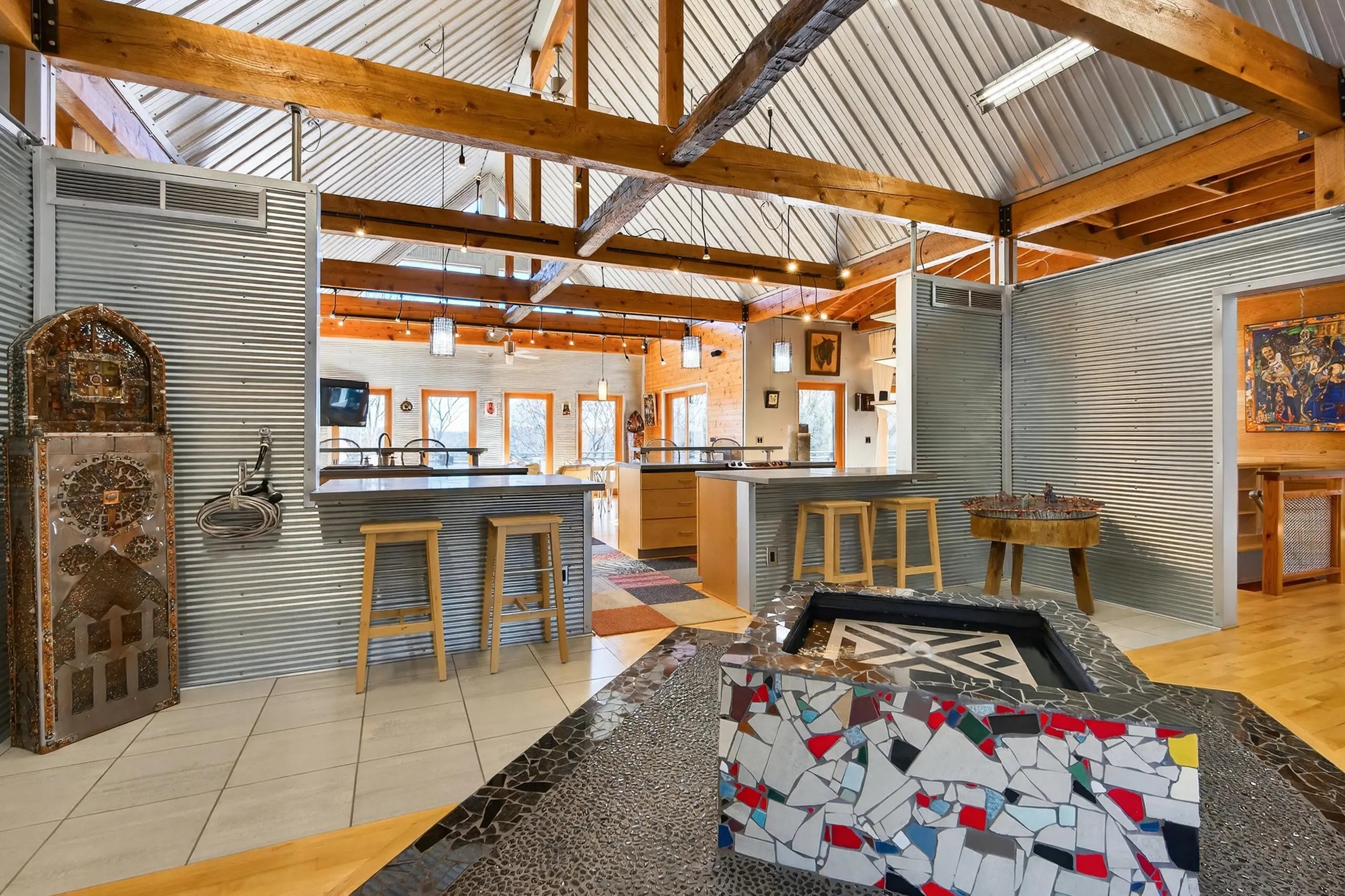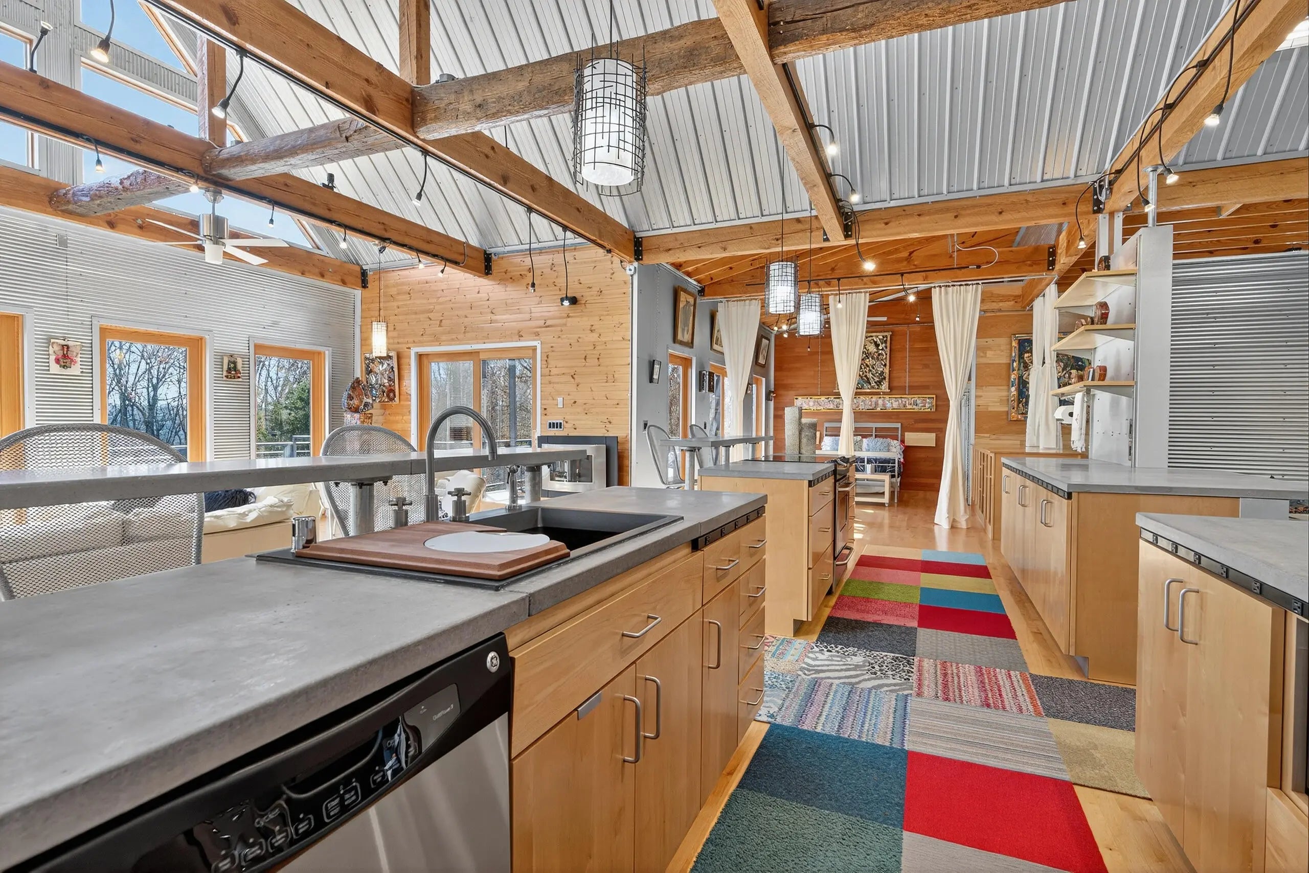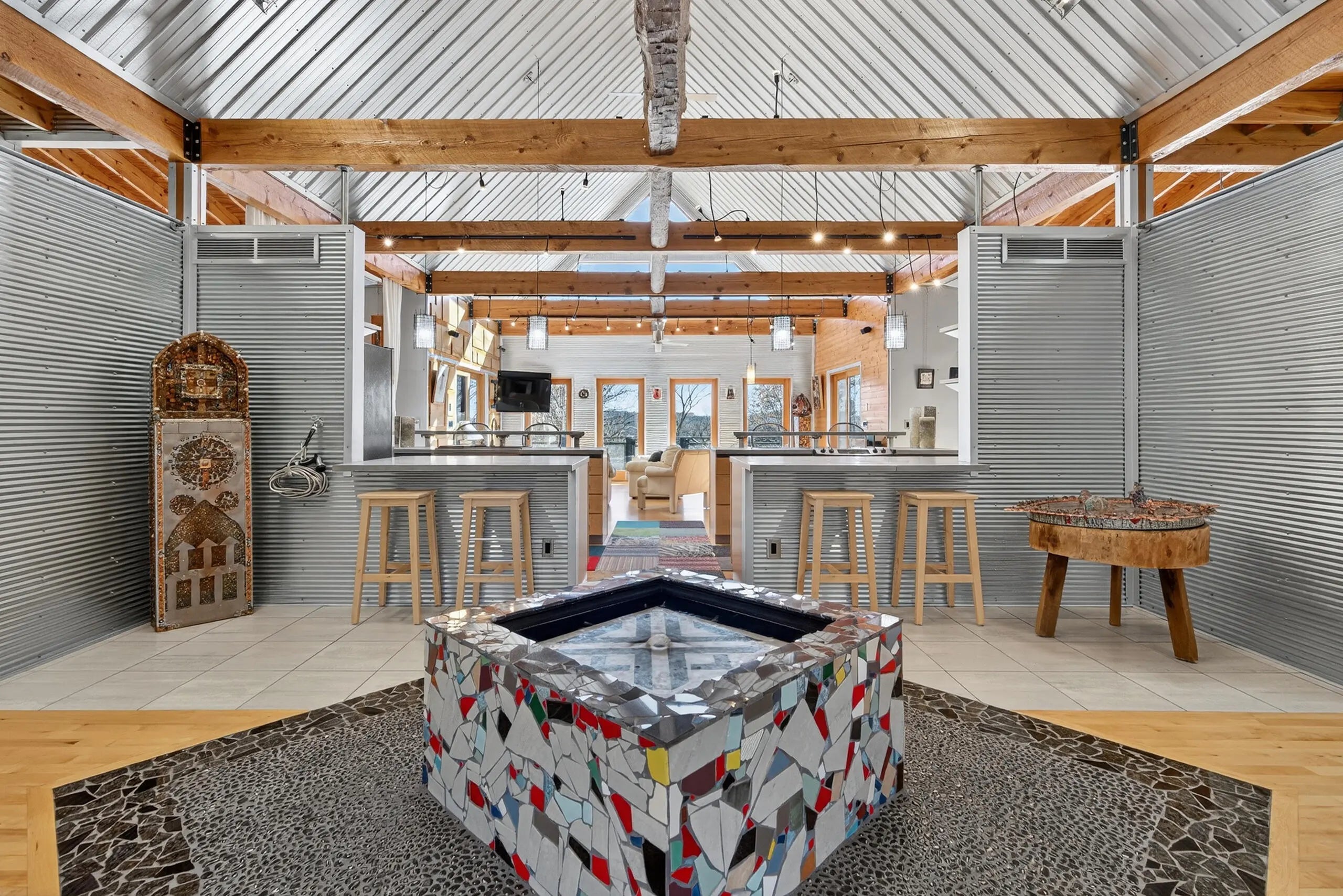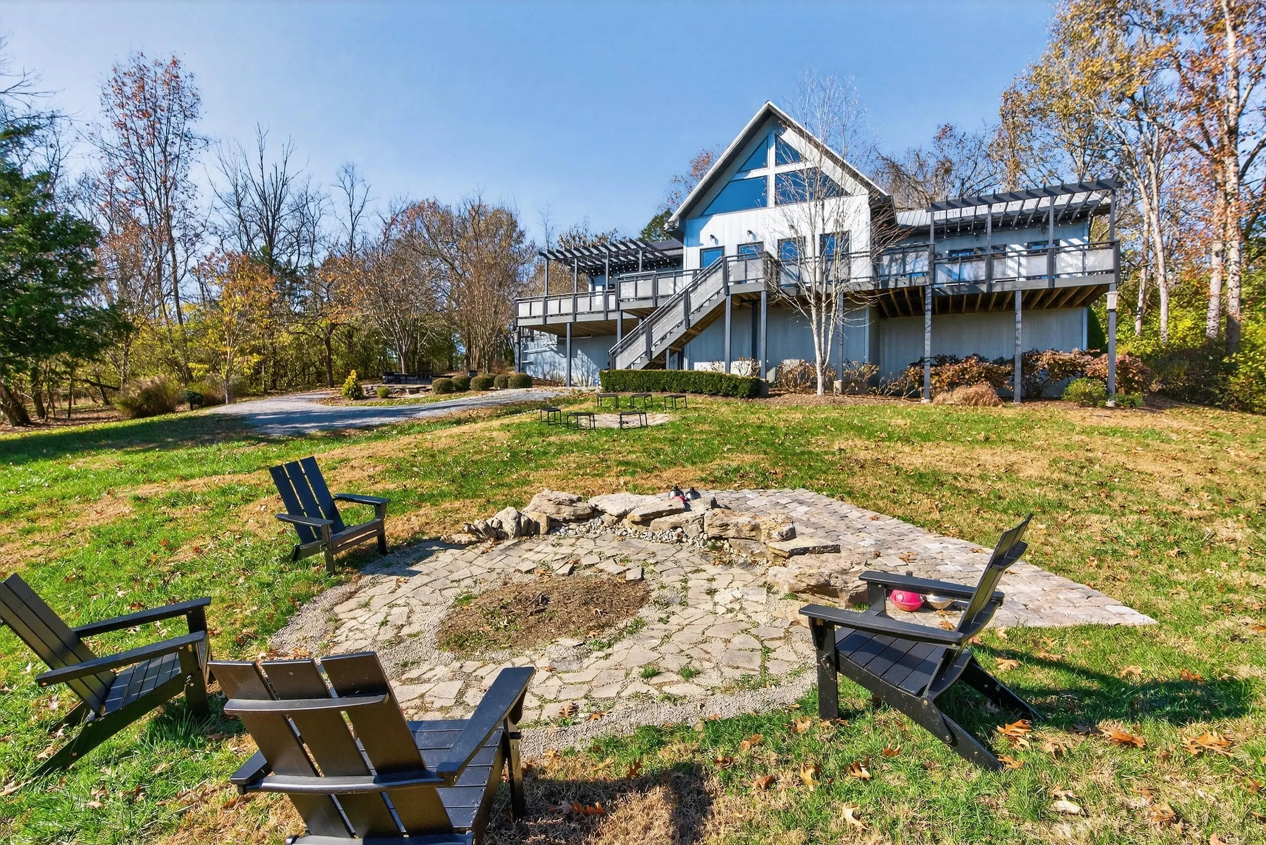 We are delighted to share details about this extraordinary property that presents unparalleled living experiences. A private road leads to this secluded property, which is surrounded by approximately 375 acres and perfectly situated amongst only five neighbors, creating a virtual nature sanctuary. This stunning contemporary home is in pristine condition and nestled on approximately 15 acres, which allows exciting options to create direct access to the Kentucky River. While the two acres closest to this home are professionally landscaped, the remaining acreage is an exclusive habitat resplendent with native trees and abundant wildlife, including wild turkey, deer, coyote, and various bird species. Upon stepping through the front door, you are immediately greeted by a one-of-a-kind water feature, tons of natural light, and the picturesque Kentucky landscape. This unique home was designed by its two proprietors who are artists; and meticulously constructed by a reputable builder Miles Moores and his experienced crew. This home proudly boasts an Energy Star Qualified Home certificate and is equipped with state-of-the-art amenities, such as solar panels, spray-foam insulation, upcycled light fixtures, custom-made cabinets, and concrete countertops. It has a 15,000 gallon cistern and a top-of-the-line filtration system, together with the choice of public water access with the flip of a lever. No expense was spared on the outstanding craftsmanship and superior materials used when building this home. This property features both an exterior and interior audio system for entertainment and enjoyment. The construction is notably sturdy, with 2x6 framing, 2x12 roof framing, and strategic steel beams. Low maintenance is a key benefit - thanks to the metal roof, metal siding, Trex decking; Trex and metal railing and gates; metal and wood walls; and ceramic and wood flooring. While this home embraces a modern aesthetic, the owners have beautifully accented this with over two-hundred-year-old wood beams in various locations, adding a touch of timeless elegance. The innovative design of this house provides remarkable flexibility, permitting the easy addition of interior walls or rooms to suit your needs. Furthermore, a spacious unfinished basement awaits the creative vision of the new homeowner(s), complete with headers for doors and windows, and plumbing stubbed to match those on the main level. For added convenience and future planning, there is pre-wiring for security, stereo, and cameras. There are also prospects to construct a carport or garage on top of the cistern, as it is strong enough to withstand the weight of a car or light truck. Outdoors, truly enjoy nature at its finest from the top deck, complete with a unique water feature table. Relax by the flickering blue flames of a gas fire pit on custom cushions for cozy evenings or unwind at either of the two wood fire pits, all offering views of the encompassing woods. The absence of streetlights enhances the brilliance of the night sky, offering the possibilities of breathtaking, spectacular celestial displays. The front of the house also showcases a charming water feature, where you can experience the calming sounds of trickling water, catch a glimpse of resident frogs, or admire occasional beautiful water lilies. Indoors, soak in the warmth and ambiance effused by a gas and an electric fireplace. Plus, if needed, Windstream internet access is available, enabling remote work while immersed in the striking scenery. Whether you seek a peaceful retreat or a full-time abode, this gem, which is hidden in a concealed area and located only twenty minutes from downtown Nicholasville, is the place for you. Indeed, with its bountiful wildlife and tranquil setting, you may find yourself never wanting to leave this exceptional property. A list of details, features, and improvements can be supplied upon request.
