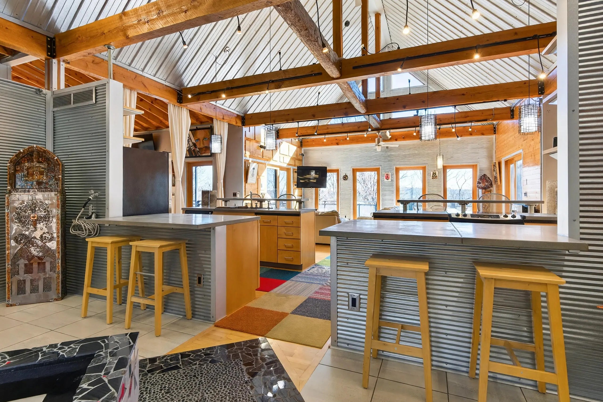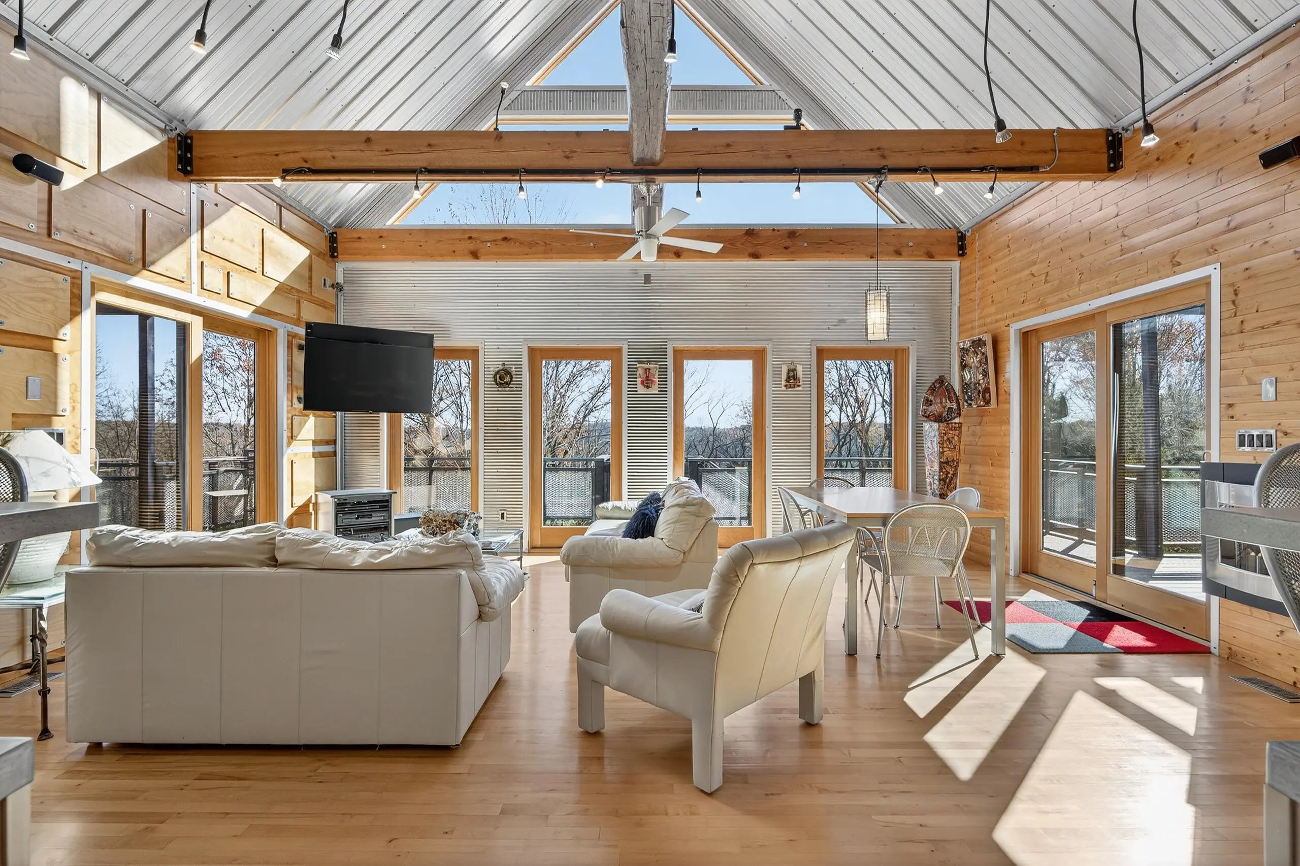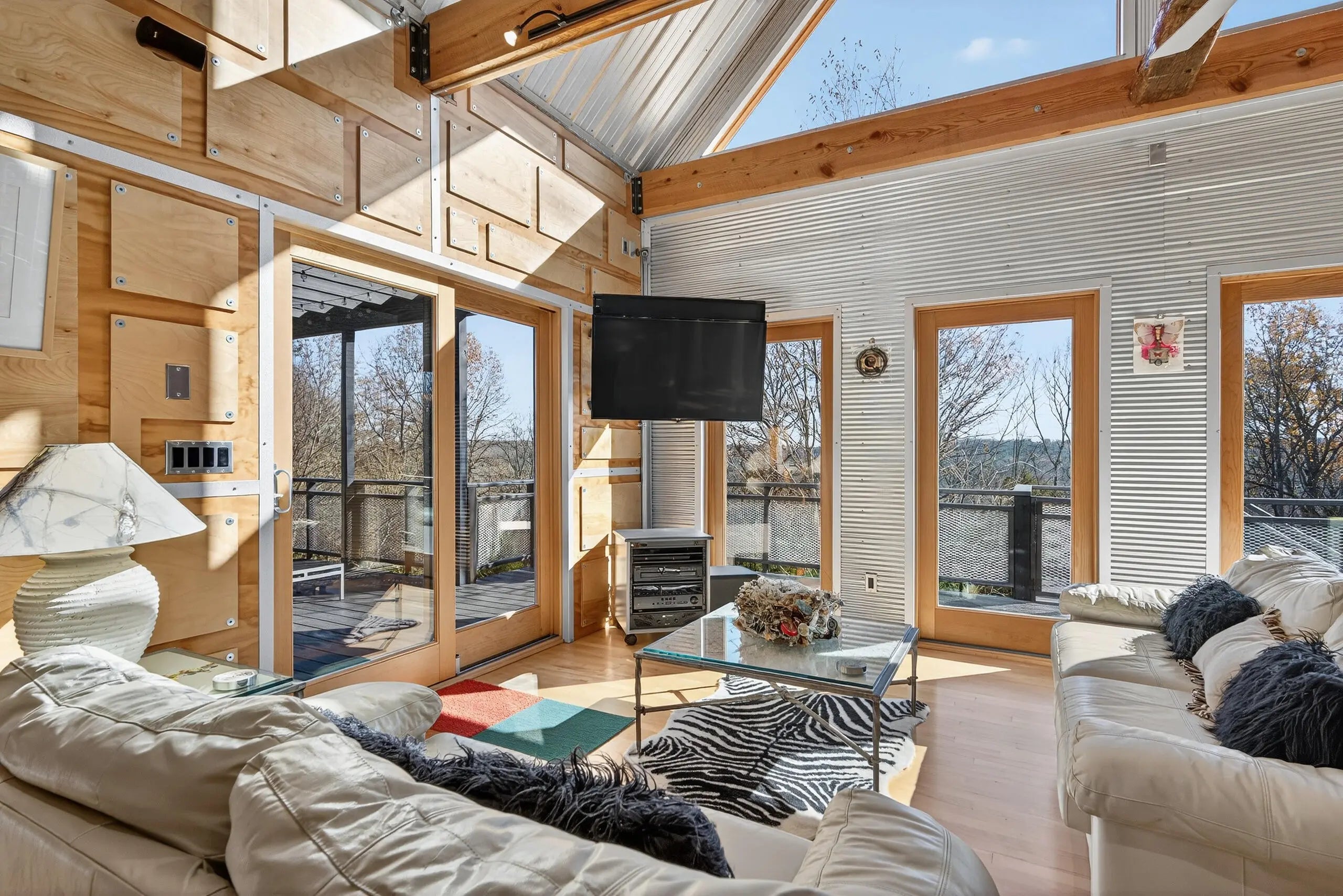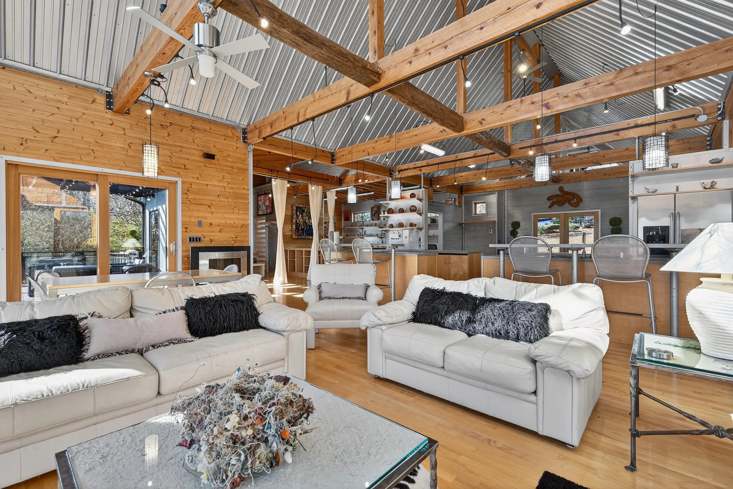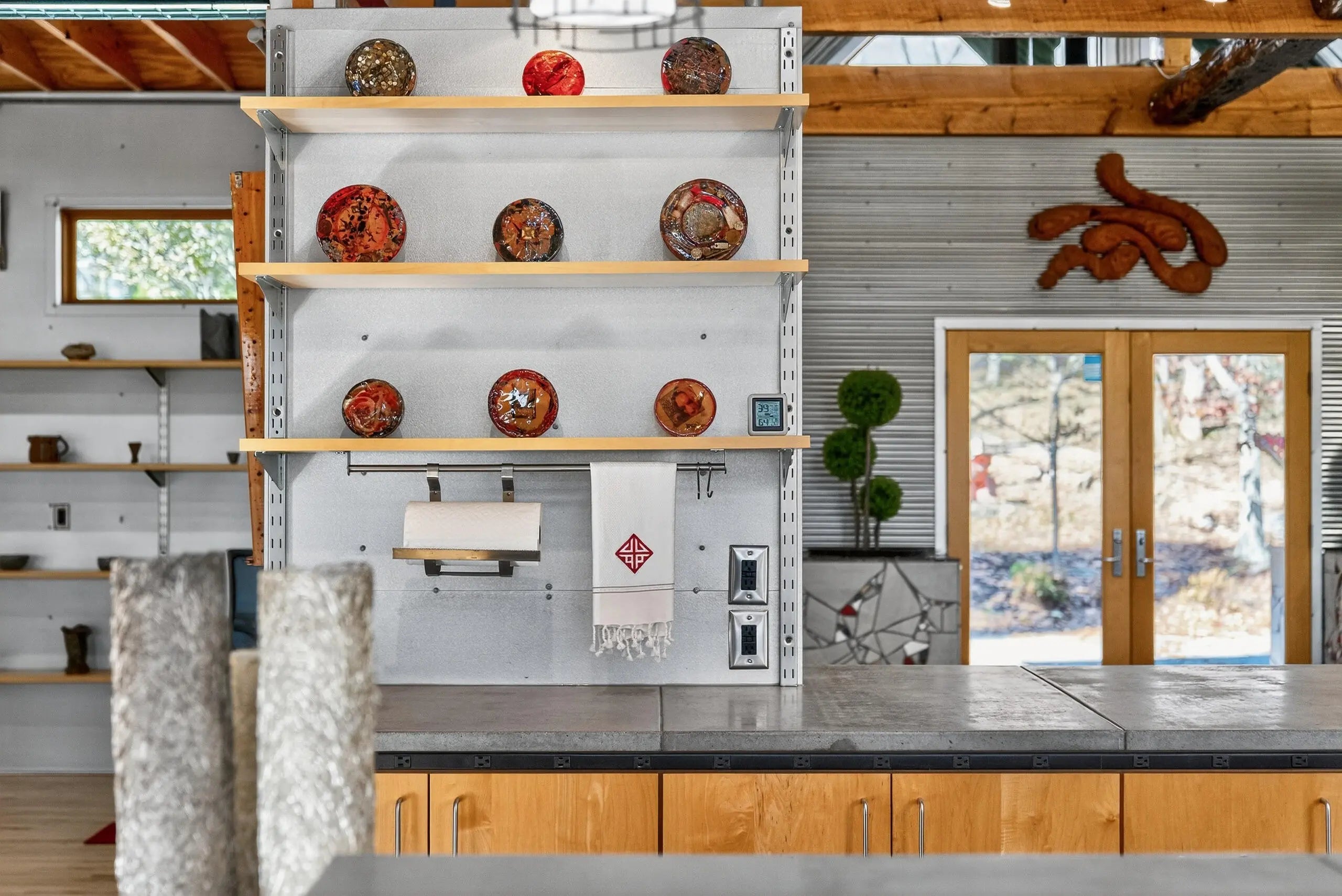 We are delighted to share details about this extraordinary property that presents unparalleled living experiences. A private road leads to this secluded property, which is surrounded by approximately 375 acres and perfectly situated amongst only five neighbors, creating a virtual nature sanctuary. This stunning contemporary home is in pristine condition and nestled on approximately 15 acres, which allows exciting options to create direct access to the Kentucky River. While the two acres closest to this home are professionally landscaped, the remaining acreage is an exclusive habitat resplendent with native trees and abundant wildlife, including wild turkey, deer, coyote, and various bird species. Upon stepping through the front door, you are immediately greeted by a one-of-a-kind water feature, tons of natural light, and the picturesque Kentucky landscape. This unique home was designed by its two proprietors who are artists; and meticulously constructed by a reputable builder Miles Moores and his experienced crew. This home proudly boasts an Energy Star Qualified Home certificate and is equipped with state-of-the-art amenities, such as solar panels, spray-foam insulation, upcycled light fixtures, custom-made cabinets, and concrete countertops. It has a 15,000 gallon cistern and a top-of-the-line filtration system, together with the choice of public water access with the flip of a lever. No expense was spared on the outstanding craftsmanship and superior materials used when building this home. This property features both an exterior and interior audio system for entertainment and enjoyment. The construction is notably sturdy, with 2x6 framing, 2x12 roof framing, and strategic steel beams. Low maintenance is a key benefit - thanks to the metal roof, metal siding, Trex decking; Trex and metal railing and gates; metal and wood walls; and ceramic and wood flooring. While this home embraces a modern aesthetic, the owners have beautifully accented this with over two-hundred-year-old wood beams in various locations, adding a touch of timeless elegance. The innovative design of this house provides remarkable flexibility, permitting the easy addition of interior walls or rooms to suit your needs. Furthermore, a spacious unfinished basement awaits the creative vision of the new homeowner(s), complete with headers for doors and windows, and plumbing stubbed to match those on the main level. For added convenience and future planning, there is pre-wiring for security, stereo, and cameras. There are also prospects to construct a carport or garage on top of the cistern, as it is strong enough to withstand the weight of a car or light truck. Outdoors, truly enjoy nature at its finest from the top deck, complete with a unique water feature table. Relax by the flickering blue flames of a gas fire pit on custom cushions for cozy evenings or unwind at either of the two wood fire pits, all offering views of the encompassing woods. The absence of streetlights enhances the brilliance of the night sky, offering the possibilities of breathtaking, spectacular celestial displays. The front of the house also showcases a charming water feature, where you can experience the calming sounds of trickling water, catch a glimpse of resident frogs, or admire occasional beautiful water lilies. Indoors, soak in the warmth and ambiance effused by a gas and an electric fireplace. Plus, if needed, Windstream internet access is available, enabling remote work while immersed in the striking scenery. Whether you seek a peaceful retreat or a full-time abode, this gem, which is hidden in a concealed area and located only twenty minutes from downtown Nicholasville, is the place for you. Indeed, with its bountiful wildlife and tranquil setting, you may find yourself never wanting to leave this exceptional property. A list of details, features, and improvements can be supplied upon request.