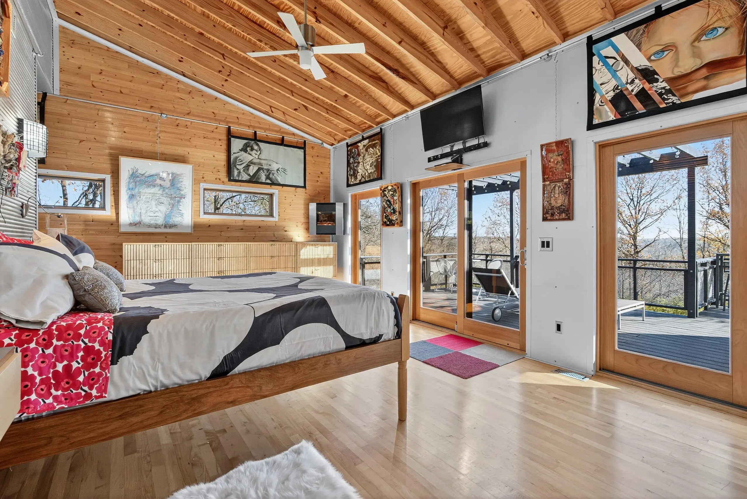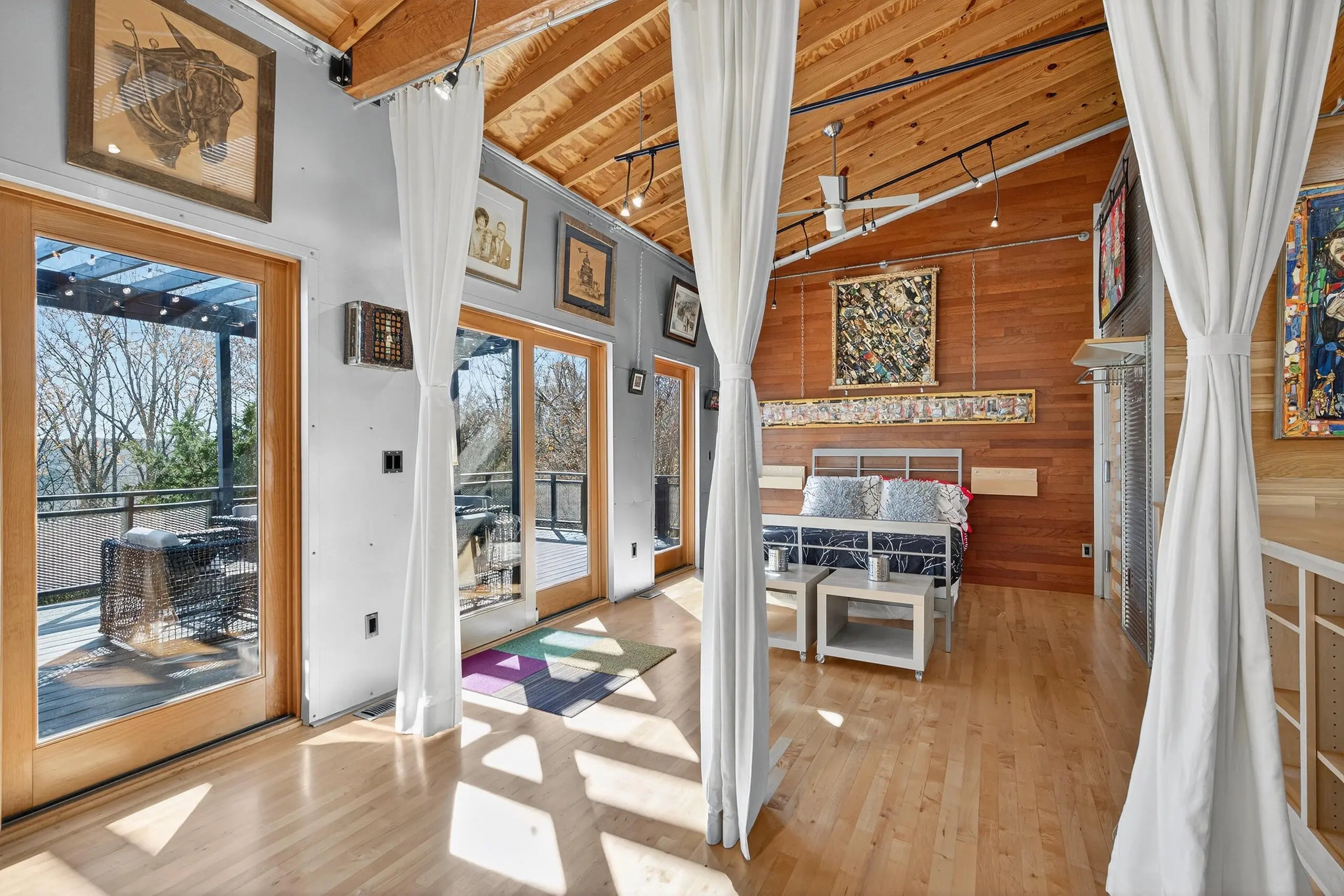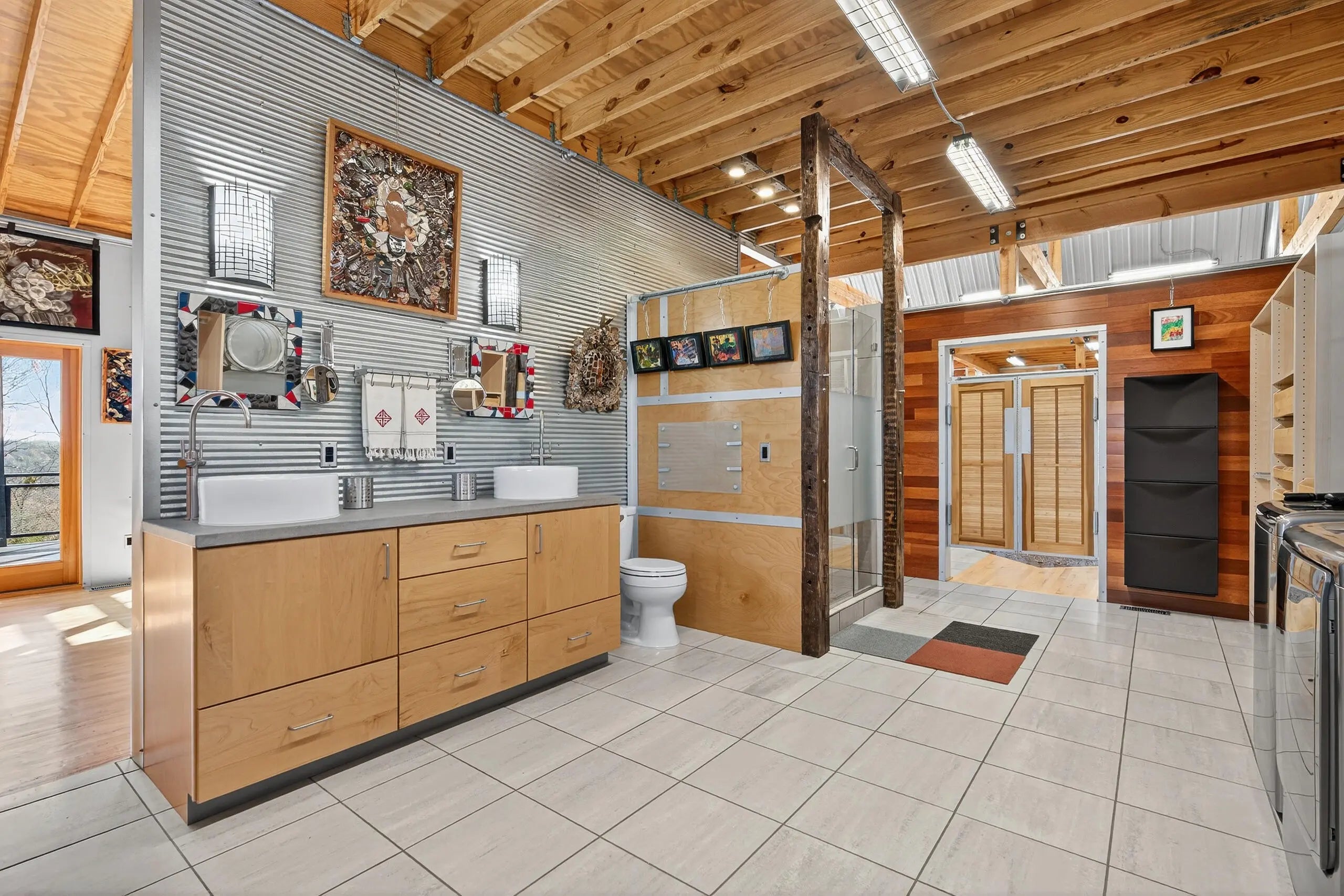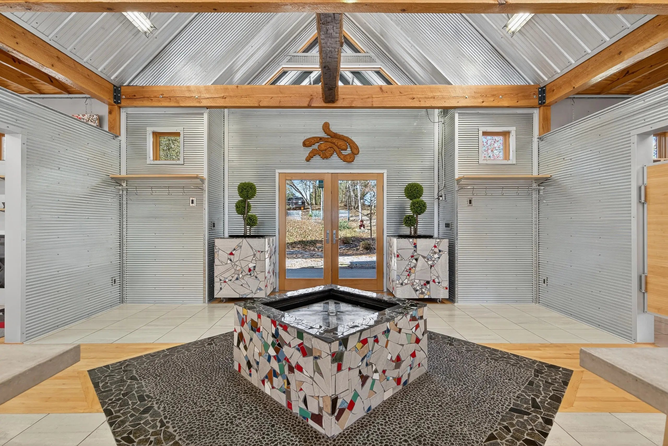 We are delighted to share details about this extraordinary property that presents unparalleled living experiences. A private road leads to this secluded property, which is surrounded by approximately 375 acres and perfectly situated amongst only five neighbors, creating a virtual nature sanctuary. This stunning contemporary home is in pristine condition and nestled on approximately 15 acres, which allows exciting options to create direct access to the Kentucky River. While the two acres closest to this home are professionally landscaped, the remaining acreage is an exclusive habitat resplendent with native trees and abundant wildlife, including wild turkey, deer, coyote, and various bird species. Upon stepping through the front door, you are immediately greeted by a one-of-a-kind water feature, tons of natural light, and the picturesque Kentucky landscape. This unique home was designed by its two proprietors who are artists; and meticulously constructed by a reputable builder Miles Moores and his experienced crew. This home proudly boasts an Energy Star Qualified Home certificate and is equipped with state-of-the-art amenities, such as solar panels, spray-foam insulation, upcycled light fixtures, custom-made cabinets, and concrete countertops. It has a 15,000 gallon cistern and a top-of-the-line filtration system, together with the choice of public water access with the flip of a lever. No expense was spared on the outstanding craftsmanship and superior materials used when building this home. This property features both an exterior and interior audio system for entertainment and enjoyment. The construction is notably sturdy, with 2x6 framing, 2x12 roof framing, and strategic steel beams. Low maintenance is a key benefit - thanks to the metal roof, metal siding, Trex decking; Trex and metal railing and gates; metal and wood walls; and ceramic and wood flooring. While this home embraces a modern aesthetic, the owners have beautifully accented this with over two-hundred-year-old wood beams in various locations, adding a touch of timeless elegance. The innovative design of this house provides remarkable flexibility, permitting the easy addition of interior walls or rooms to suit your needs. Furthermore, a spacious unfinished basement awaits the creative vision of the new homeowner(s), complete with headers for doors and windows, and plumbing stubbed to match those on the main level. For added convenience and future planning, there is pre-wiring for security, stereo, and cameras. There are also prospects to construct a carport or garage on top of the cistern, as it is strong enough to withstand the weight of a car or light truck. Outdoors, truly enjoy nature at its finest from the top deck, complete with a unique water feature table. Relax by the flickering blue flames of a gas fire pit on custom cushions for cozy evenings or unwind at either of the two wood fire pits, all offering views of the encompassing woods. The absence of streetlights enhances the brilliance of the night sky, offering the possibilities of breathtaking, spectacular celestial displays. The front of the house also showcases a charming water feature, where you can experience the calming sounds of trickling water, catch a glimpse of resident frogs, or admire occasional beautiful water lilies. Indoors, soak in the warmth and ambiance effused by a gas and an electric fireplace. Plus, if needed, Windstream internet access is available, enabling remote work while immersed in the striking scenery. Whether you seek a peaceful retreat or a full-time abode, this gem, which is hidden in a concealed area and located only twenty minutes from downtown Nicholasville, is the place for you. Indeed, with its bountiful wildlife and tranquil setting, you may find yourself never wanting to leave this exceptional property. A list of details, features, and improvements can be supplied upon request.