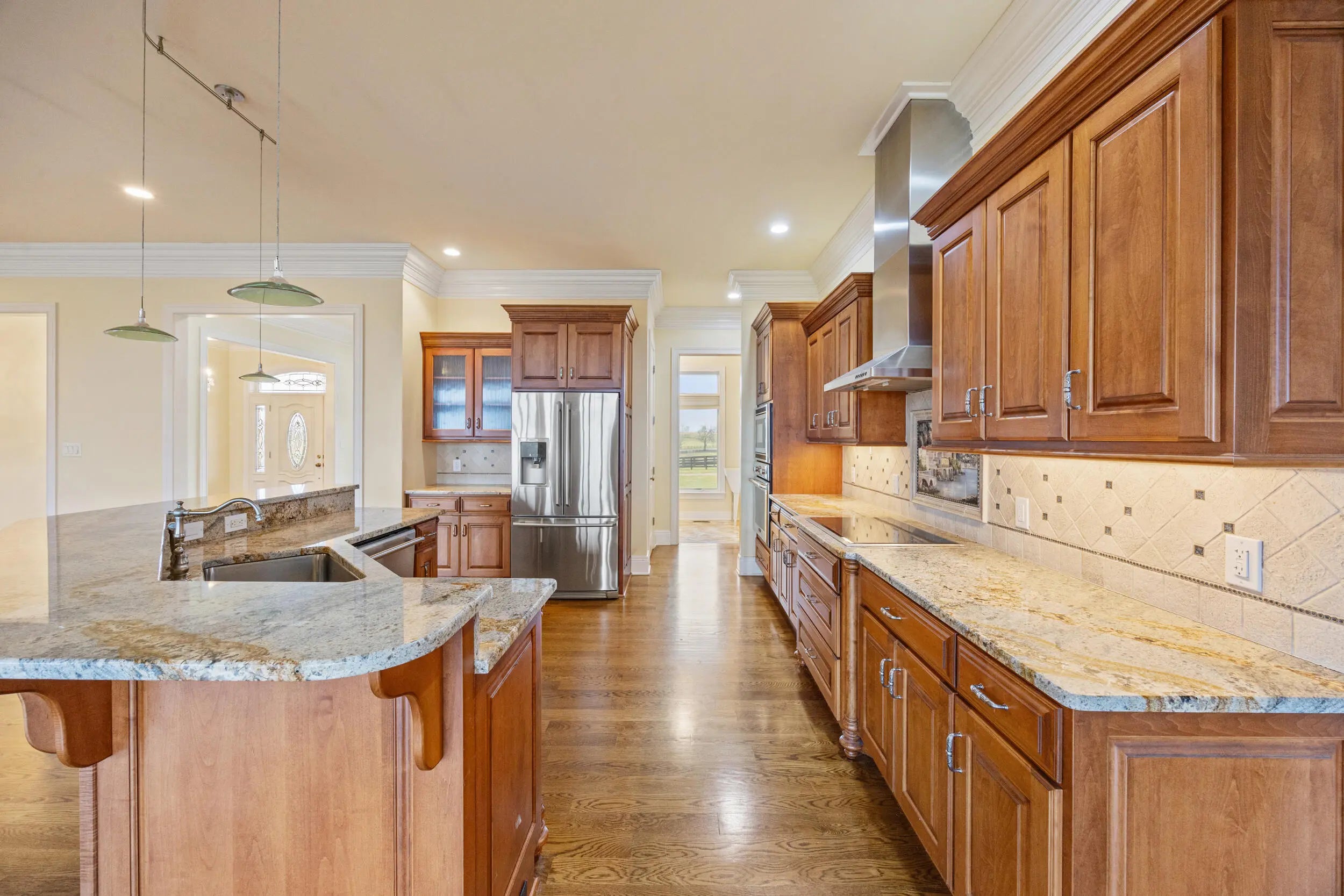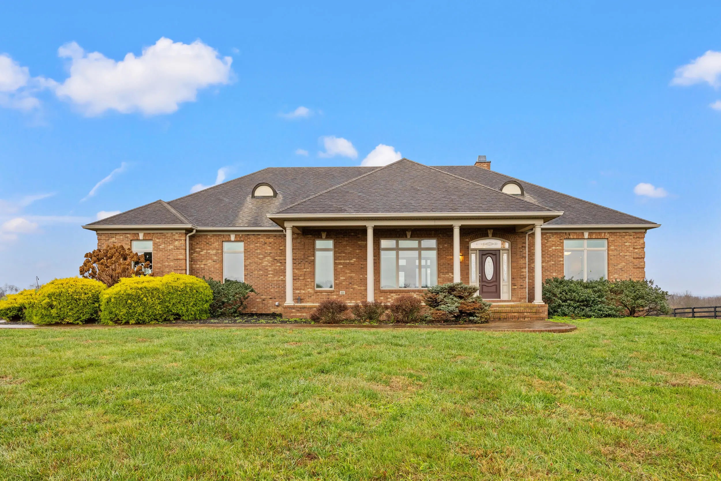 Turn key 32 acre Equine Farm Facility with great location! It is rare indeed to find a property available for purchase just 6 miles from Keeneland and the Bluegrass Airport that is so nicely improved for equine endeavors and lifestyle. This 32.89 acre property has wonderful amenities for both pursuits, including a brick ranch with nearly 4000 square feet of living space, a concrete block constructed horse barn complete with one bedroom living quarters, a 4200 square foot metal barn for hay/bedding and equipment storage , and one with a 3 bedroom, 2 bath apartment! The main residence includes many features, including an open floor plan, spacious kitchen with quality stainless appliances, main level primary suite, fireplace, hardwood floors, and deck overlooking the countryside. The basement level (walk out) features a large open floor plan with a full bath, storage room, and one car garage. The horse improvements are many and include the aforementioned 9 stall (14x14) barn w living quarters. There is also a shedrow style broodmare barn with 5 stalls, several run in sheds, 5 fields and 5 paddocks all with newly painted plank fencing. We are pleased to present this great opportunity to purchase a functional and unique property in a superior location.