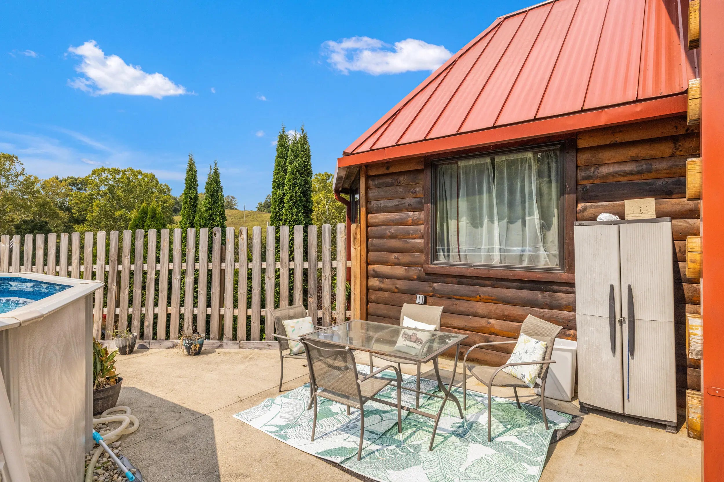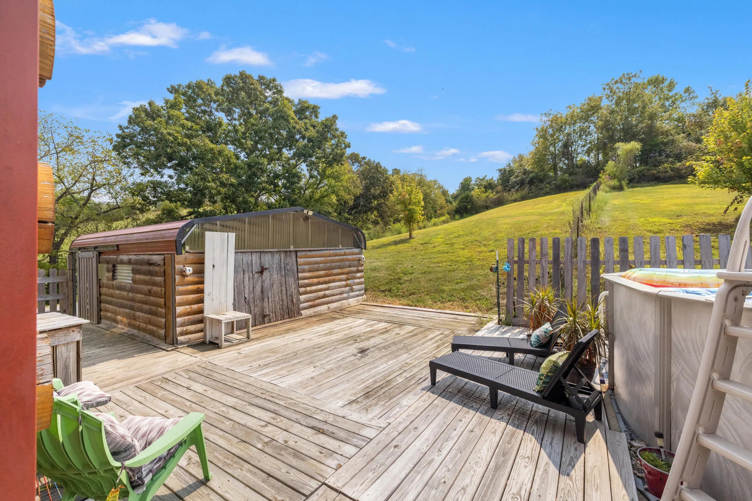 A new home for a new year to create new memories! Welcome to quiet country living in this custom log home. Never before on the market, this cabin was built with care and an attentive eye for small details that really set this property apart. A wrap around deck covers the walkout basement, complete with two matching swings. Walking in the front door you'll have a warm and welcoming feeling with the all wood beams accenting the vaulted ceilings and sunlight pouring onto the bamboo flooring. The kitchen features granite counter tops, a large walk-in pantry and deep farm sink. An adorable half bath has a custom sink made from a singer sowing machine and copper basin. Upstairs in the large master bedroom with vaulted ceilings and spacious walk-in closet. The master bathroom offers an oversized tiled shower, bear claw bathtub and sink made from an antique pie safe. At night, sit outside on the master bedroom patio and enjoy star gazing at it's best. In the office you have custom book shelves and desk made from their grandparents old house with love and nostalgia. Heading downstairs to the basement, the bar is made from live edge wood, features a full bathroom, two bedrooms, den and utility room. The outside back deck is centered around a salt water pool and cozy firepit area. The barn has all concrete flooring and electric. No need to worry if you lose power since a whole home generator will be there to keep you warm. You'll also find peach and apple fruit trees thriving in the lower valley of the property. Local attractions to the property include being minutes from Chowning boat dock, several wineries and the growing city of Bloomfield, which is known for its family-friendly atmosphere and strong sense of community, making this a peaceful and welcoming place to make your next home.