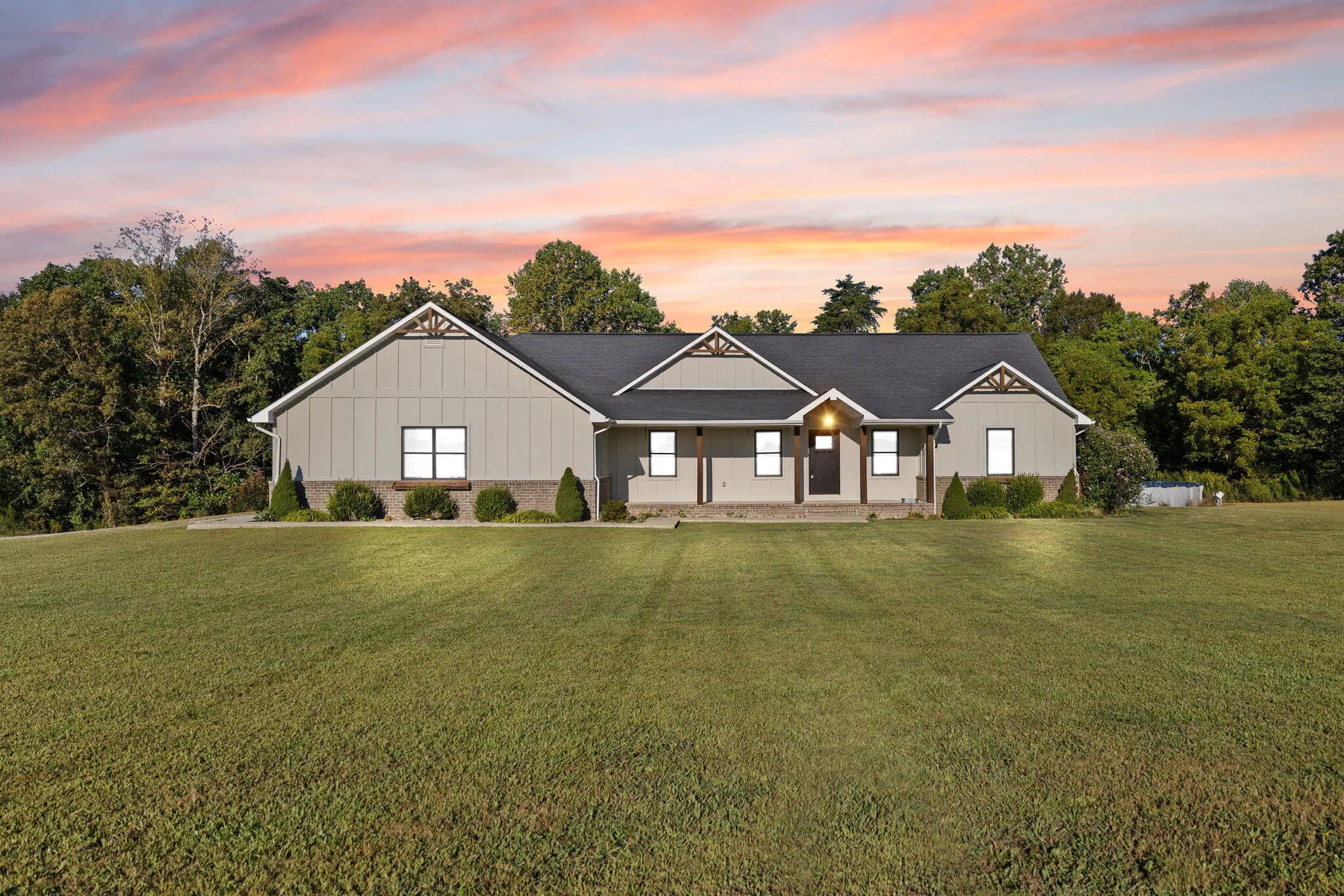 Here you go! Now offering this stunning 6-year-old custom built home that home rests on one of the most private and picturesque 10-acre tracts in the region! This home is surrounded by beautiful farmland and bordered by a wooded tree-line. It's a true retreat, offering the peace and quiet of country living while being just MINUTES from Lake Cumberland, Somerset, and Russell Springs. The exterior of this homestead was designed for endurance with stately brick and James Hardie Board siding, ensuring low maintenance and timeless curb appeal. Step inside to an executive foyer that leads into the vaulted living room filled with natural light, anchored by the centerpiece gas fireplace. The custom kitchen features a cooktop, wall oven, and upgraded finishes perfect for hosting family and friends. The private master wing offers serene views of the property, while the secondary bedrooms are all generously sized. Downstairs, a poured concrete basement with soaring 10-ft ceilings full with possibilities, complete with an engineered storm vault/safe for peace of mind for your family! Both gas and wood-burning fireplaces bring warmth and charm throughout the home. This is more than a house it's a generational residence. Whether you envision quiet mornings watching wildlife, evenings by the fire, or weekends boating on the lake, this property offers it all: privacy, space, and unmatched quality, in one of the most sought-after locations near Lake Cumberland.
