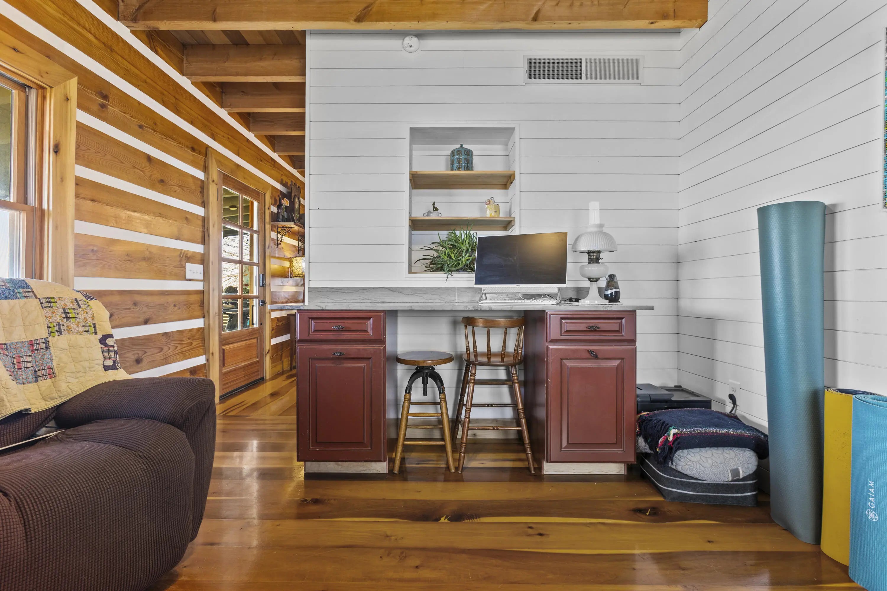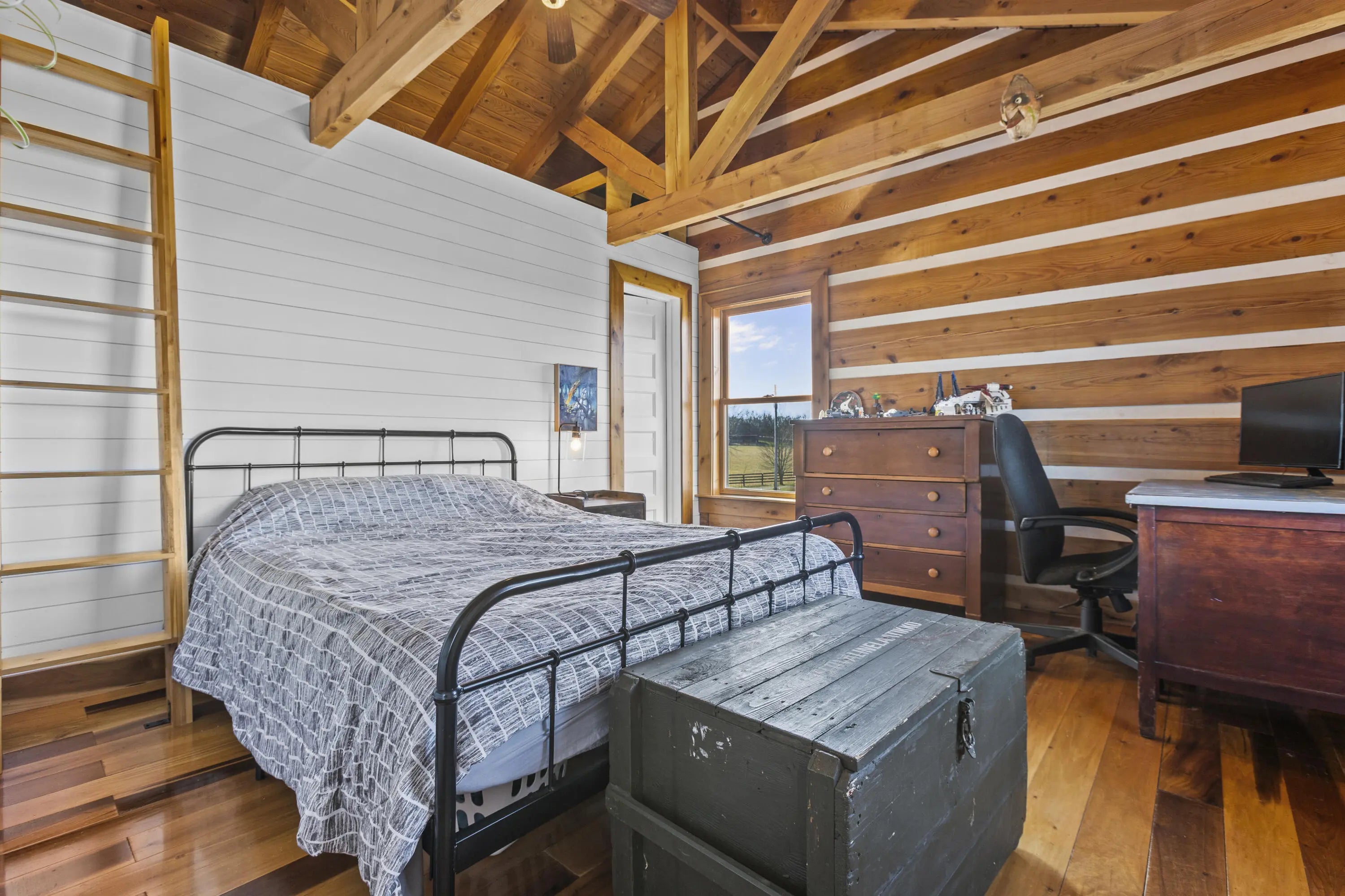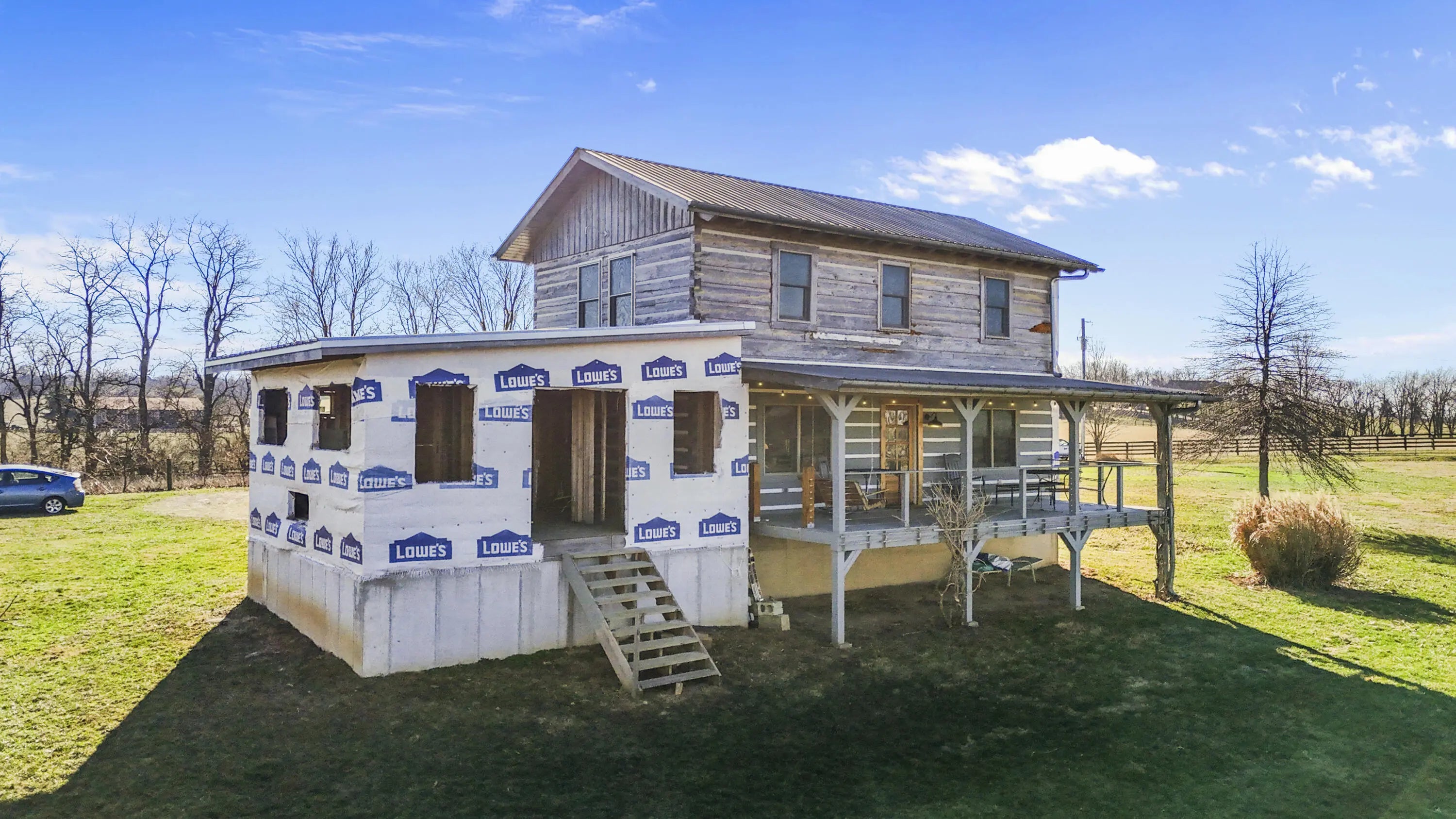 This 3 bedroom, 2.5 bath cabin on 5 private acres in Woodford County is being sold As-Is, offering a rare opportunity for investors, Airbnb operators, or buyers looking to create a custom retreat with significant upside. The property includes 1,360 sq ft of finished living space, a 680 sq ft unfinished basement with 9' ceilings and walkout access, and a 400 sq ft framed master suite addition ready for completion, allowing for immediate expansion or income potential. Exterior refinishing and repair of the south wall are needed, but the home's structure and ridge top location provide a strong foundation for customization. A 1,000 sqft drive-thru barn with concrete floors and hookups is perfect for horses, storage, or additional guest accommodations, while fenced pastures, water access, and established raised beds provide hobby farm or small-scale agricultural possibilities. The main floor features a functional kitchen with durable finishes, flexible living areas, and a full bathroom, while the upper level offers three bedrooms, loft space, a full bath with jacuzzi, and tall ceilings throughout. With panoramic views in every direction, proximity to Woodford Reserve, Castle & Key, and zoning for Woodford County schools, this property combines rural privacy, strong rental or Airbnb potential, and room for growth and customization, making it a highly desirable opportunity for the next owner. Schedule your showing today!