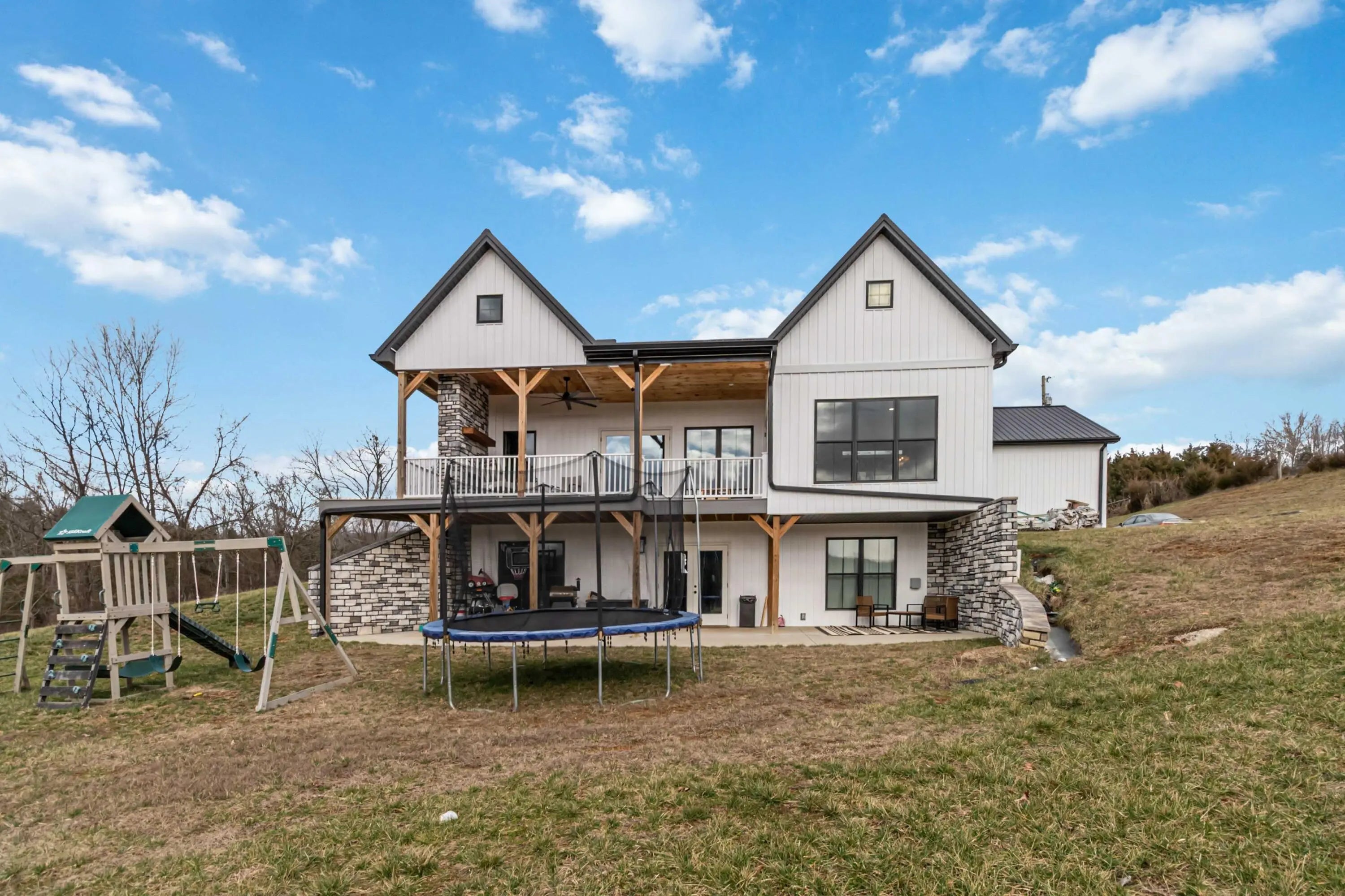 This beautiful 2023 4-bedroom, 3-bathroom home sits on 6.71 scenic acres and offers space, comfort, and versatility. The main level features the primary bedroom with a large walk-in closet and a luxury bathroom with a soaking tub, along with two additional bedrooms. A propane fireplace in the main-level living room creates a warm and inviting space. The home features granite countertops and two full kitchens—one on the main level and one in the walk-out basement—making it ideal for multi-generational living or entertaining. The walk-out basement offers incredible views and includes a bedroom, bathroom, kitchen, family room, and playroom, along with a second laundry area. An additional laundry room is conveniently located on the main level. Enjoy relaxing outdoors by the fireplace on the main-level deck. Completing the home is a 2-car garage and a convenient location close to TTAI, Hendrickson, and Gatormade—offering the perfect blend of privacy and accessibility.