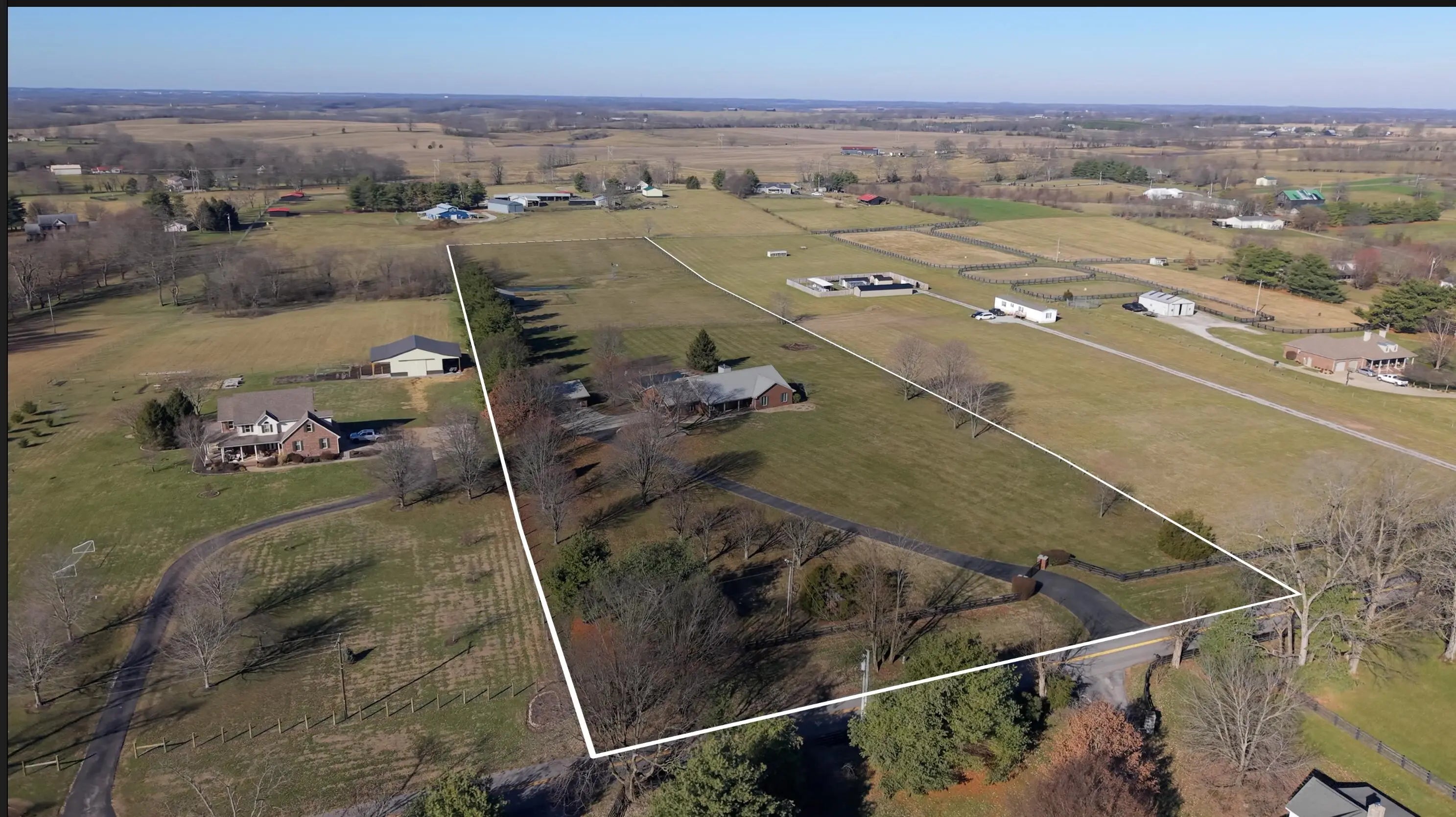 Welcome to Windswept Farm located on a most desirable piece of Kentucky Bluegrass. Located approximately 15 minutes from Hamburg, Lexington, you can also be in Richmond in about the same amount of time and Historic Downtown Winchester. This property has been meticulously maintained, from the ranch style house with an awesome 2 car garage with storage, a detached heated 3 car garage and an inground heated pool. And there is a 3 stall horse barn with automatic watering in the paddock area. The owners pride shows throughout the home. When you step in the front door you immediately see the beautiful view of the pool and the rolling Kentucky Bluegrass. The gleaming hardwood floors are another distraction but come on and see the great room with the wood burning fireplace for those cozy times. The dining room and the eat in kitchen provide space for entertaining family and friends. The covered rear patio also provides that entertaining space and bonus when the heated inground pool is open. And bonus for that pool party there accessibility to an interior half bath. The primary bedroom has a woodburning fireplace and 2 walk in closets. The property also features a privacy gate a the front entrance to the driveway. Lots to love about this property, make your appointment today.