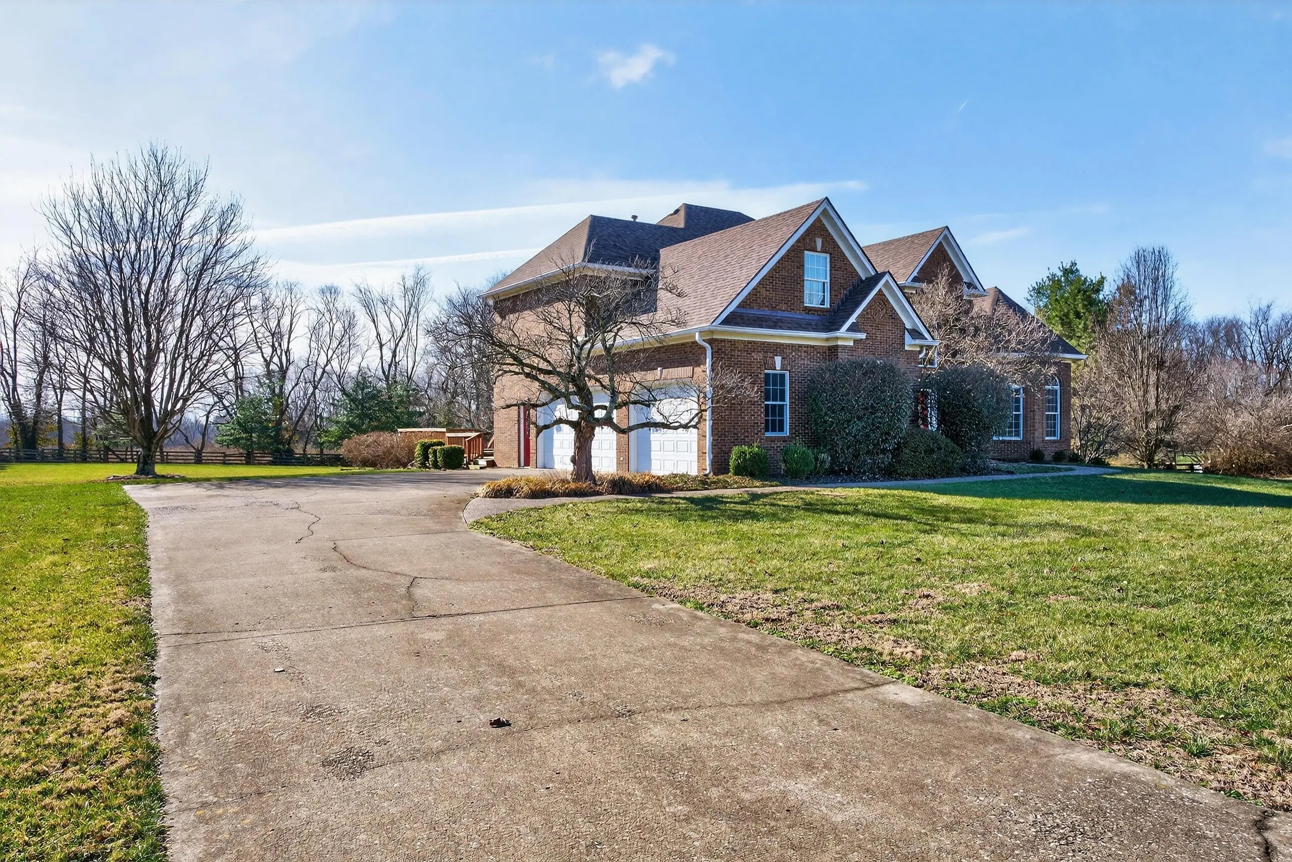 This is a special opportunity in one of Central Kentucky's most desirable locations. Set on 8.58 acres on a quiet, private road just minutes from Keeneland and leading equine hospitals, this property offers an uncommon blend of privacy, convenience, and functional horse facilities. Surrounded by quality homes and neighboring farms, the setting feels secluded while remaining close to everything Lexington and Versailles have to offer. The 5 bedroom, 4.5 bath home features a first-floor primary suite, high ceilings throughout, a welcoming entryway, and a large finished basement that provides excellent additional living and entertaining space. Generous storage and closet space are found throughout, and outdoor living is well designed with a spacious deck and patio overlooking surrounding farmland and horses. The equine facilities are well positioned and ready for immediate use, featuring an 11 stall (13.8 x 11.3) barn with tack room, feed room, and hay loft, along with an indoor arena. The layout offers a practical and efficient setup for a private horse operation in an exceptional location. Properties offering this combination of location, privacy, and usable equine infrastructure rarely come available. Whether you're looking for a well-located horse property or a beautiful home where horses are part of the lifestyle, this farm presents a unique and compelling option.